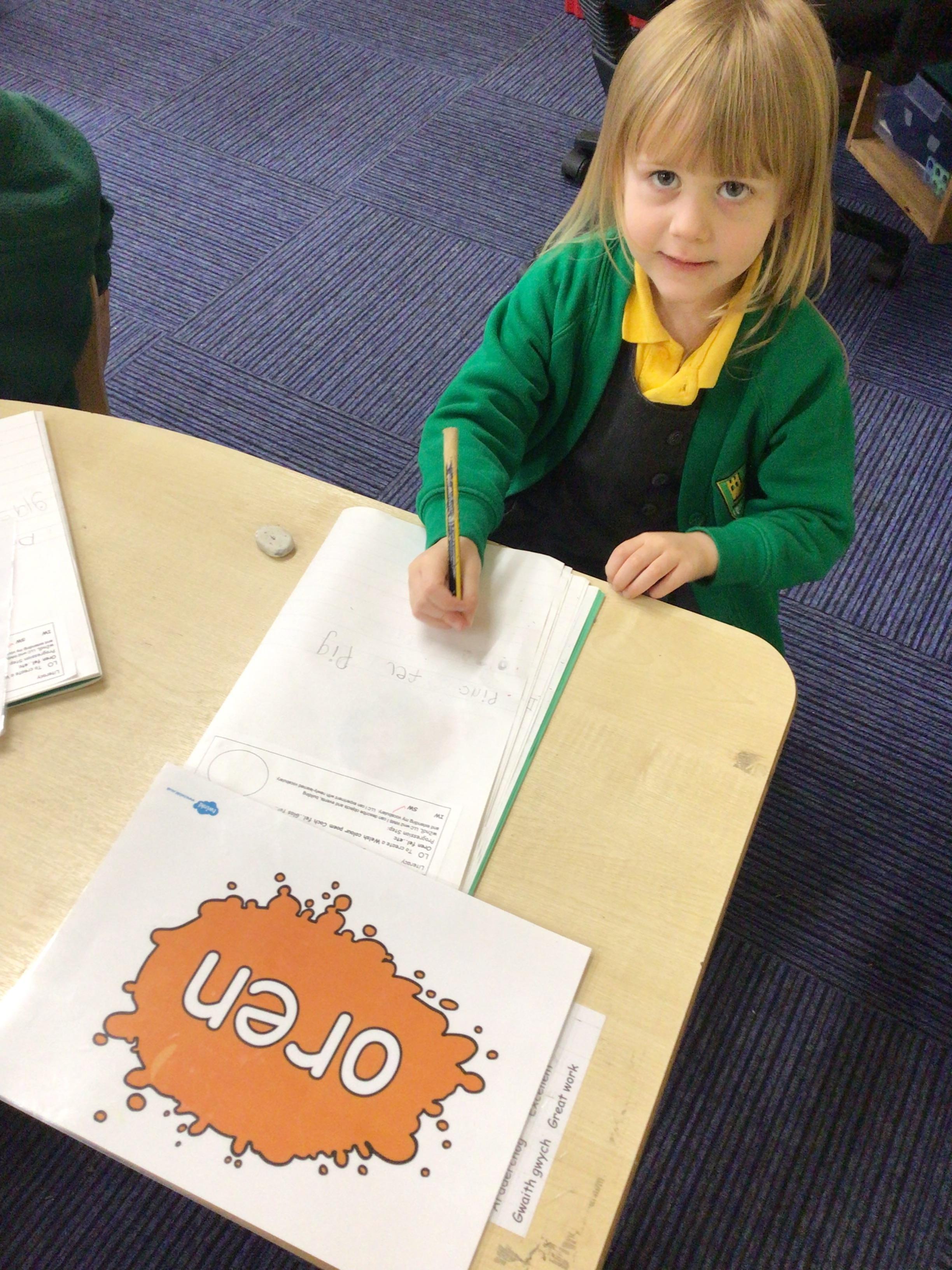 This week our letter of the week is c/C. We are going to be writing a Welsh colour poem. In maths we are learning to recognise and order teen numbers and will be looking more at 2D shapes. In music we are practising the songs for our Christmas performance. We are making a Winter display to go up in the corridor and will be making a ticket for the Christmas performance too. We will continue to practise football skills in p.e. In the afternoons we will be making the item we are selling at our school fair. It's going to be a great week, busy but lots of fun.