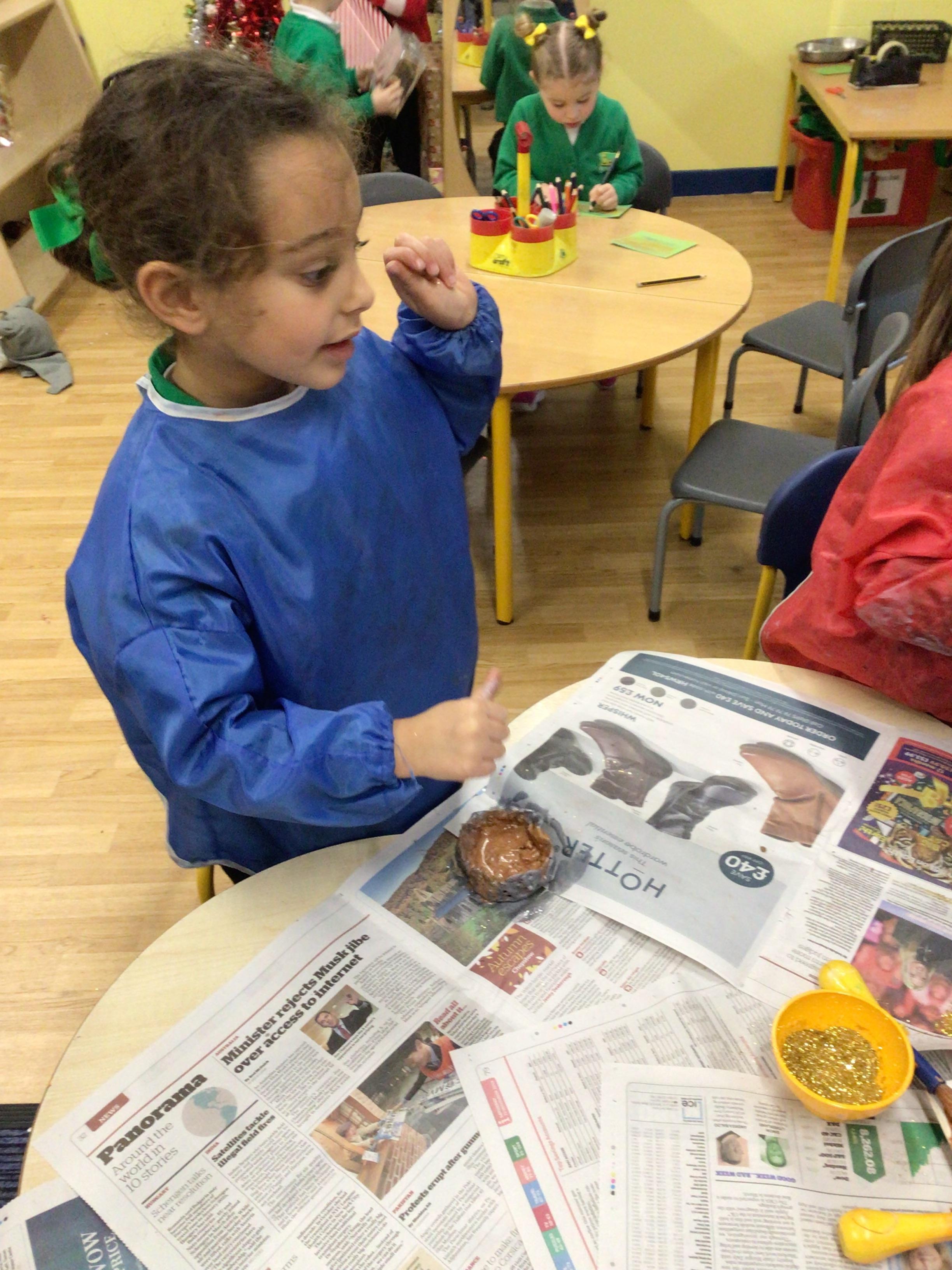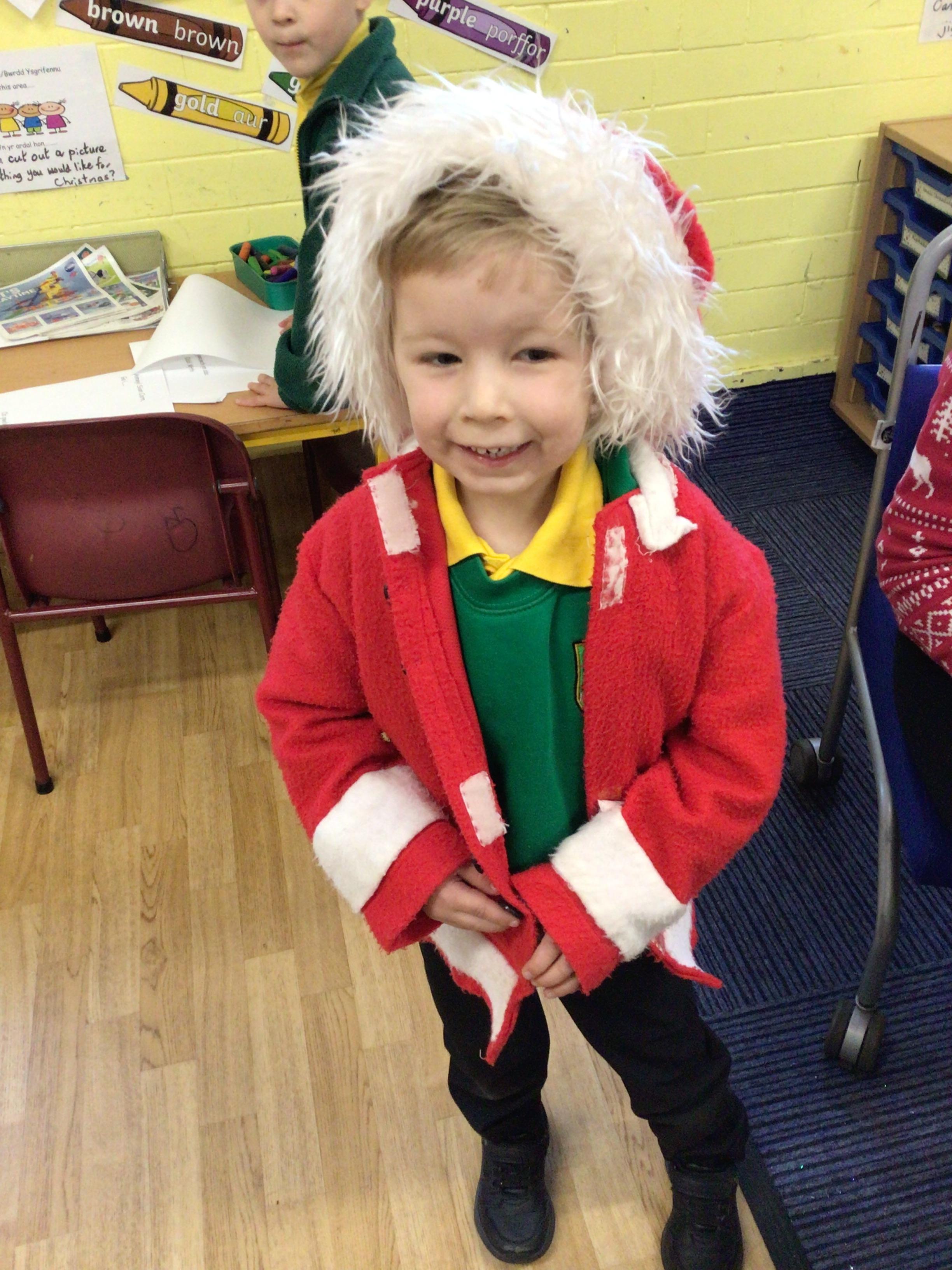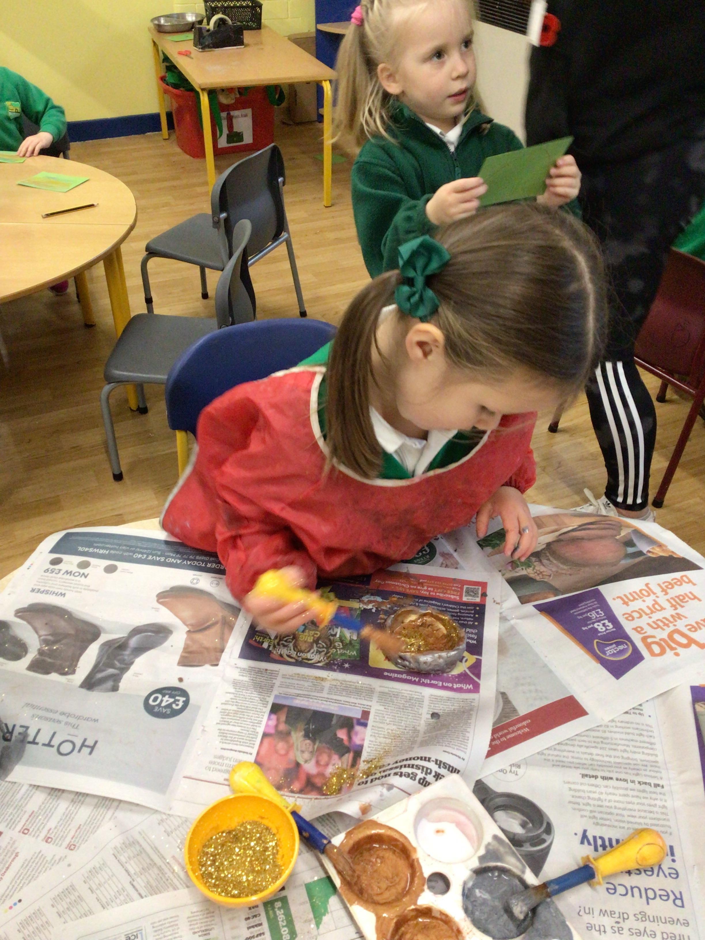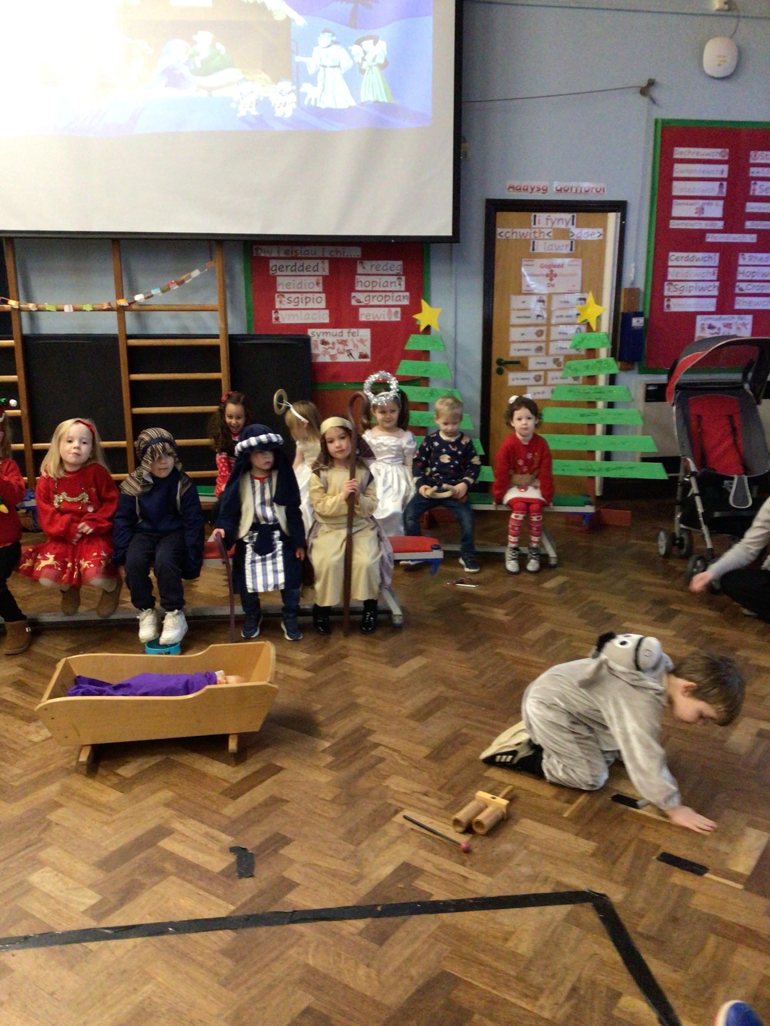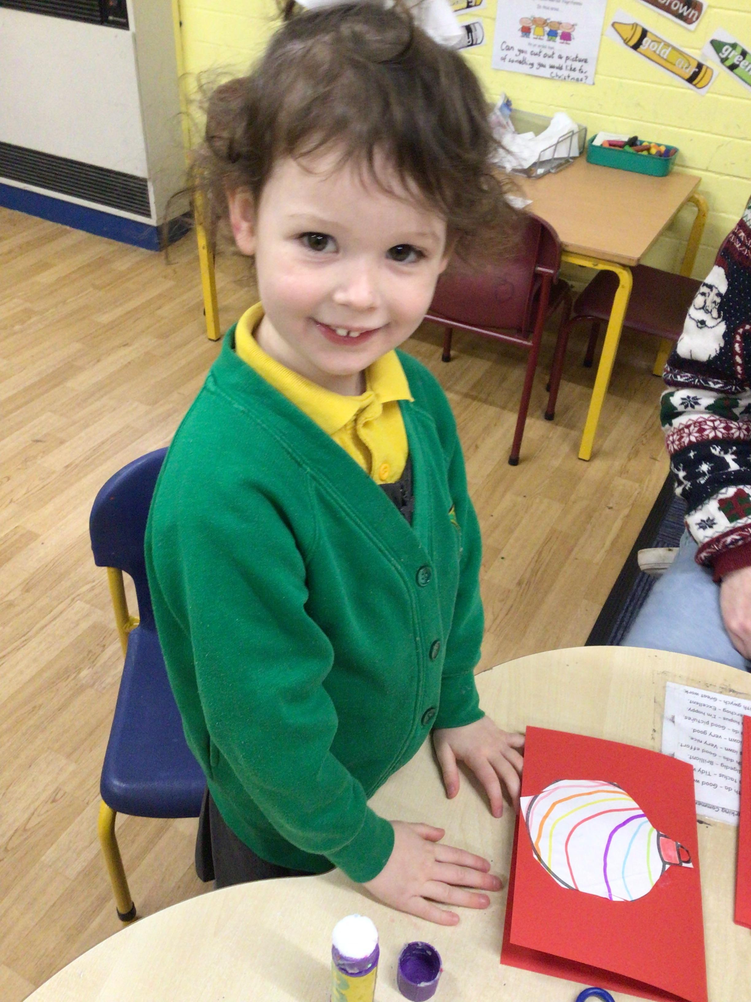 This week we will be busy making Christmas cards, calendars and tea light holders. We are really excited because on Tuesday we will be watching M and M Productions' performance of Snow White. On Thursday we will be performing our nativity show to parents. We are really looking forward to seeing you there. As well as all that we will be doing some maths work based on our sales at the Christmas Fair, doing some Christmas subtraction sums and learning more about numbers to 100. We will be writing, in Welsh, to Sion Corn (Santa) and our letter of the week is u.