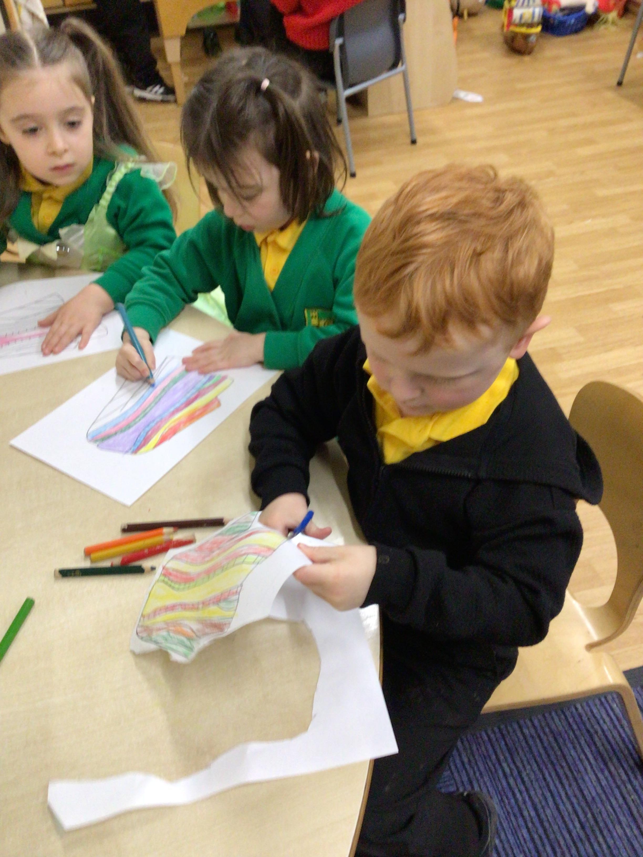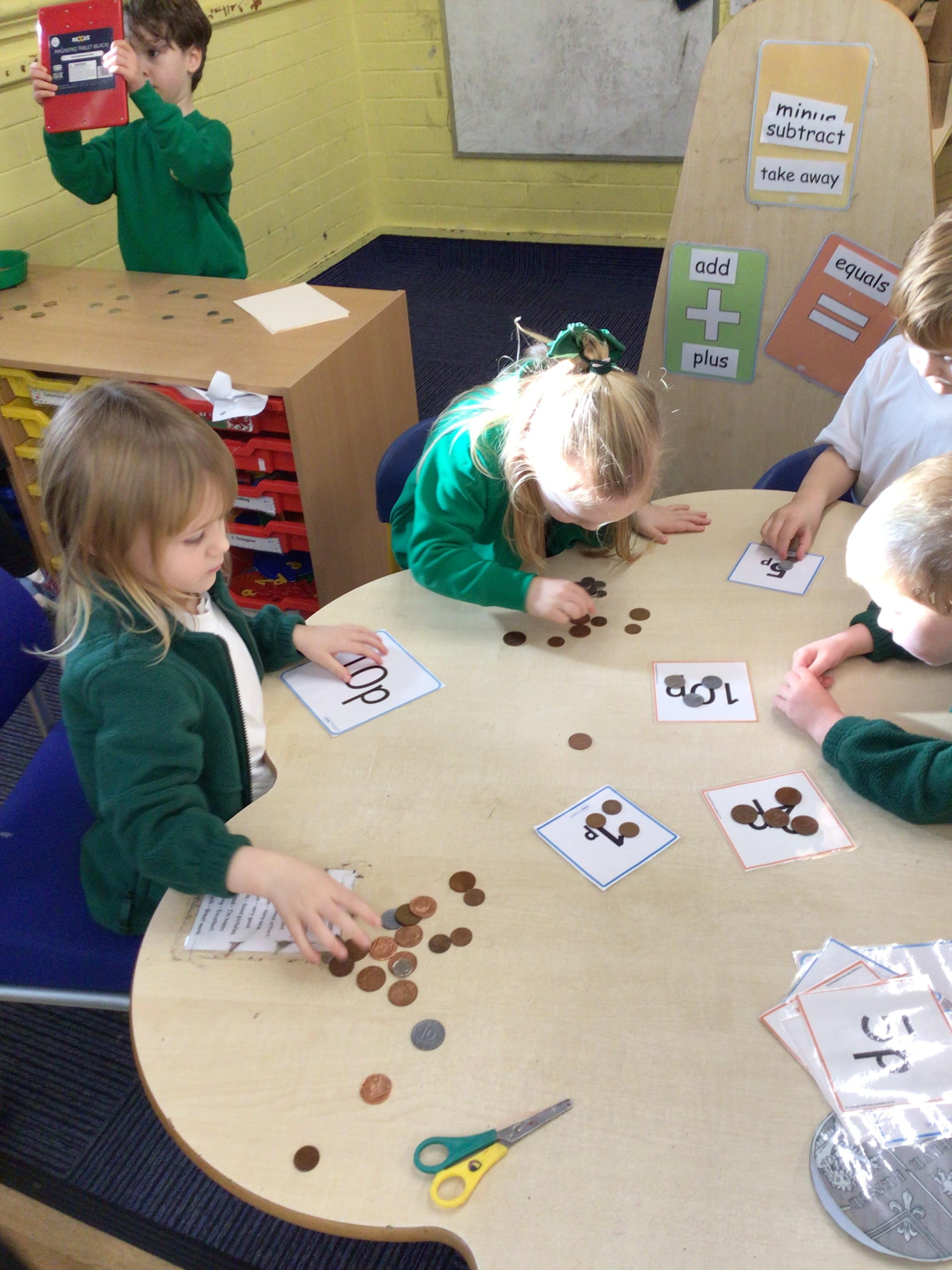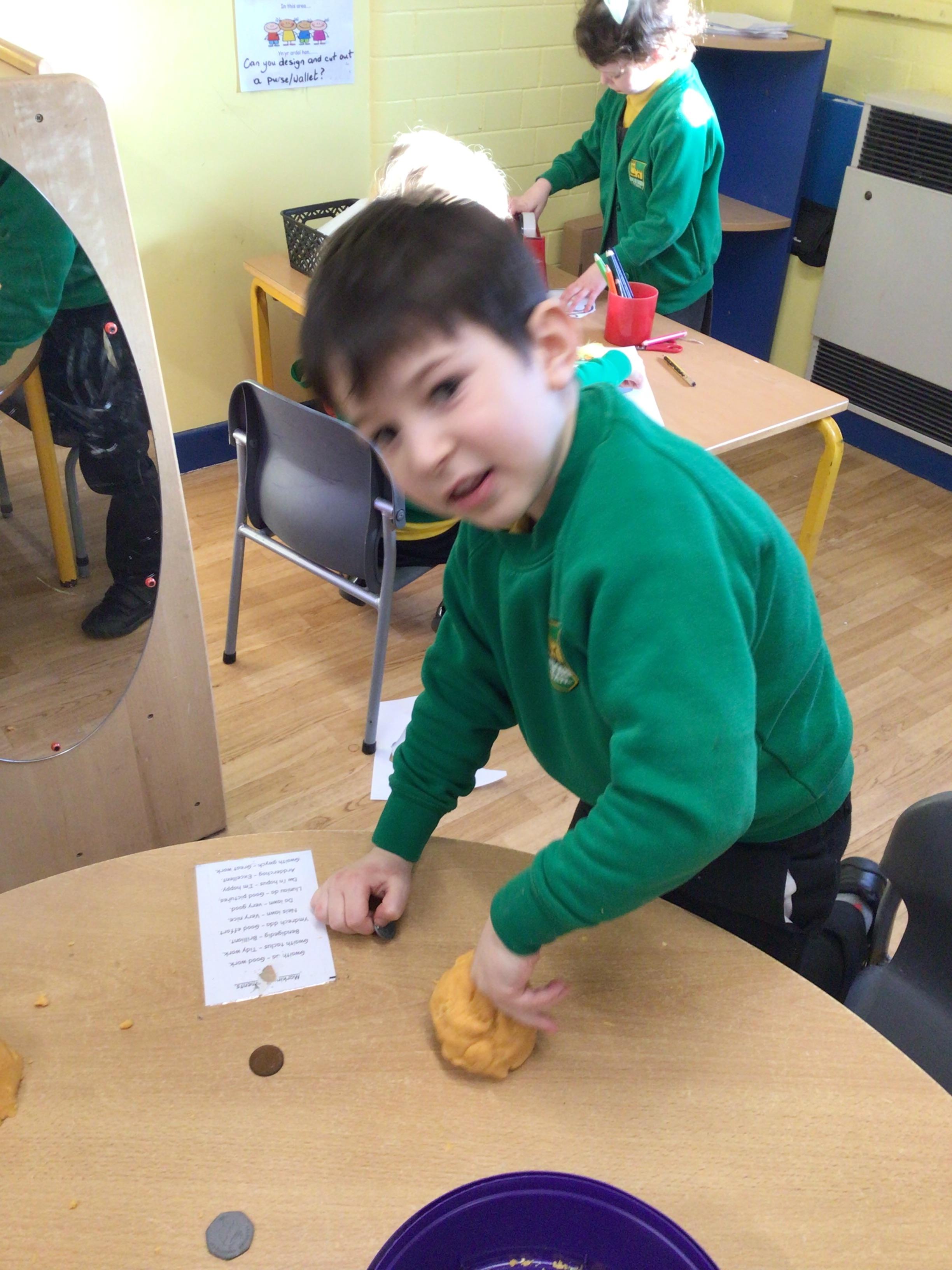 This week we brought our teddies and soft toys to school. We have been writing about them and telling other children why they are important and special to us. Our letter of the week was  f/F. In maths we sorted coins and matched coins to the correct amounts.We also used playdough to press coins into. We made wallets and purses in the craft corner. Our big book of the week was "The Toy Shop"and our Welsh book was "Y Siop Degannau." Year 1 assembly was about Joseph and his colourful coat so we have been designing and colouring colourful coats too.