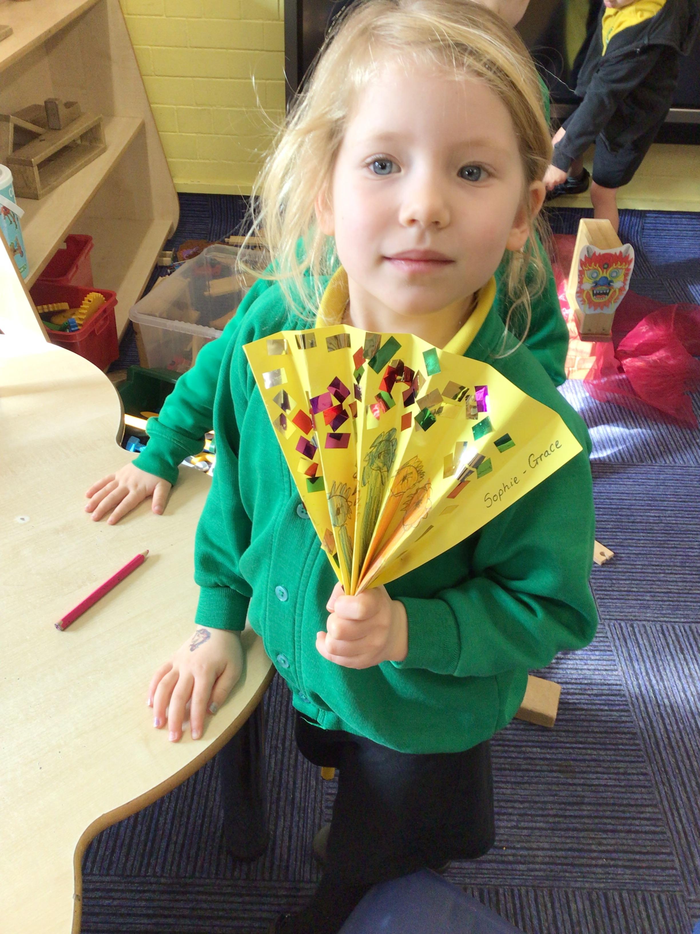 This week is a special week at school as it is a Language, Literacy and Communication week and all classes will be studying the same book, "The Magic Paintbrush." We will be reading the story, thinking about rhyming words, making fans, doing addition sums when playing magnetic fishing and working on 1 or 2 more than a given number. In the afternoon we will make Chinese lanterns and use an App on the I Pad to draw a picture from the story. In P.E. we will be continuing to learn the Welsh folk dance Jac Y Do. In PSE we will talk about the meaning of being greedy. Our letter of the week is j/J and our Welsh book is "Pysgodyn i De." We will also be learning a Welsh song "Pwy Wnaeth Y Pysgod Chwim?" We are very lucky to be having a visit from an author this week too. Toni Wolstenholme is coming to talk to us about her book "Bertie And The Breakfast Treat."