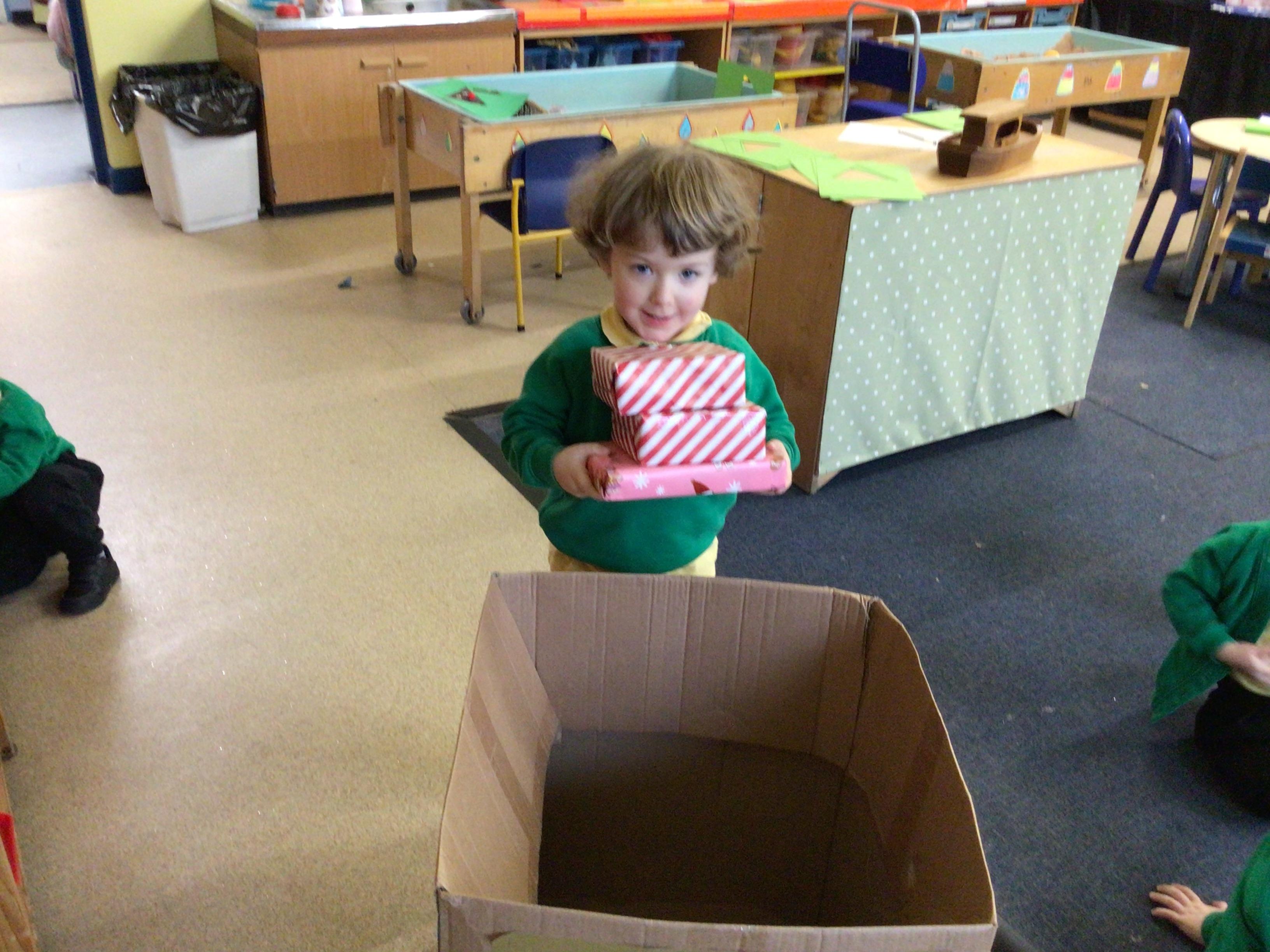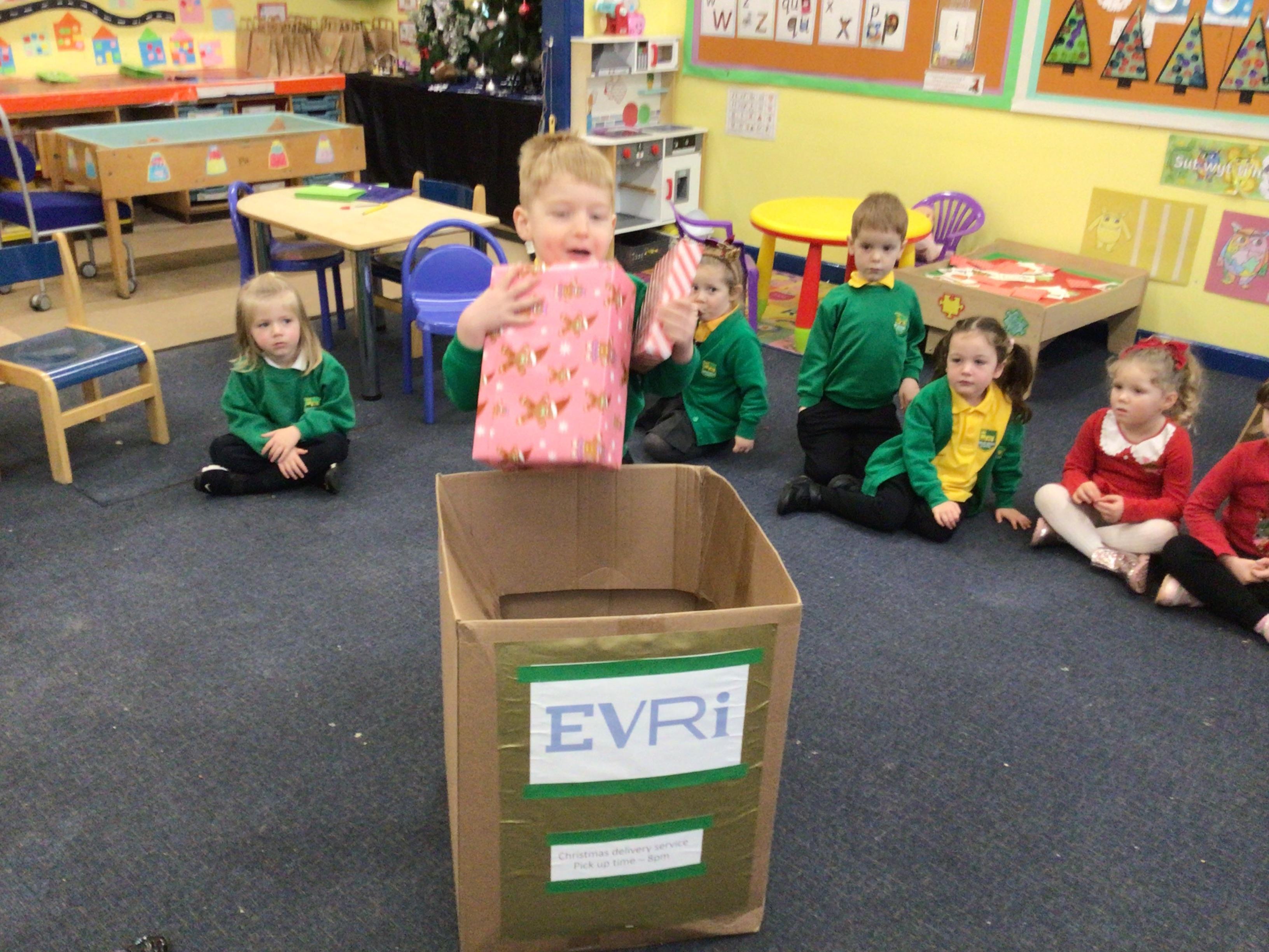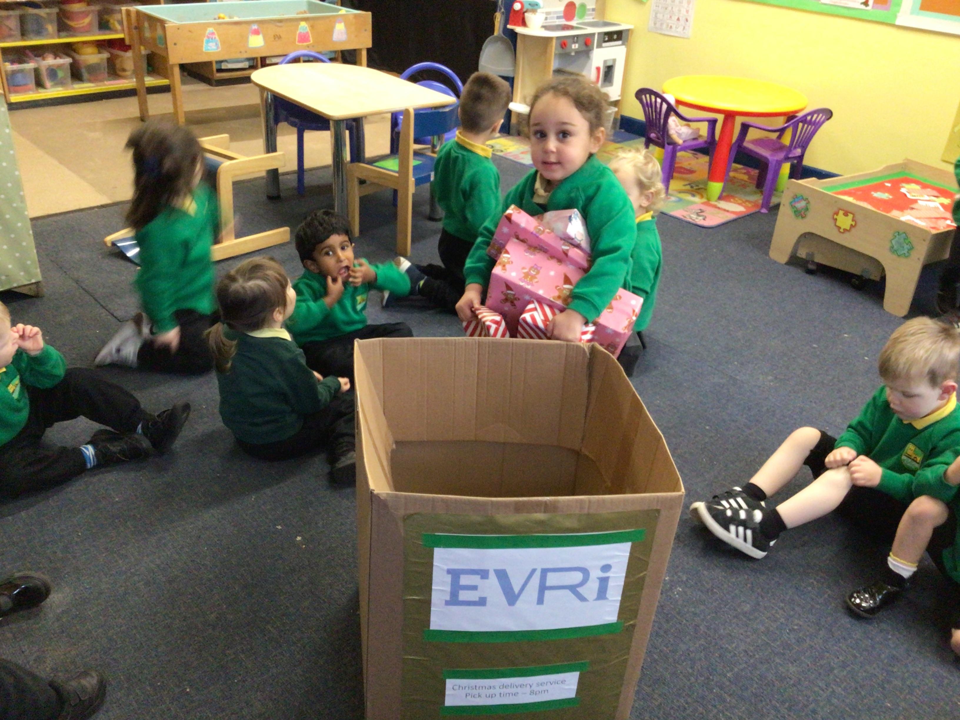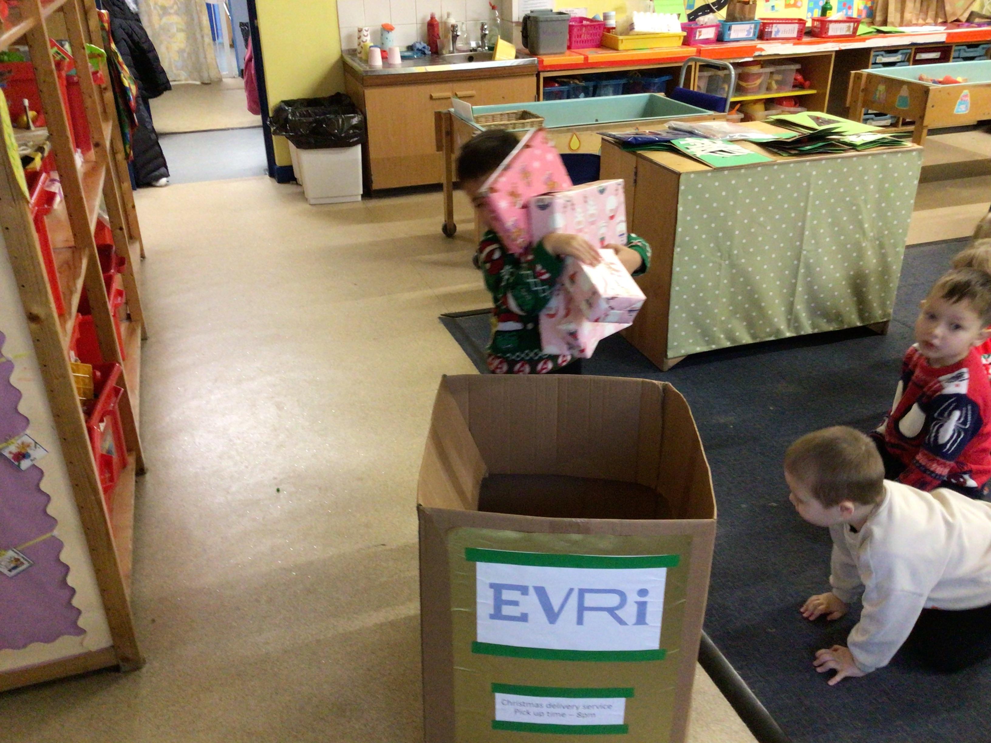 December in Nursery. We have been delivery people to help Father Christmas with the presents.