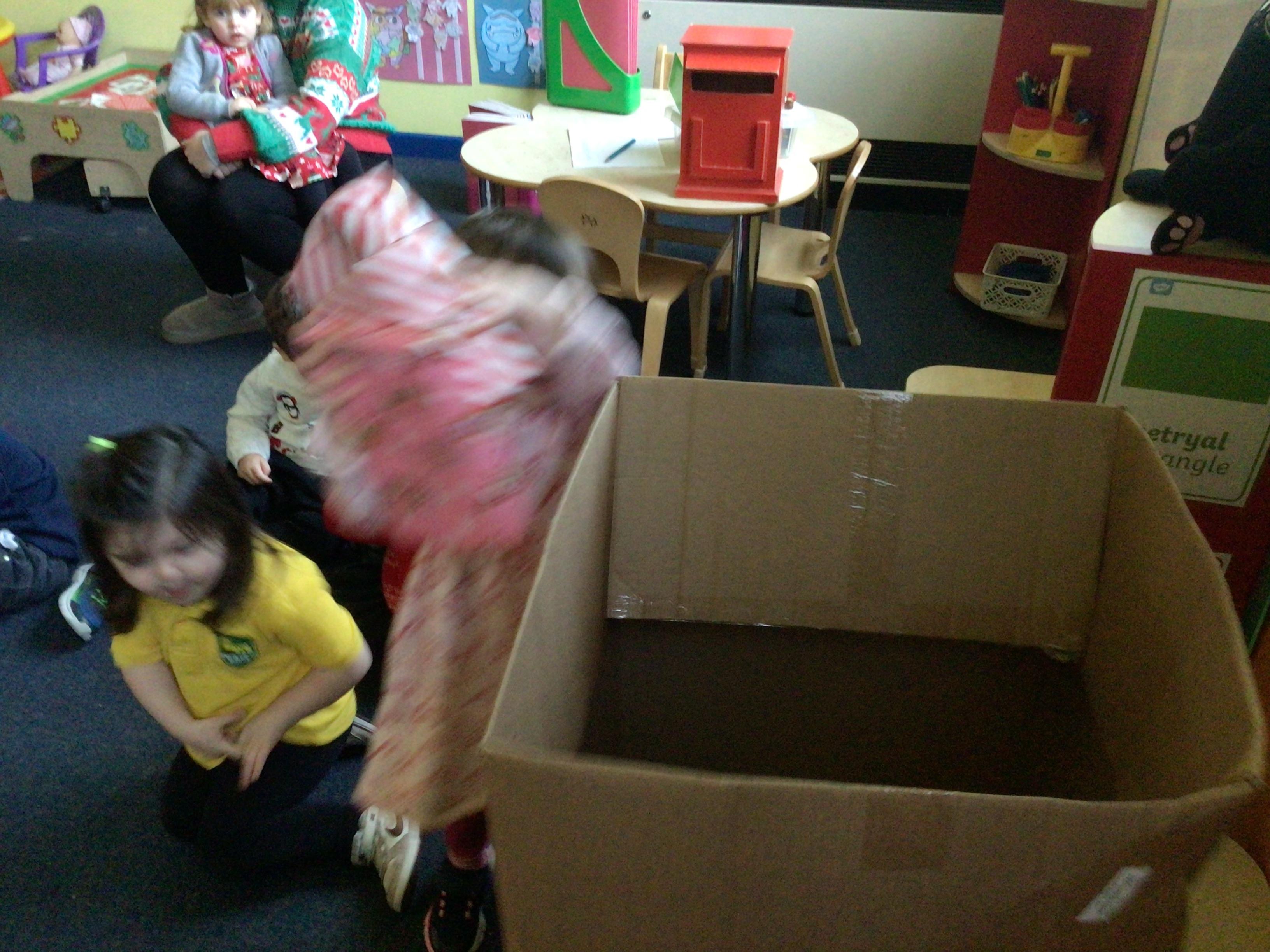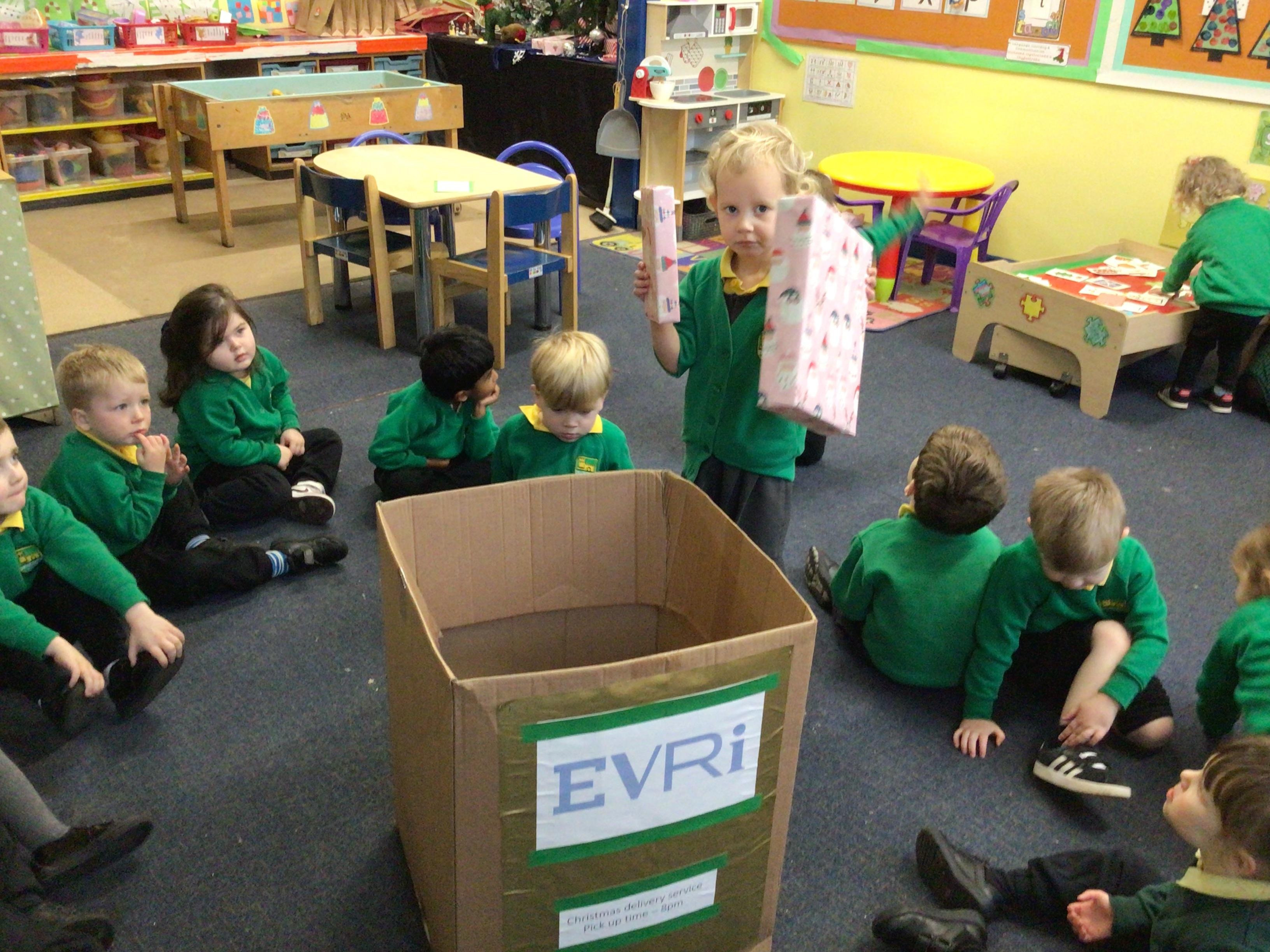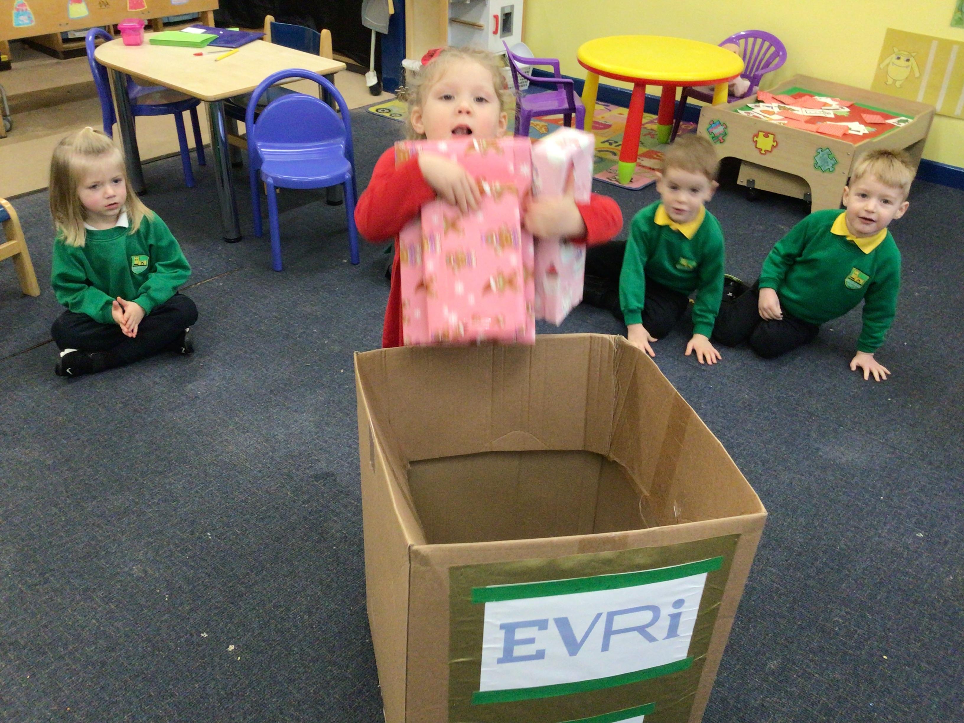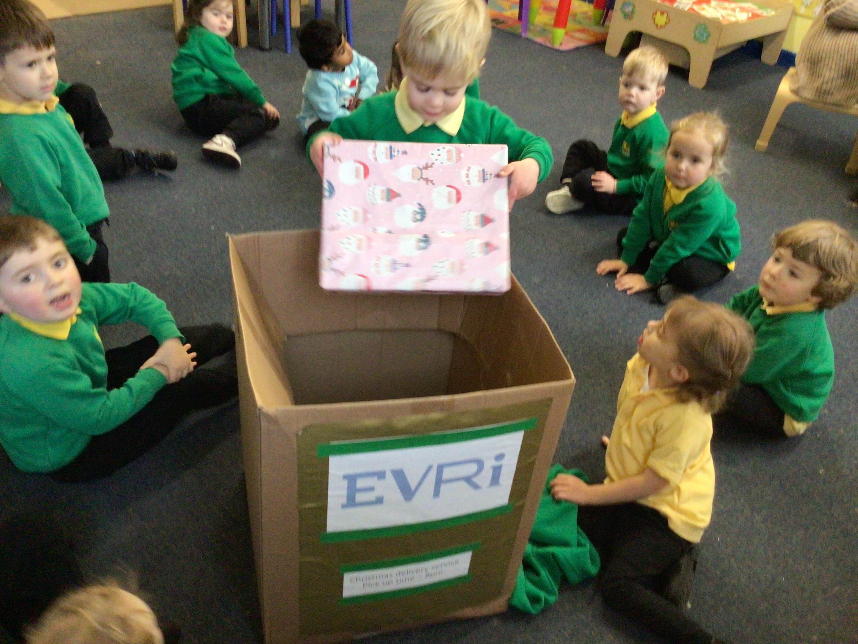 December in Nursery. We have been delivery people to help Father Christmas with the presents.