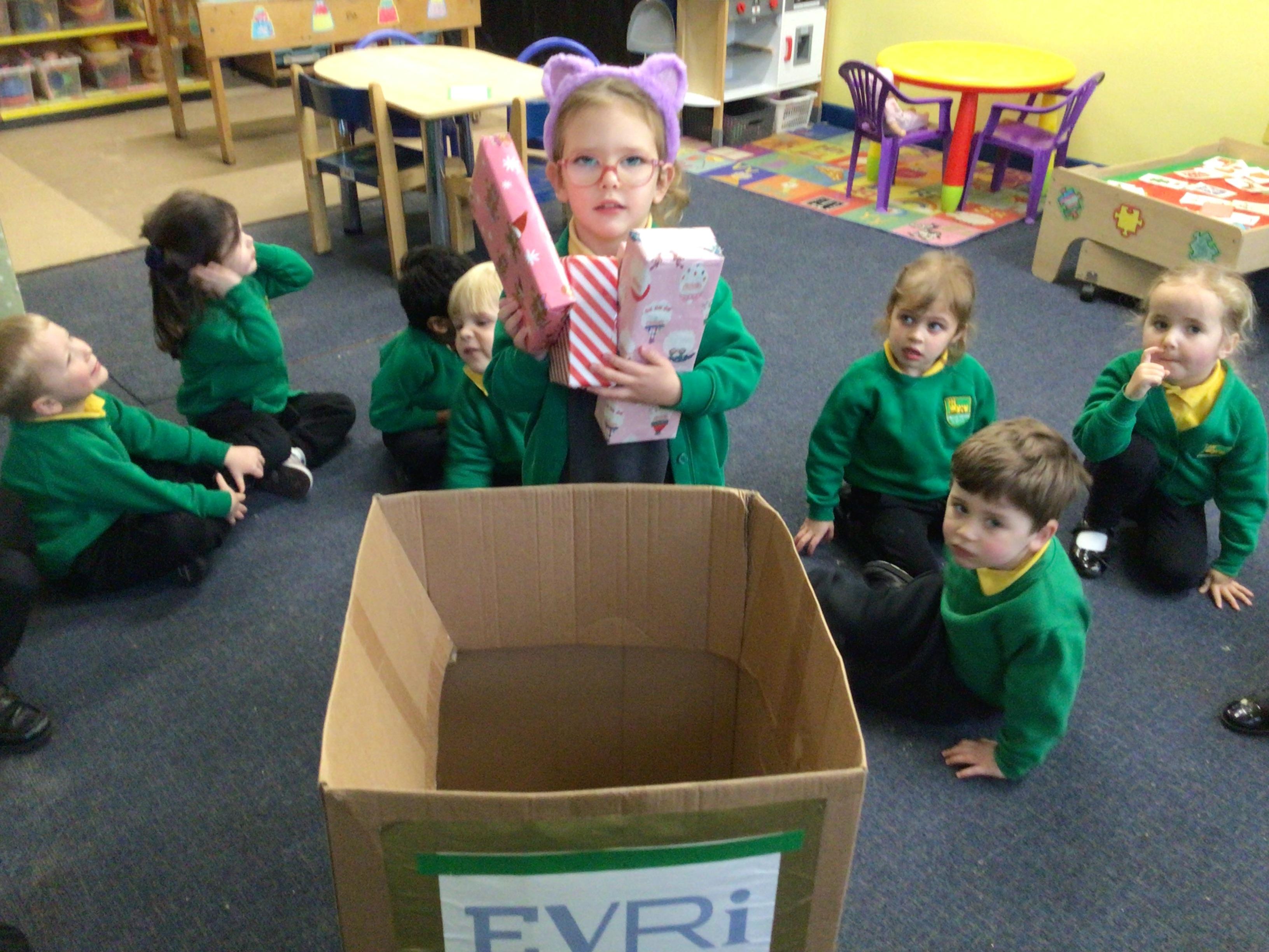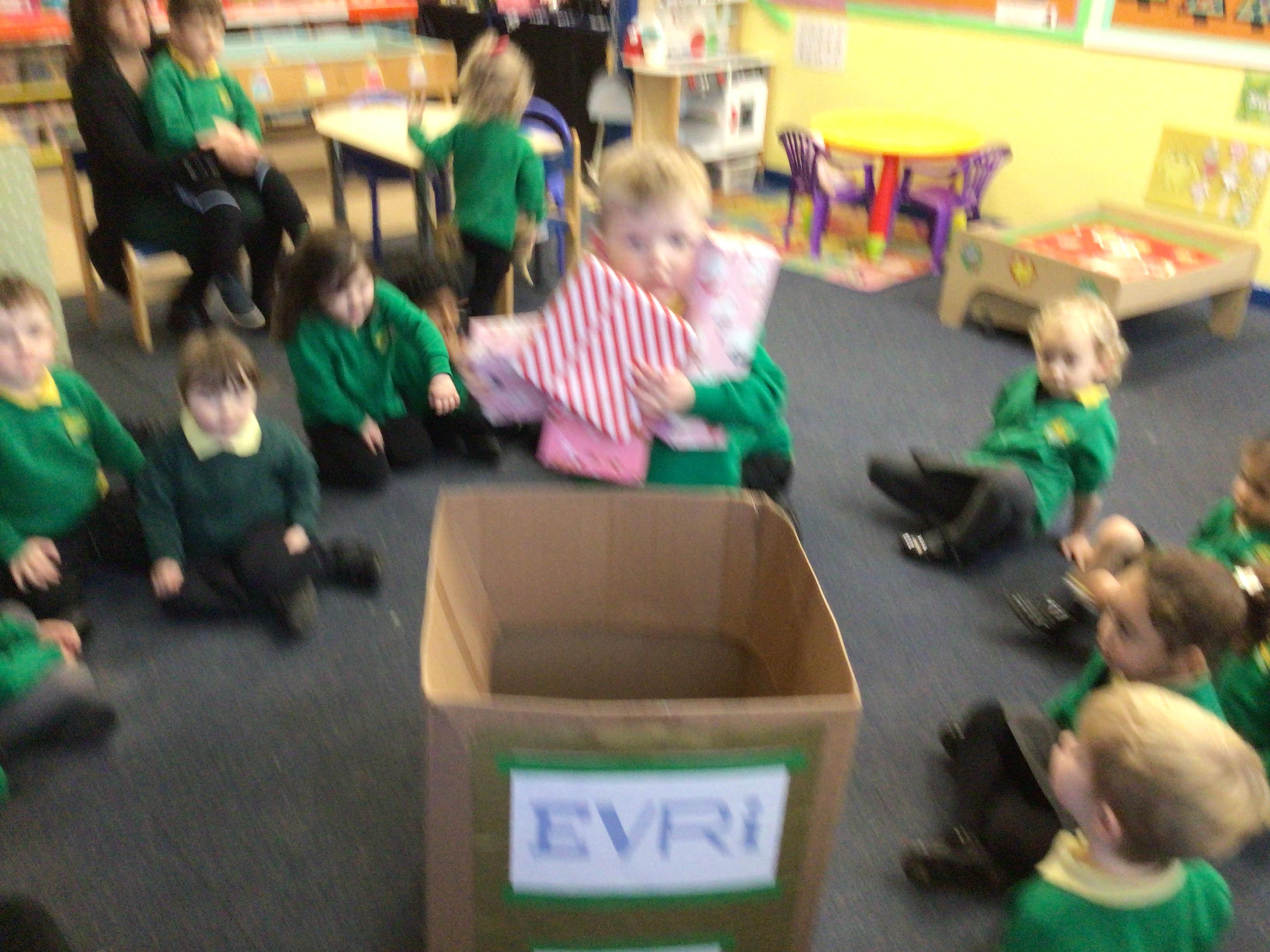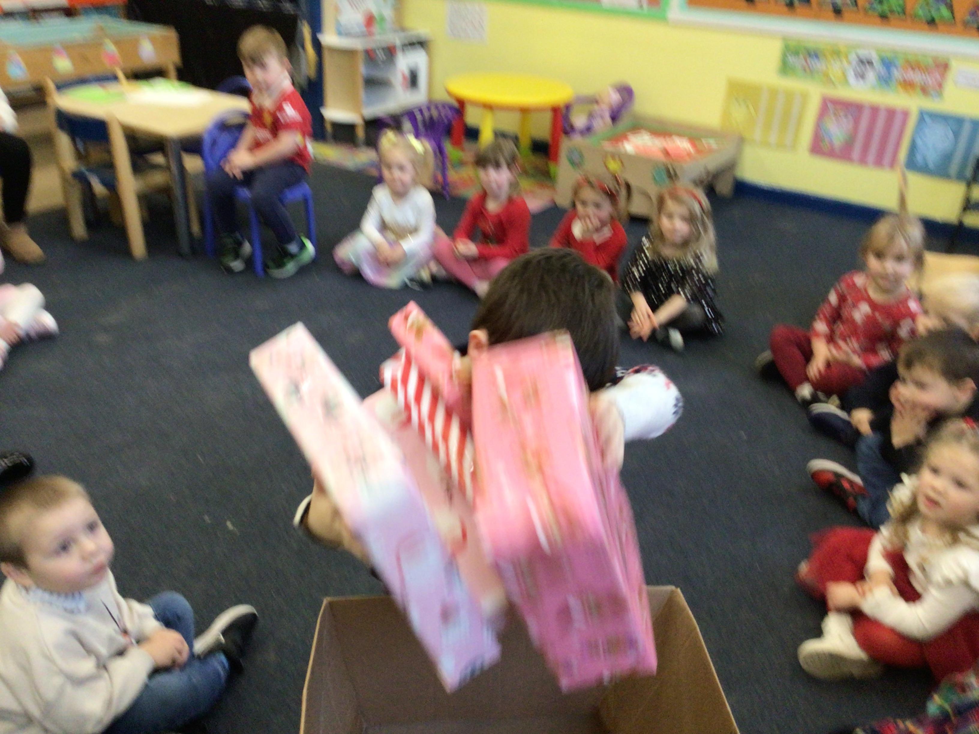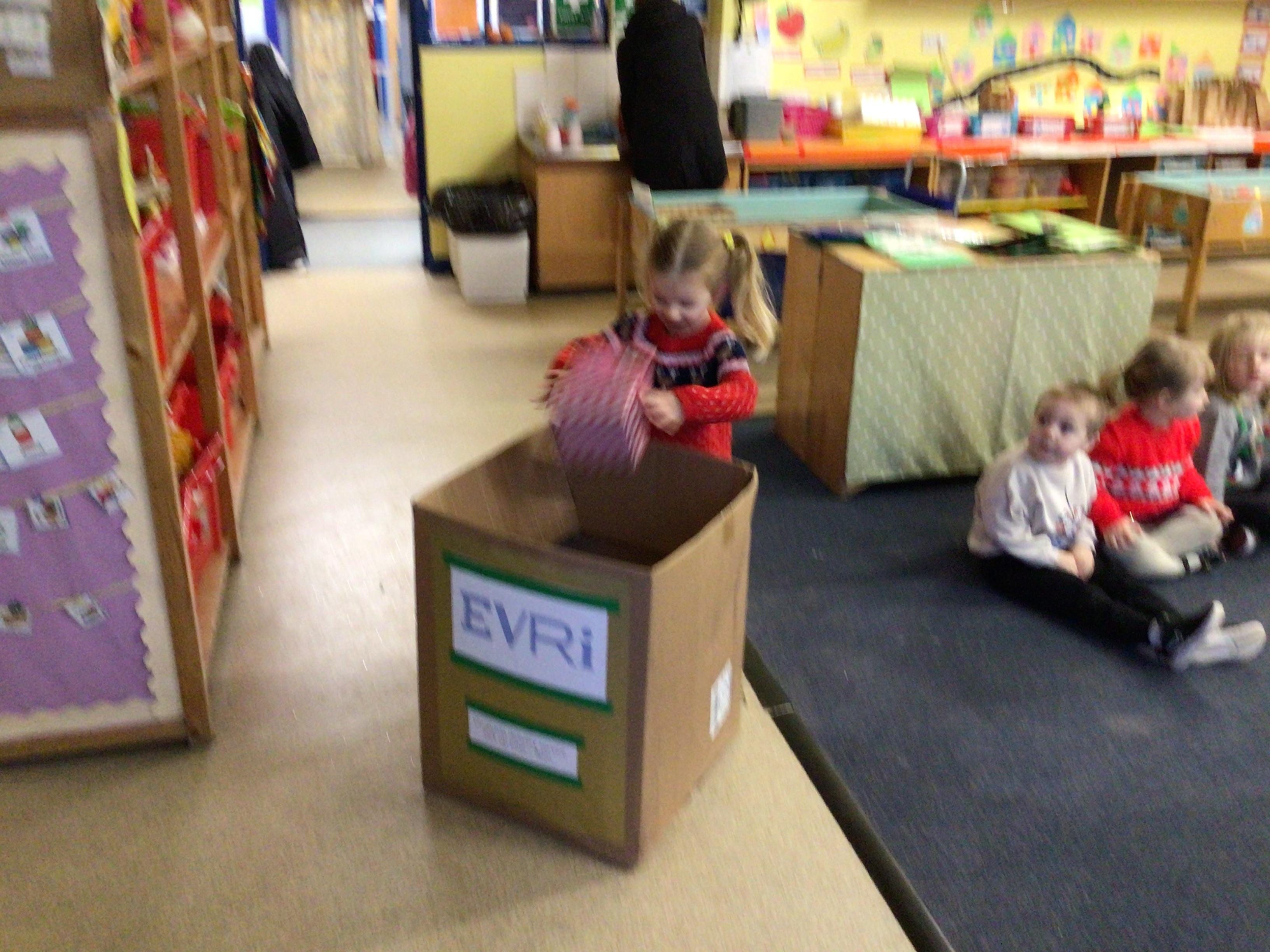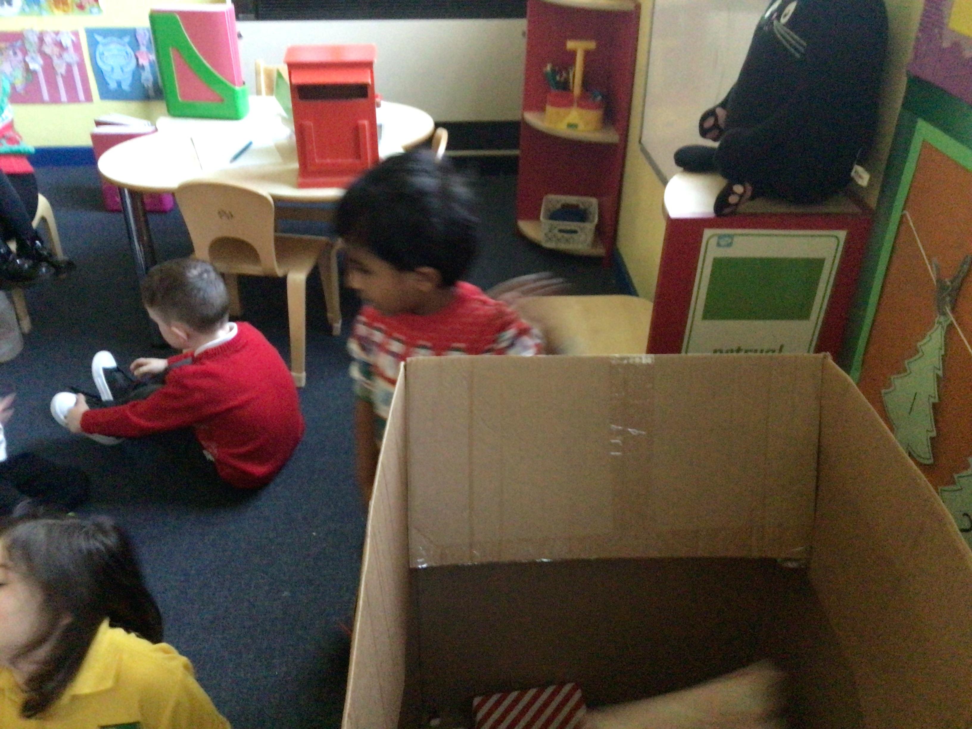 December in Nursery. We have been delivery people to help Father Christmas with the presents.