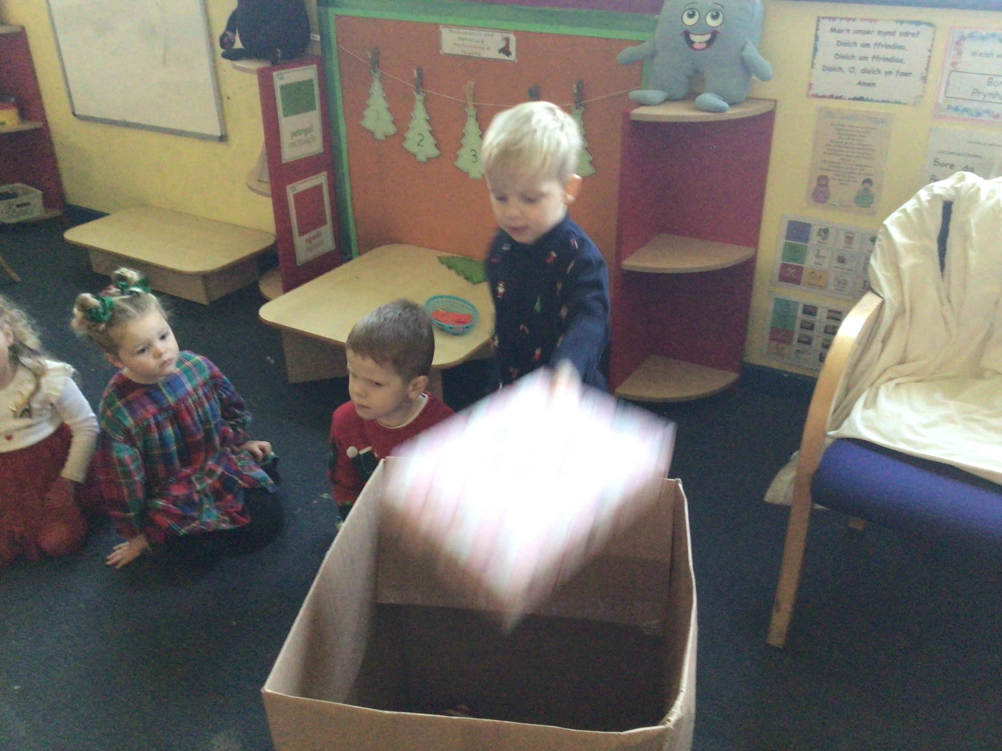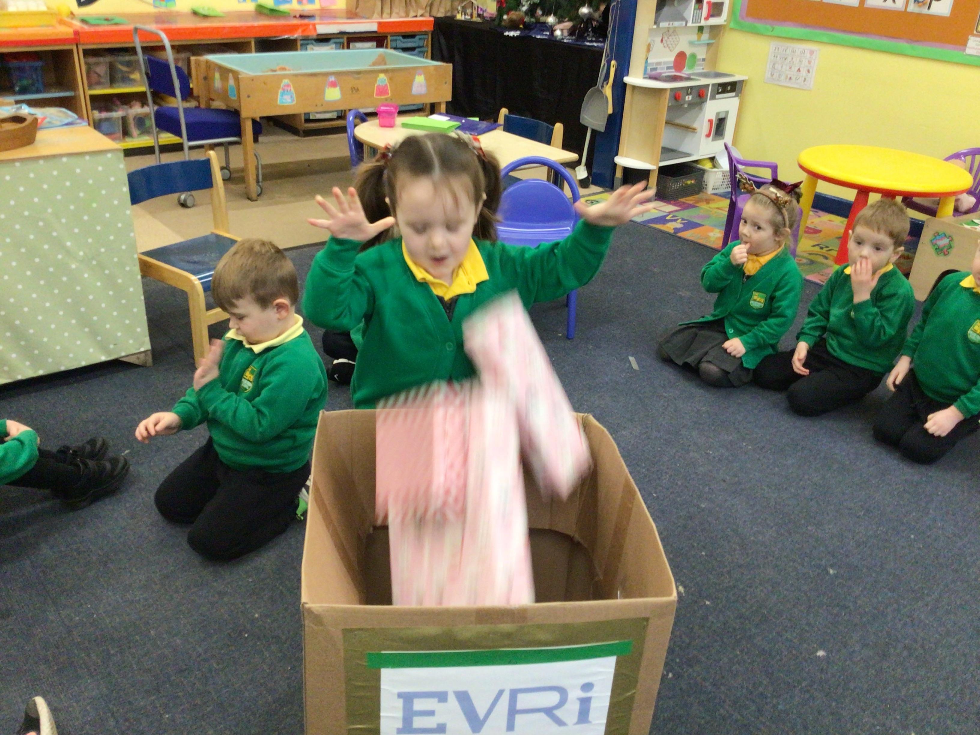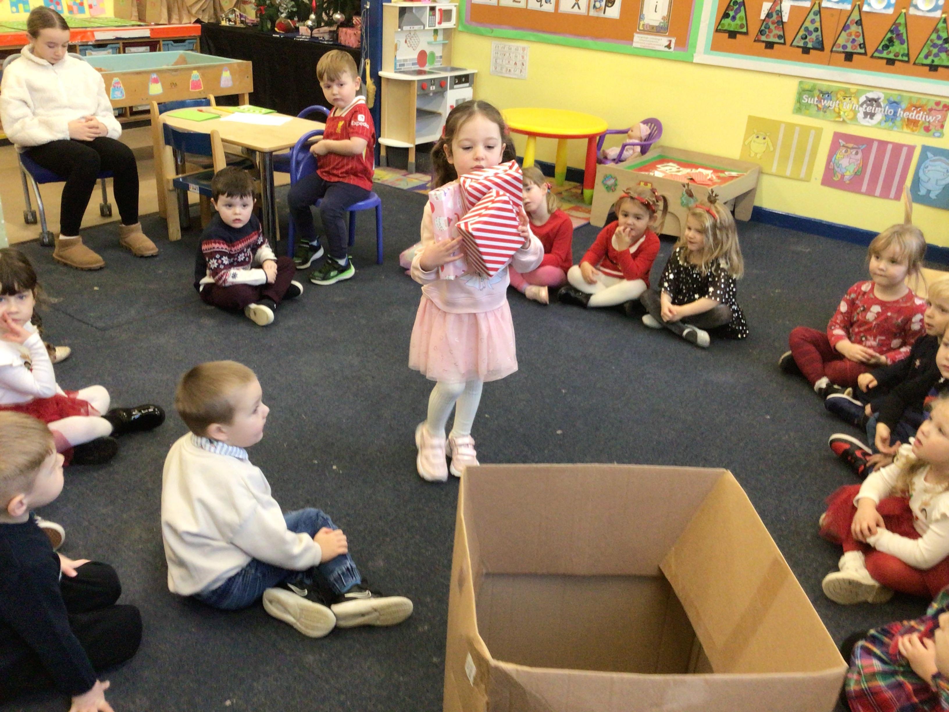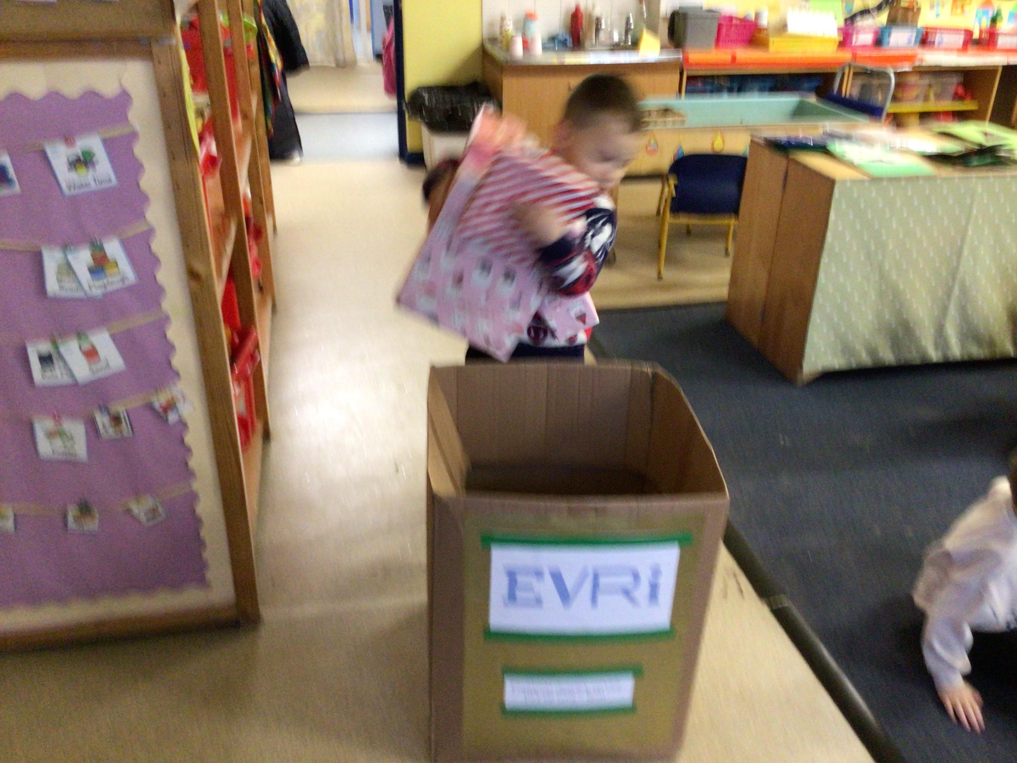 December in Nursery. We have been delivery people to help Father Christmas with the presents.