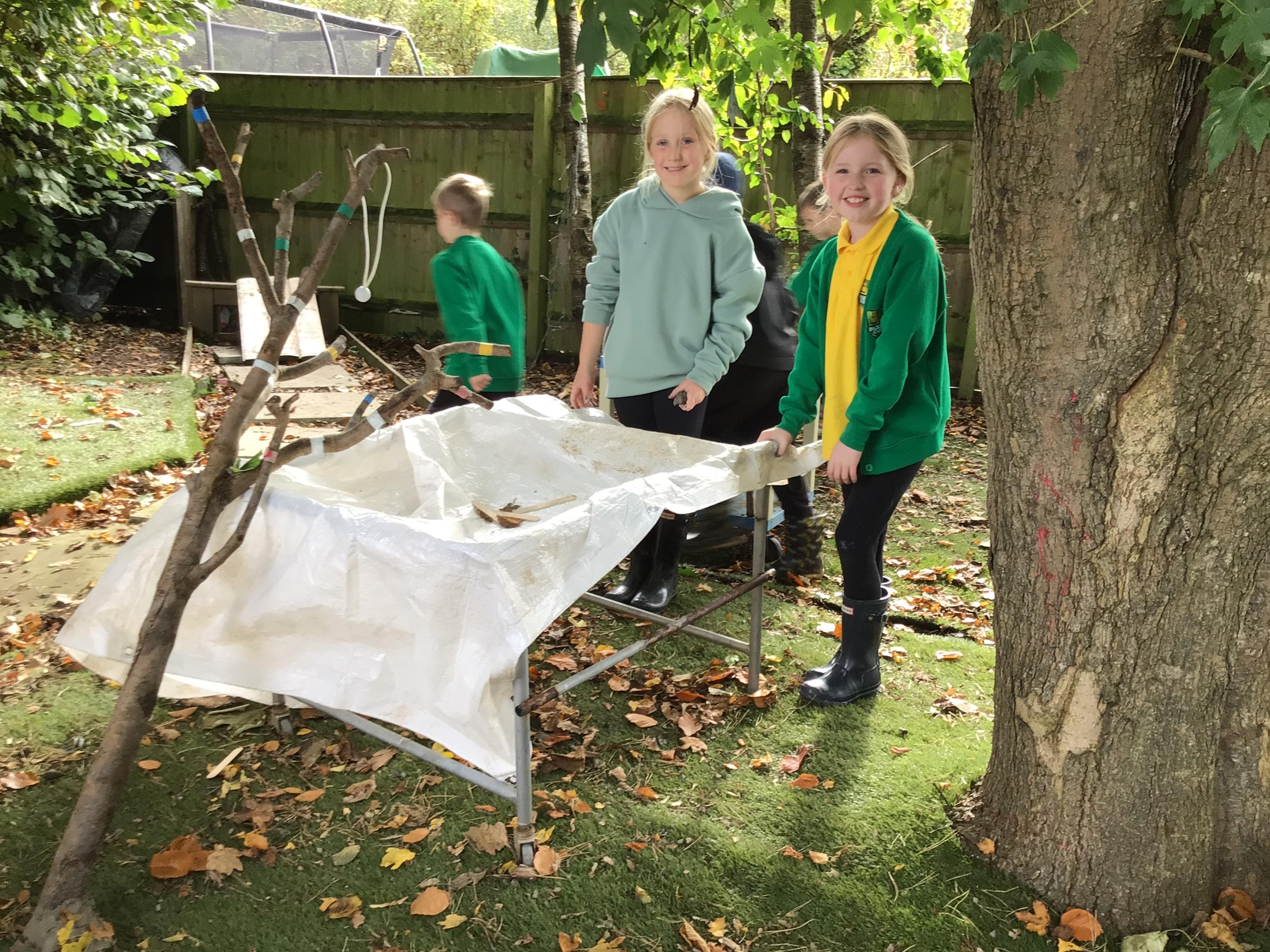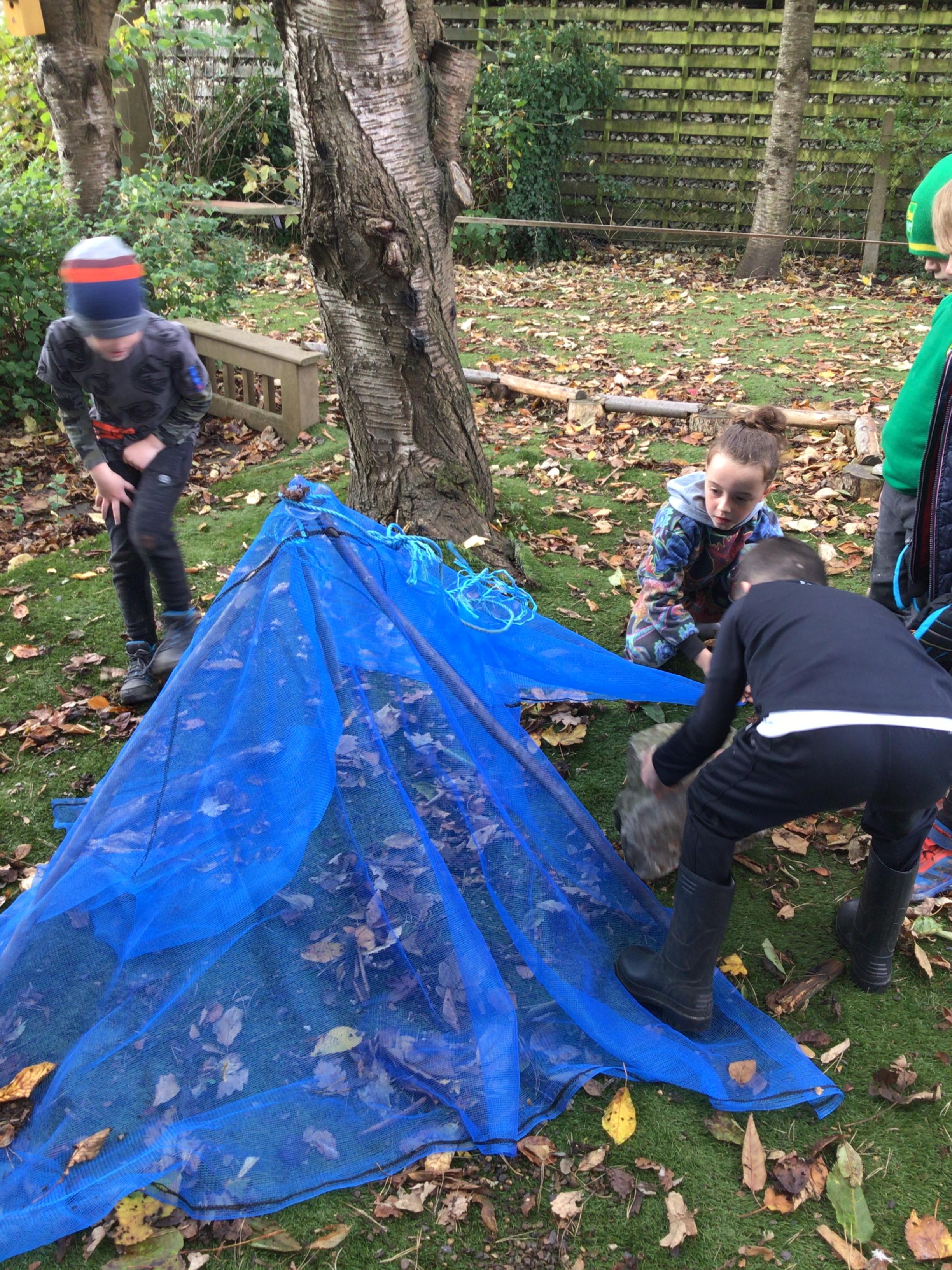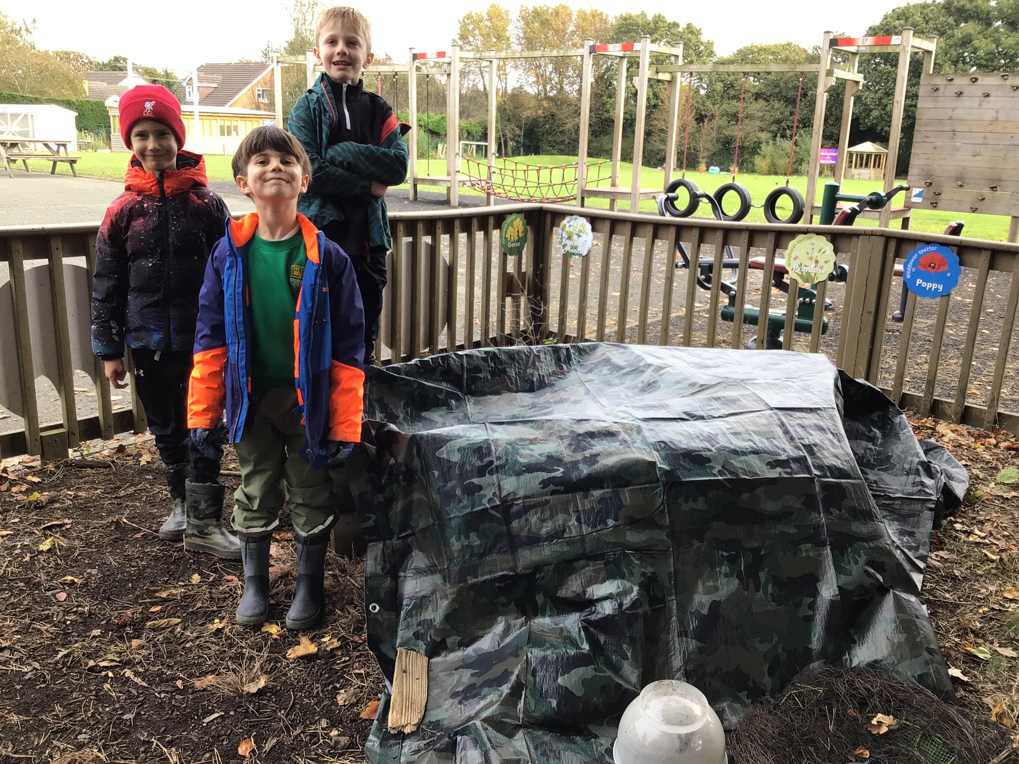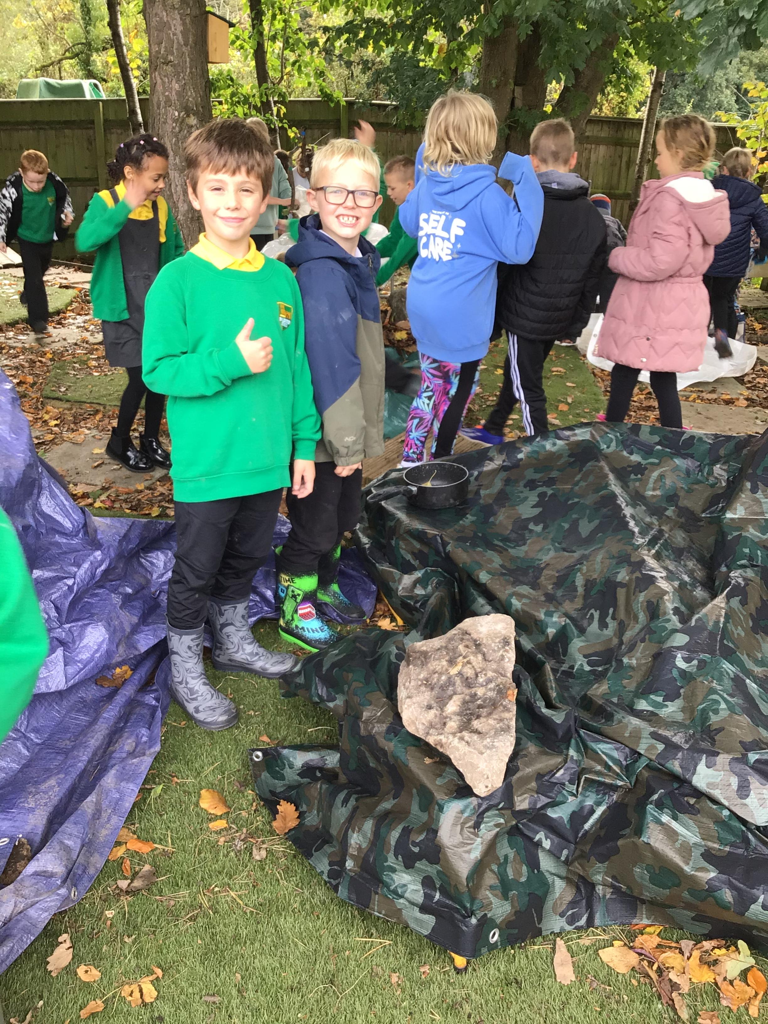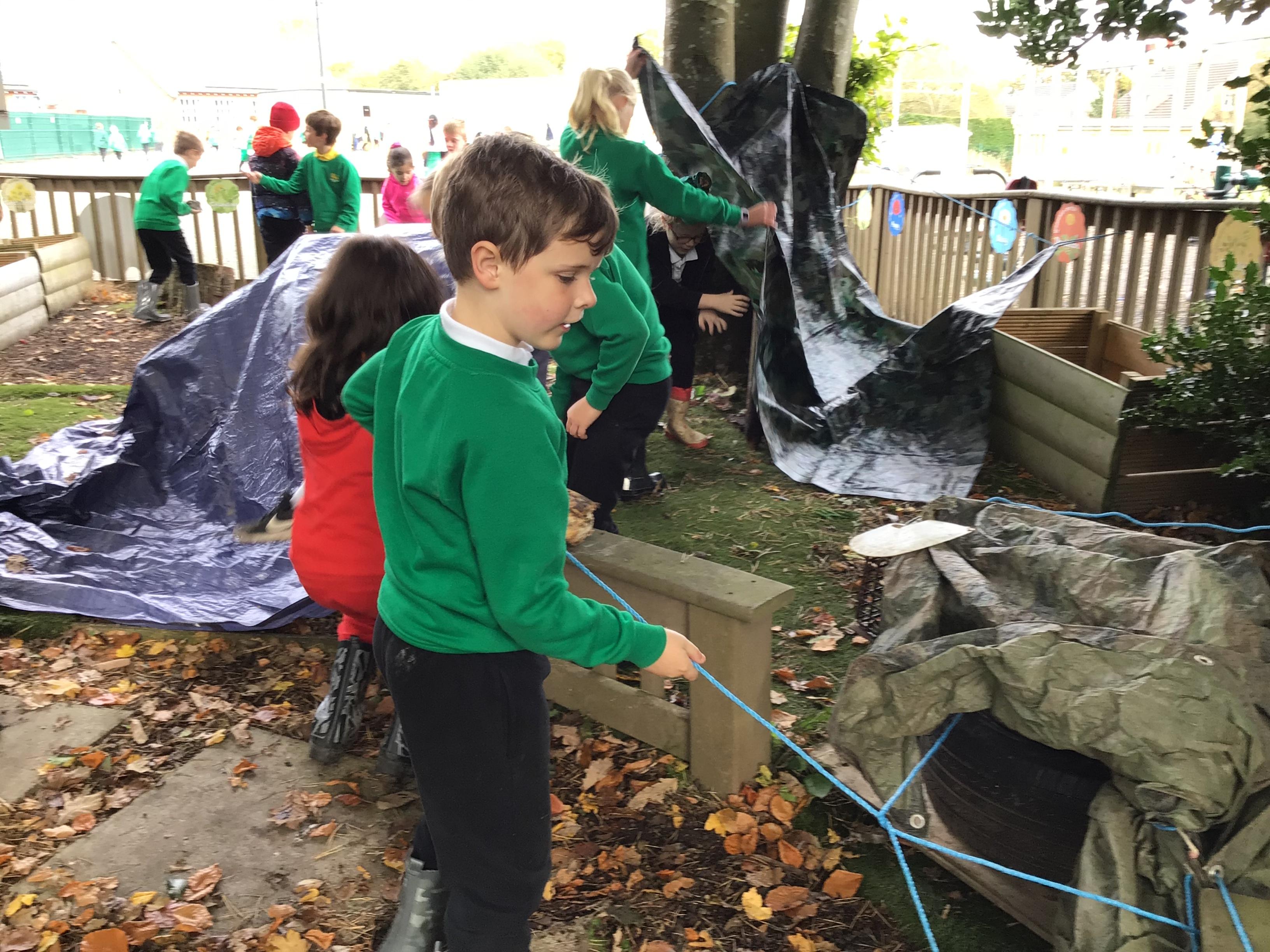 Outdoor learning. We read the Parable 'The Wise Builder and the Foolish Builder'. We then tried to build the strongest house on strong foundations. We then played some team building games.