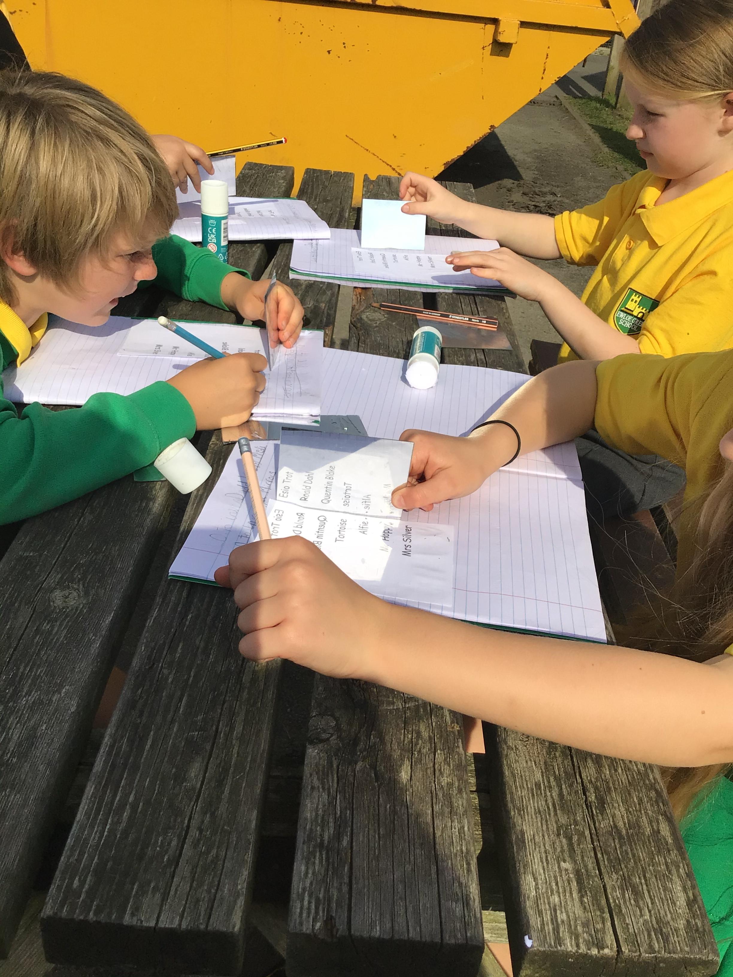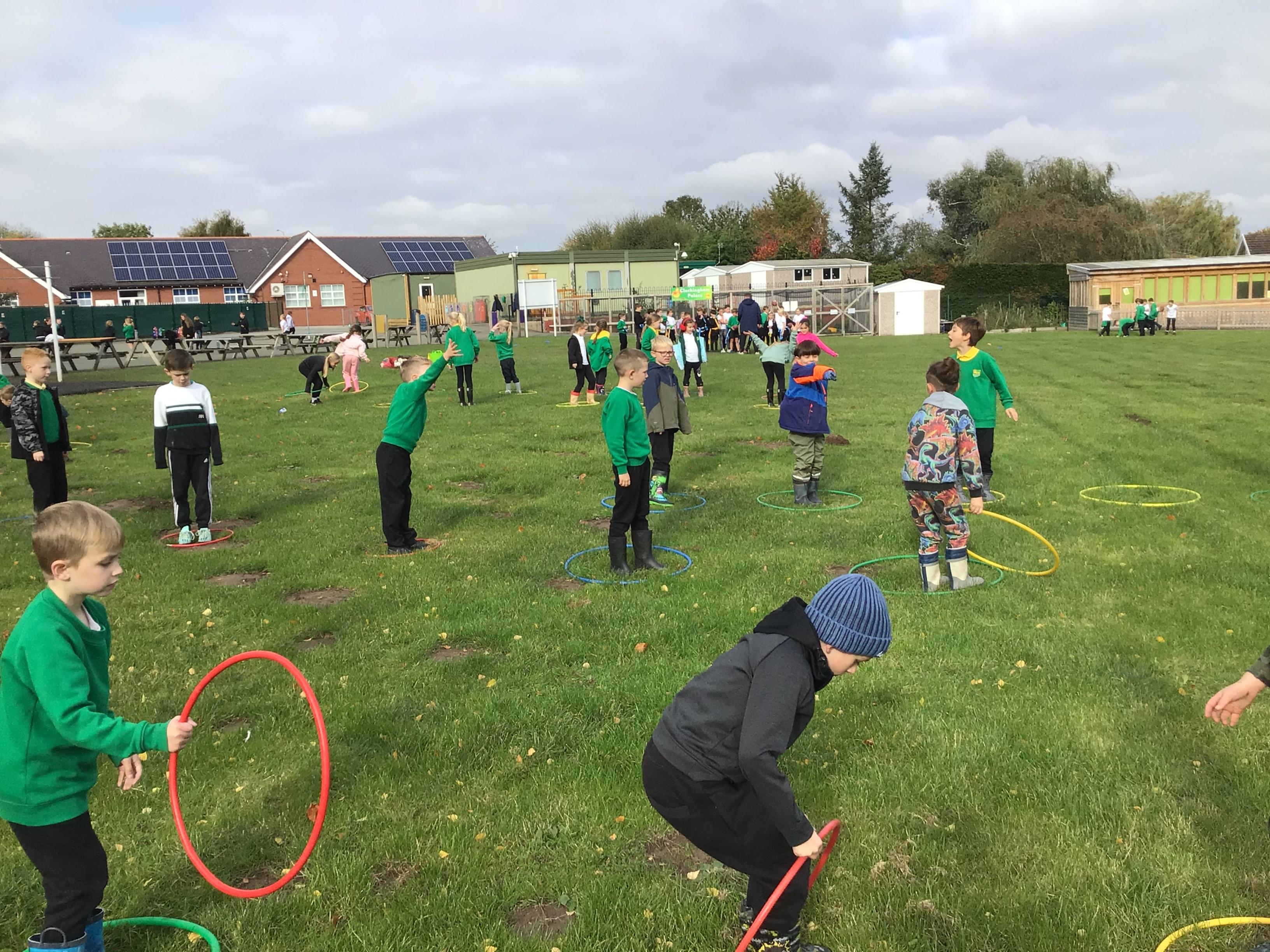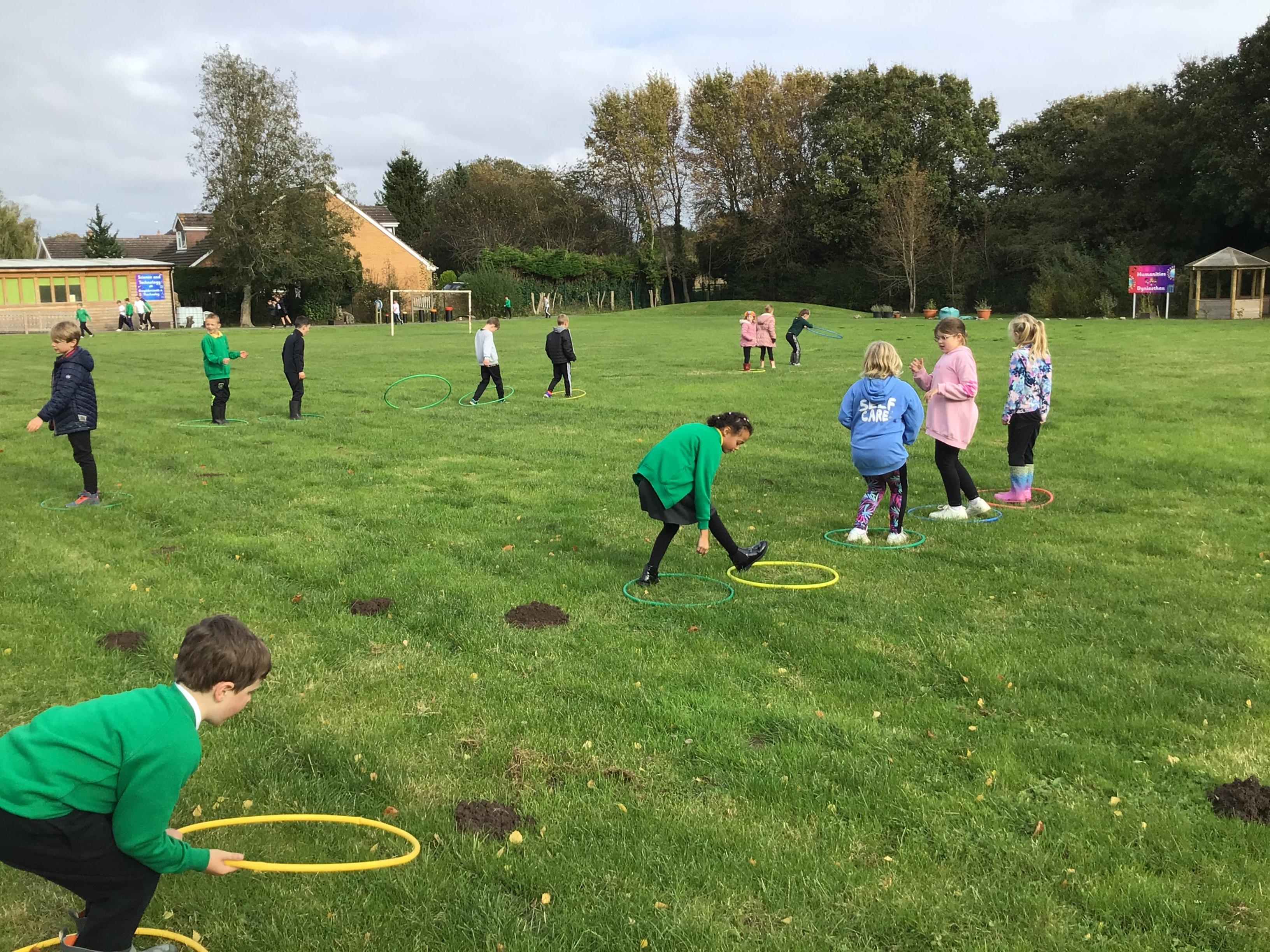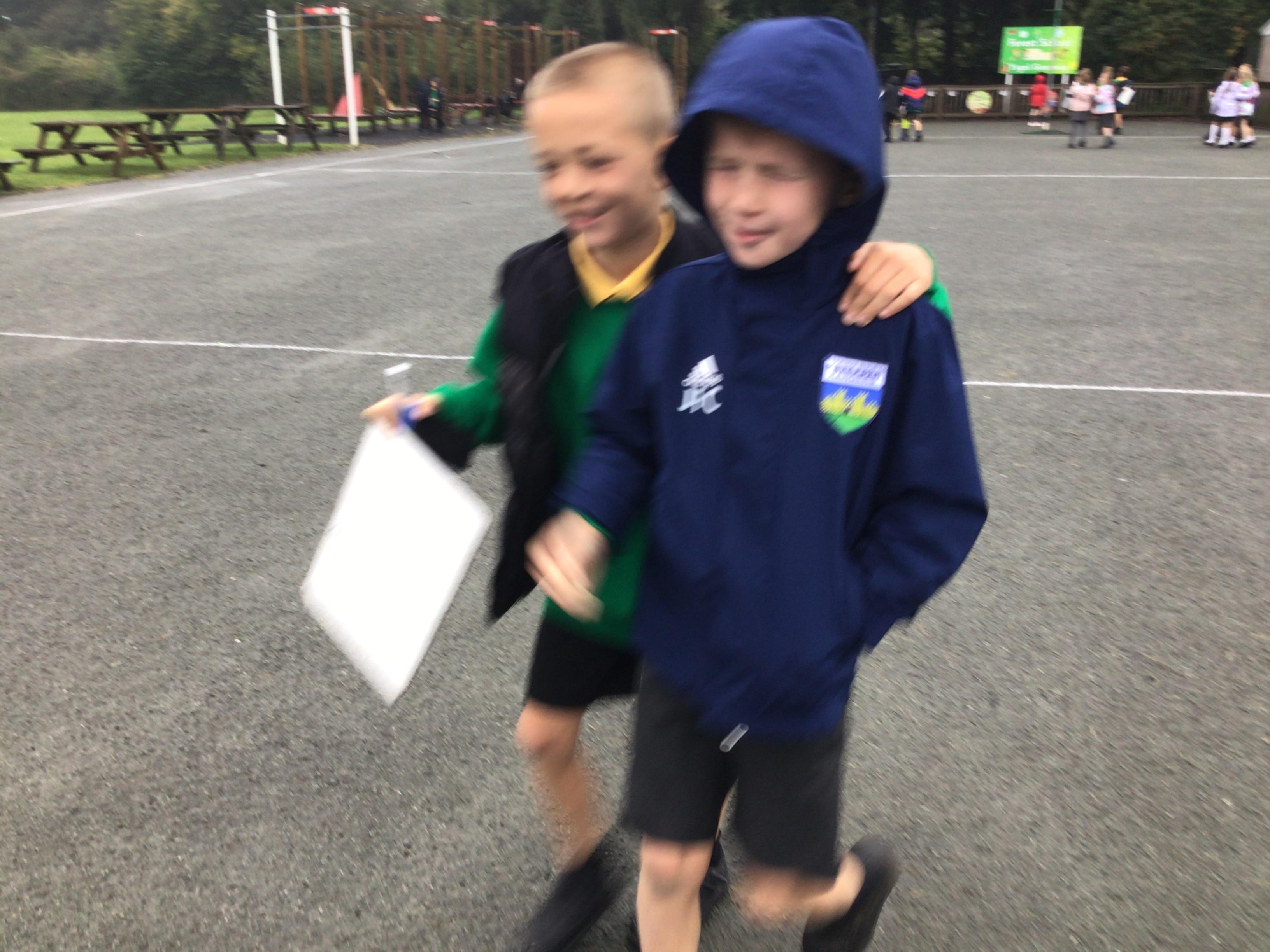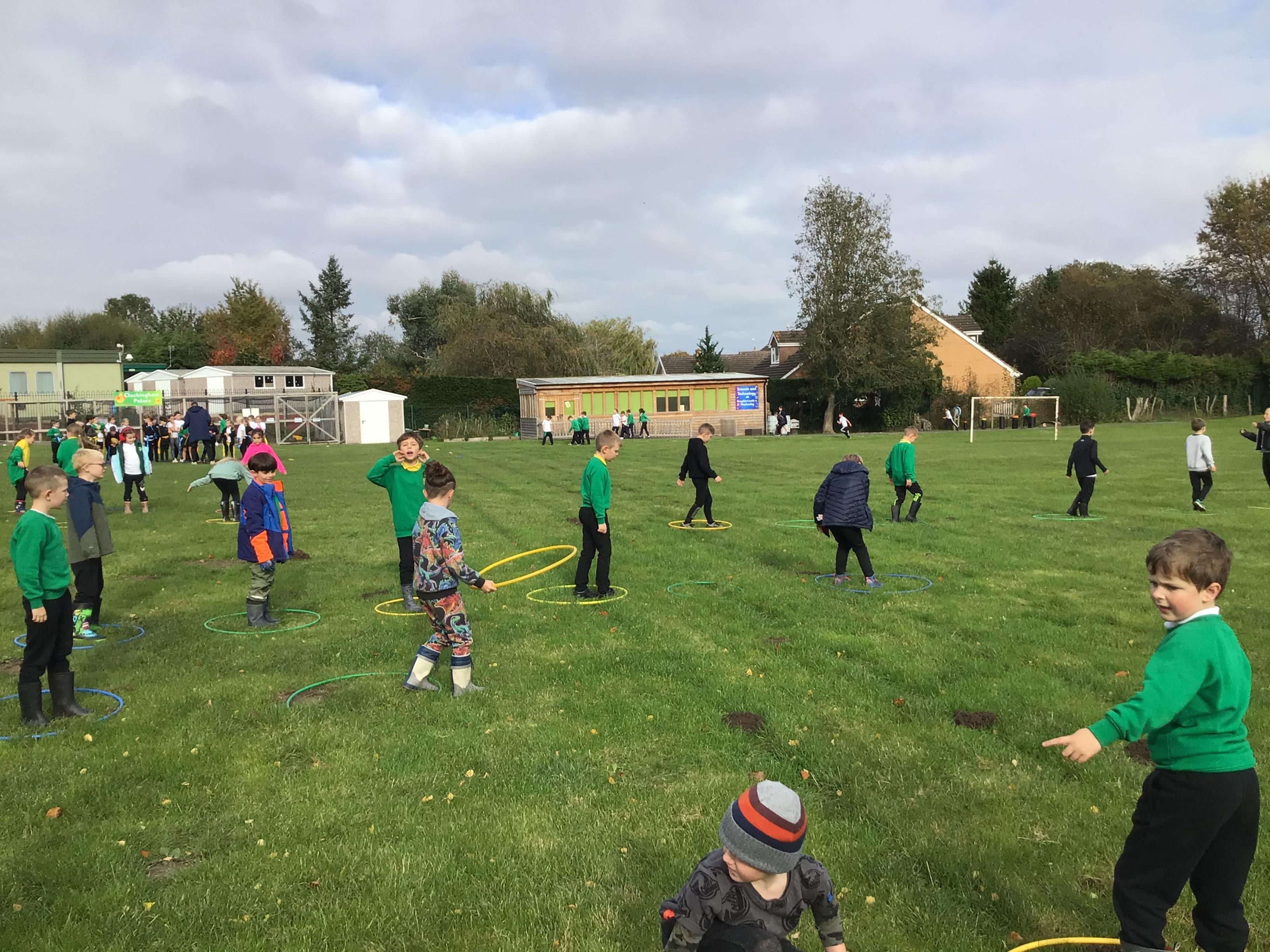 Outdoor learning. We read the Parable 'The Wise Builder and the Foolish Builder'. We then tried to build the strongest house on strong foundations. We then played some team building games.