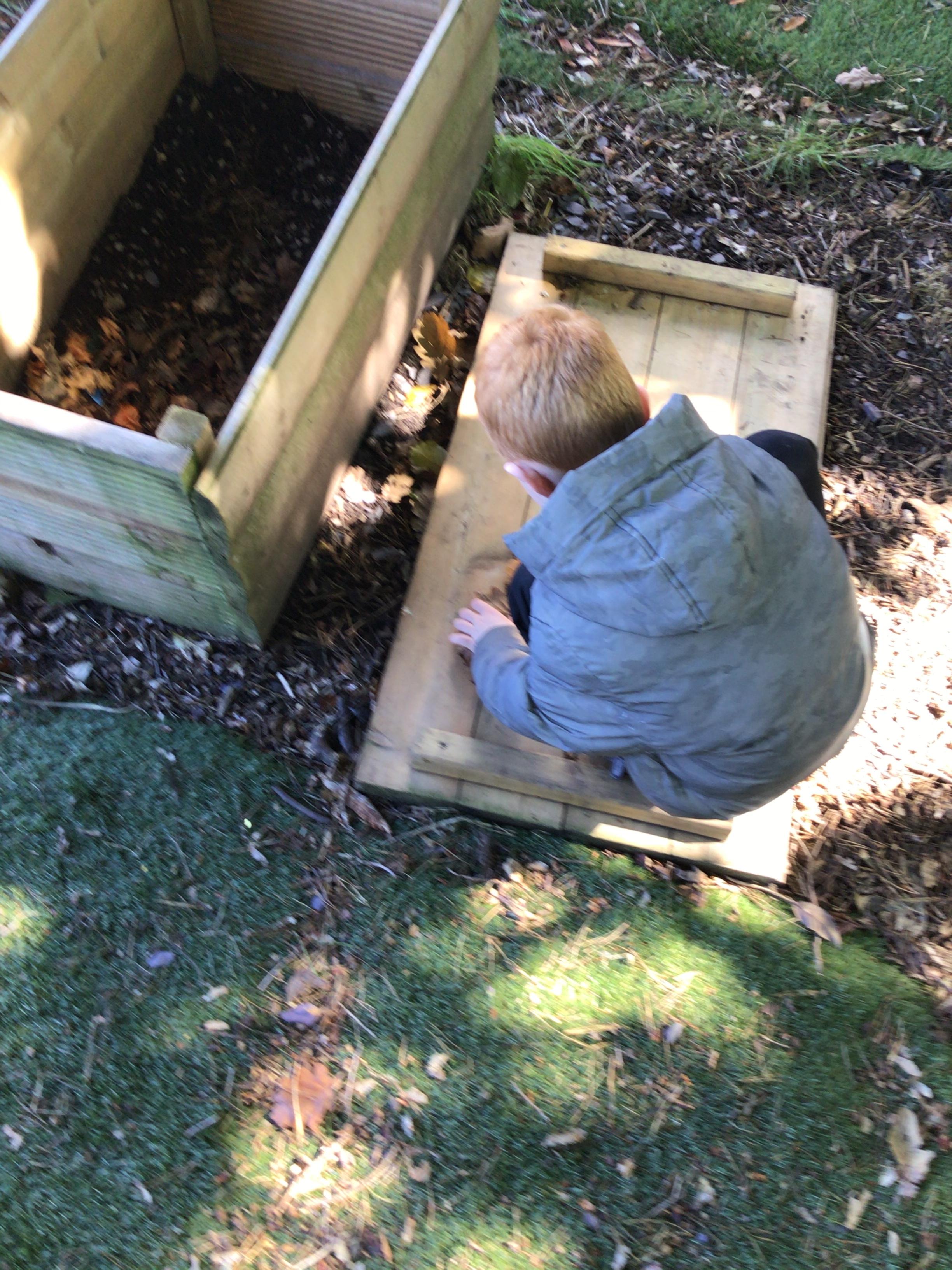 We have been reading the story 'The Owl who was Afraid of the Dark'. We went outside to make Plop the baby owl.