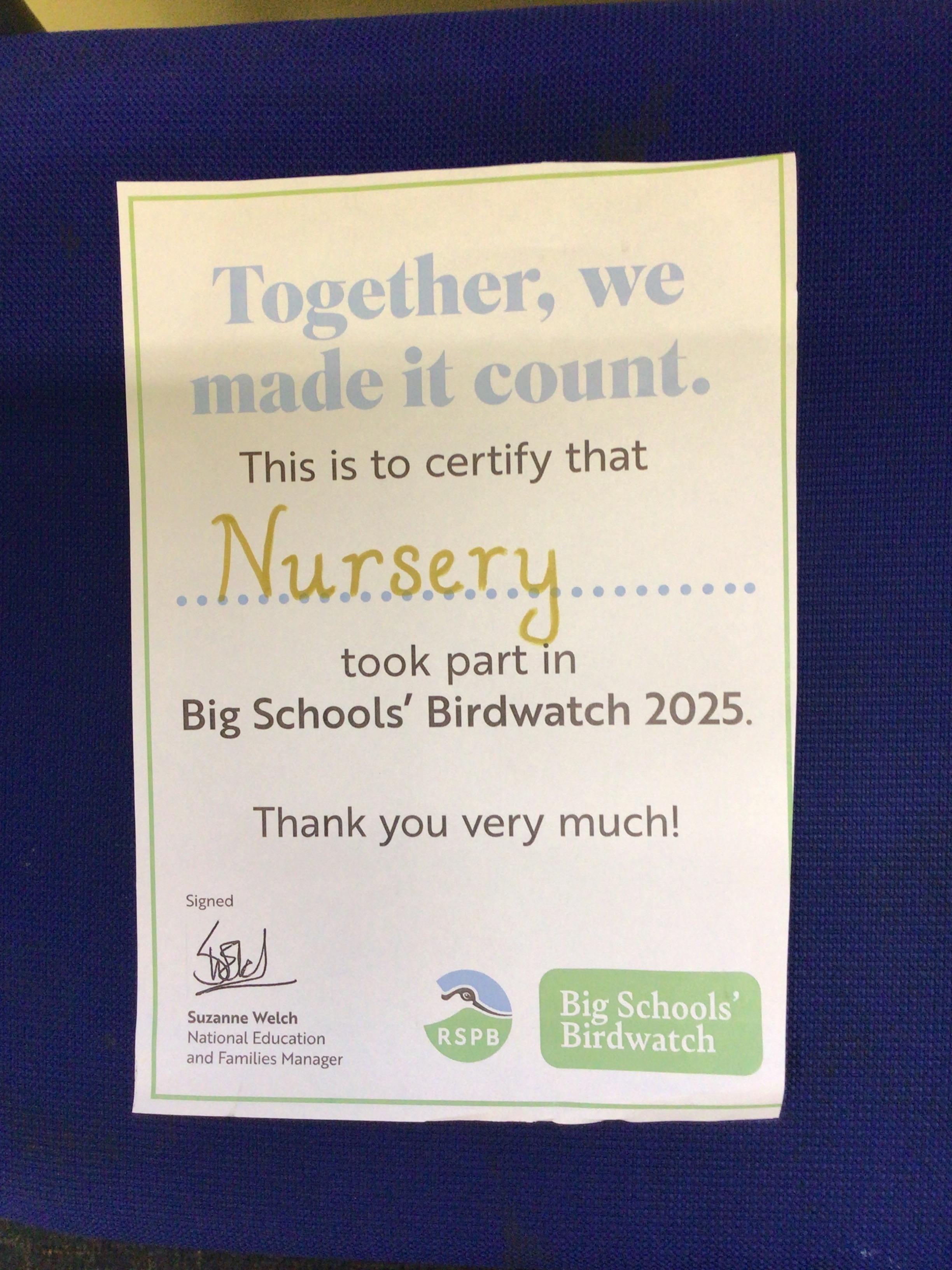 Nursery have been bird watching.As we have signed up for the Big Schools BirdWatch (RSPB).