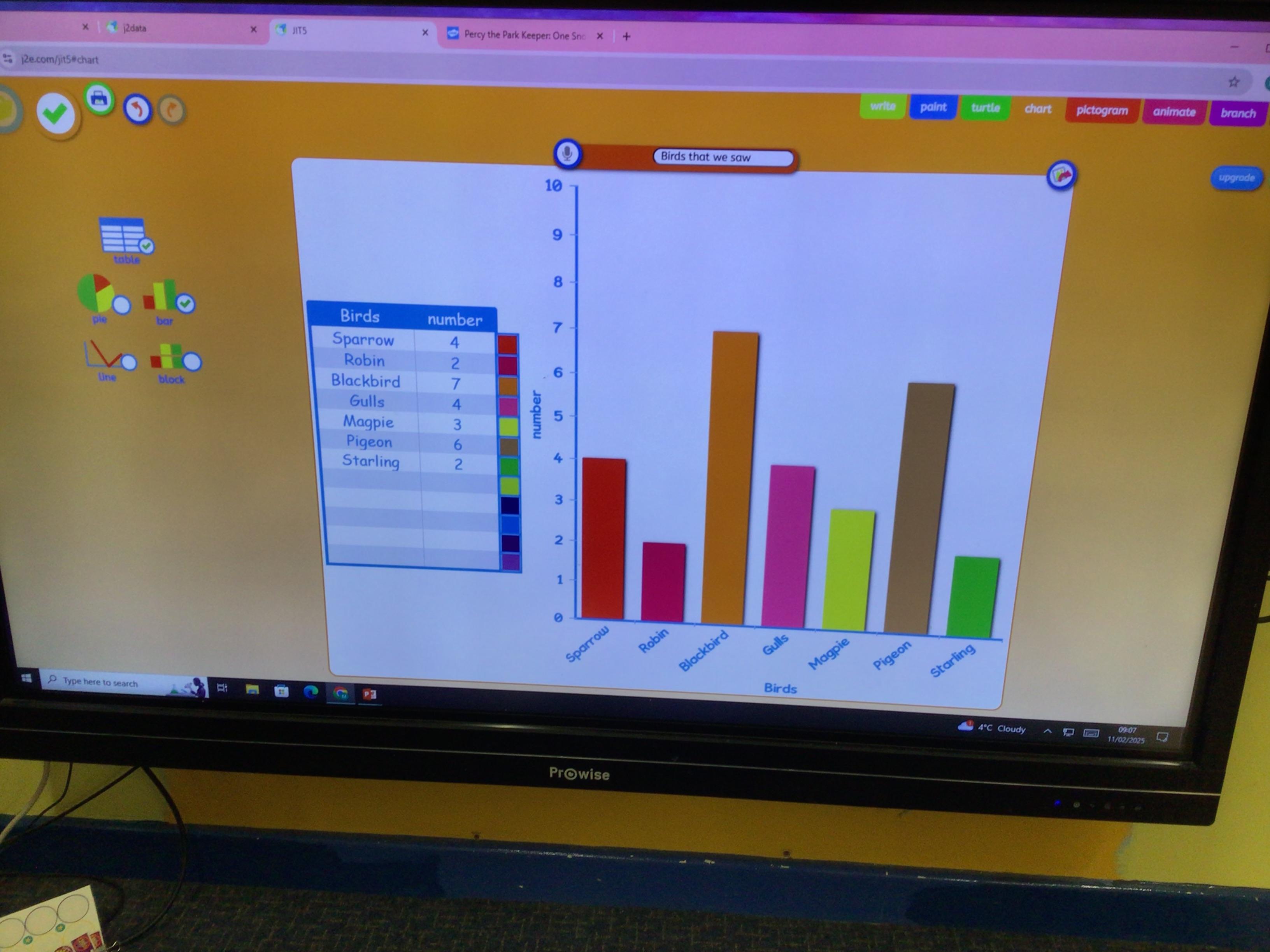 The children have been using HWB this week to make a bar chart to show our birdwatching finding