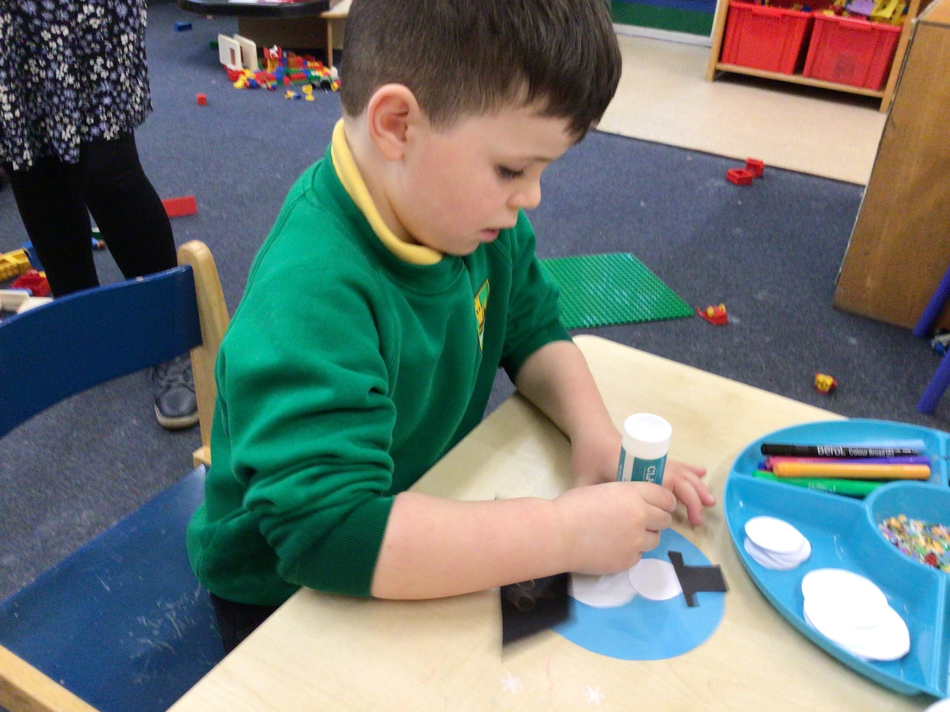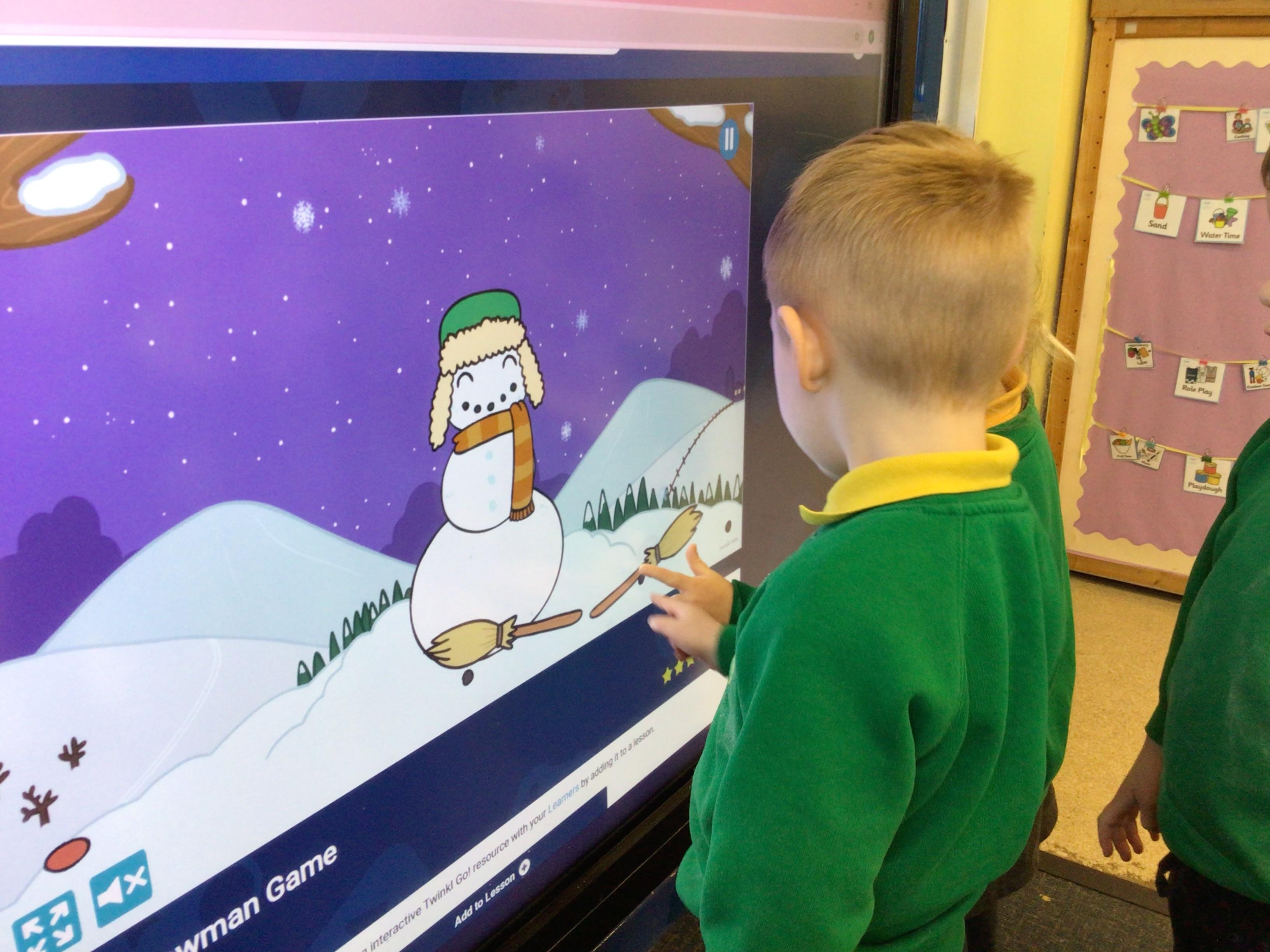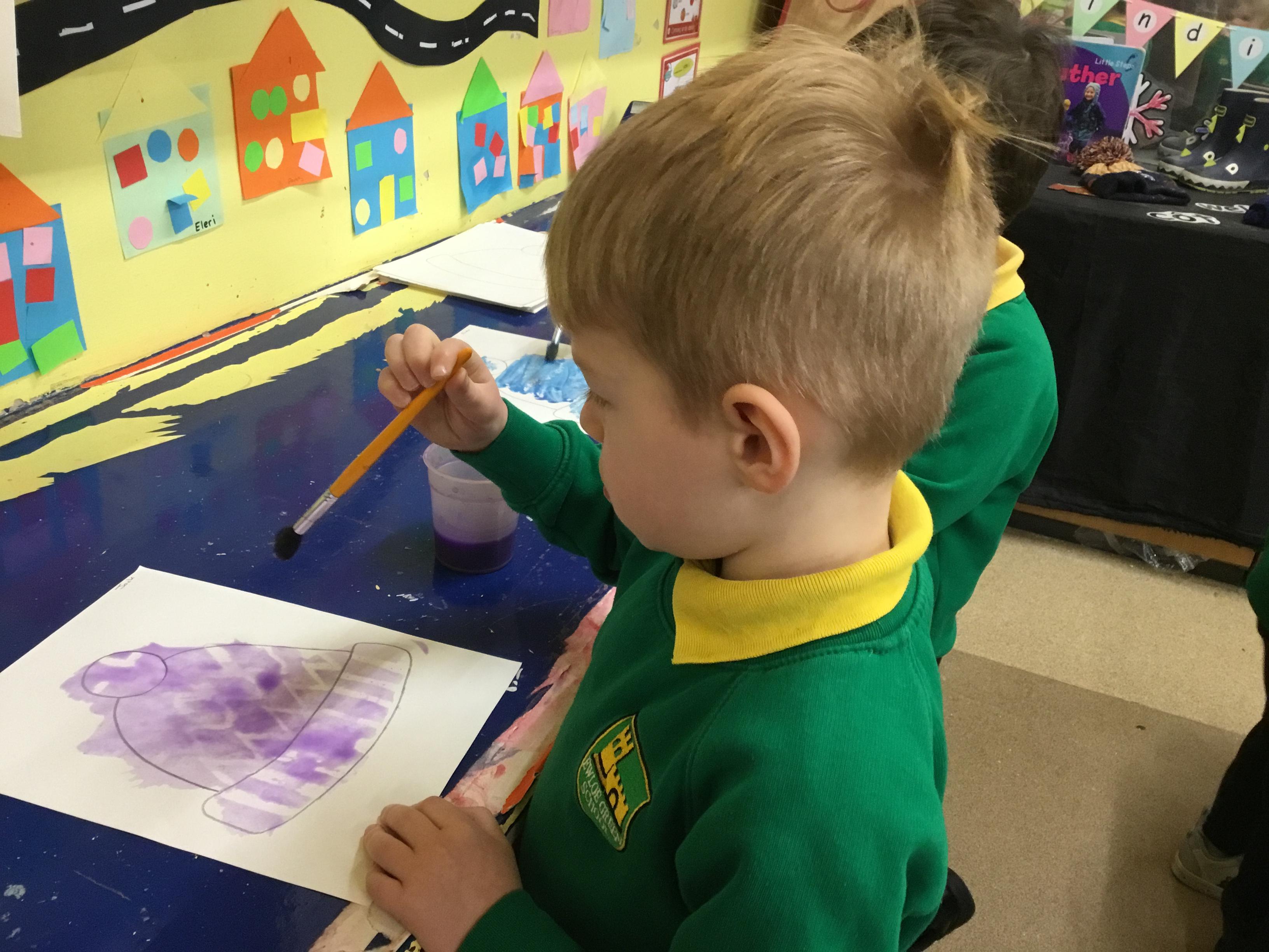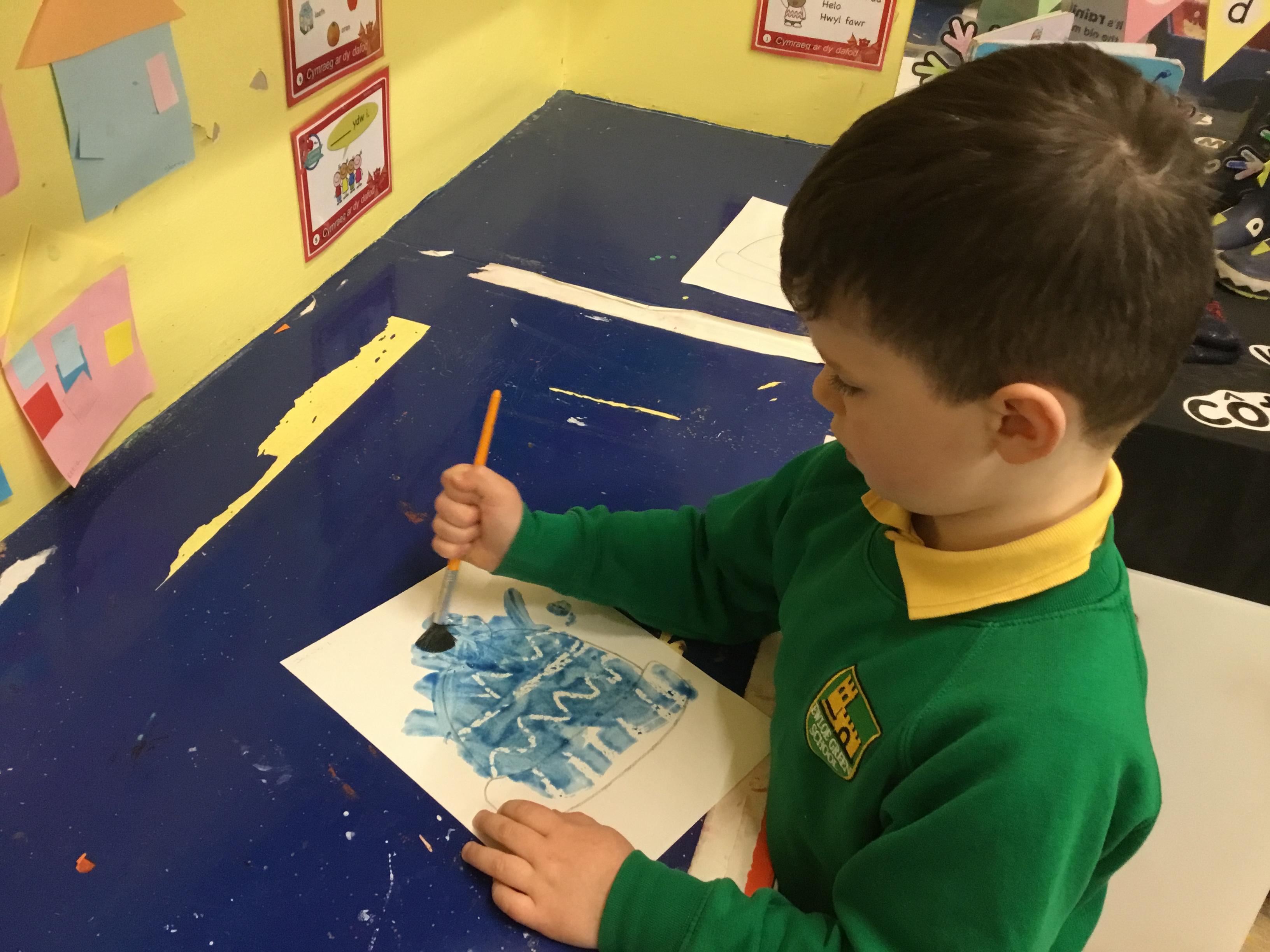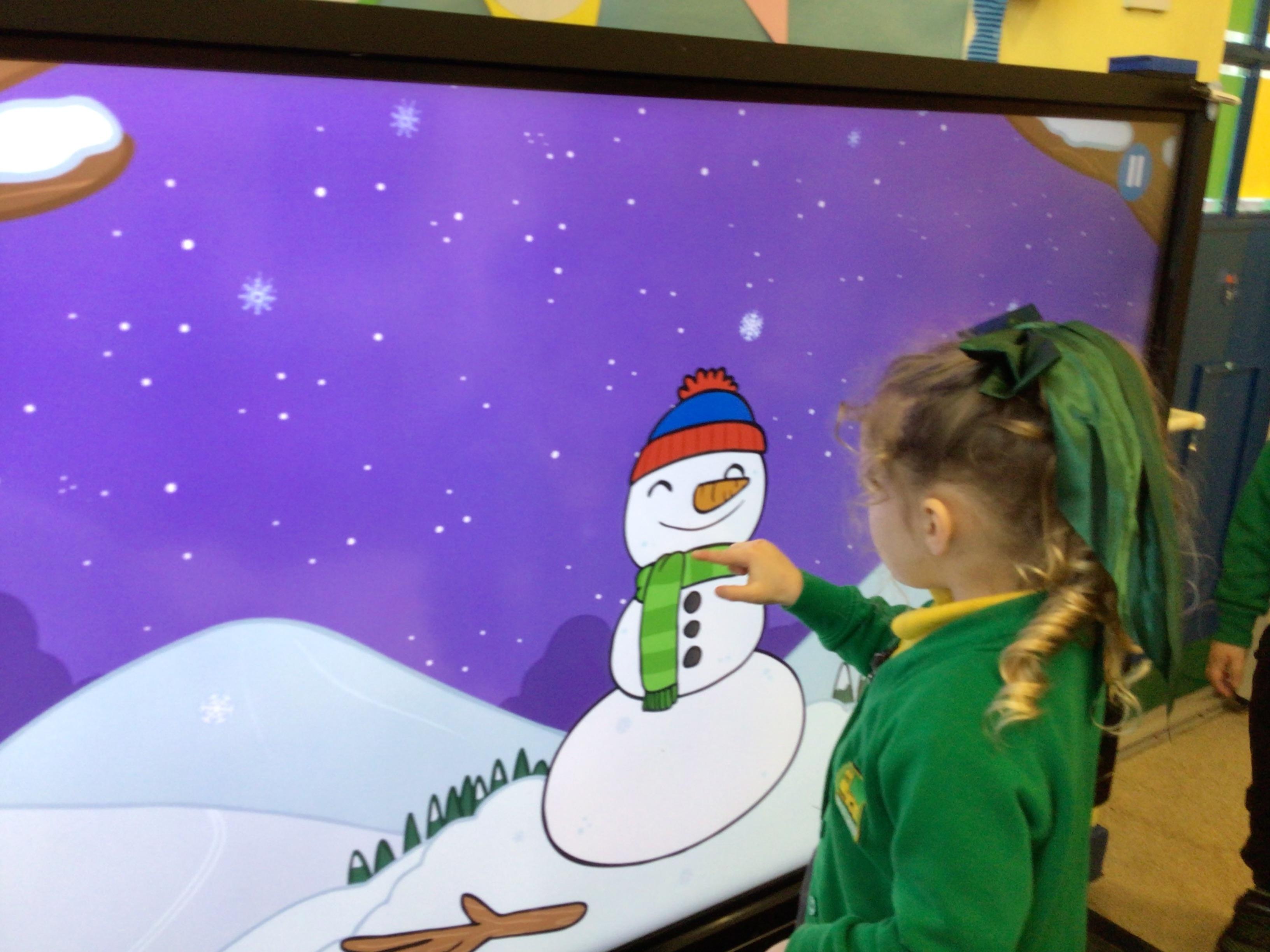 Week 4 27th-31st January We have been thinking about what birds eat and how to look after the birds in Winter. We have been rescuing aniamls from the ice. Nursery have been using their ICT skills to build a snowman. We have made Robins this week Robin goch.