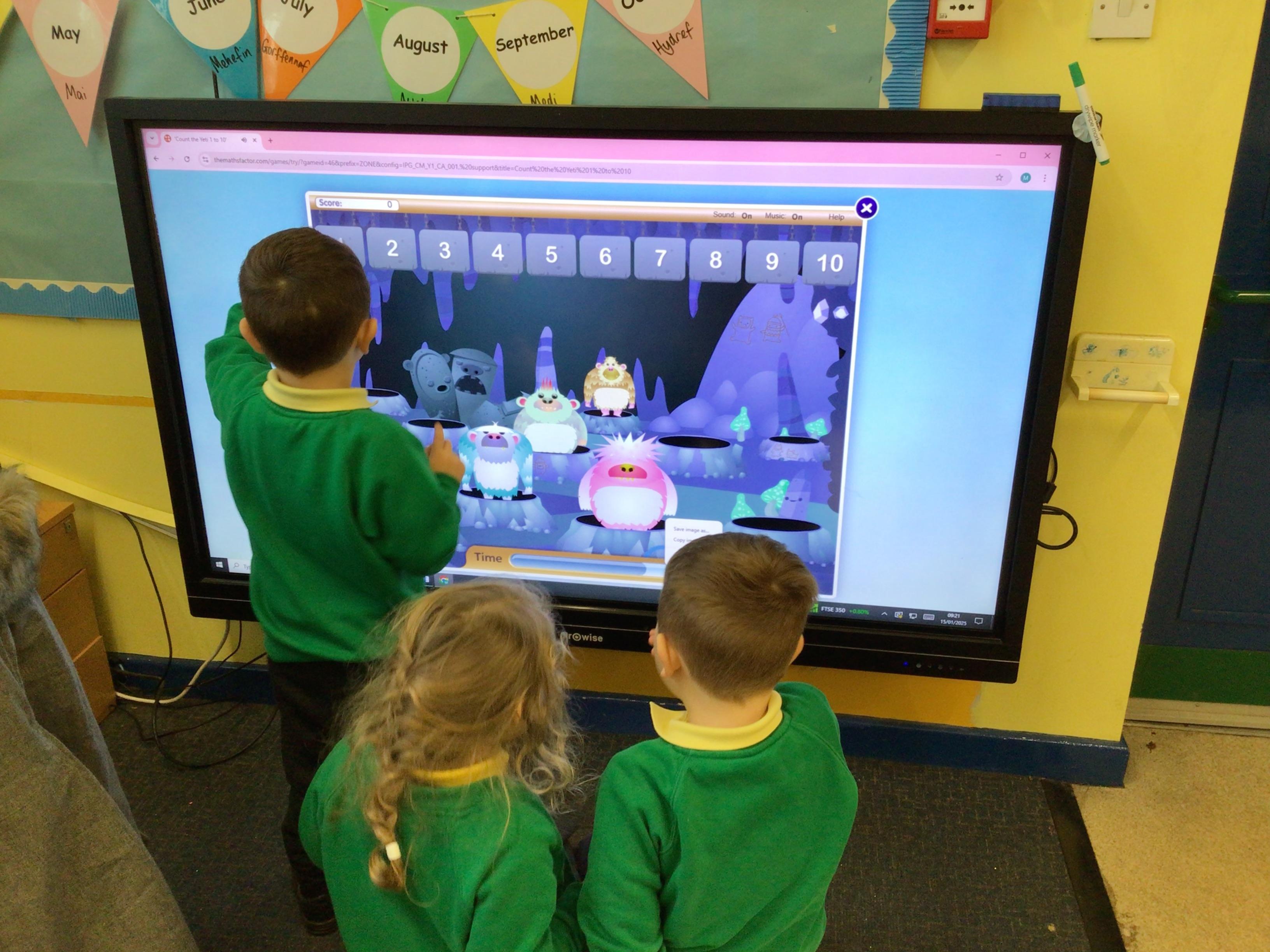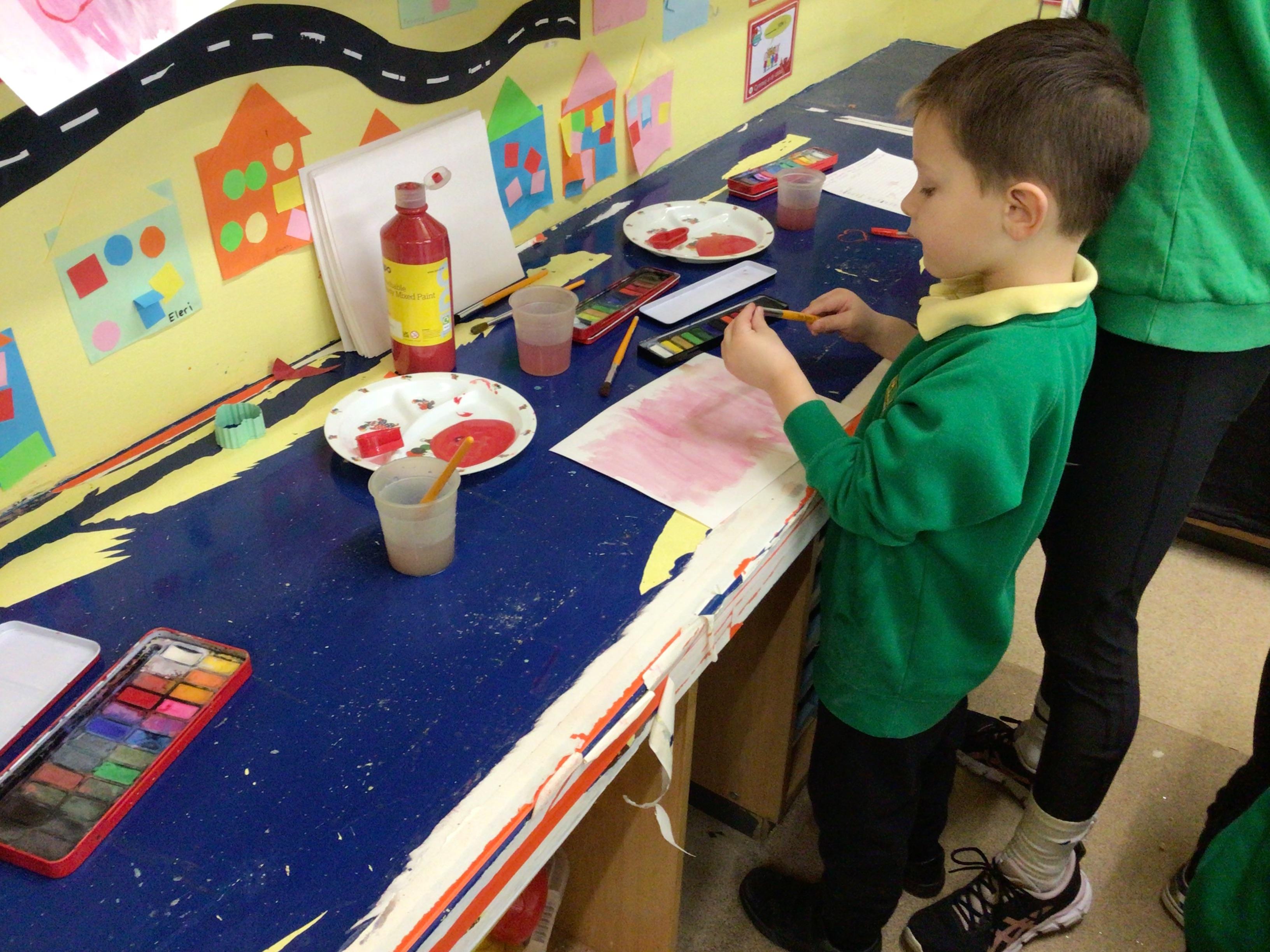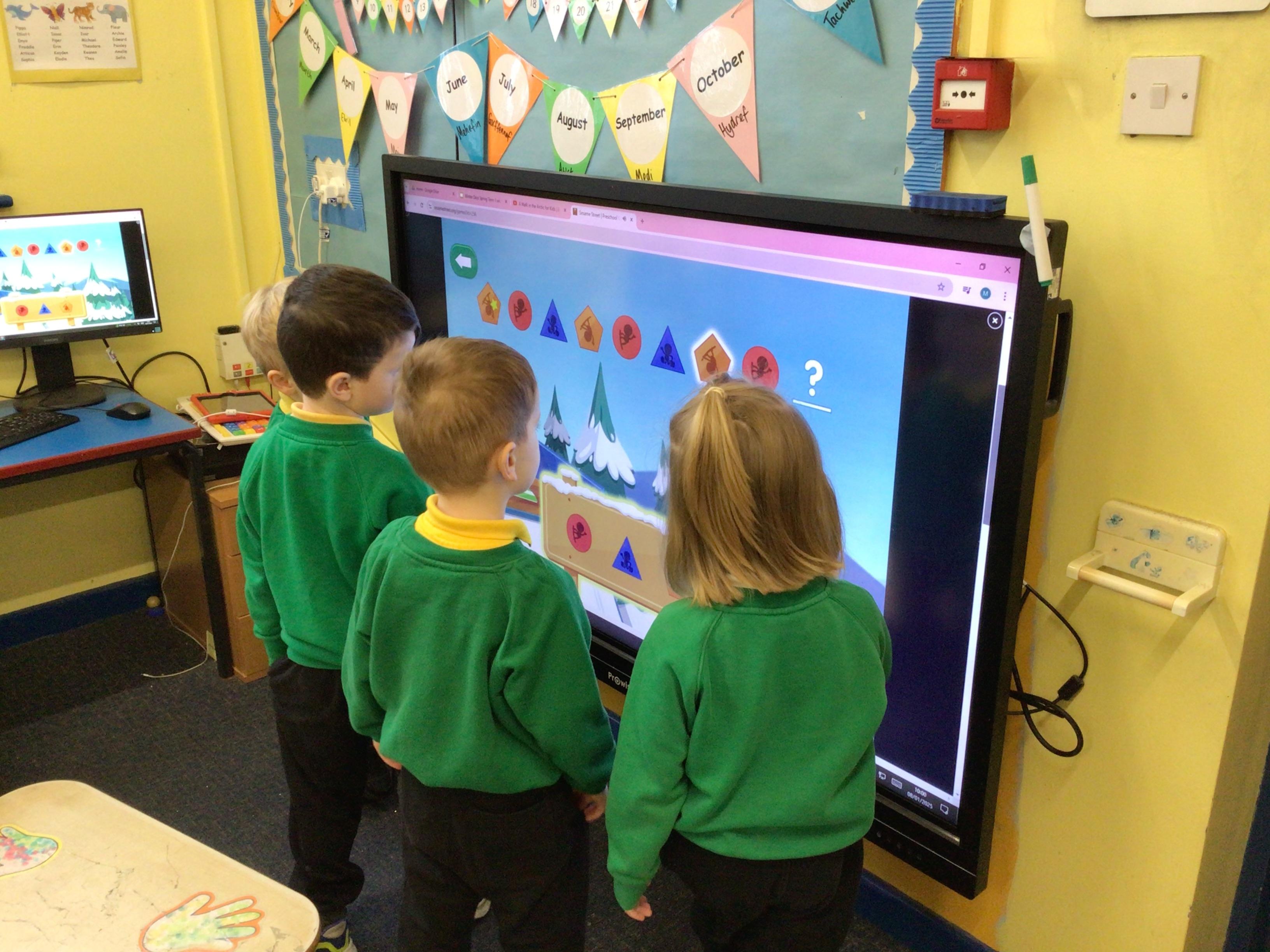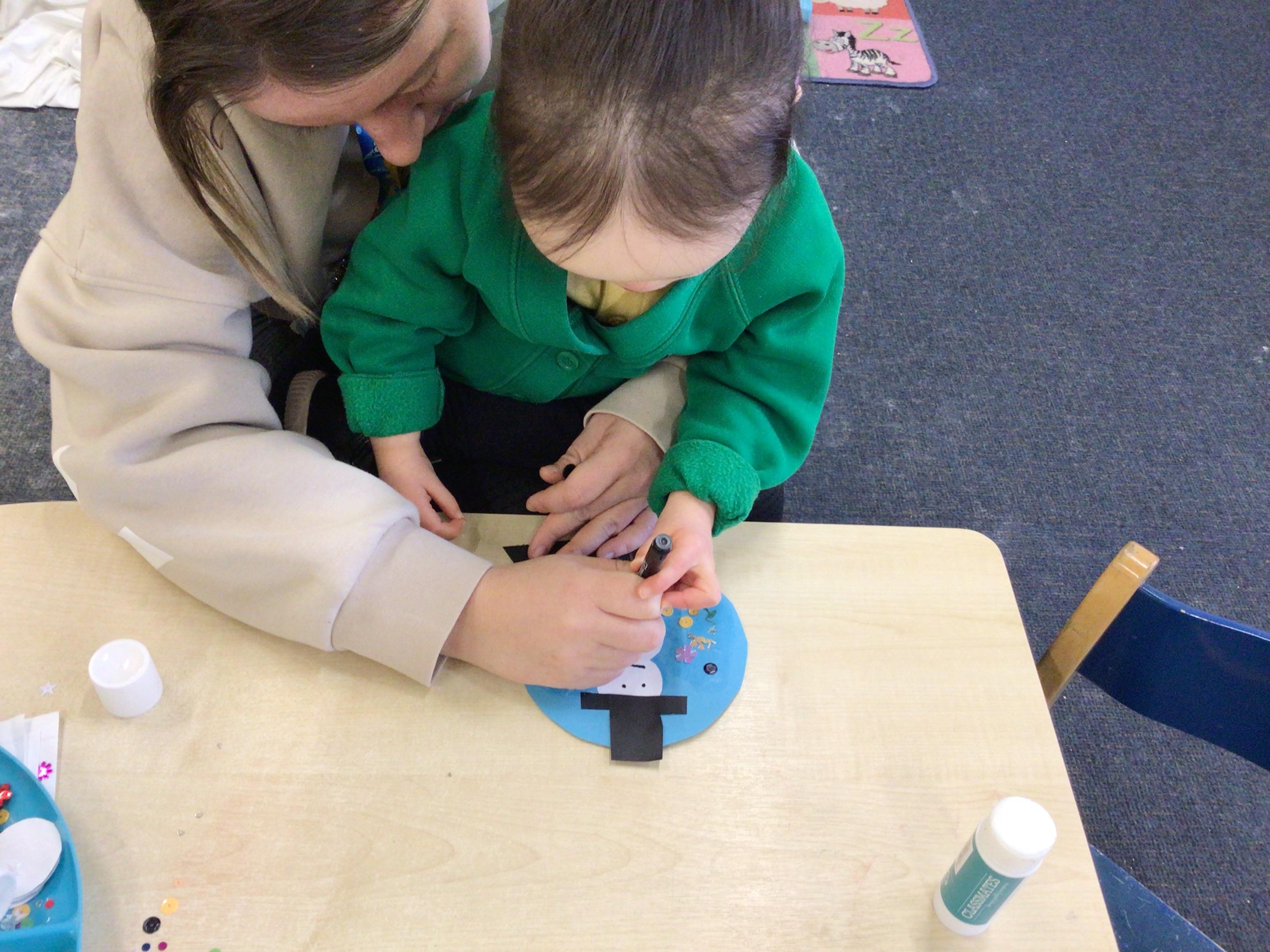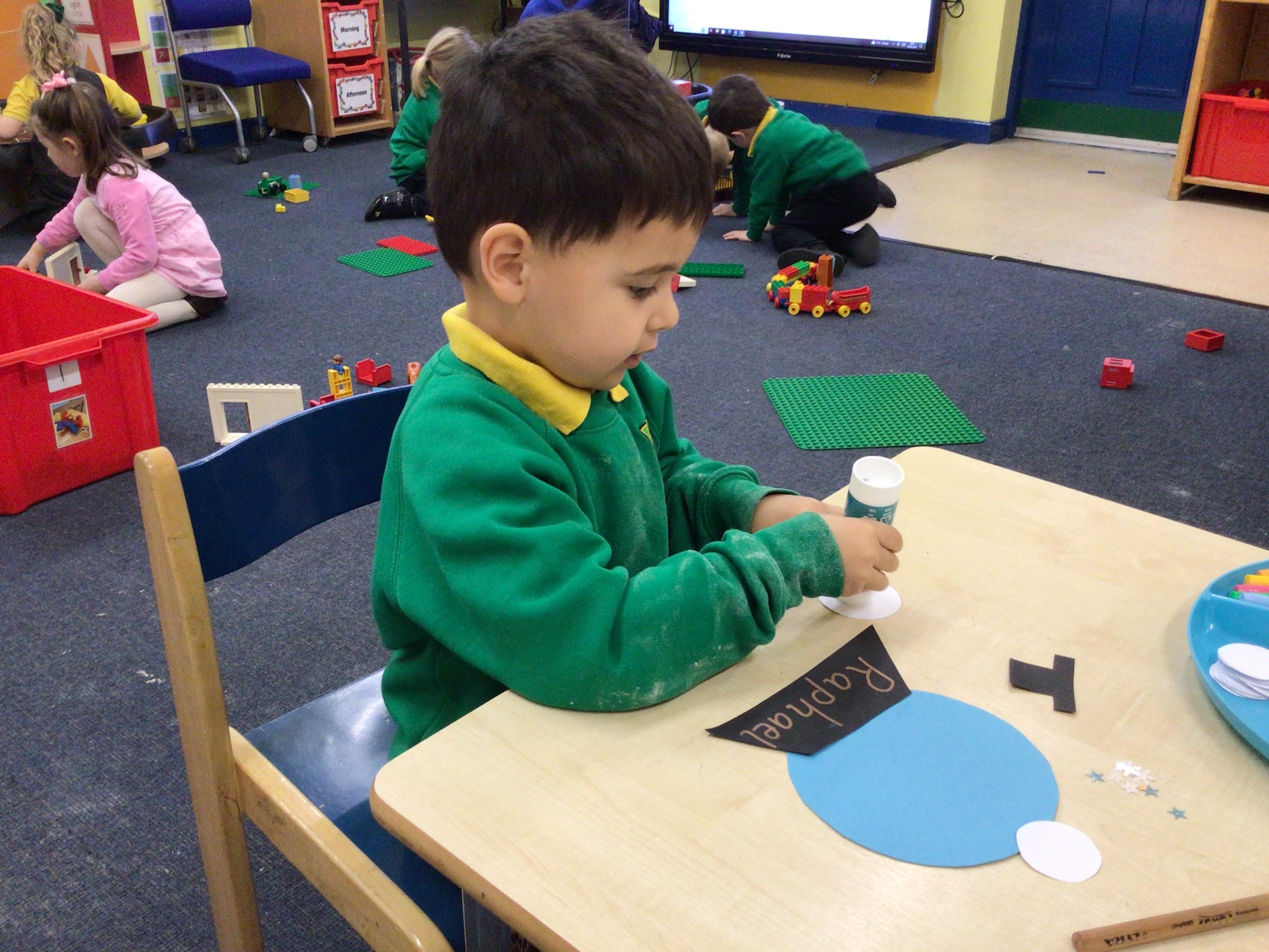 Week 4 27th-31st January We have been thinking about what birds eat and how to look after the birds in Winter. We have been rescuing aniamls from the ice. Nursery have been using their ICT skills to build a snowman. We have made Robins this week Robin goch.