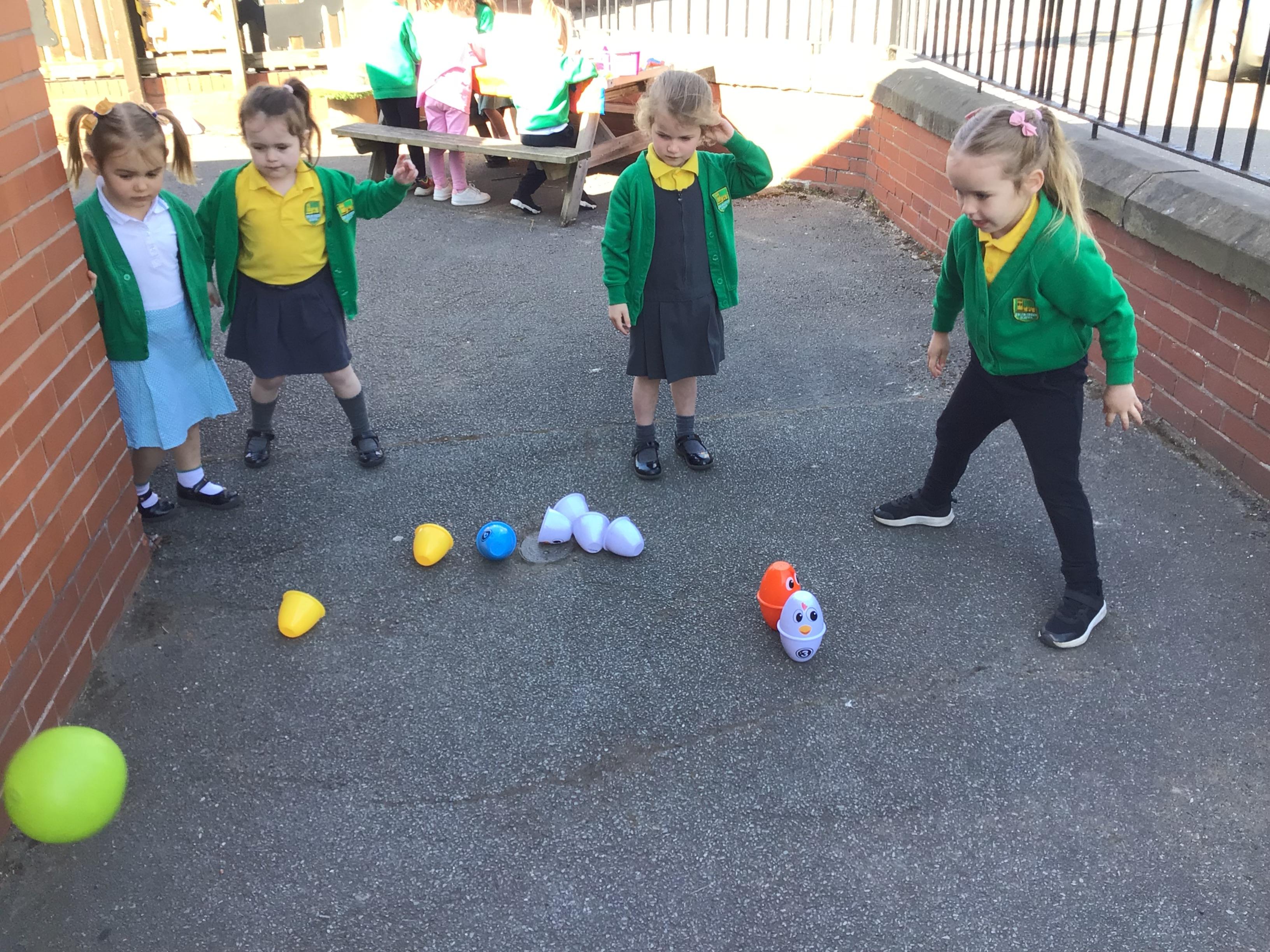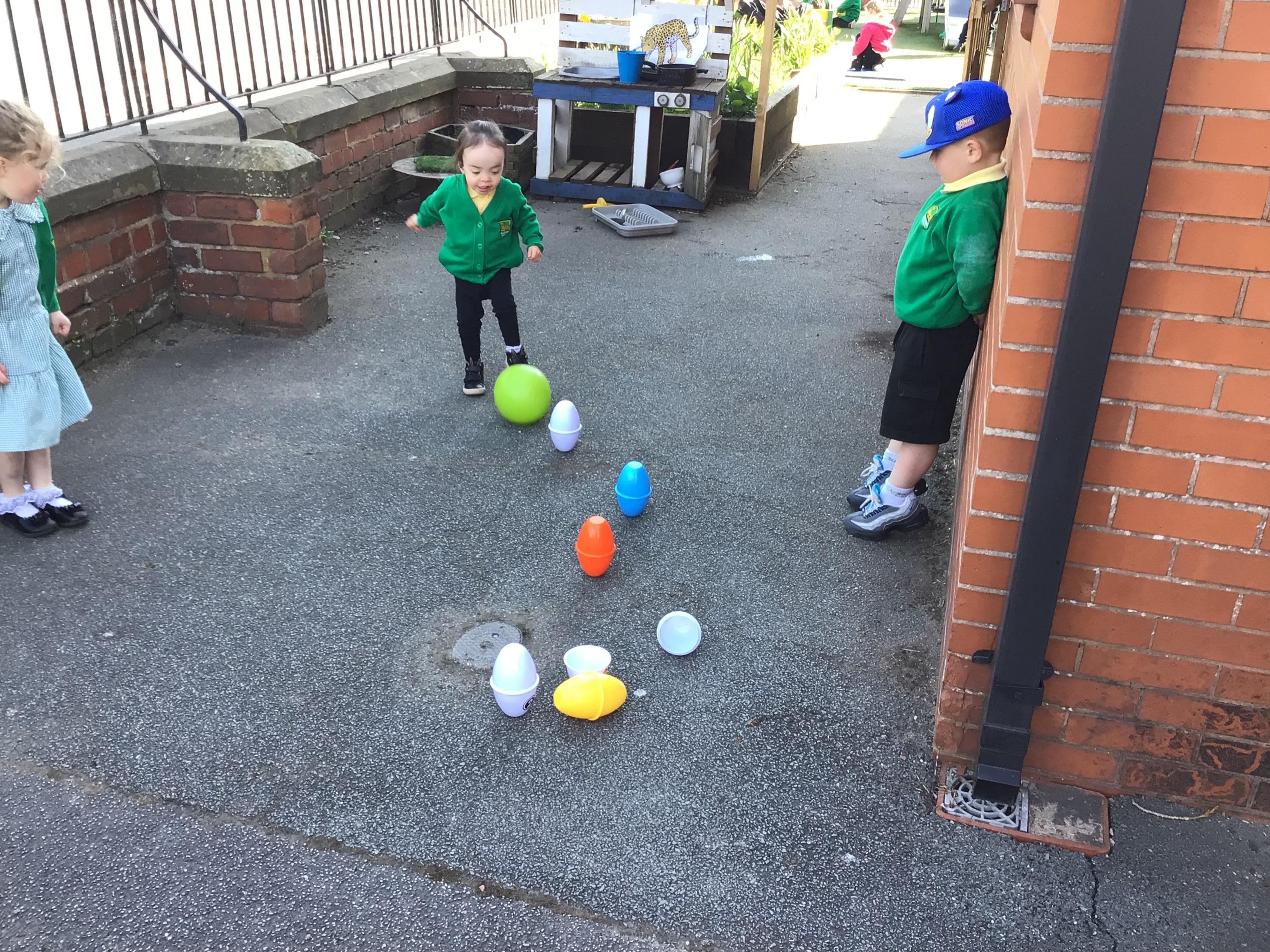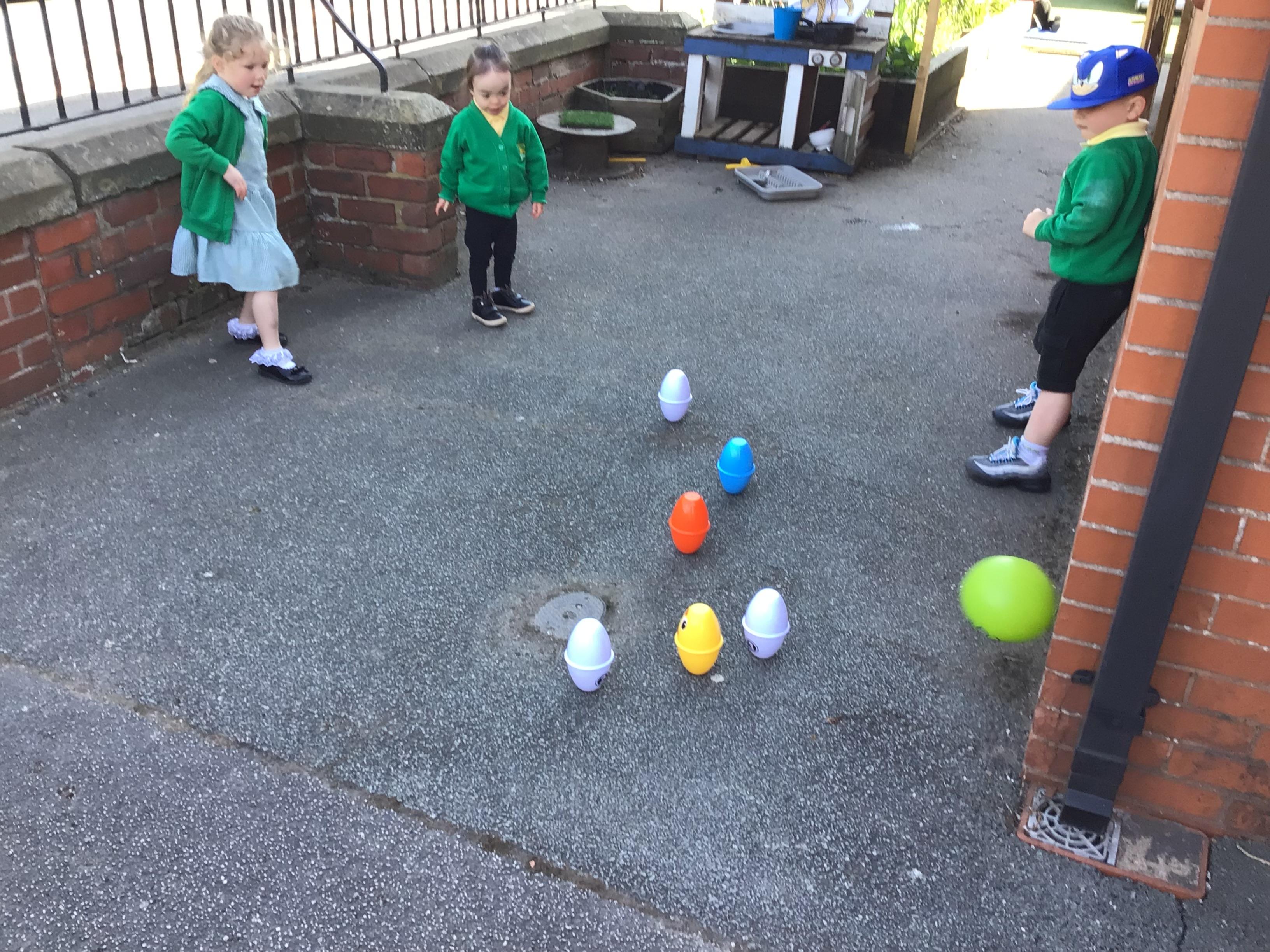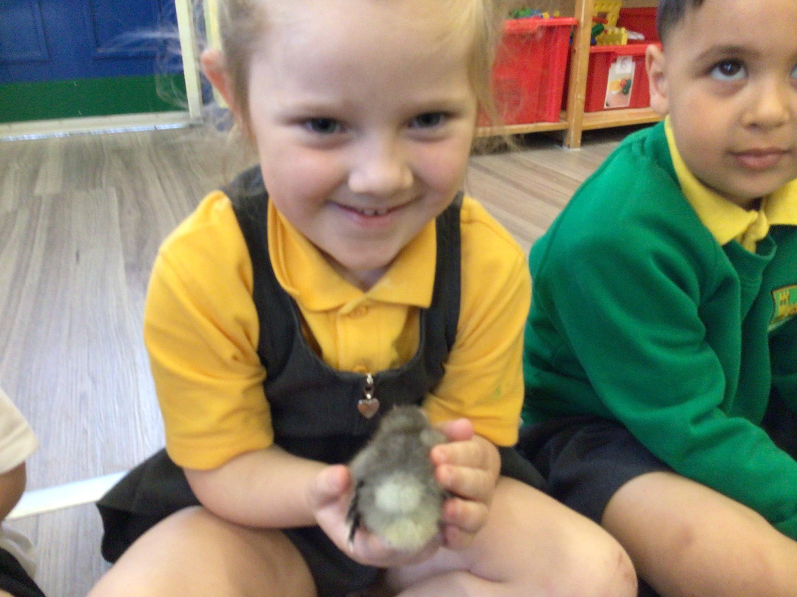 The children have had a fantastic week in the sun shine. The children have also been able to hold the chicks. In Nursery we have been outside for every session. The children have enjoyed Easter activities, such as Easter bowling, an Easter Egg Hunt, find the eggs and being outside.
