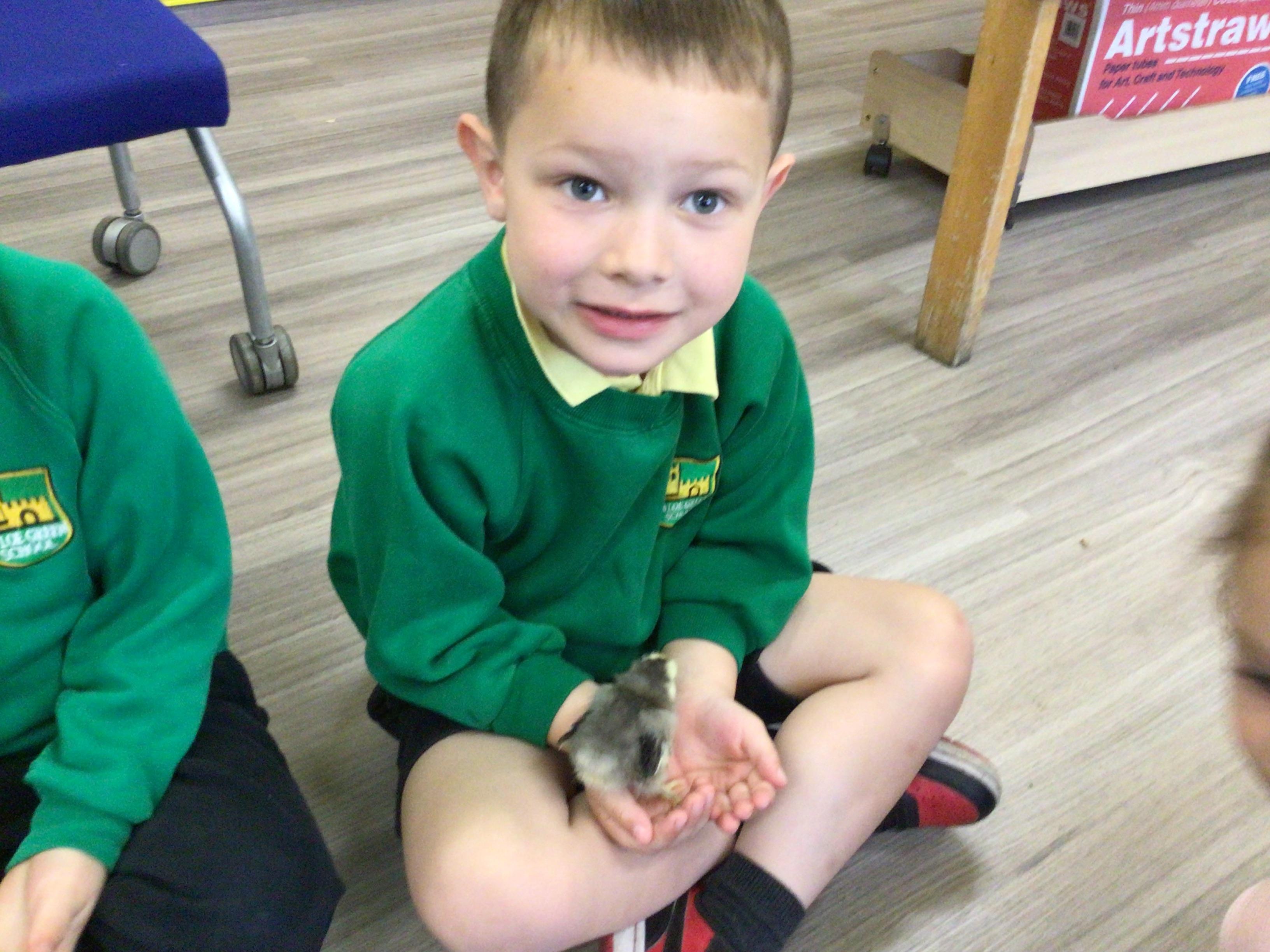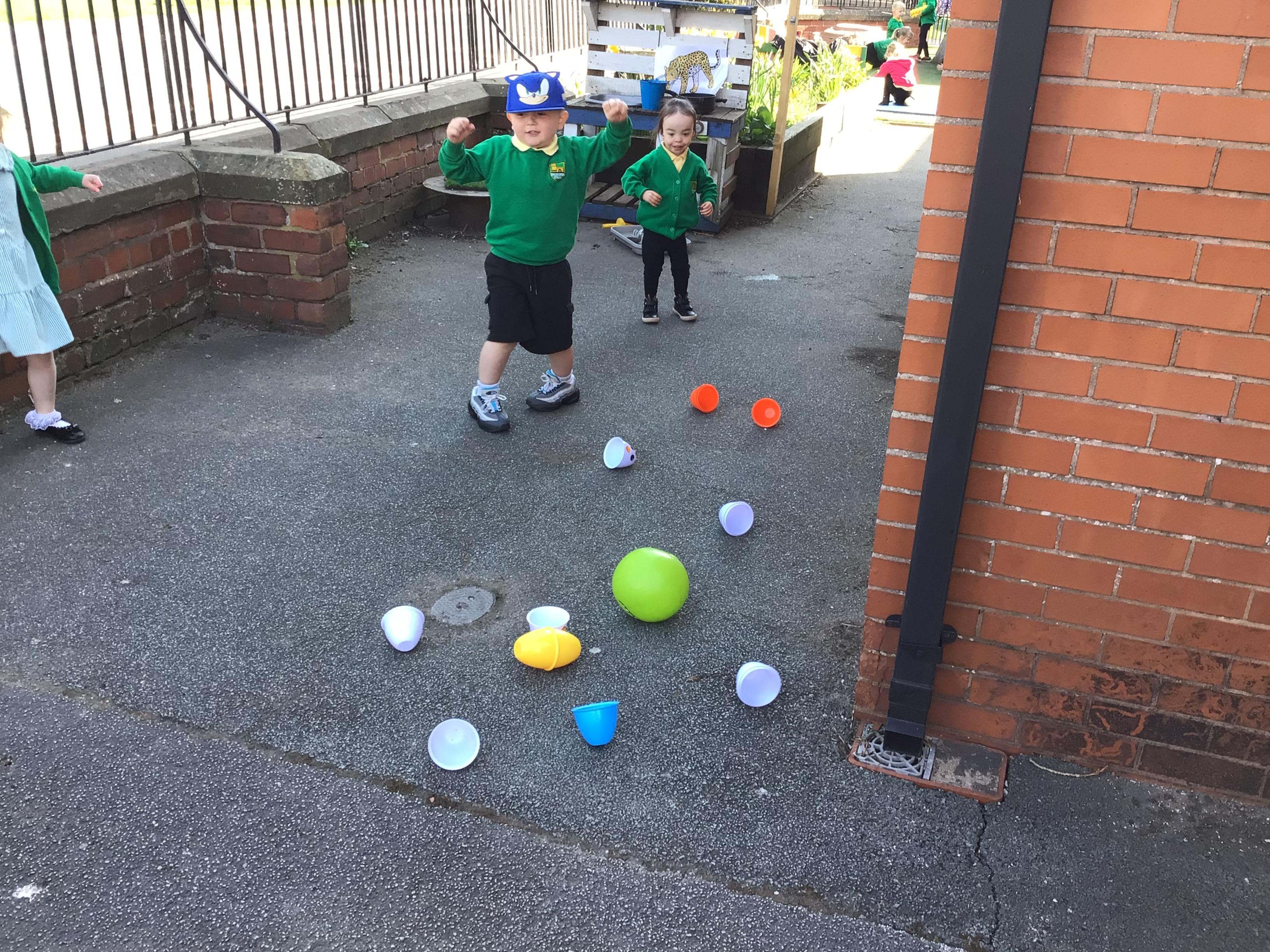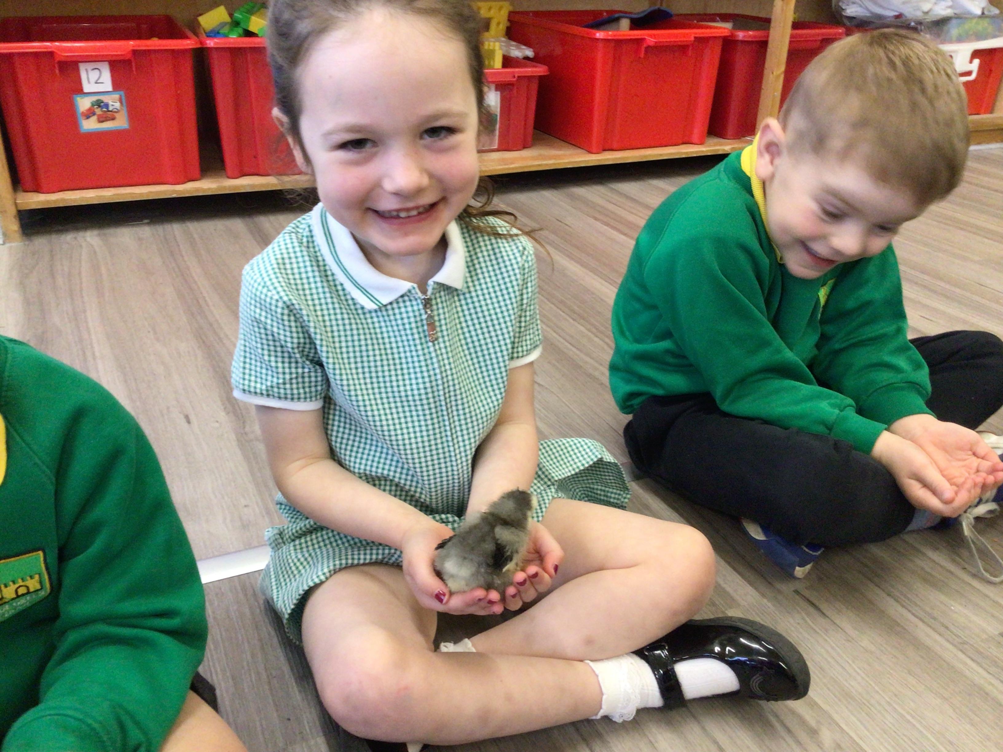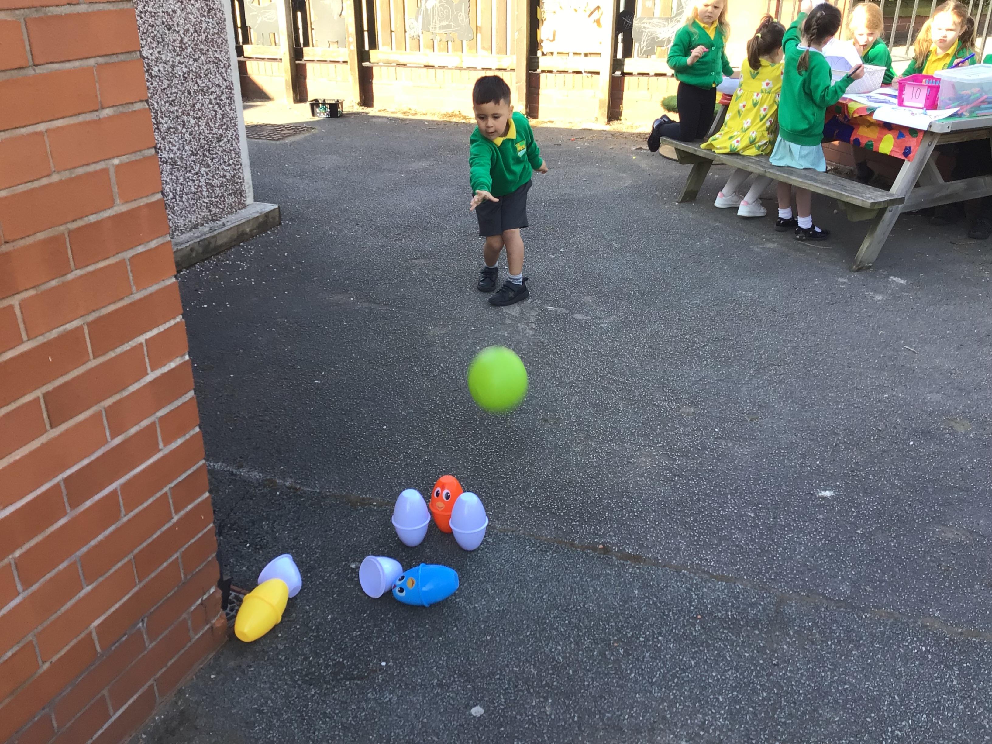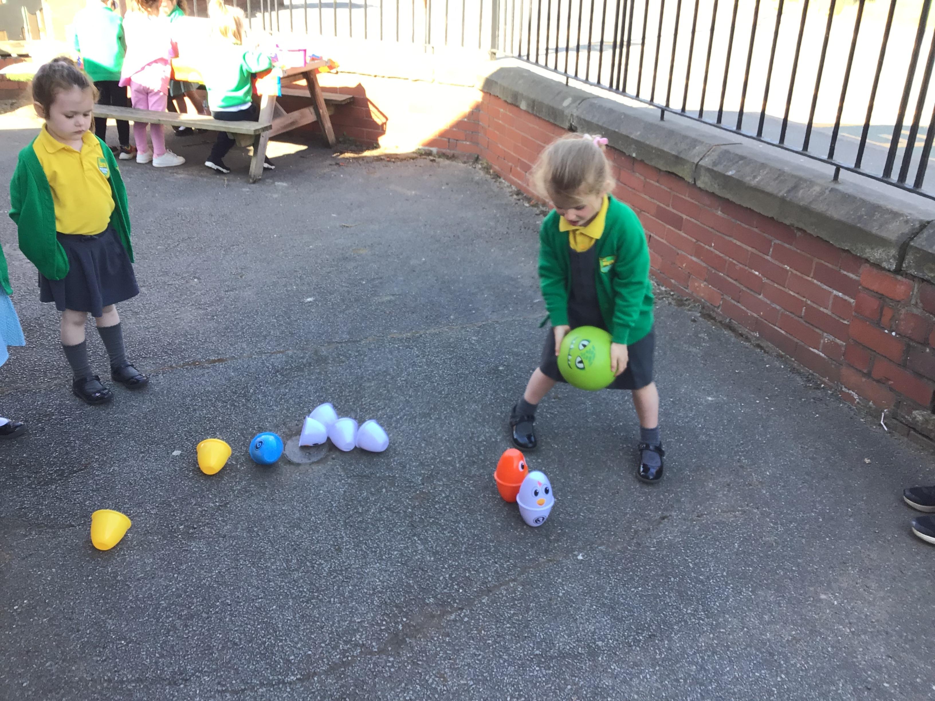 The children have had a fantastic week in the sun shine. The children have also been able to hold the chicks. In Nursery we have been outside for every session. The children have enjoyed Easter activities, such as Easter bowling, an Easter Egg Hunt, find the eggs and being outside.