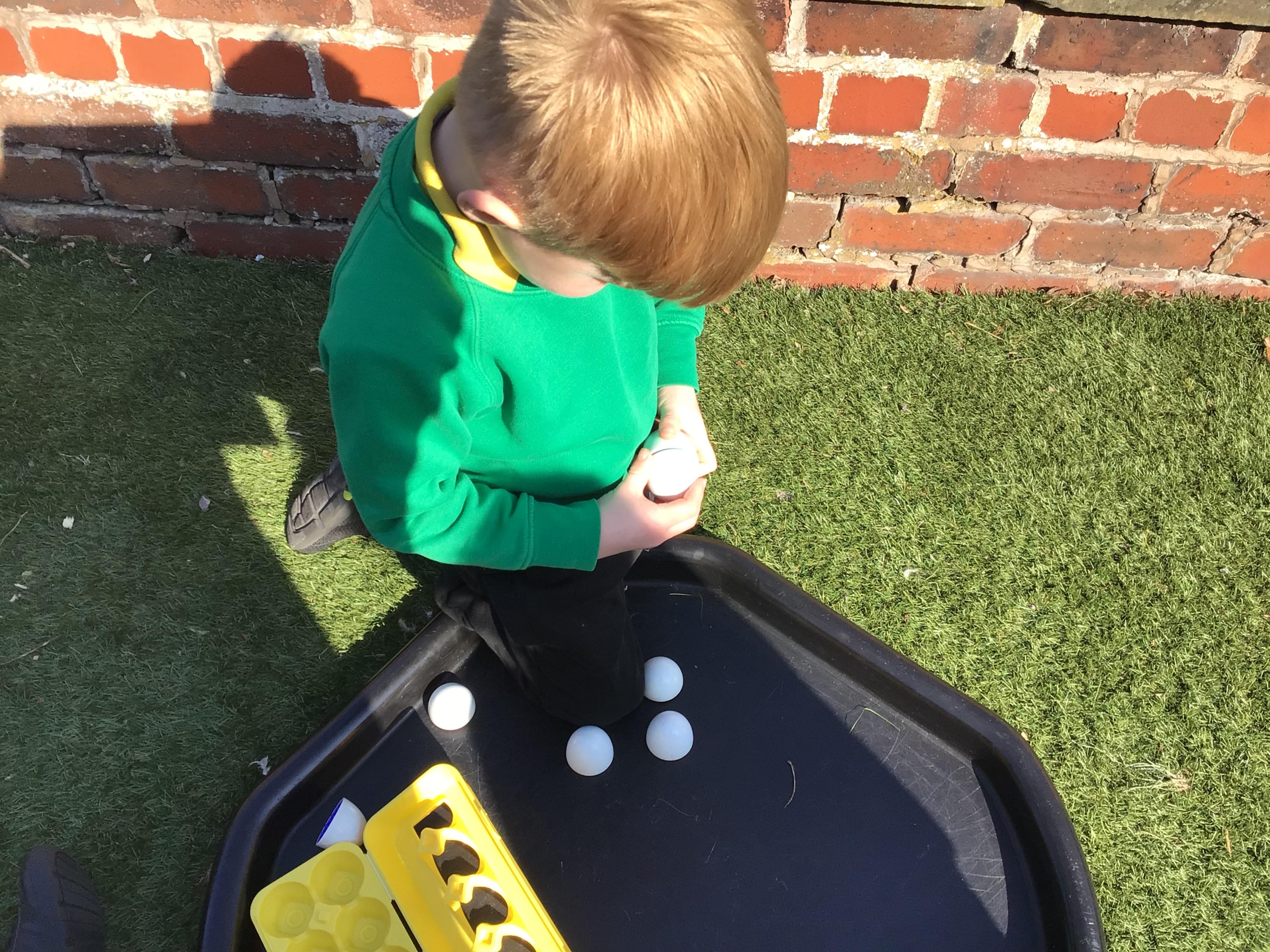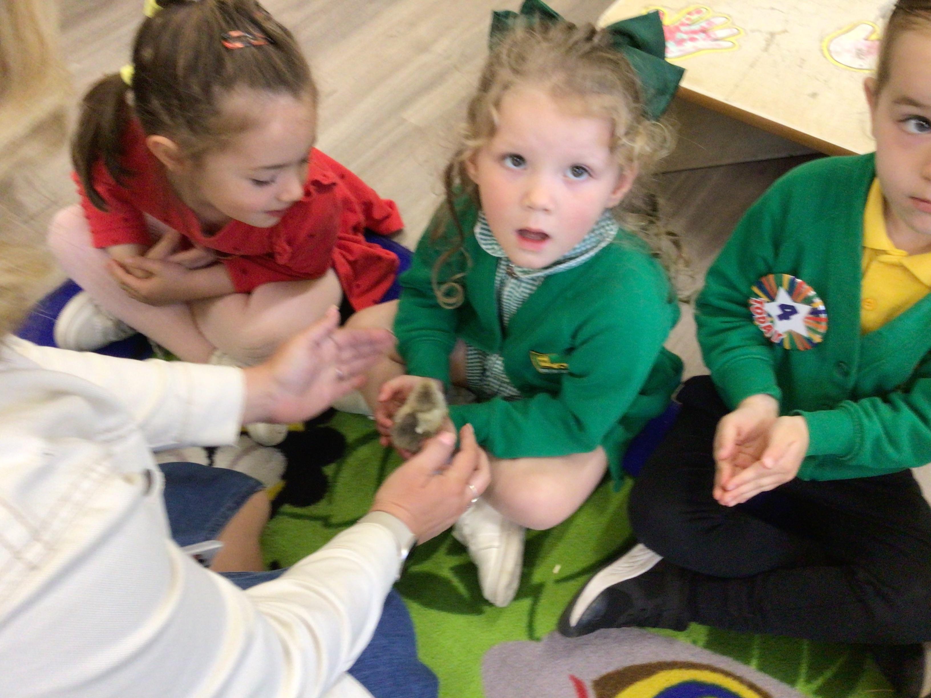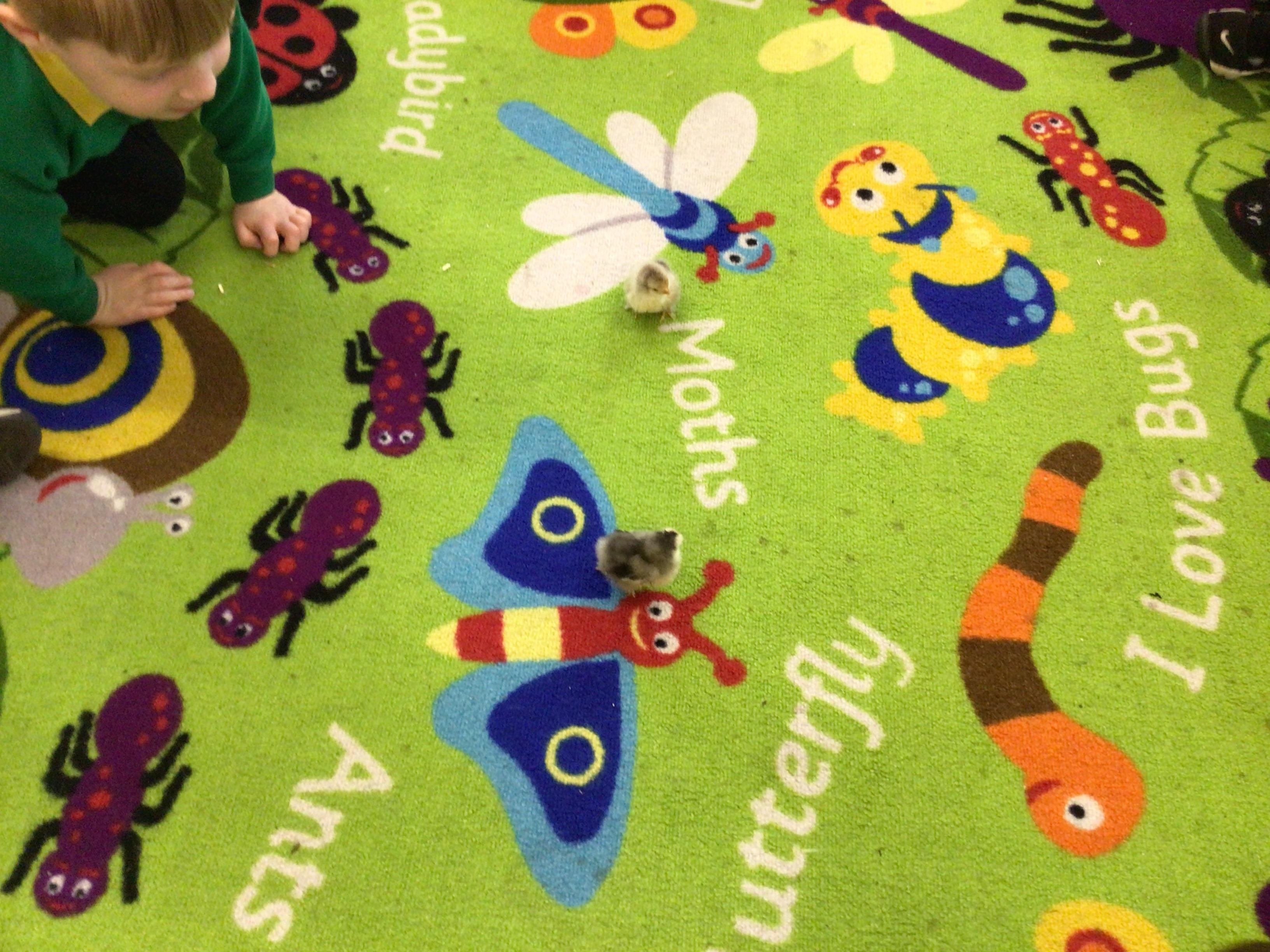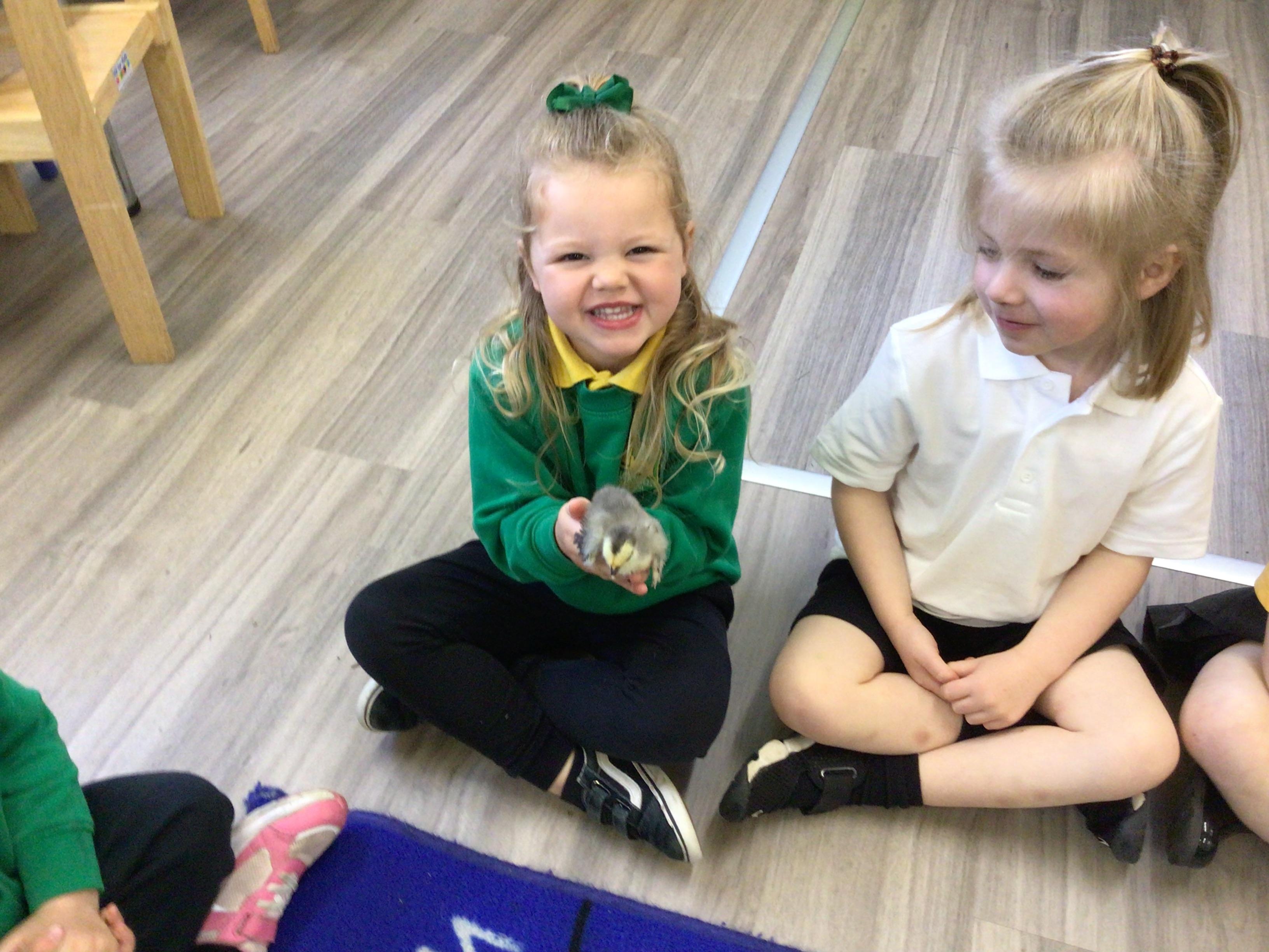 The children have had a fantastic week in the sun shine. The children have also been able to hold the chicks. In Nursery we have been outside for every session. The children have enjoyed Easter activities, such as Easter bowling, an Easter Egg Hunt, find the eggs and being outside.