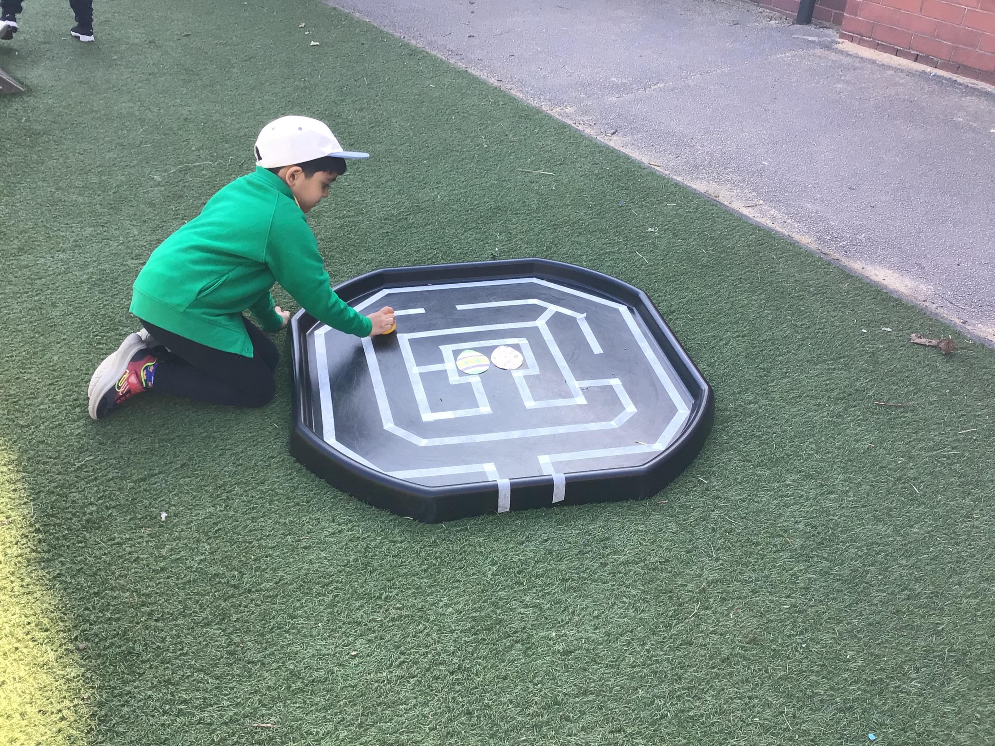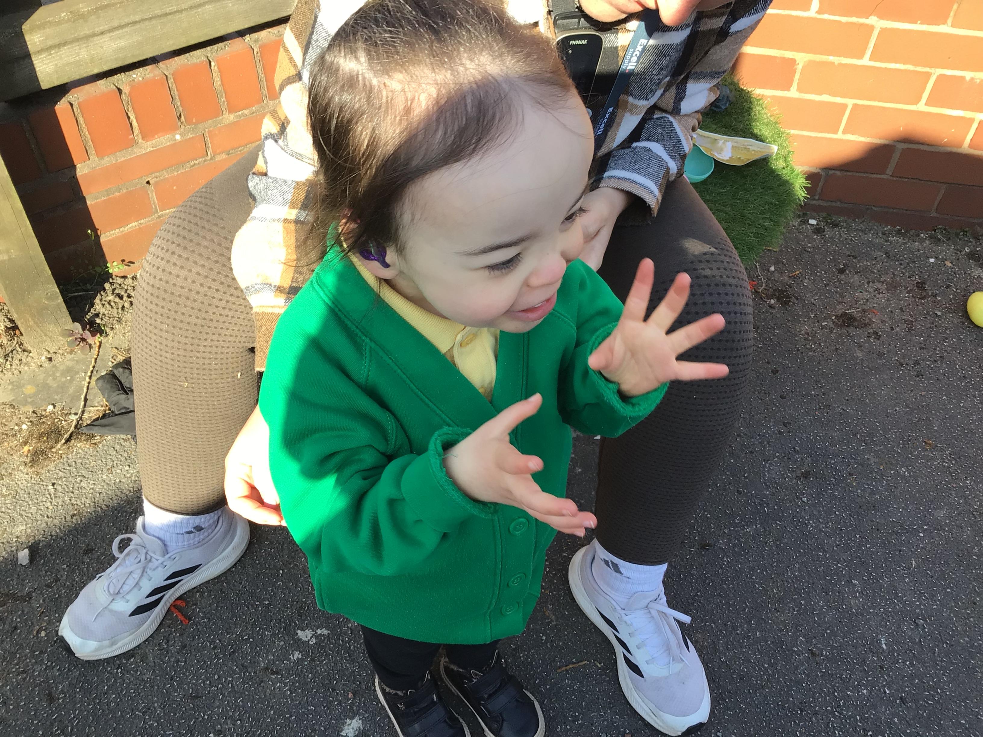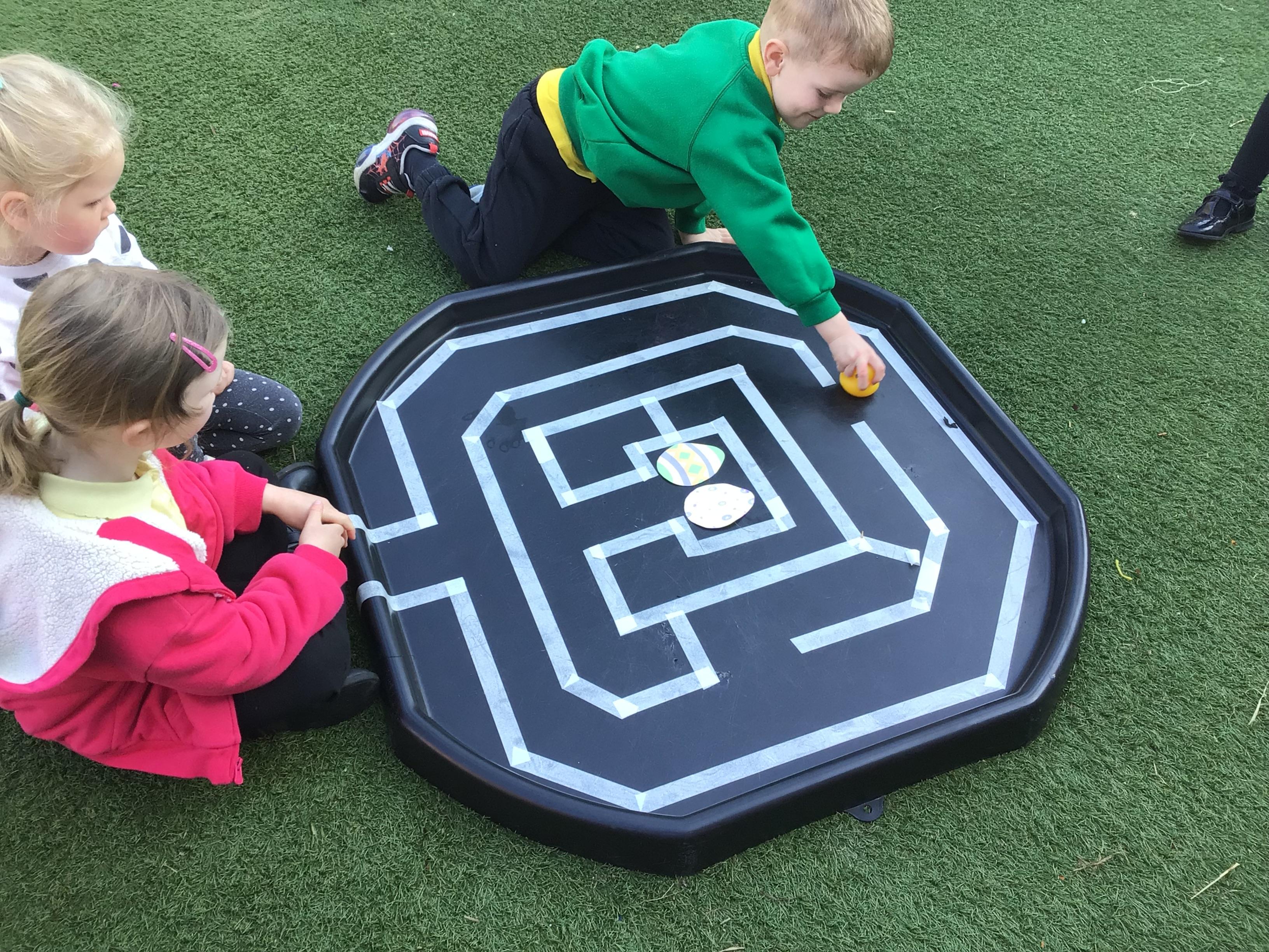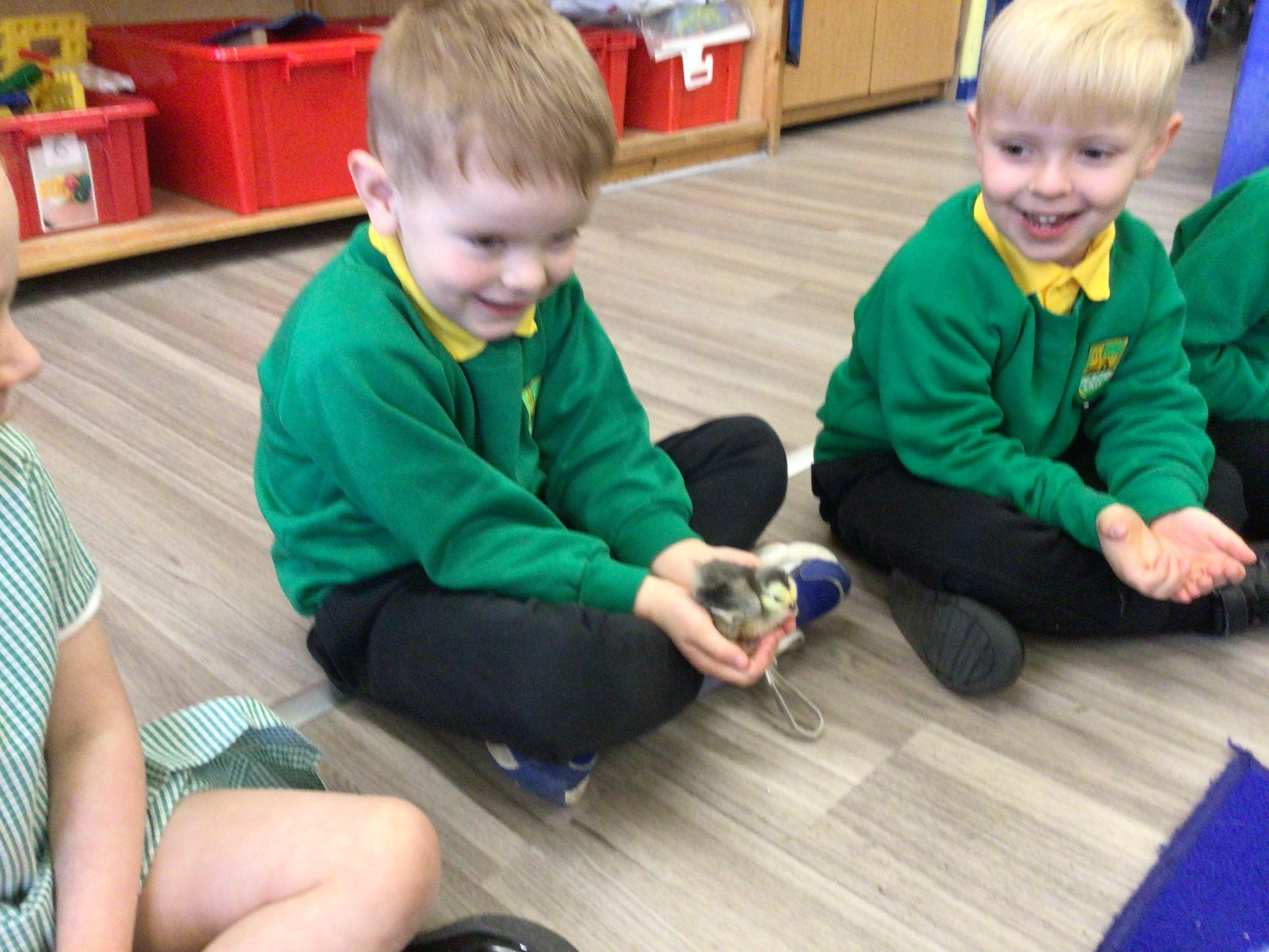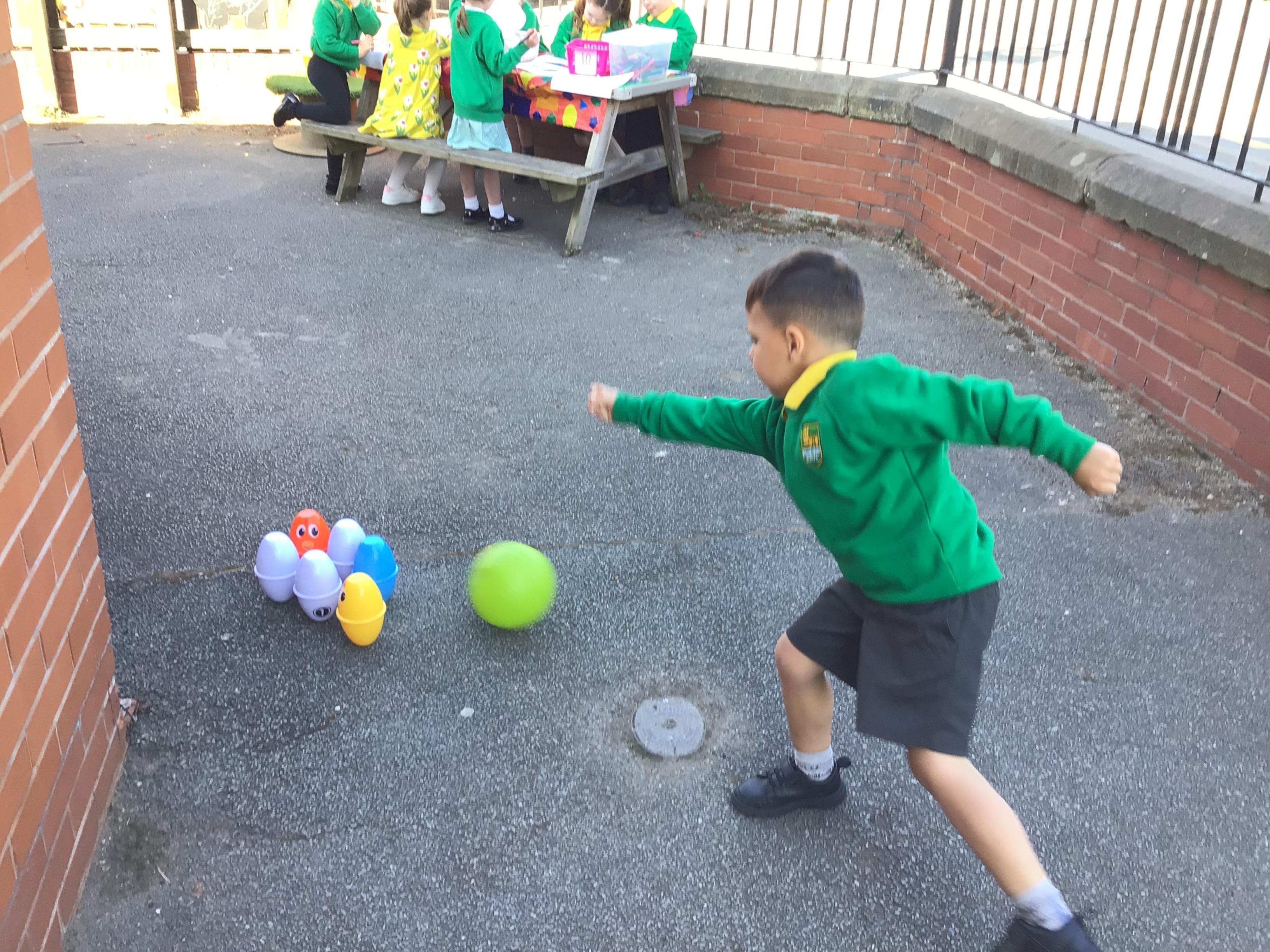 The children have had a fantastic week in the sun shine. The children have also been able to hold the chicks. In Nursery we have been outside for every session. The children have enjoyed Easter activities, such as Easter bowling, an Easter Egg Hunt, find the eggs and being outside.