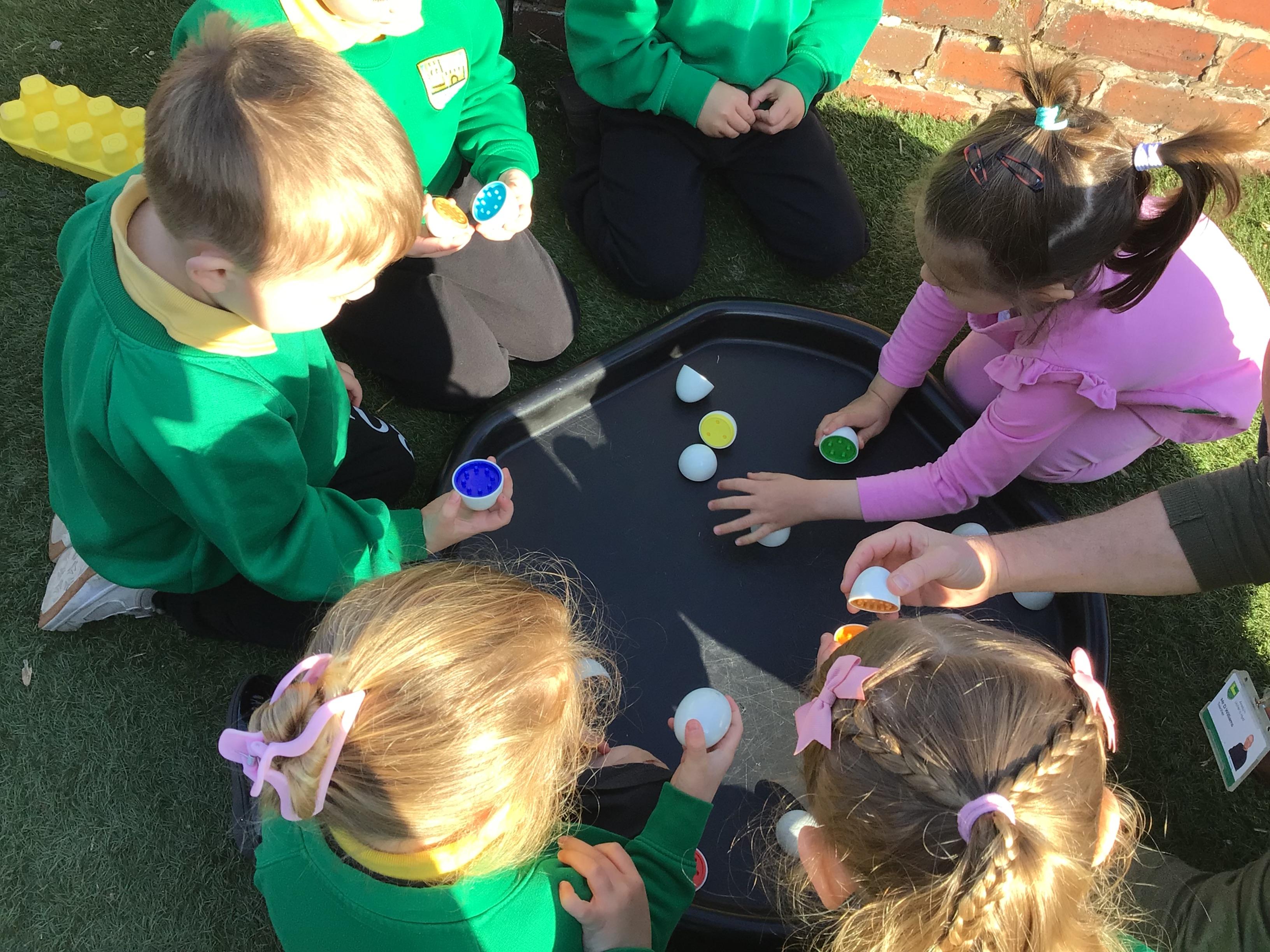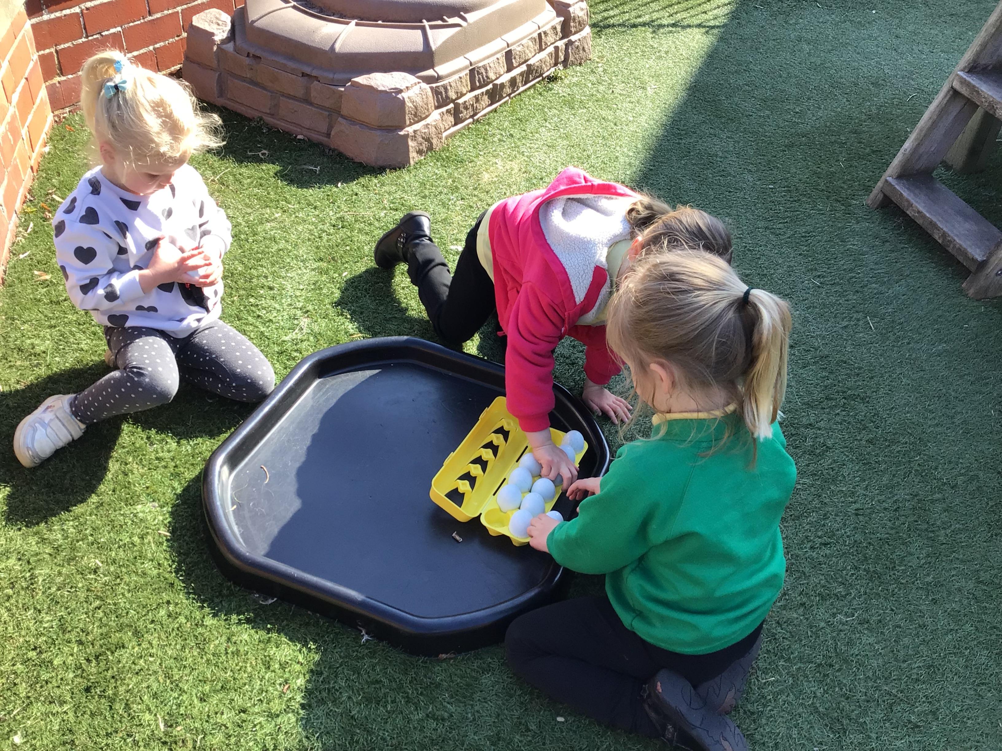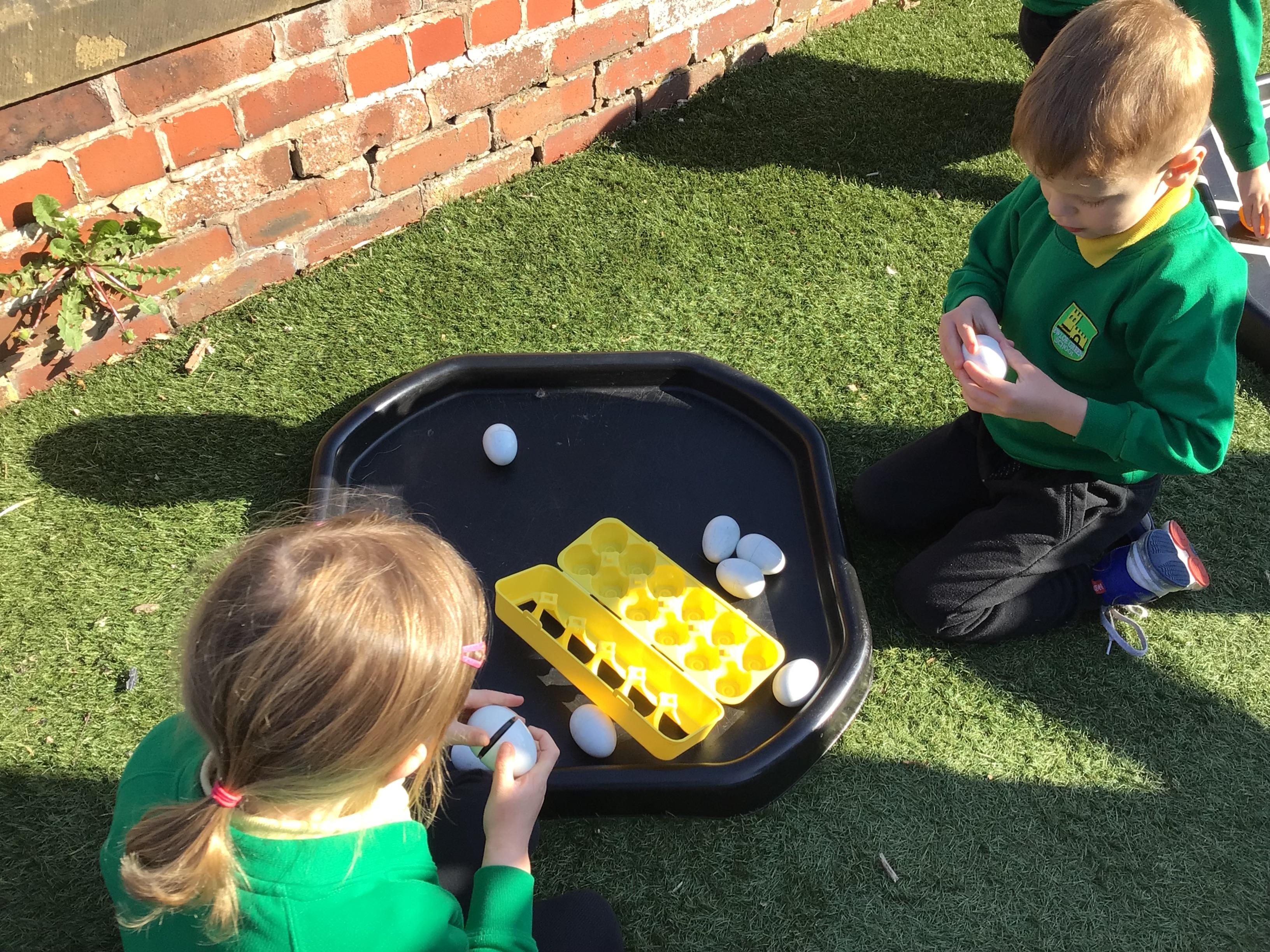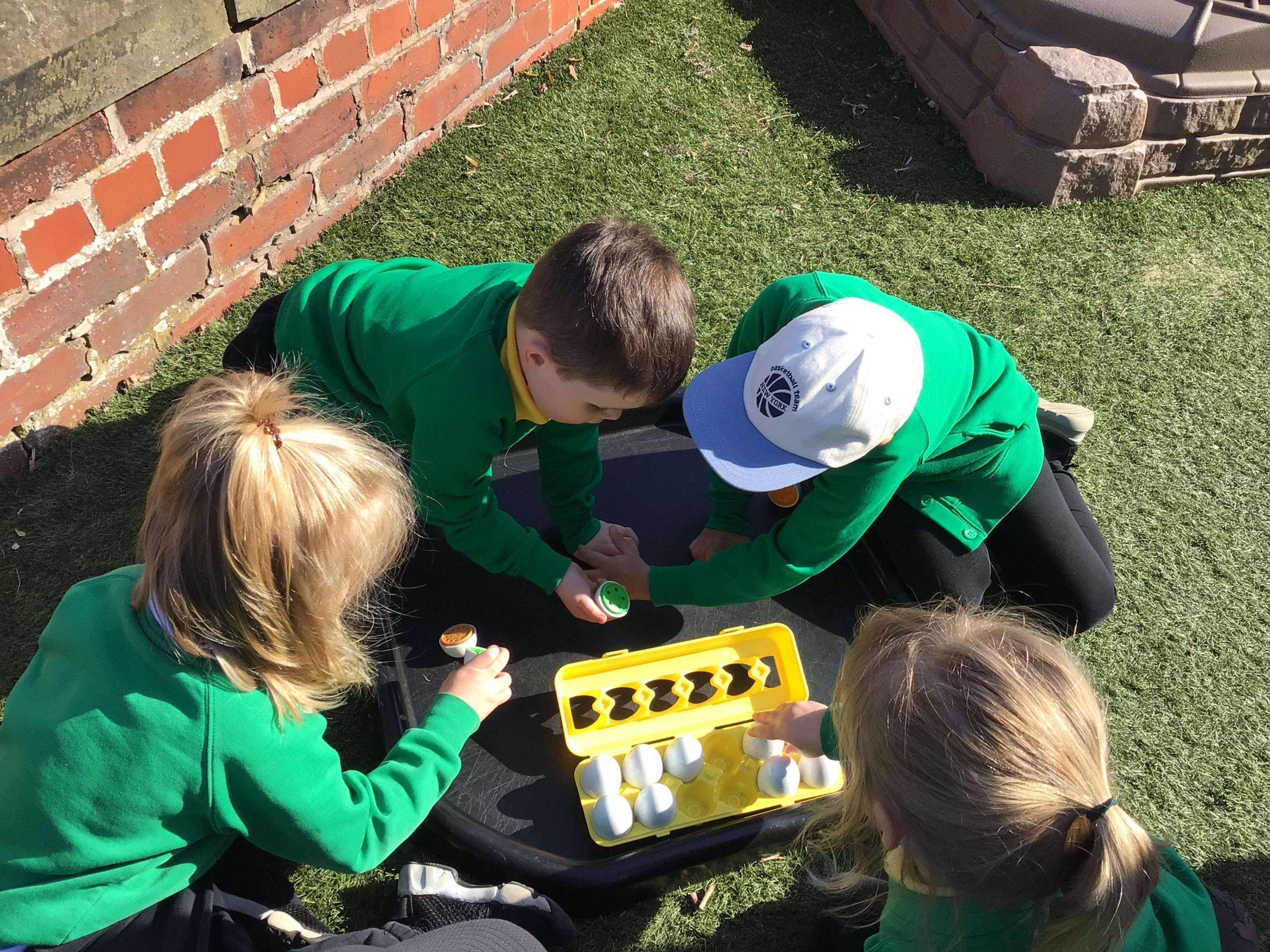 The children have had a lovely week, watching the eggs hatch into chicks. We have been playing I spy and made pictograms with the data. The children have enjoyed being outside and making a spring picture together. They enjoyed having snack outside too.