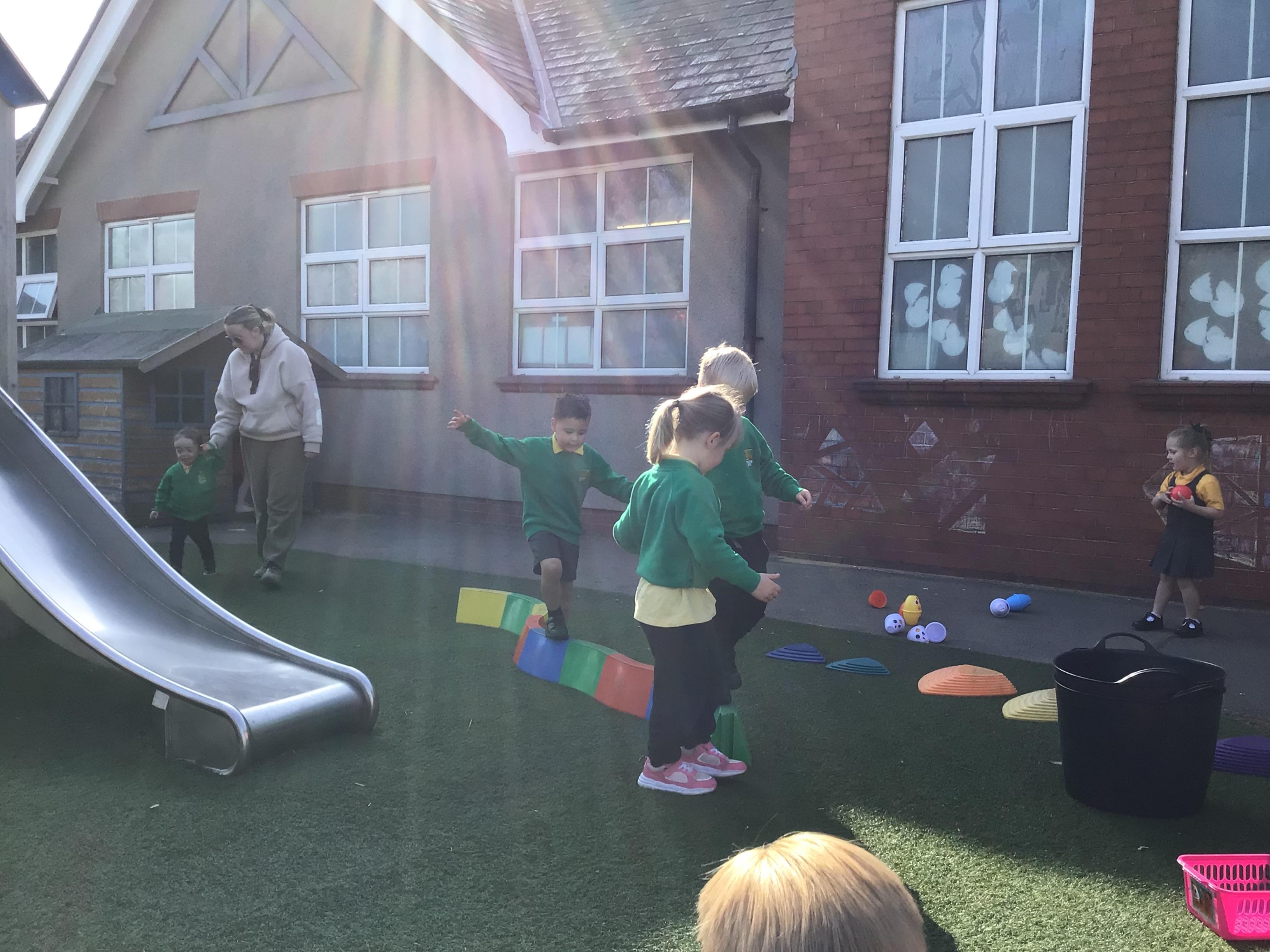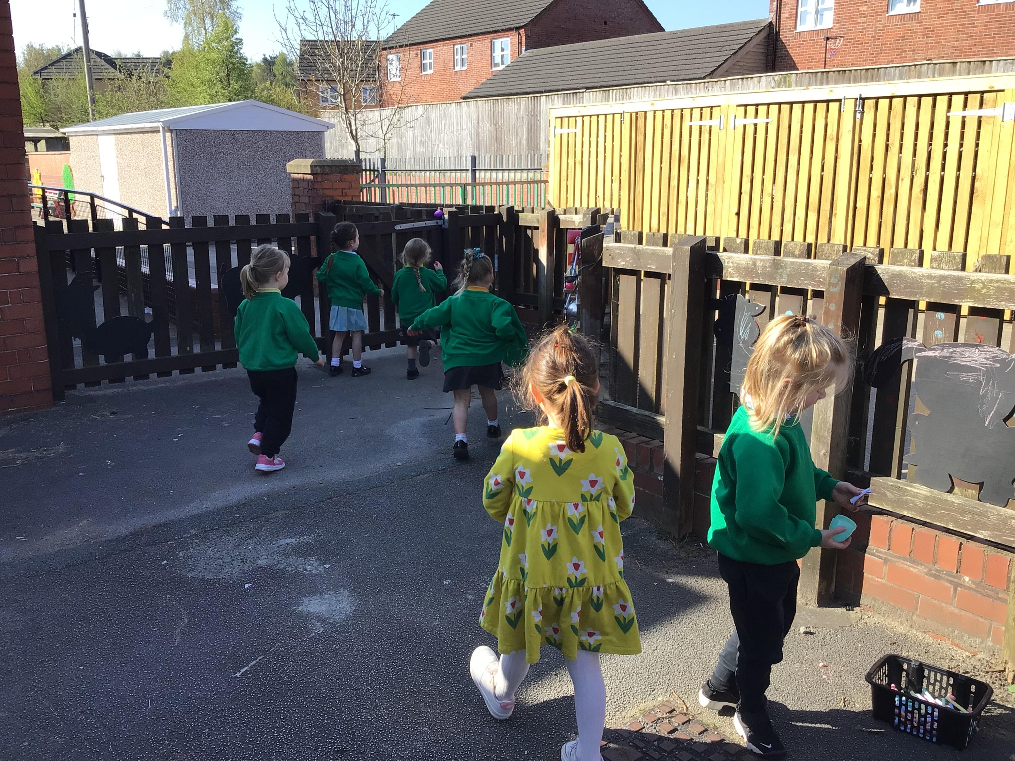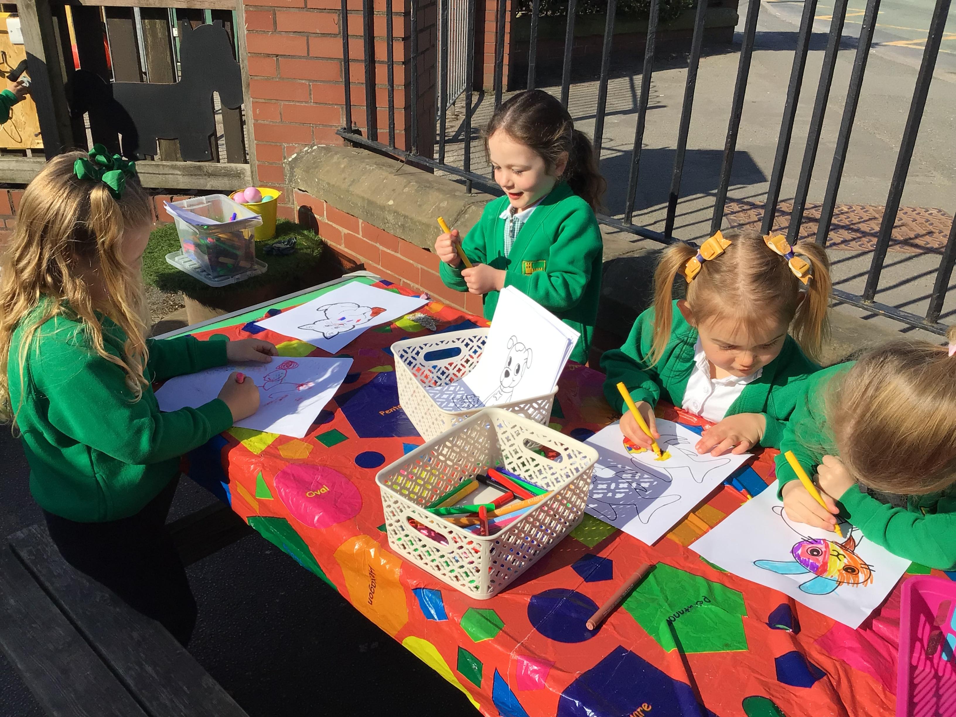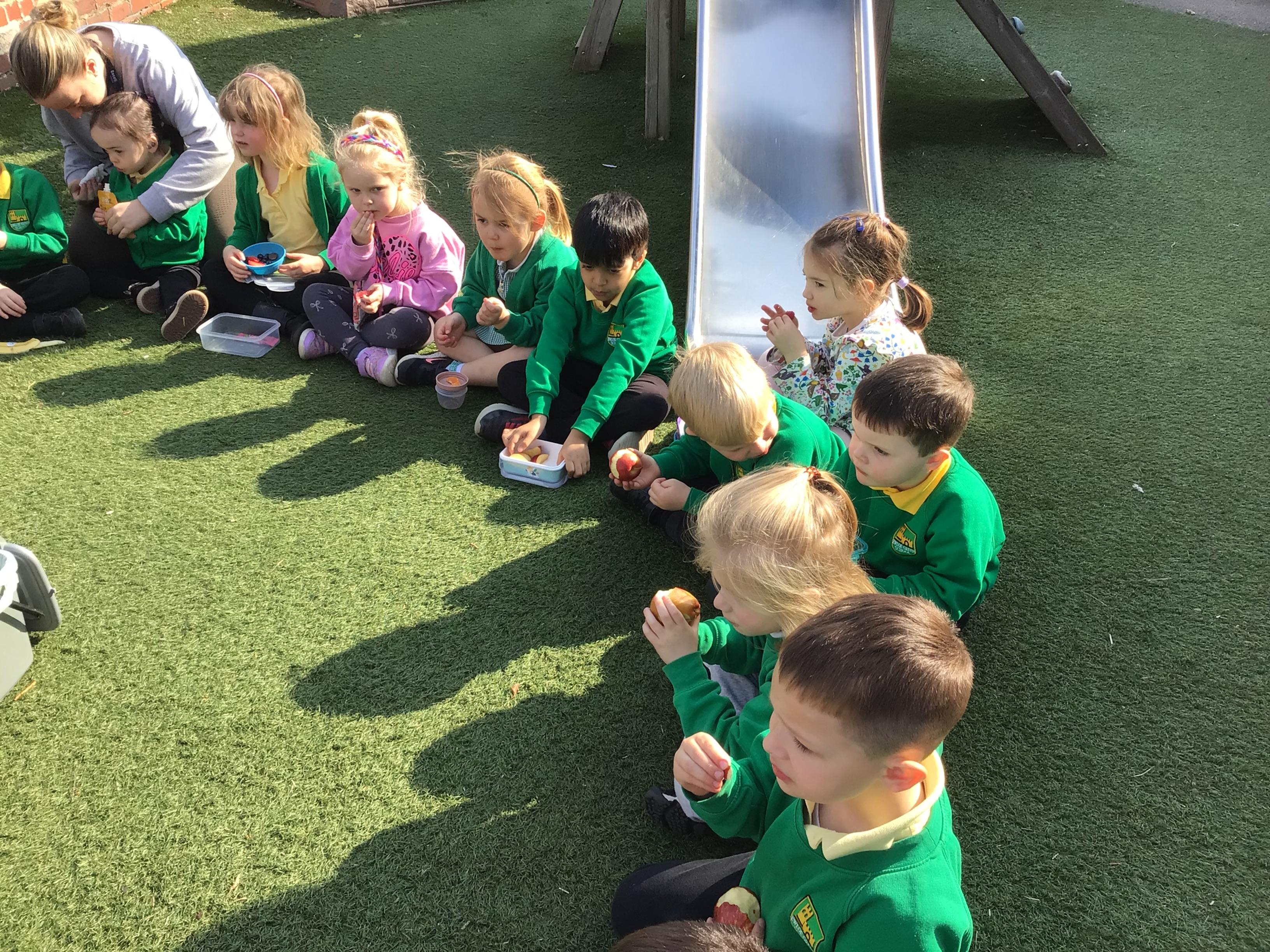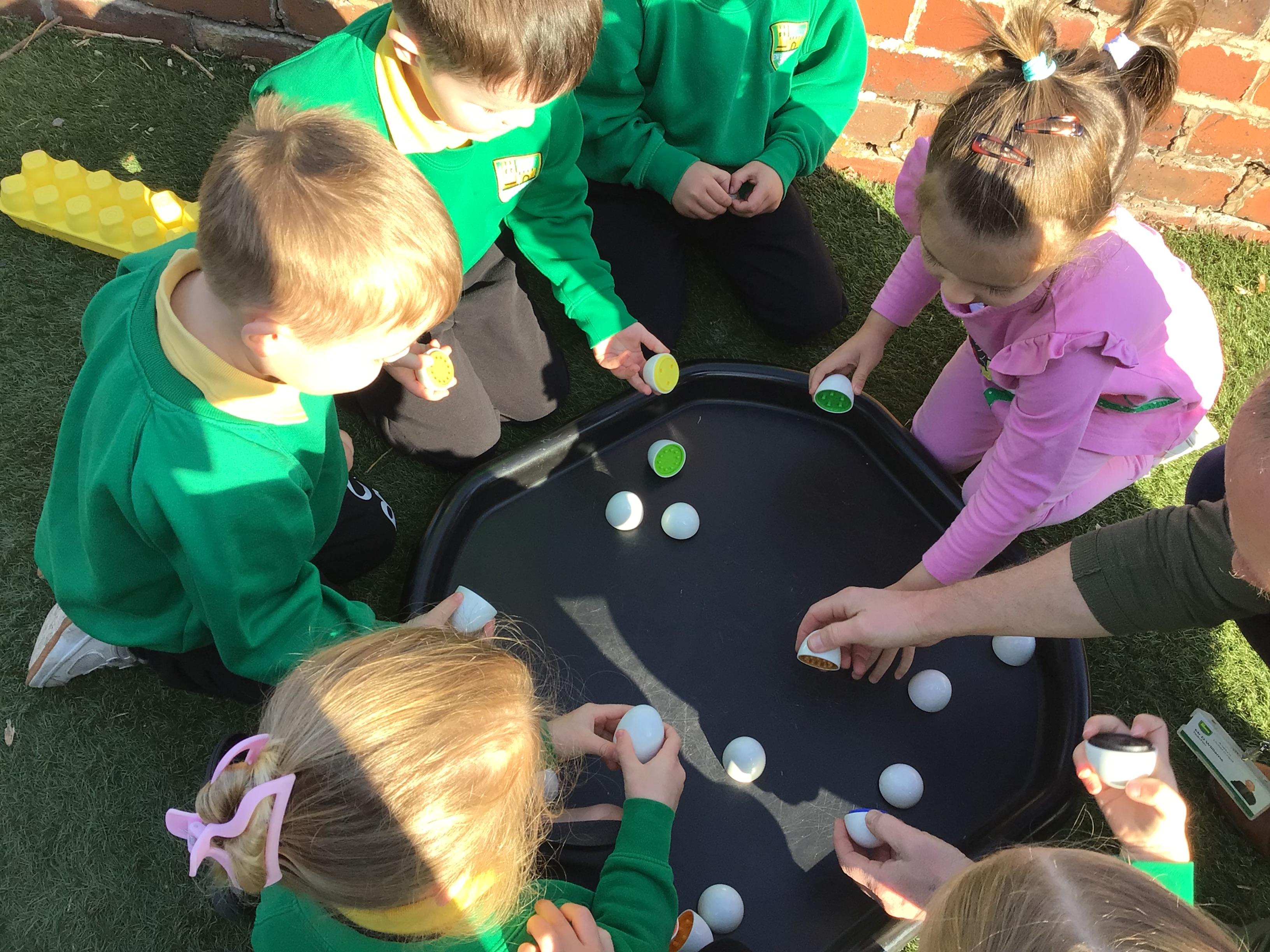 The children have had a lovely week, watching the eggs hatch into chicks. We have been playing I spy and made pictograms with the data. The children have enjoyed being outside and making a spring picture together. They enjoyed having snack outside too.