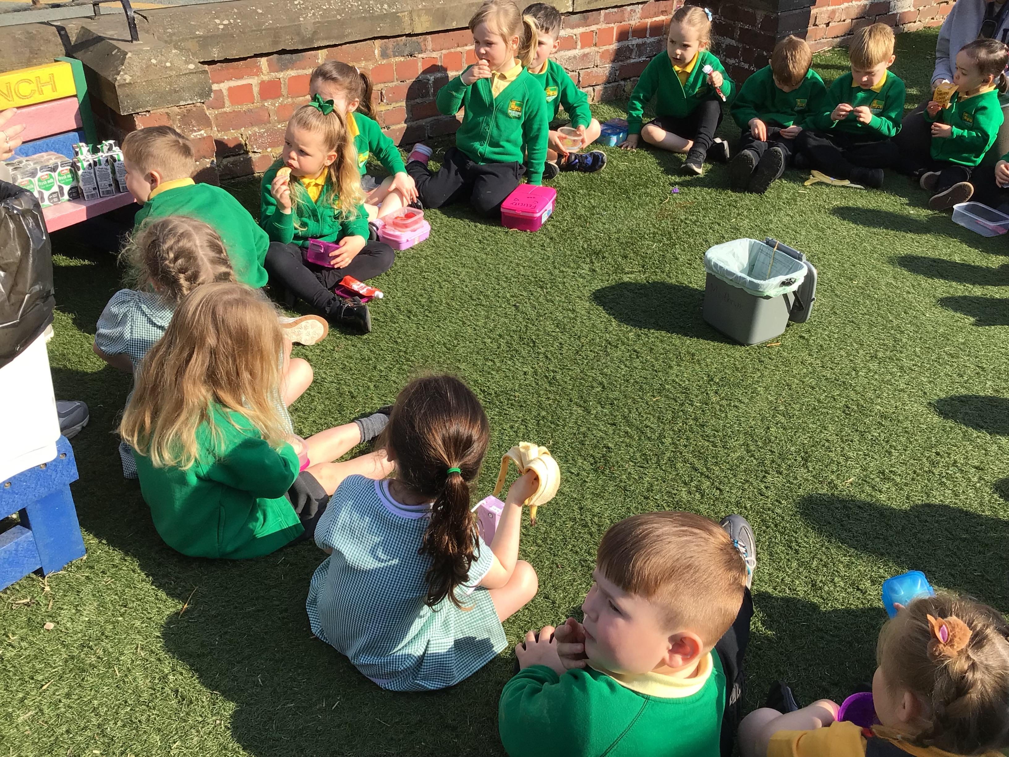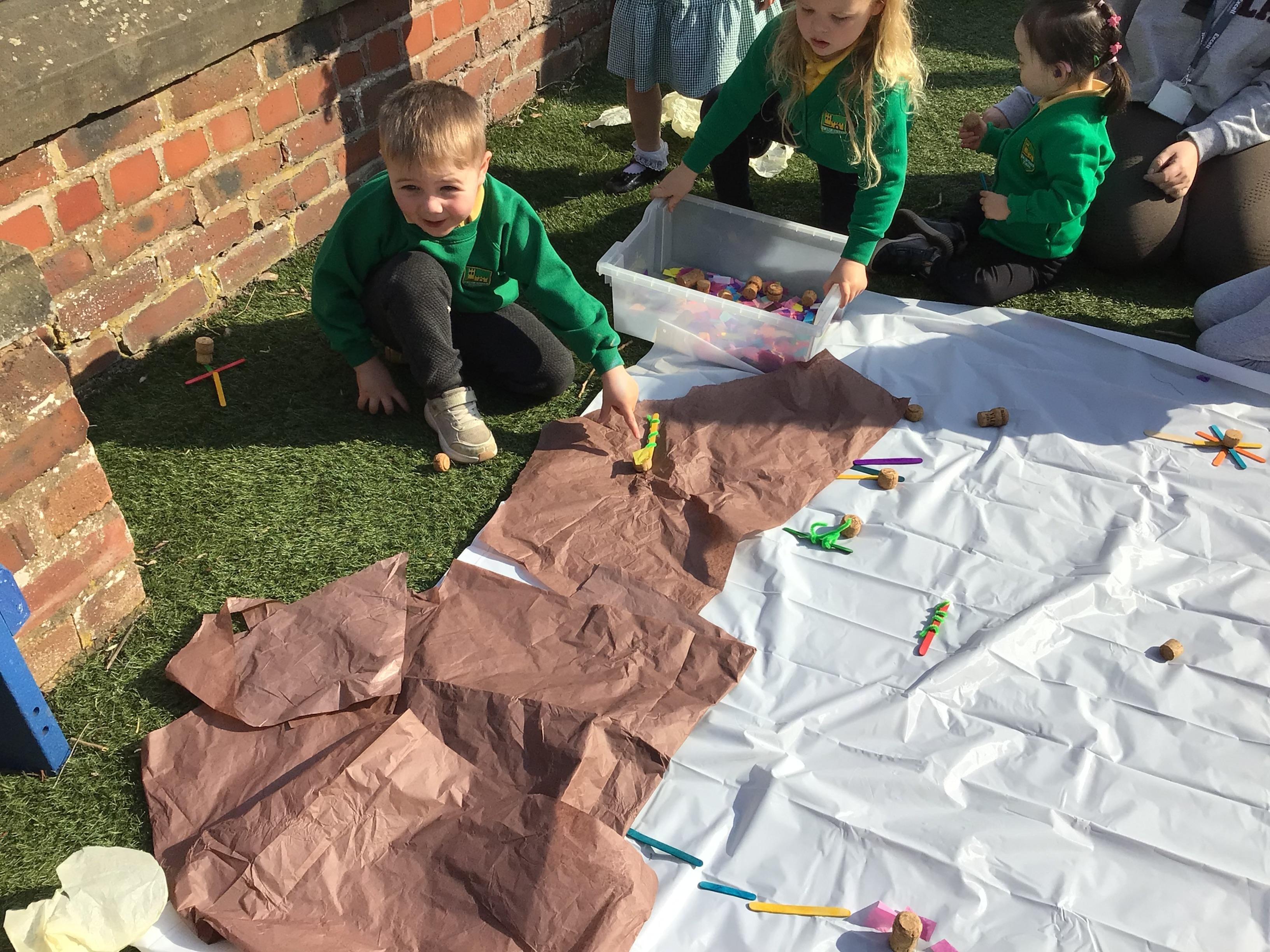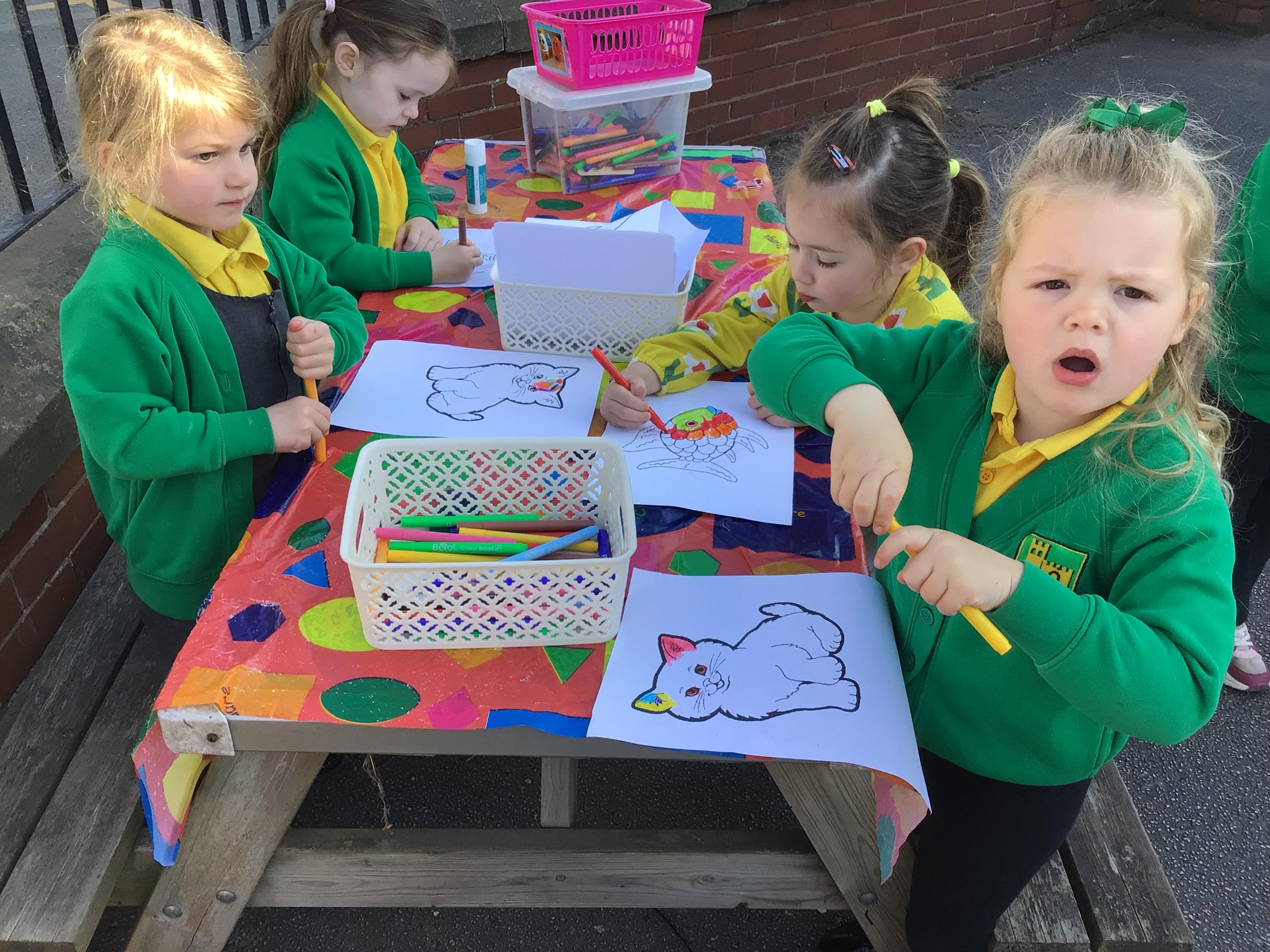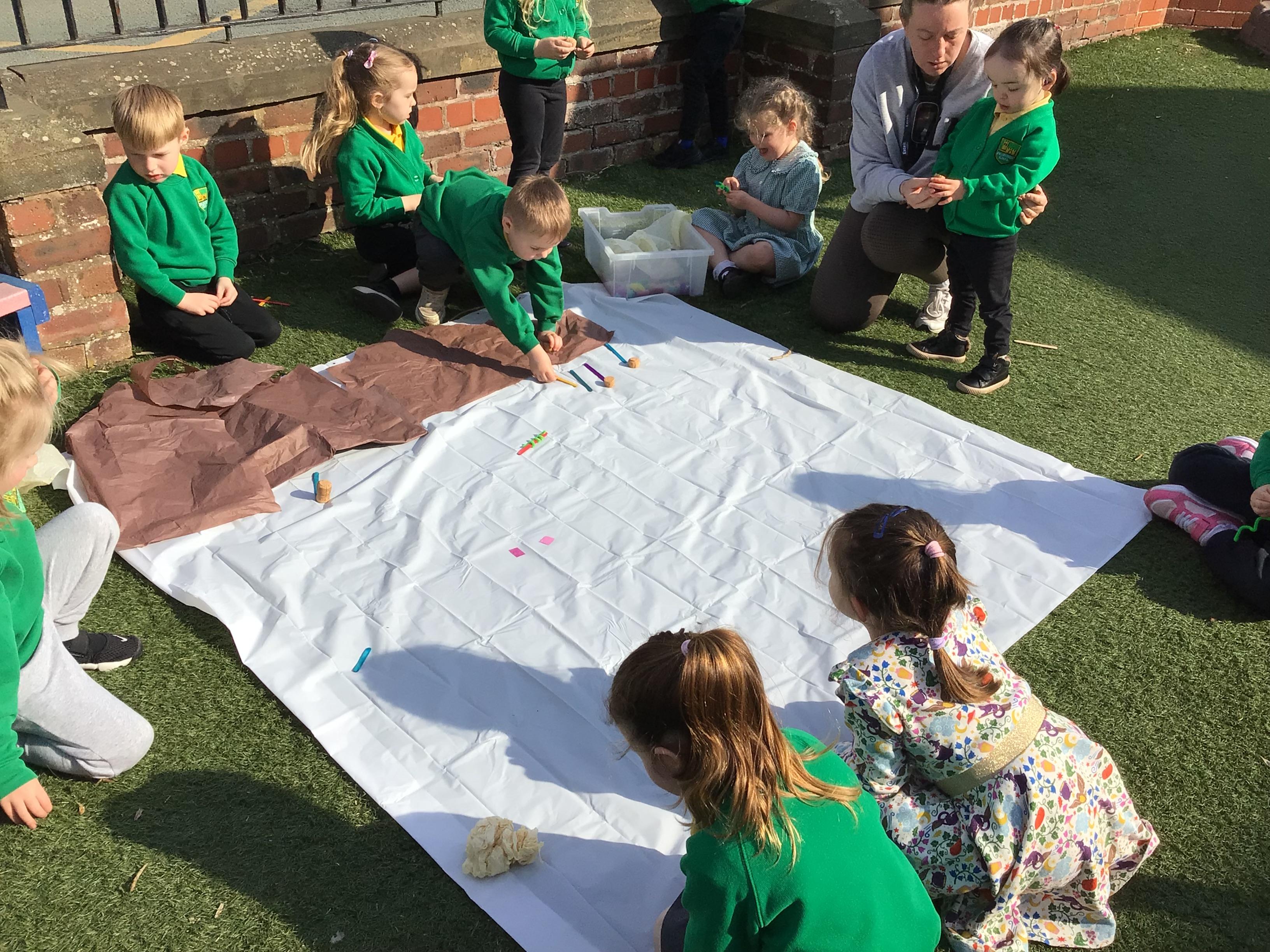 The children have had a lovely week, watching the eggs hatch into chicks. We have been playing I spy and made pictograms with the data. The children have enjoyed being outside and making a spring picture together. They enjoyed having snack outside too.