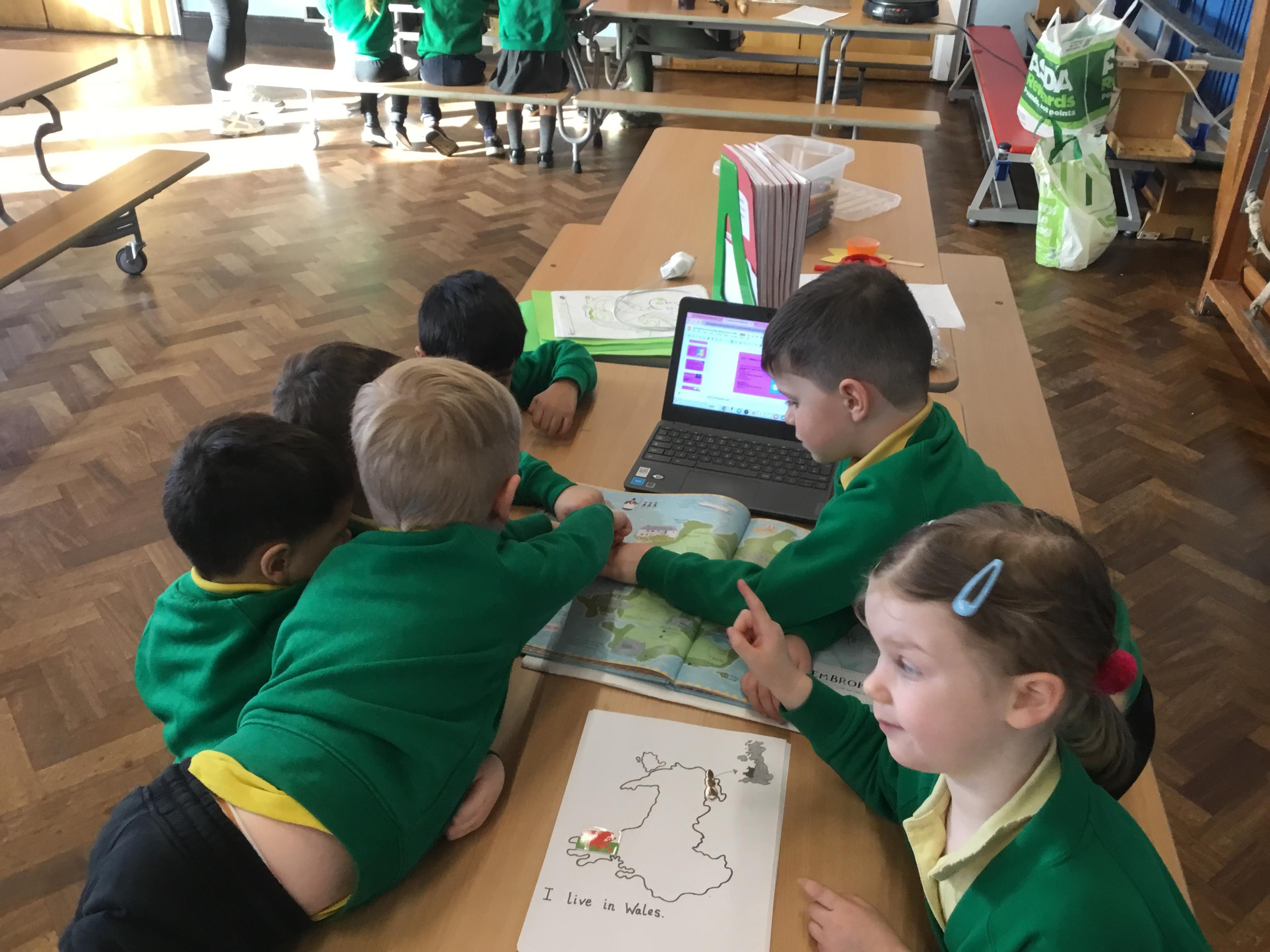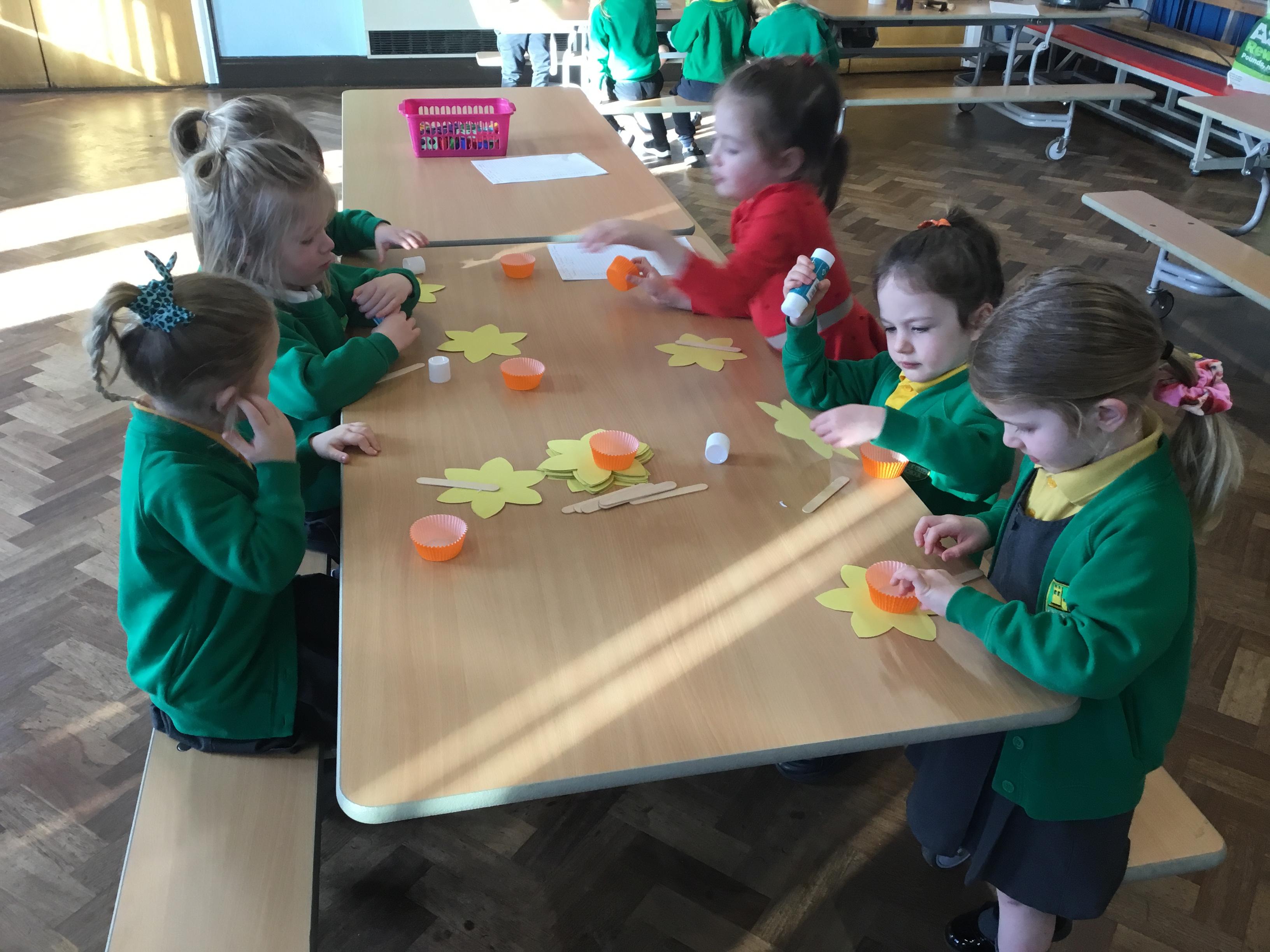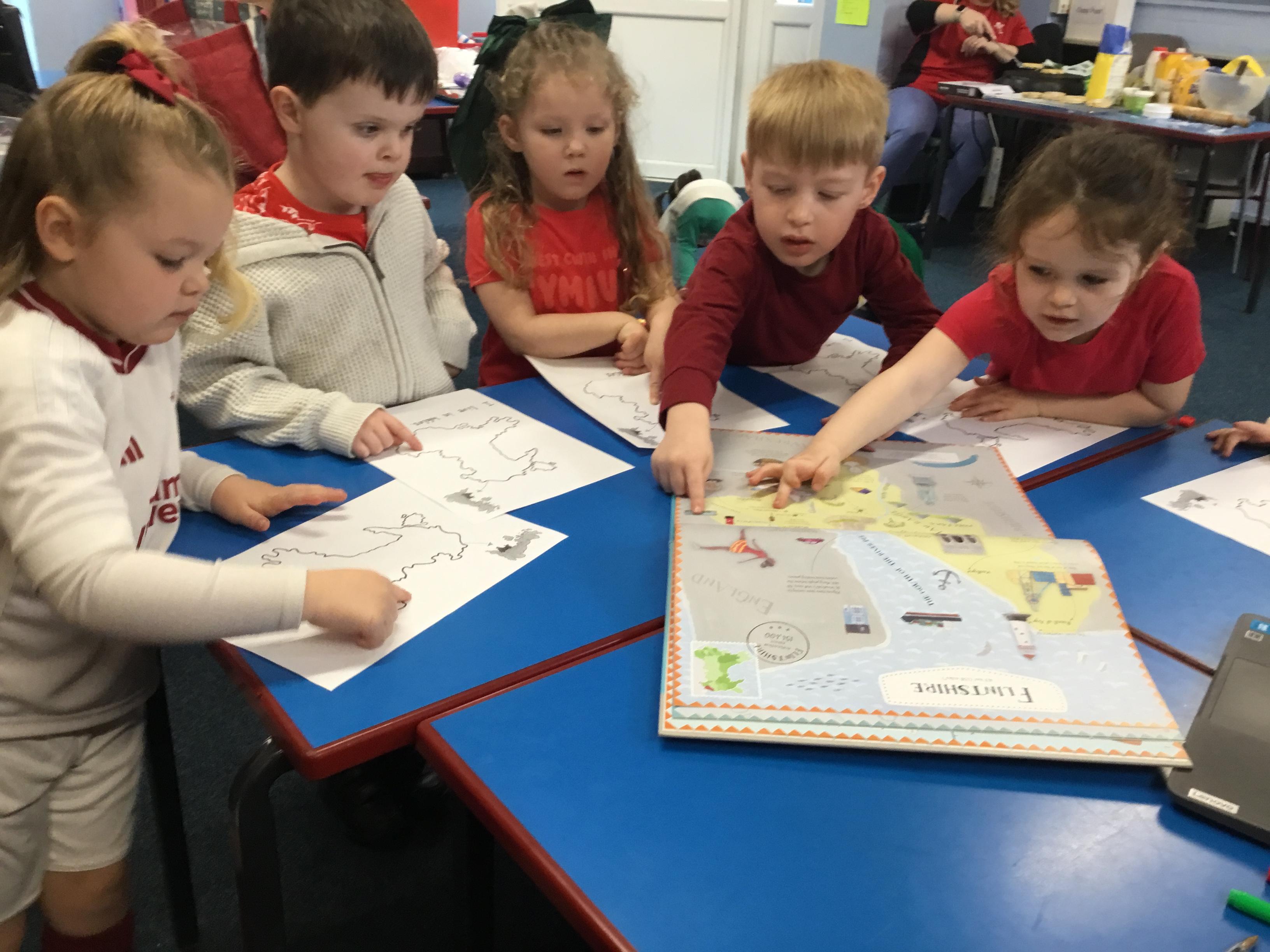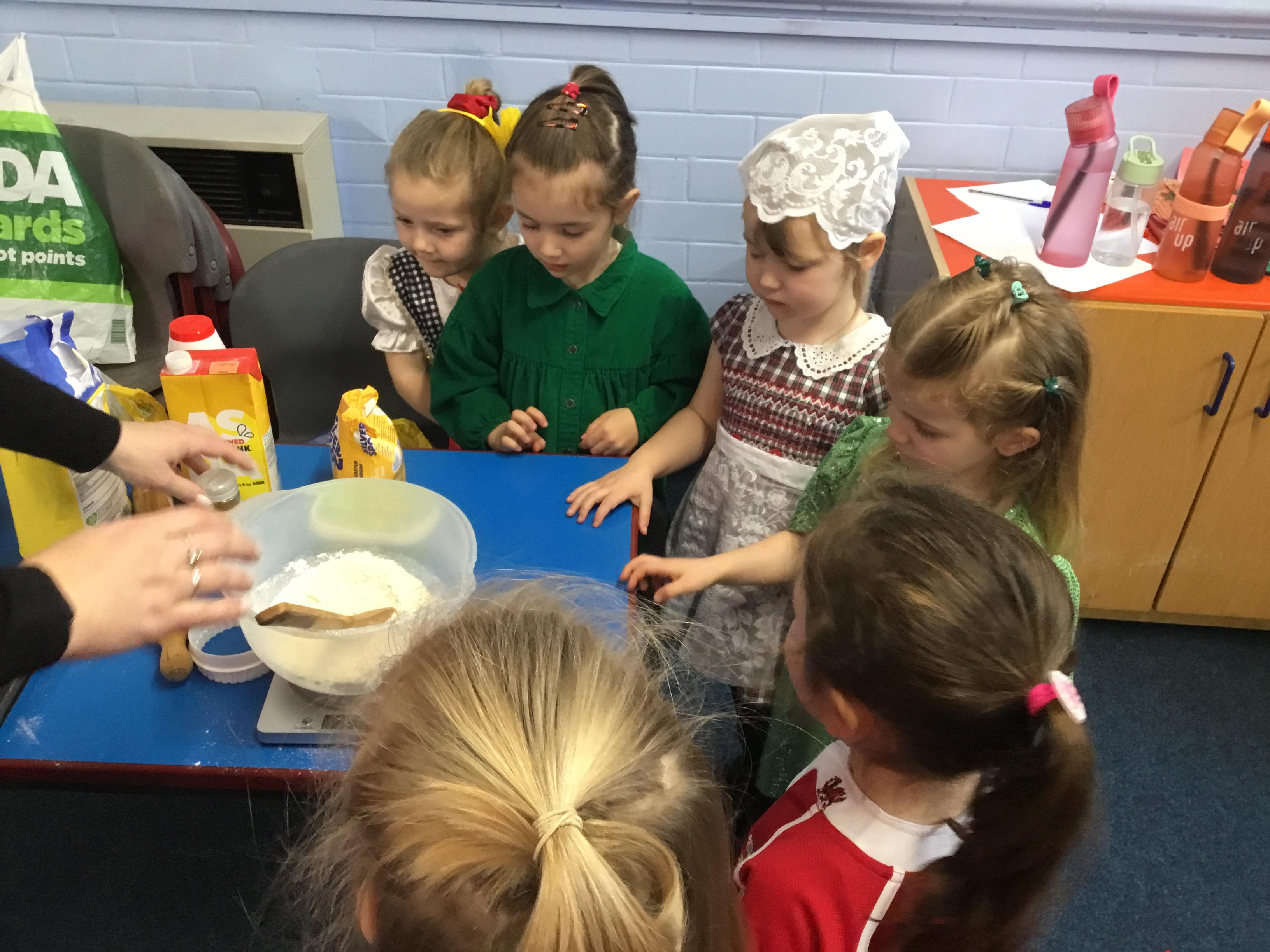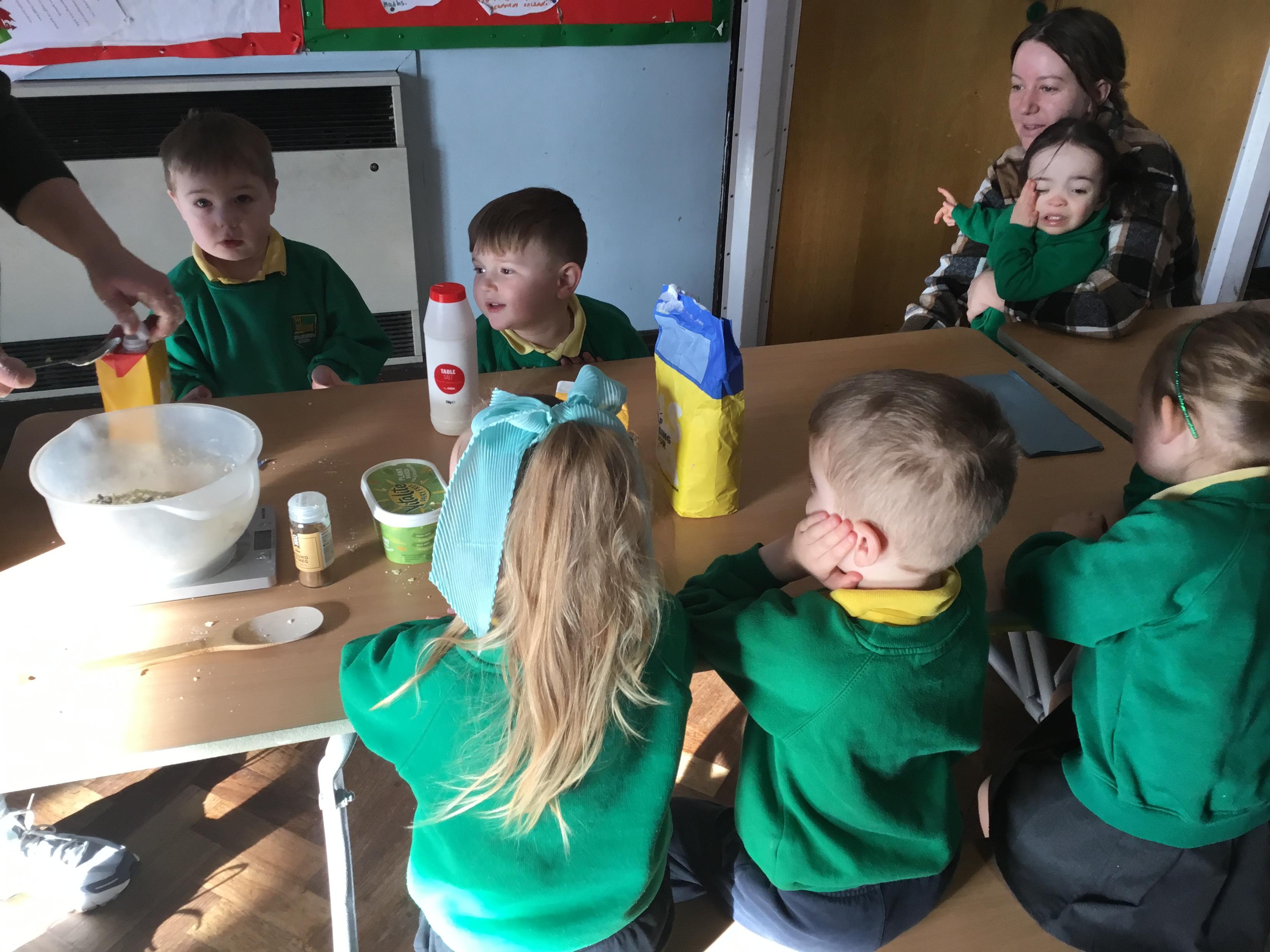 The Children enjoying their first week back. They have enjoyed learning and exploring about St David and Wales. We have been making Welsh cakes, looking at maps and where we live, making Daffodils and drawing Dragons.