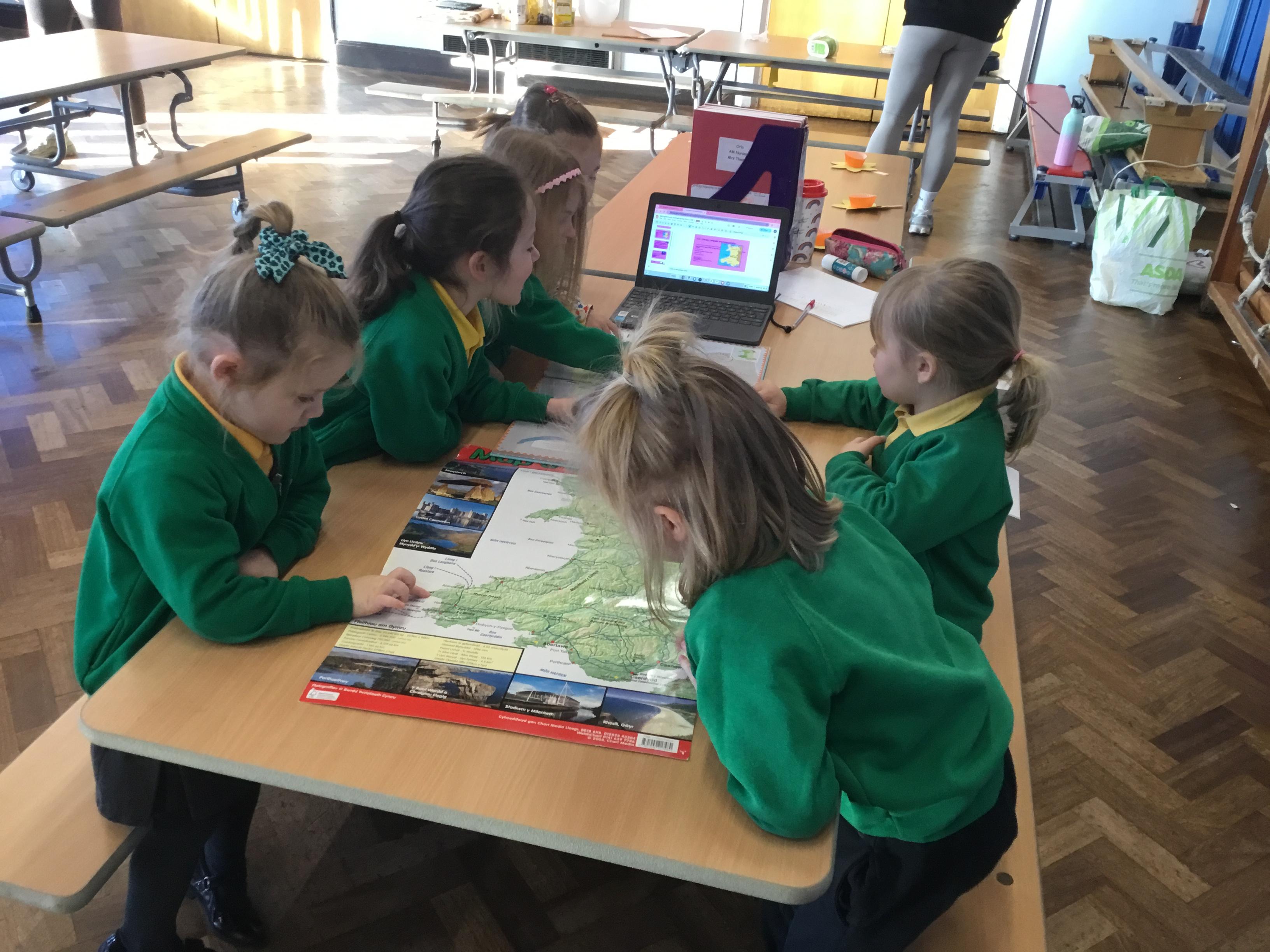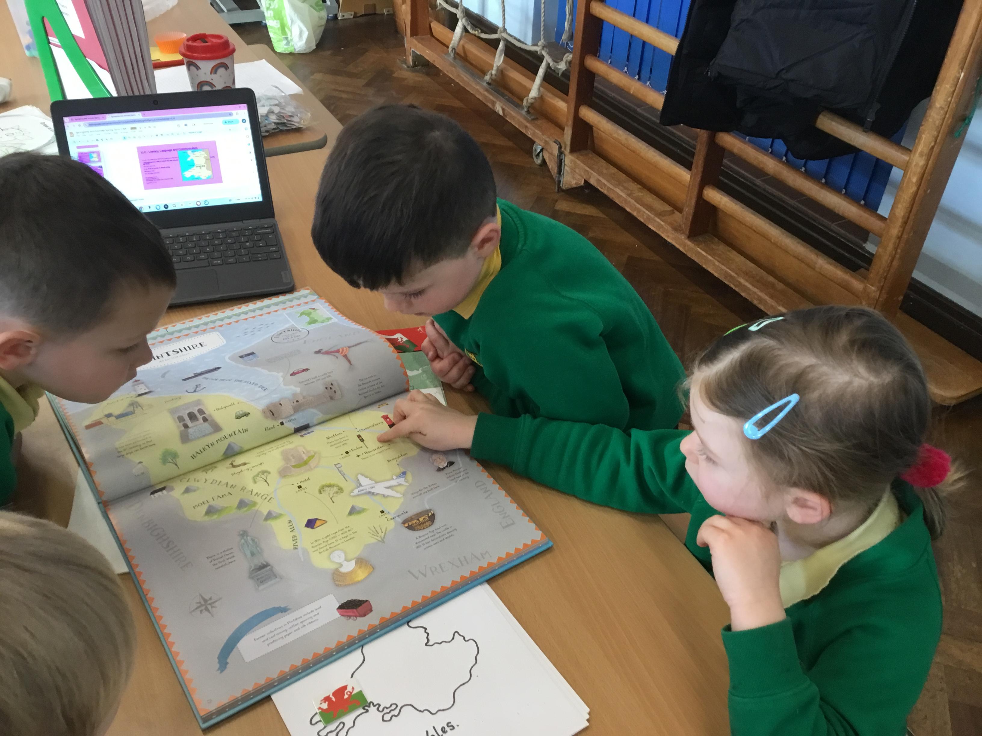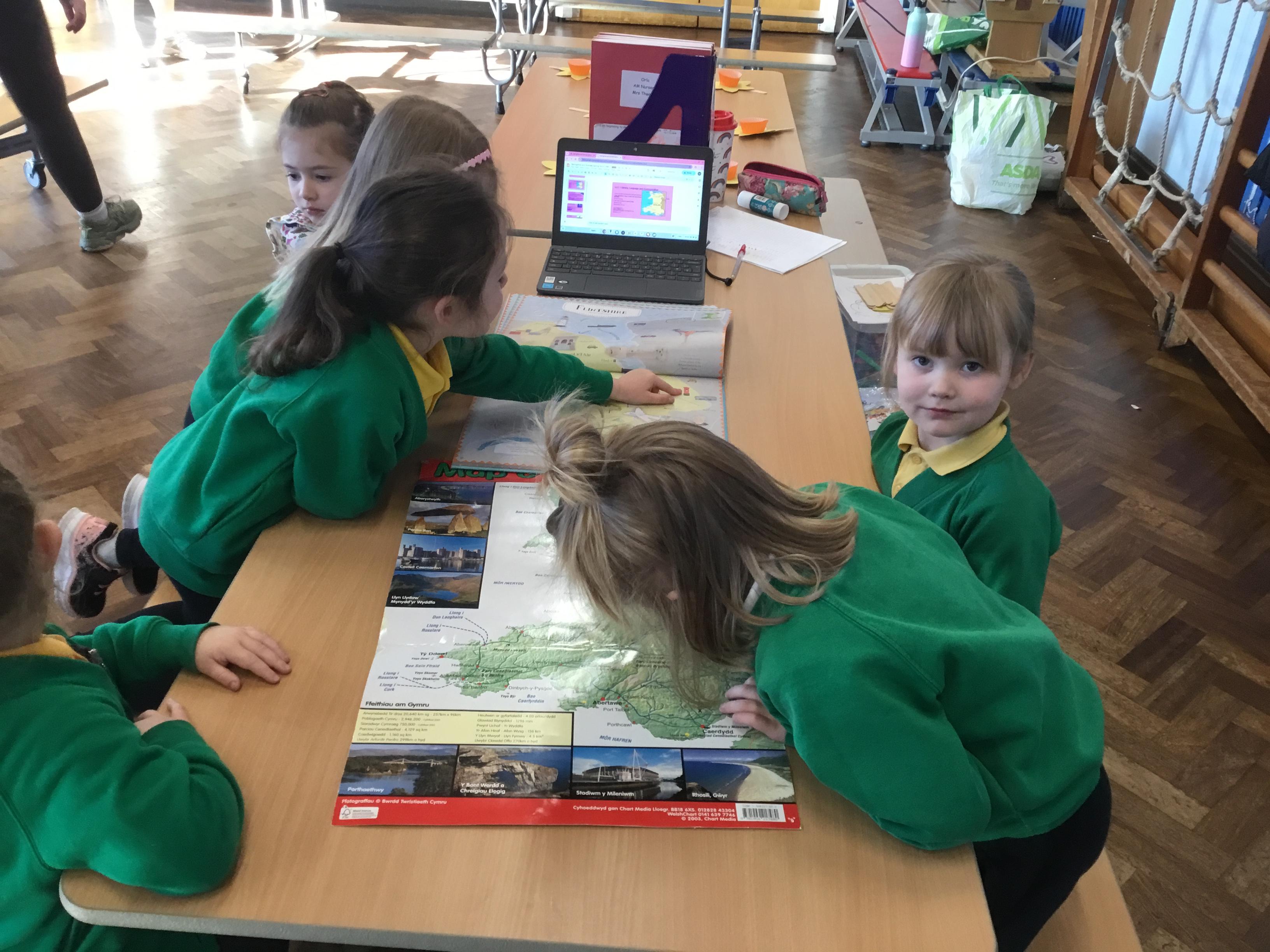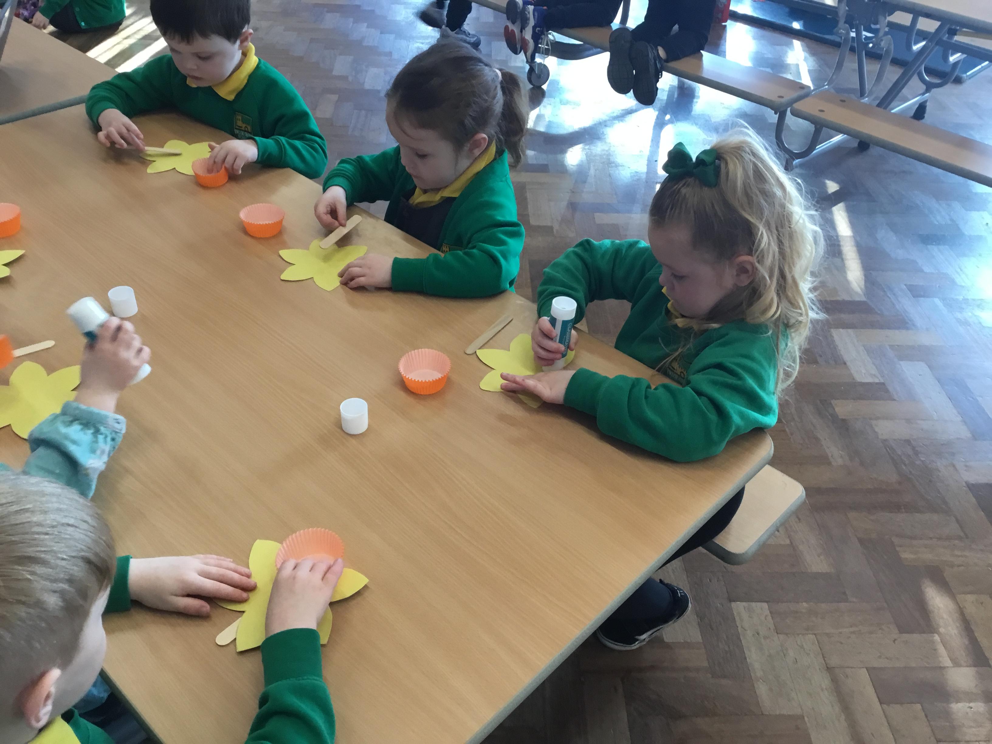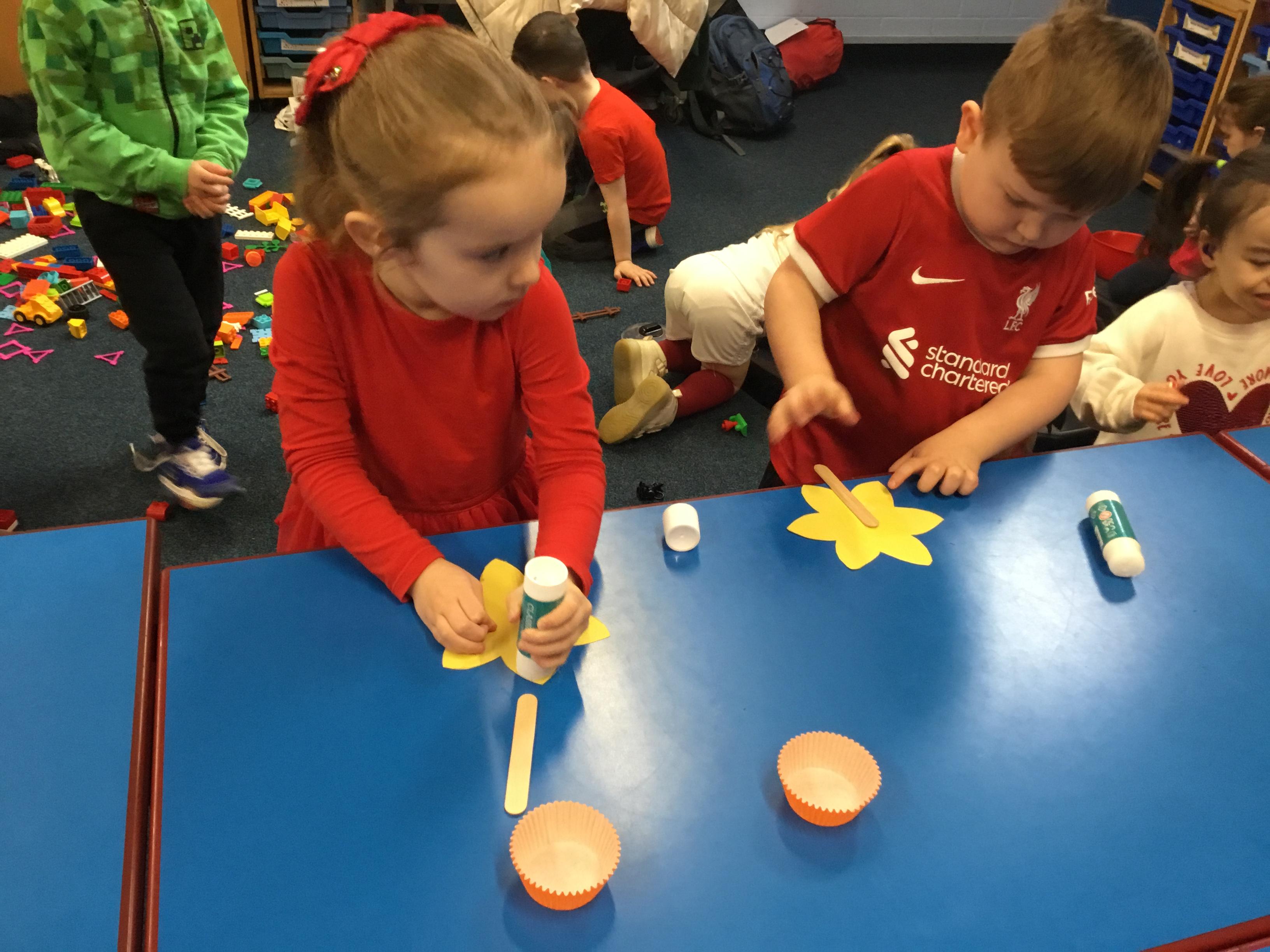 The Children enjoying their first week back. They have enjoyed learning and exploring about St David and Wales. We have been making Welsh cakes, looking at maps and where we live, making Daffodils and drawing Dragons.