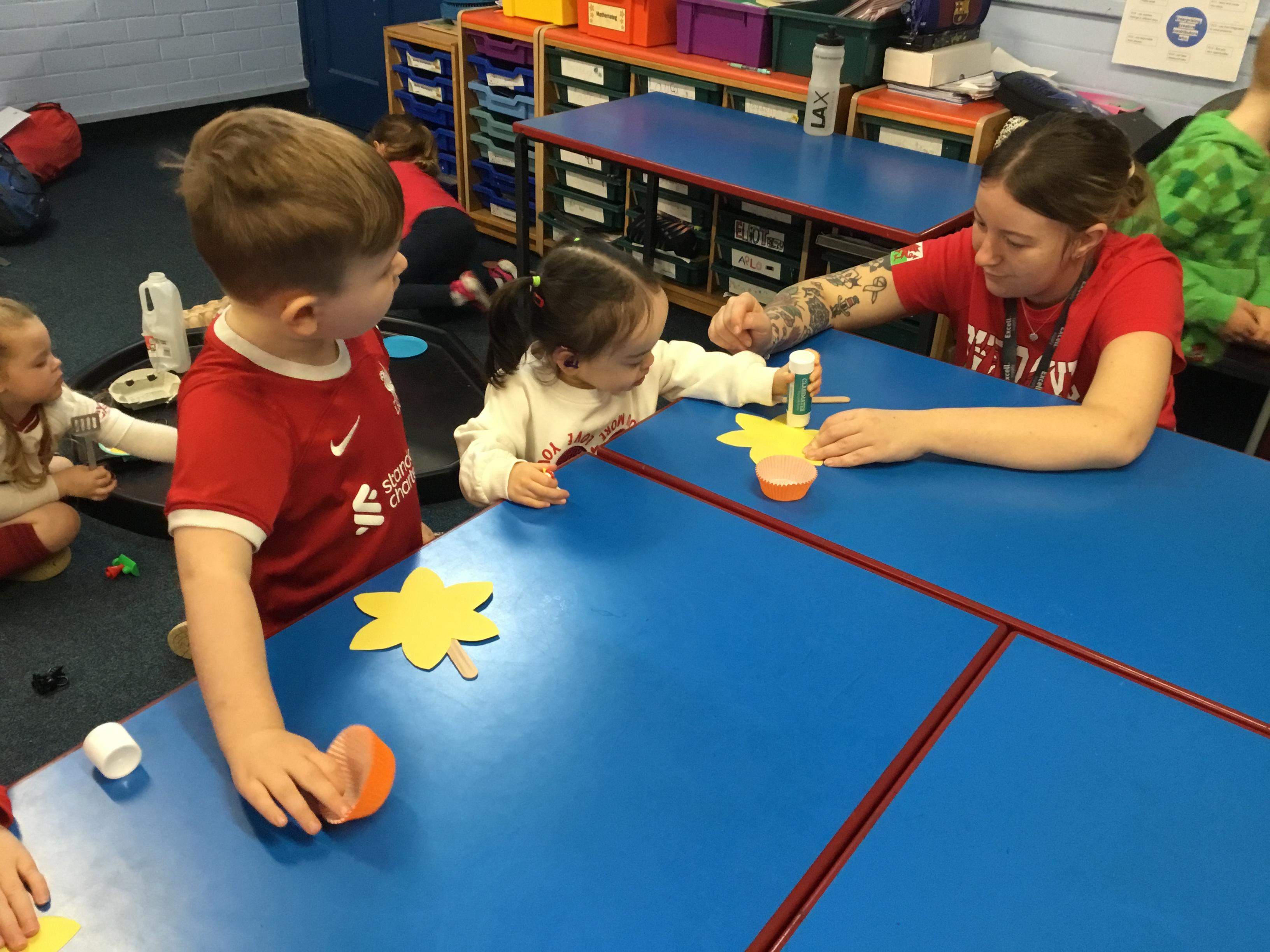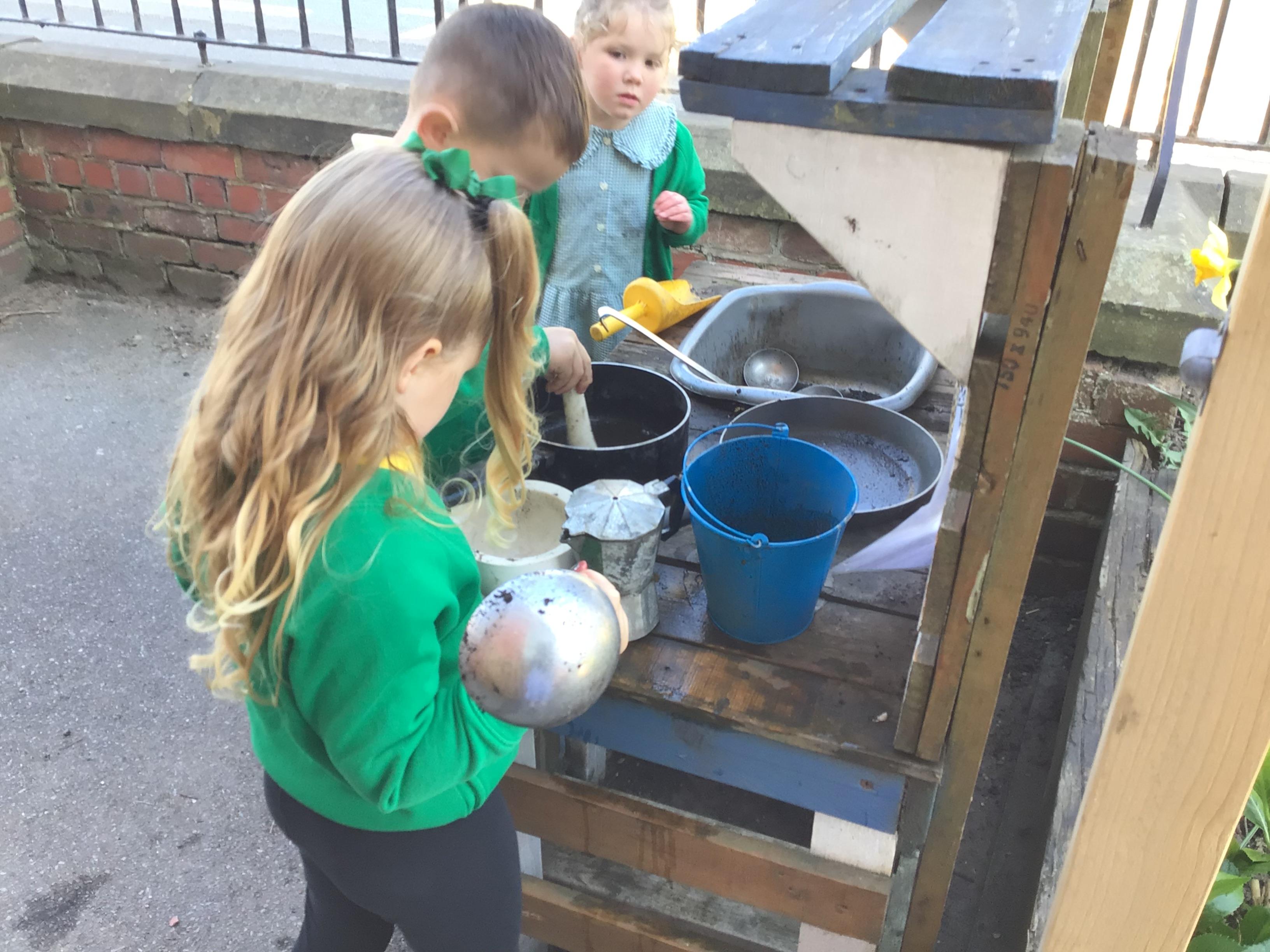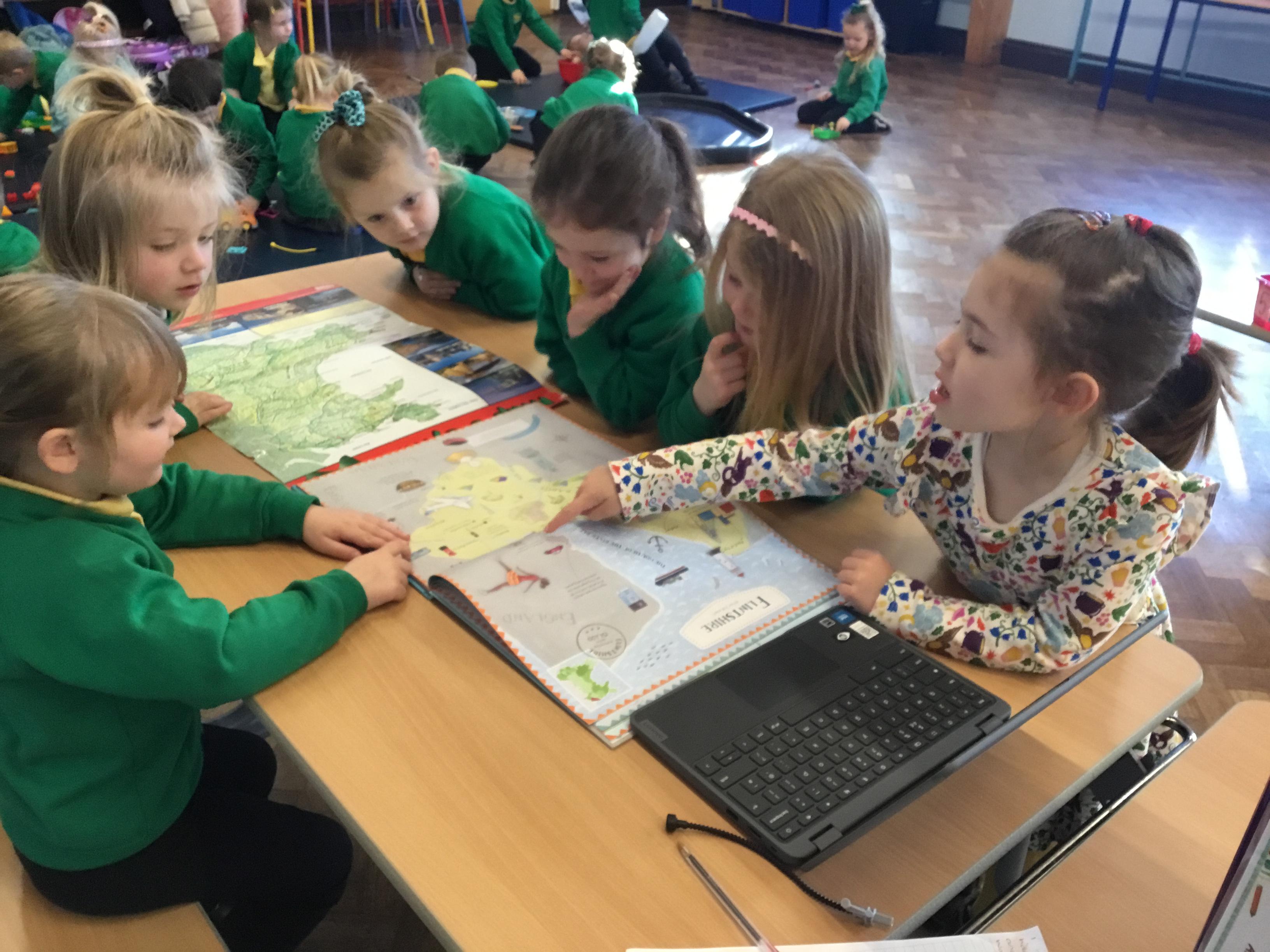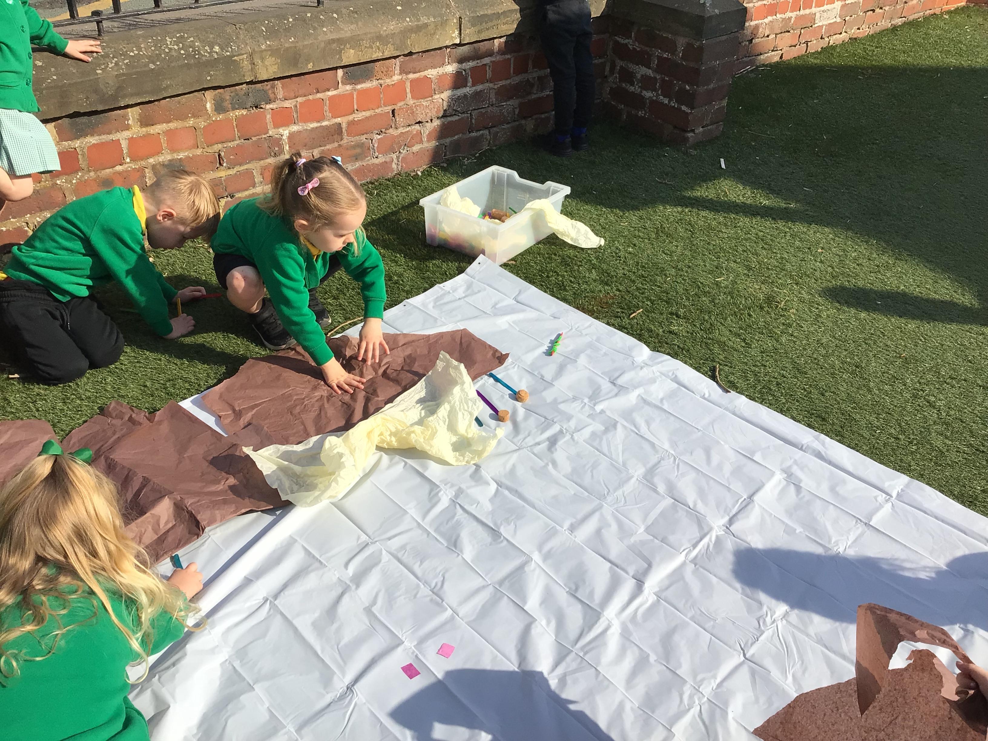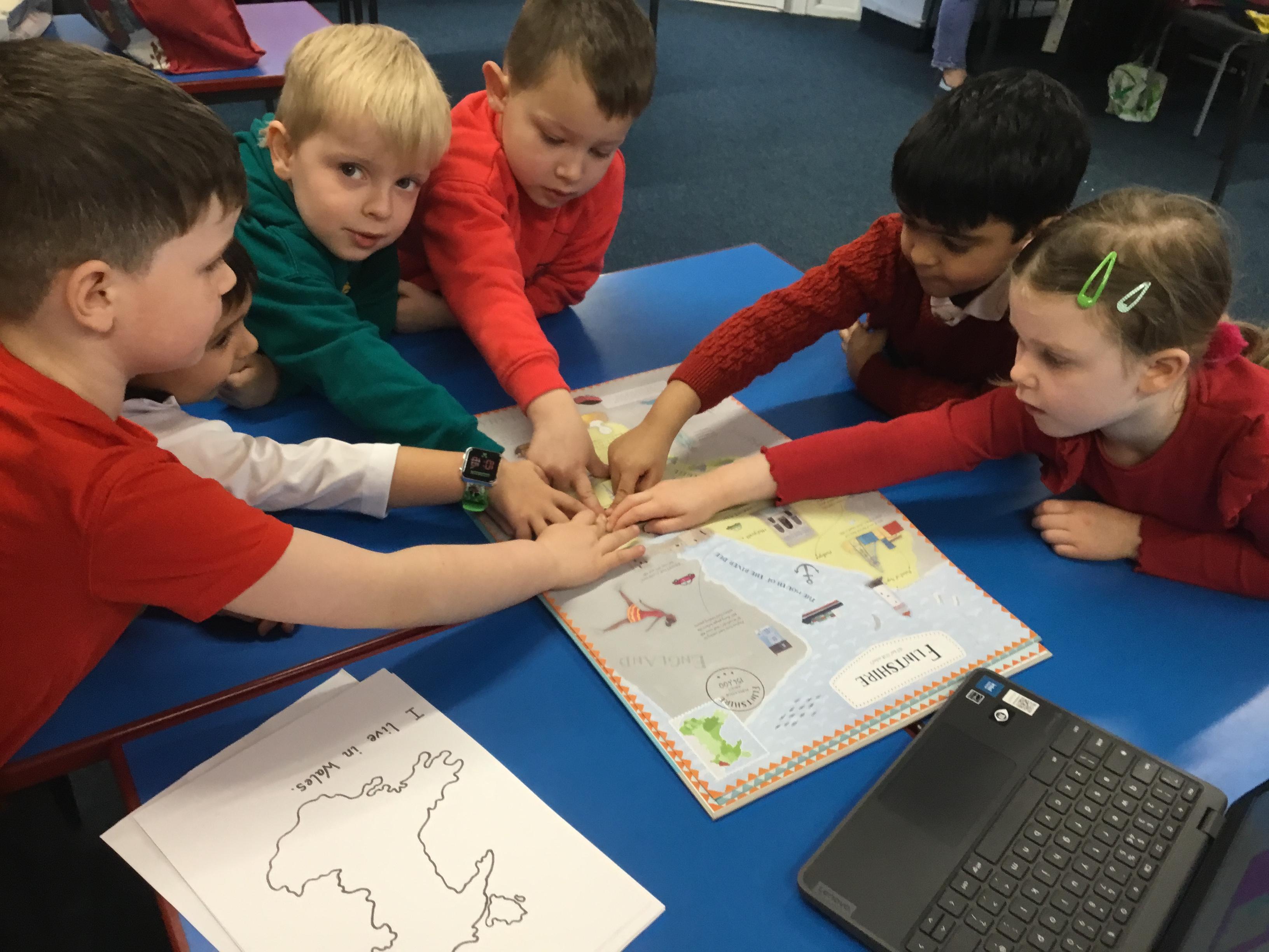 The Children enjoying their first week back. They have enjoyed learning and exploring about St David and Wales. We have been making Welsh cakes, looking at maps and where we live, making Daffodils and drawing Dragons.