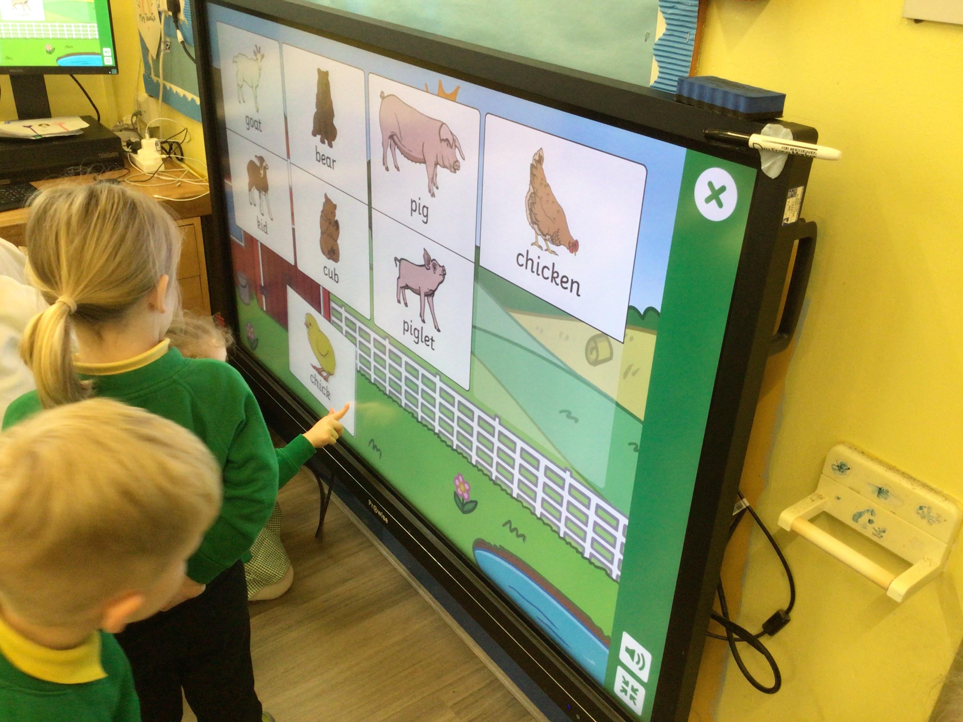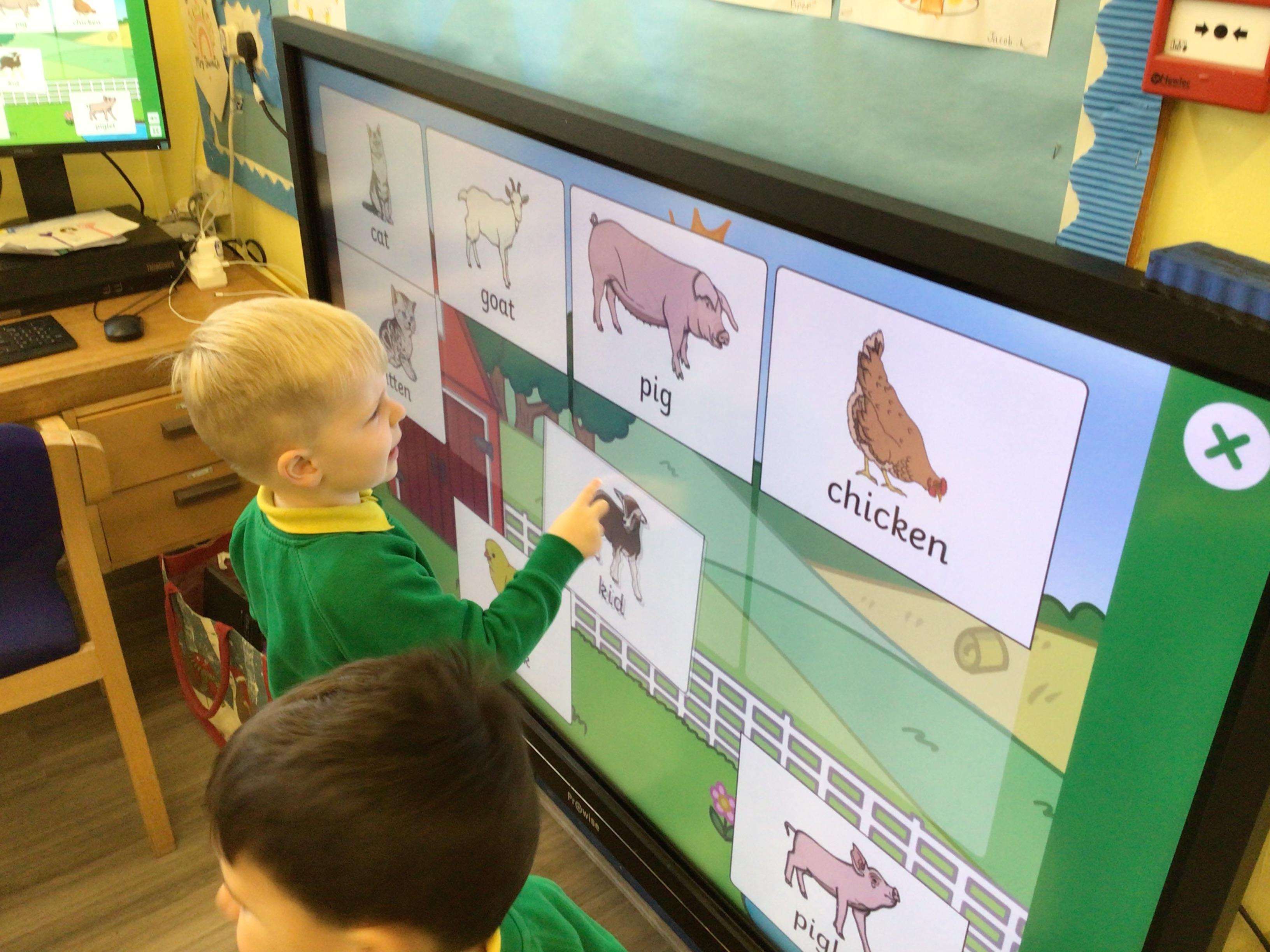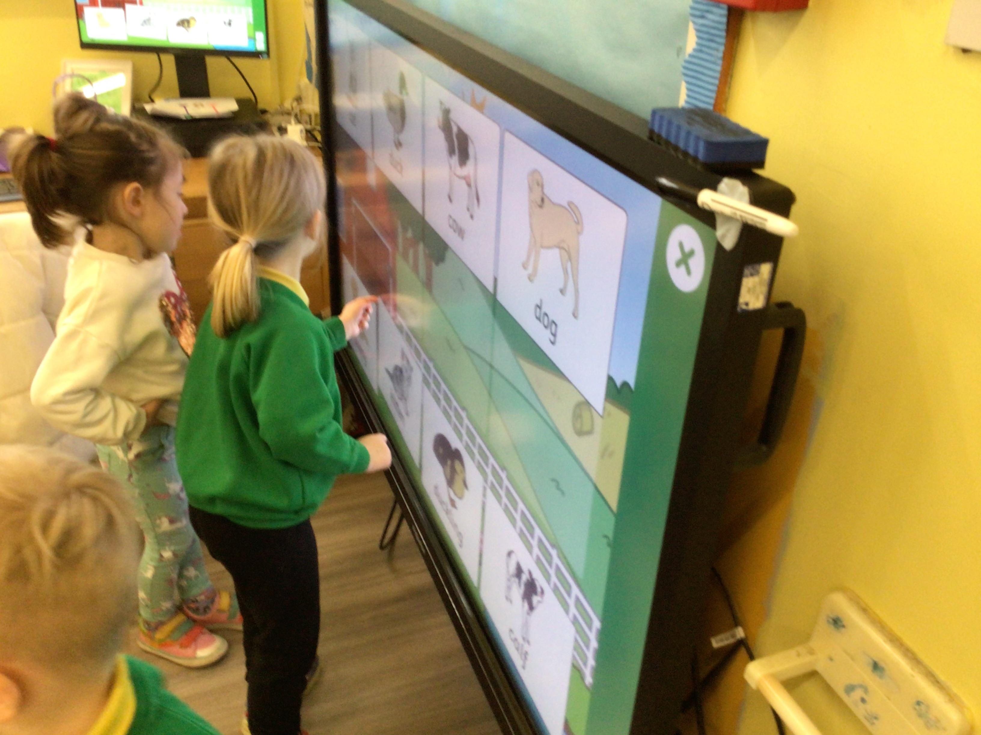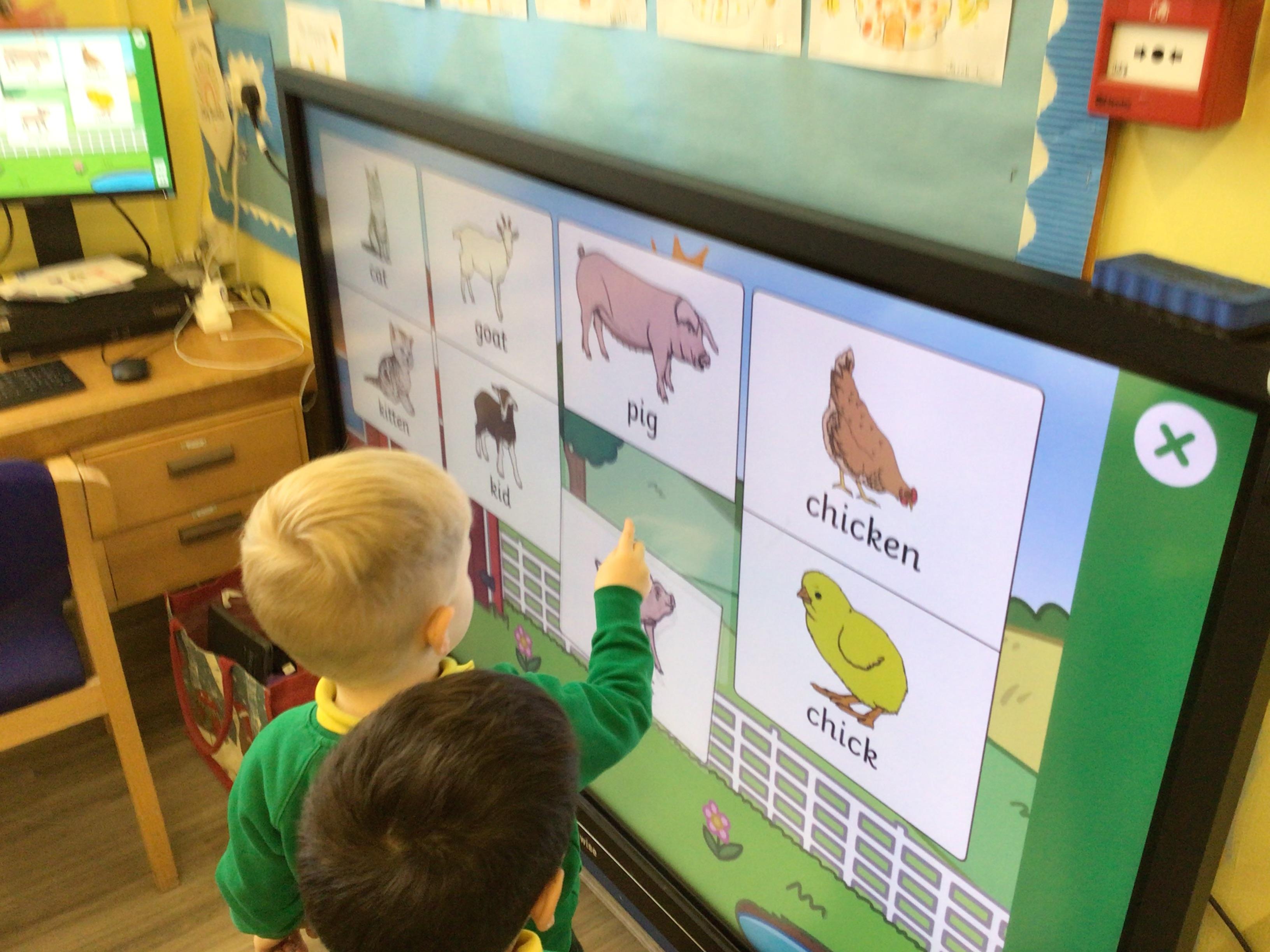 This week we have been looking at animals and making animals using shapes. The children have enjoyed playing in the vets and looking after the animals.The children have been exploring a matching game, on the interactive board.