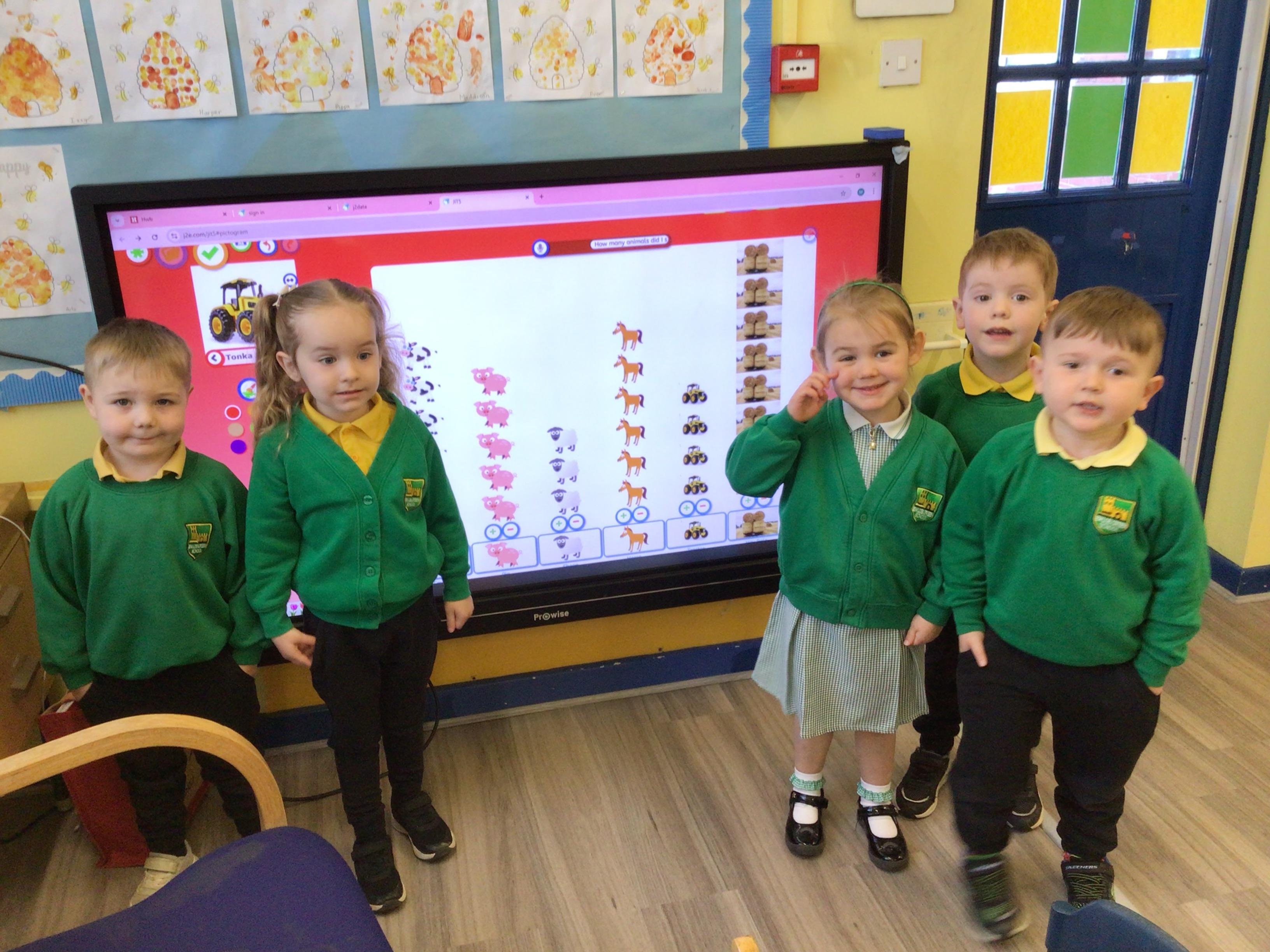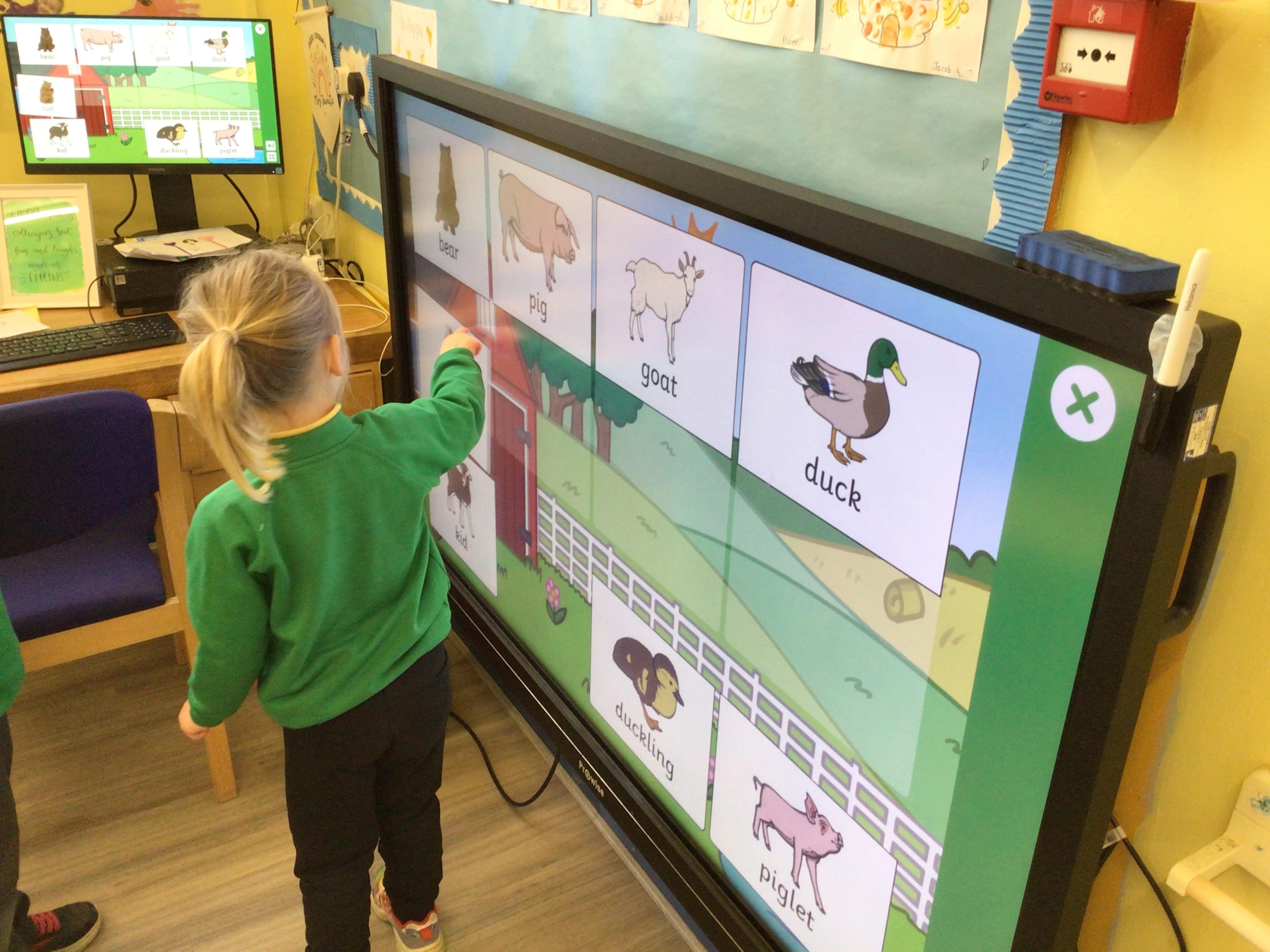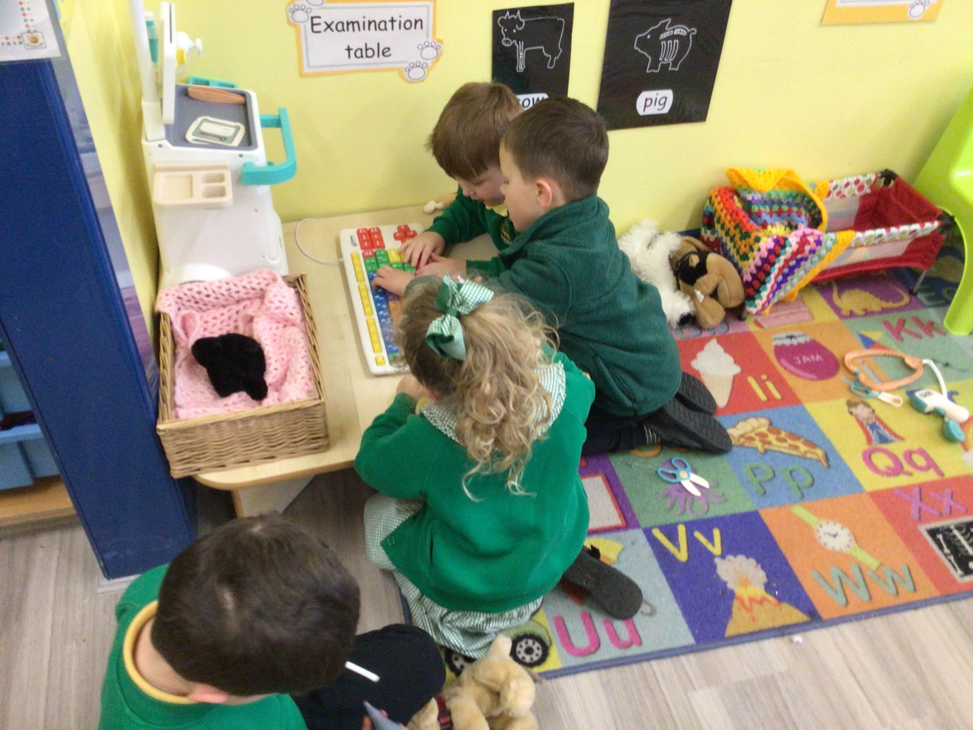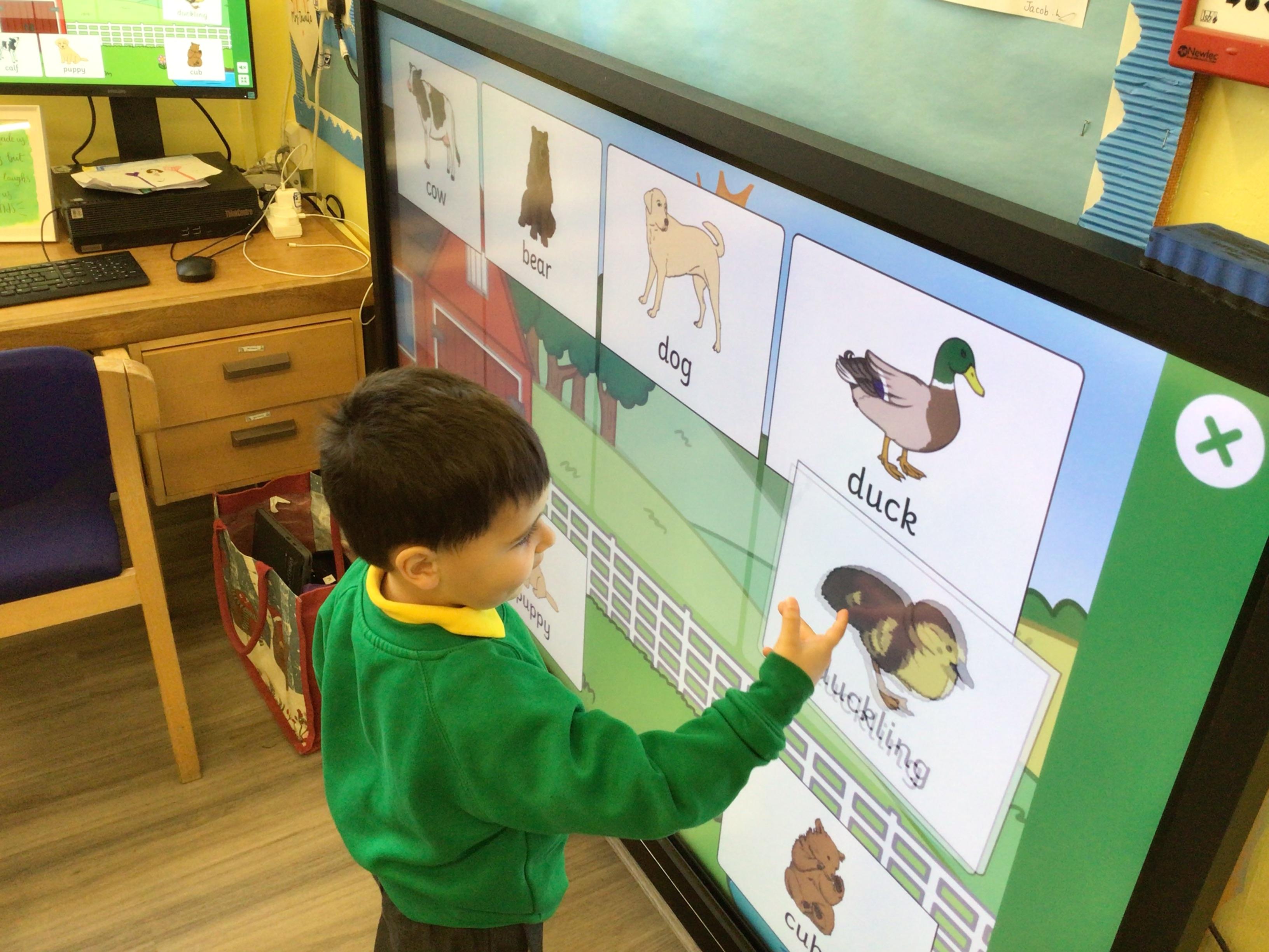 This week we have been looking at animals and making animals using shapes. The children have enjoyed playing in the vets and looking after the animals.The children have been exploring a matching game, on the interactive board.