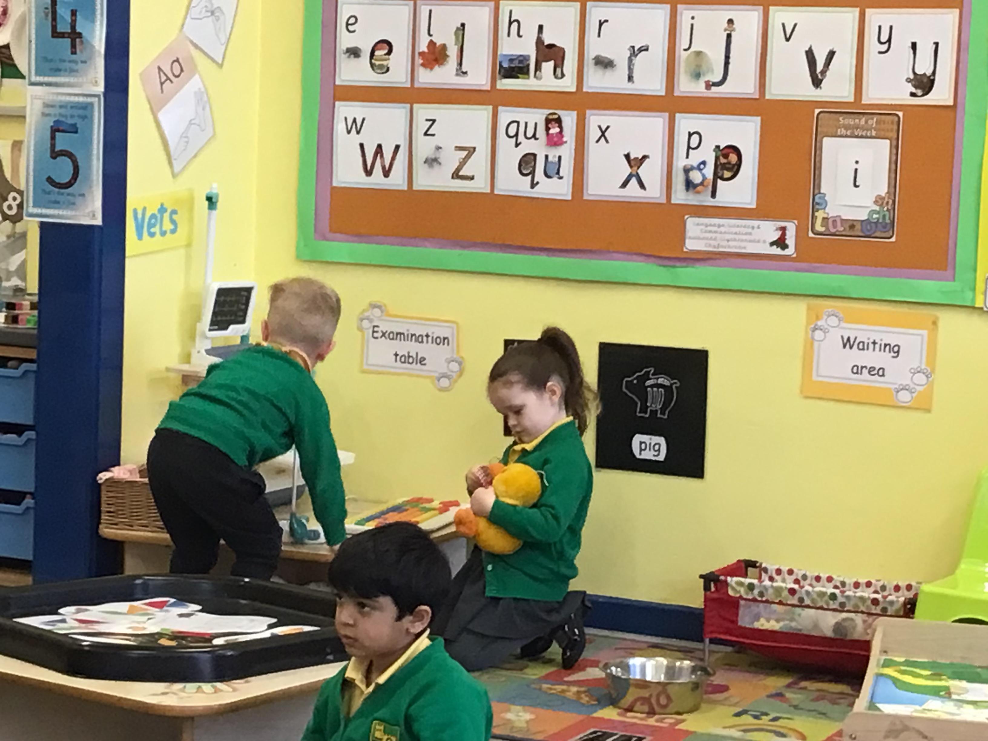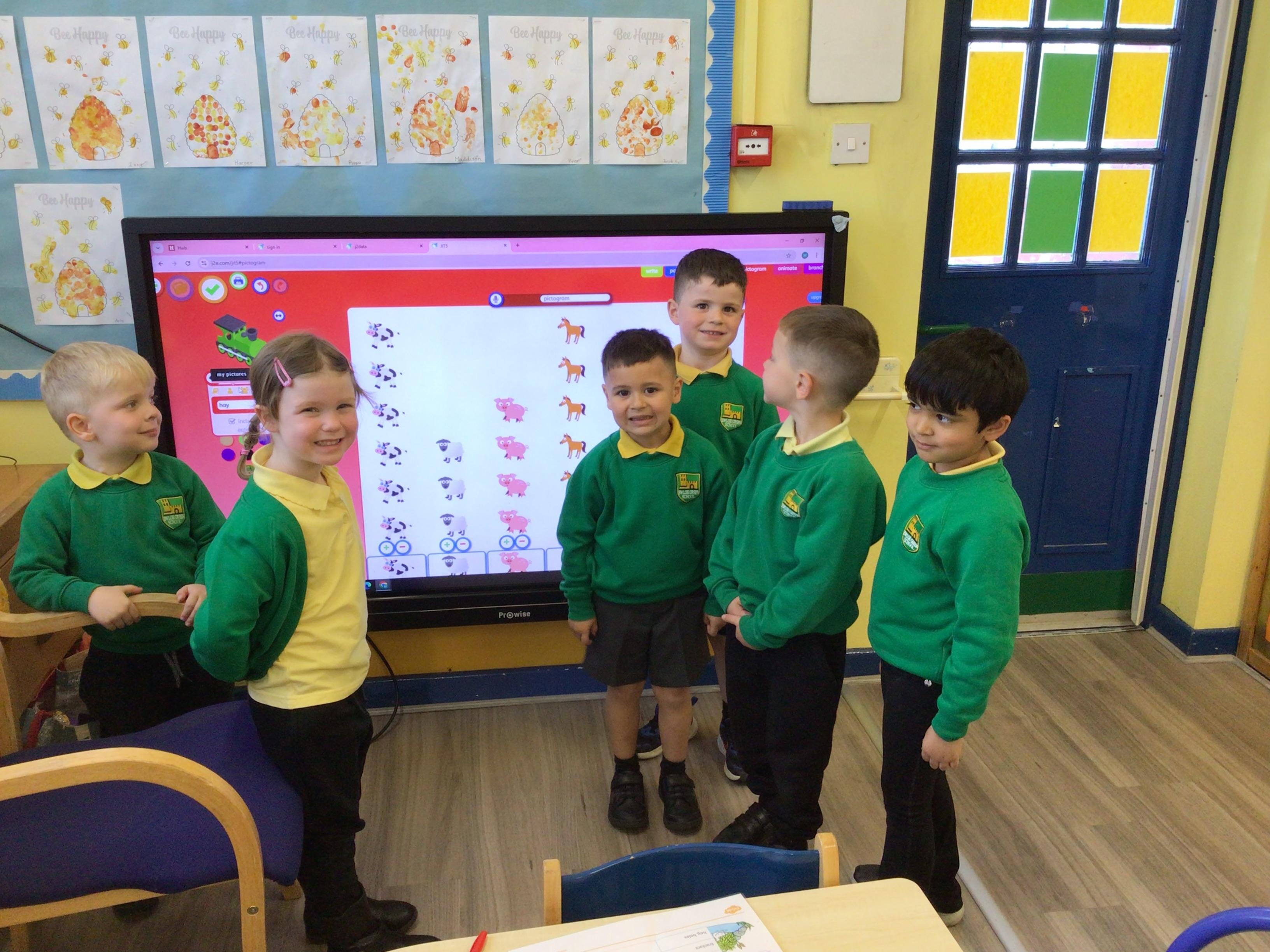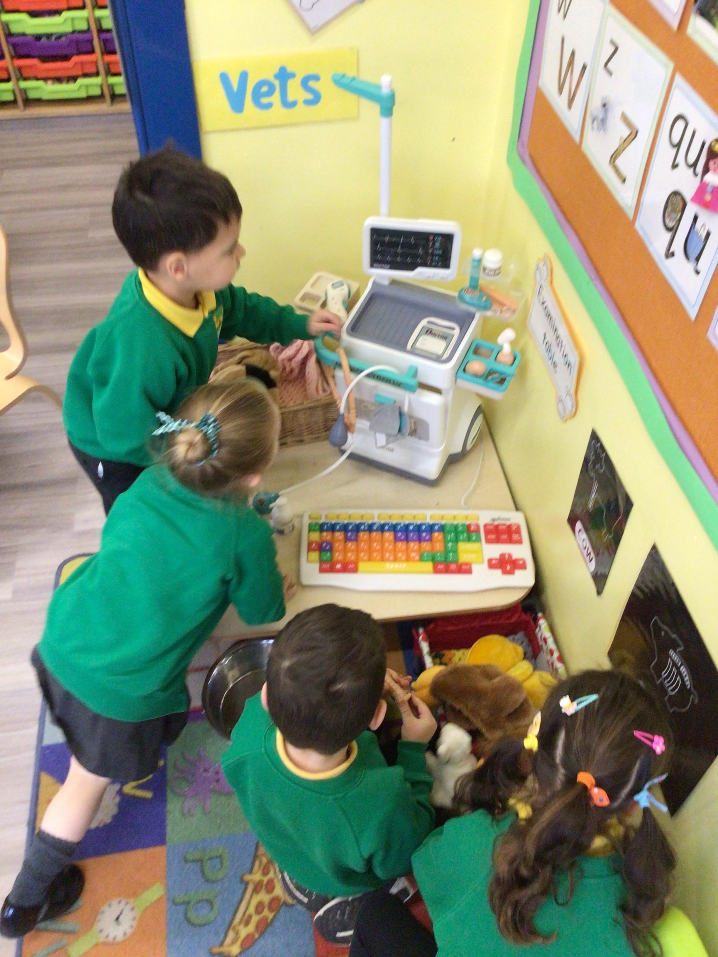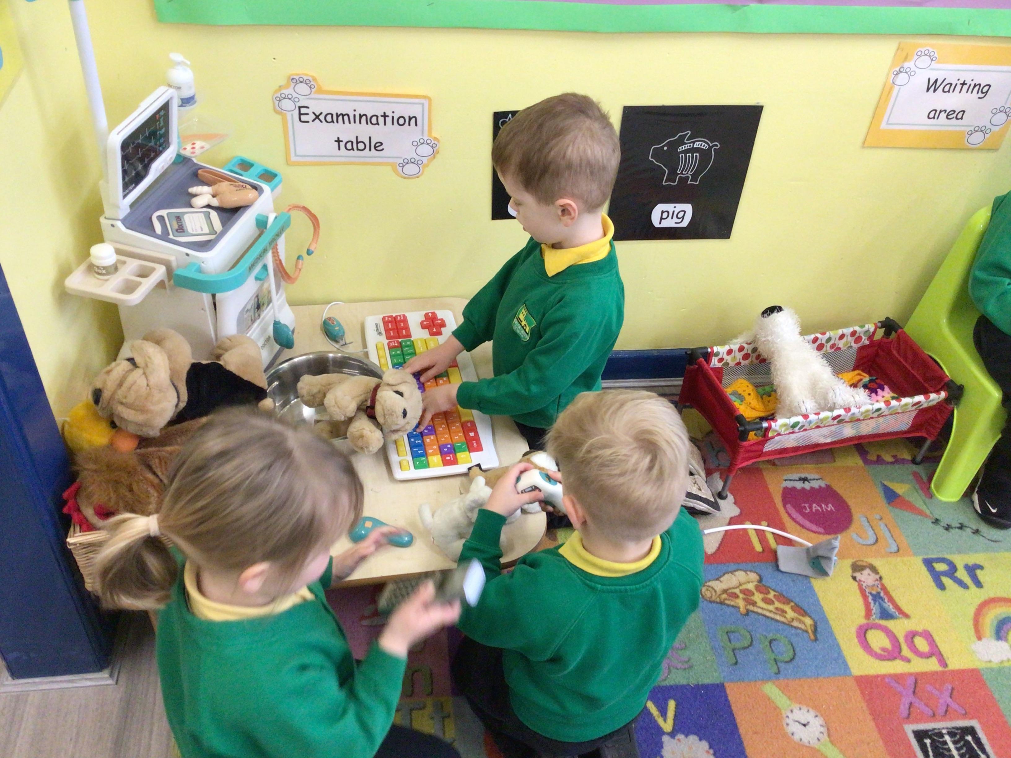 This week we have been looking at animals and making animals using shapes. The children have enjoyed playing in the vets and looking after the animals.The children have been exploring a matching game, on the interactive board.