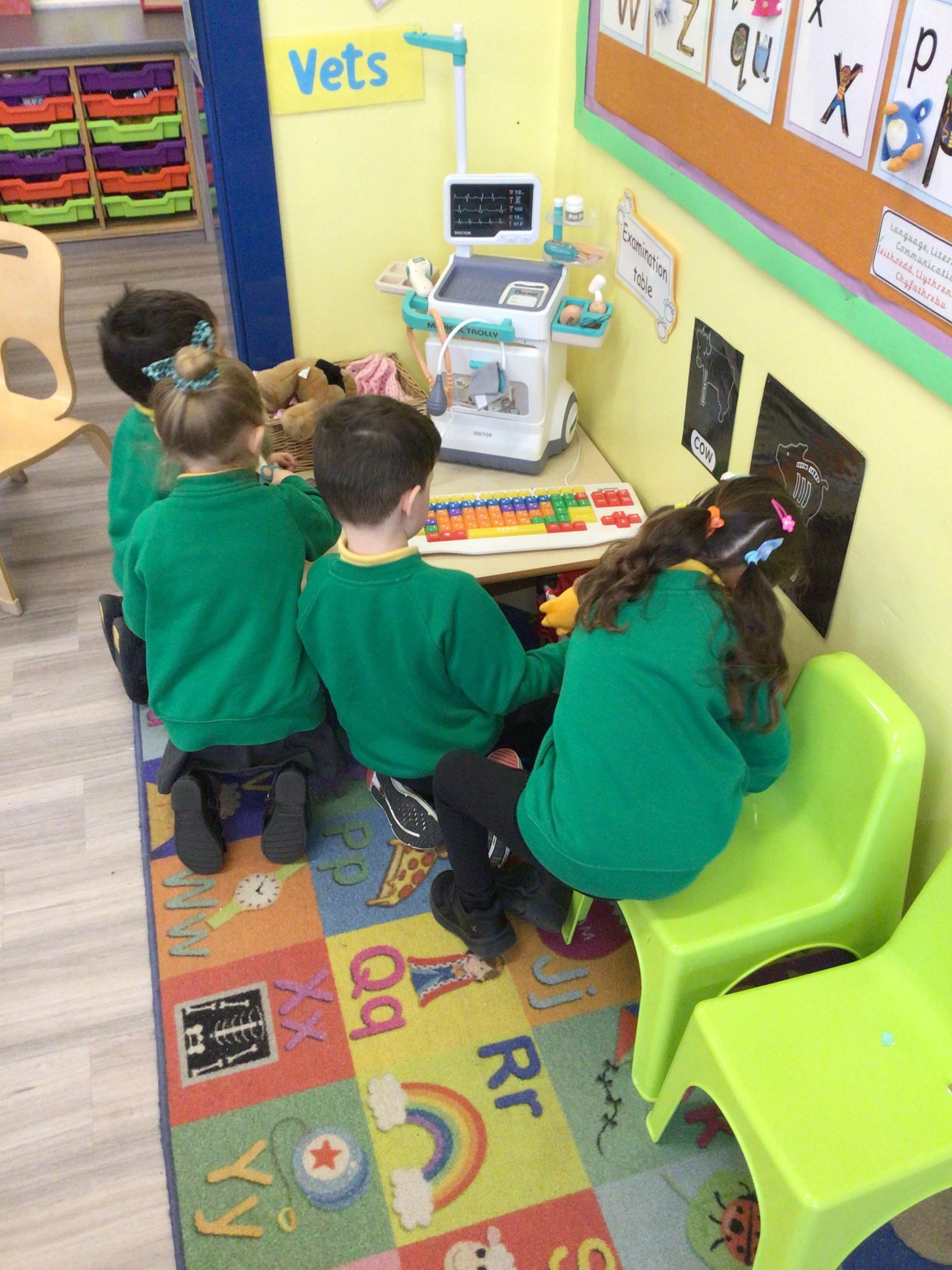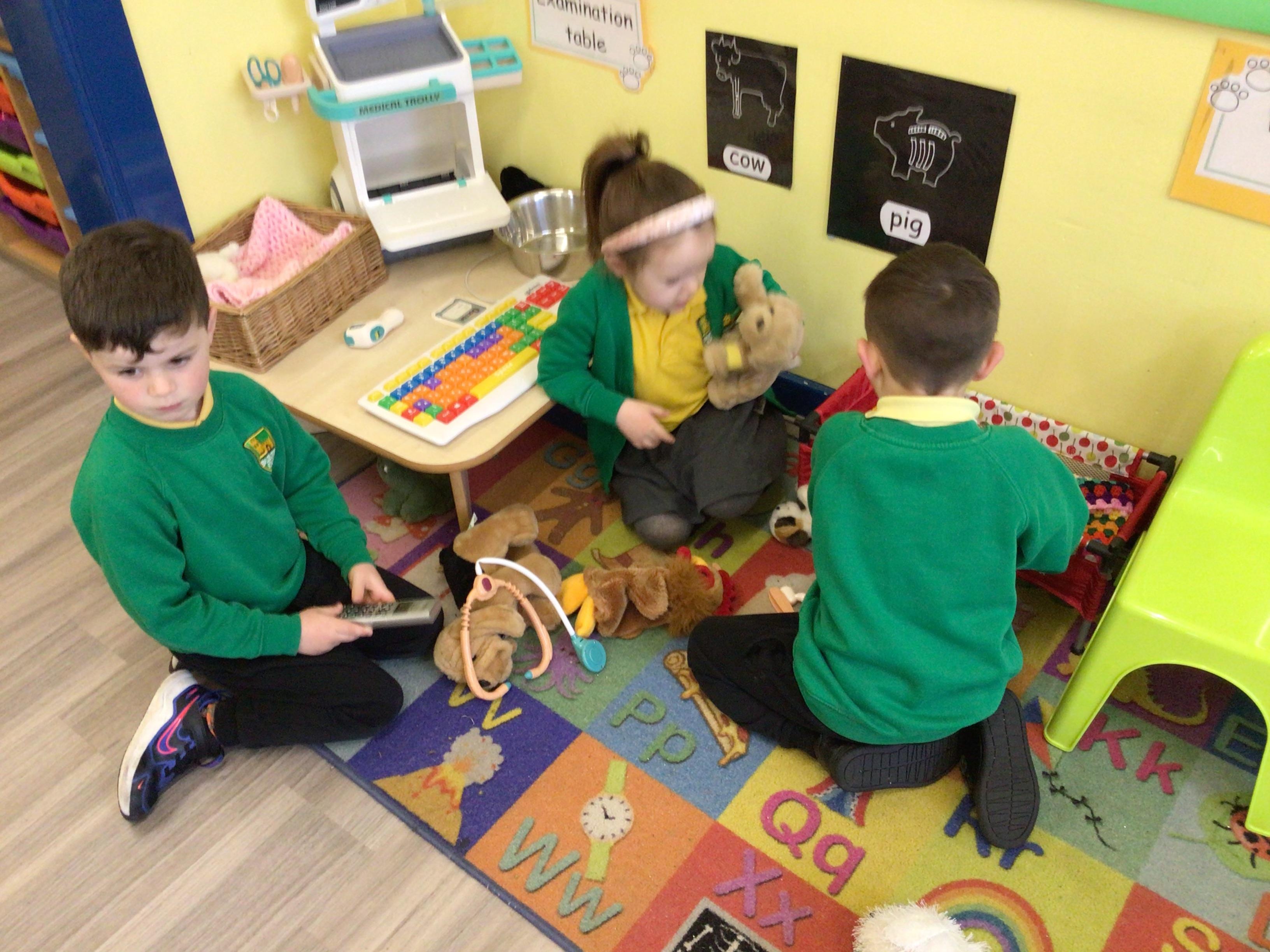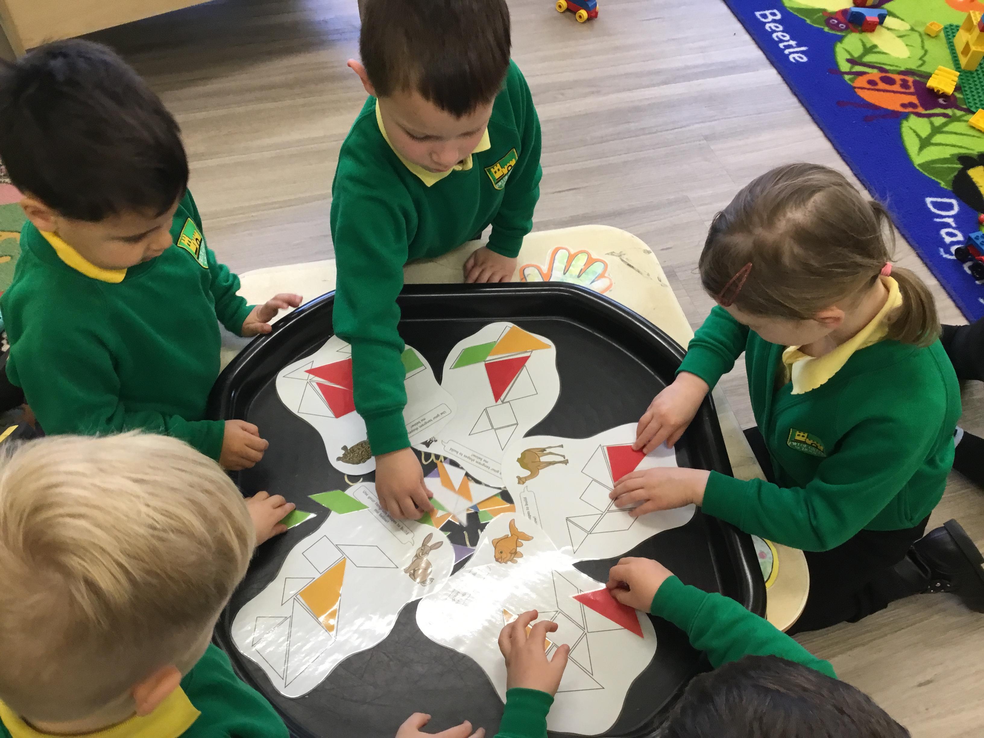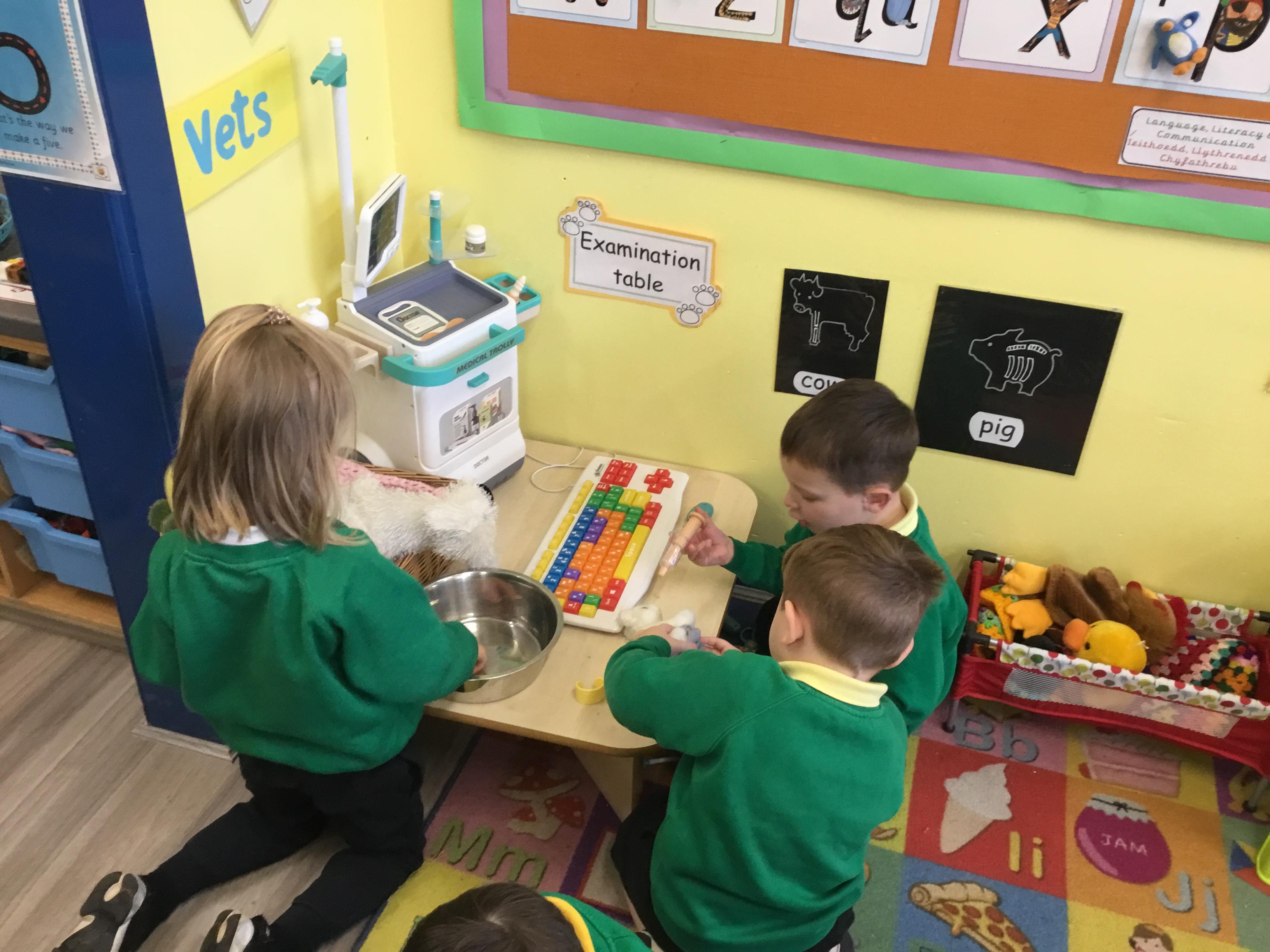 This week we have been looking at animals and making animals using shapes. The children have enjoyed playing in the vets and looking after the animals.The children have been exploring a matching game, on the interactive board.