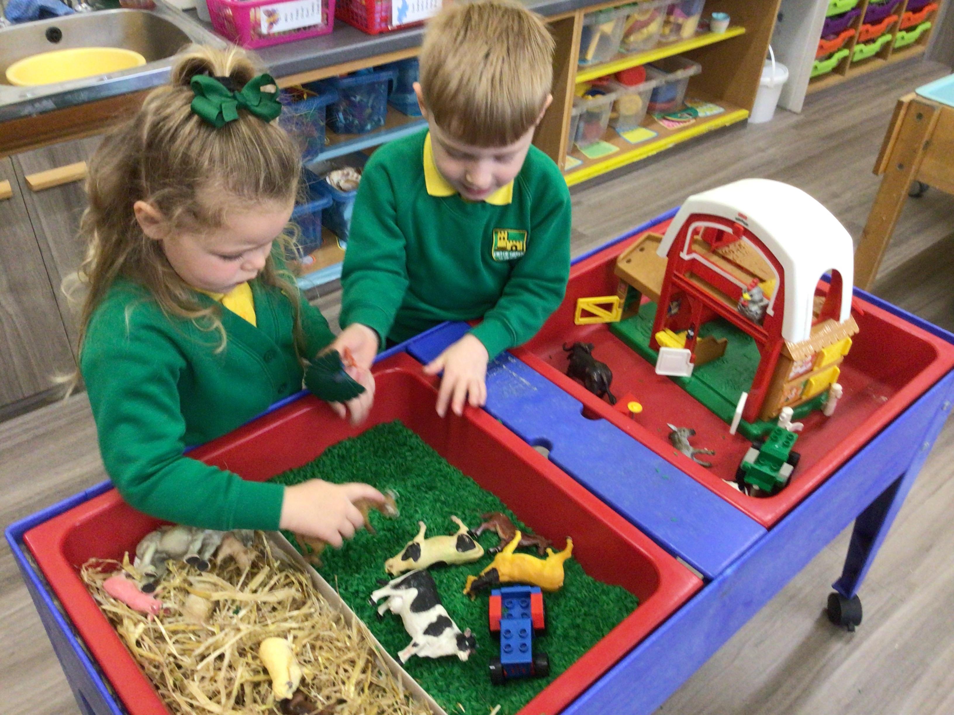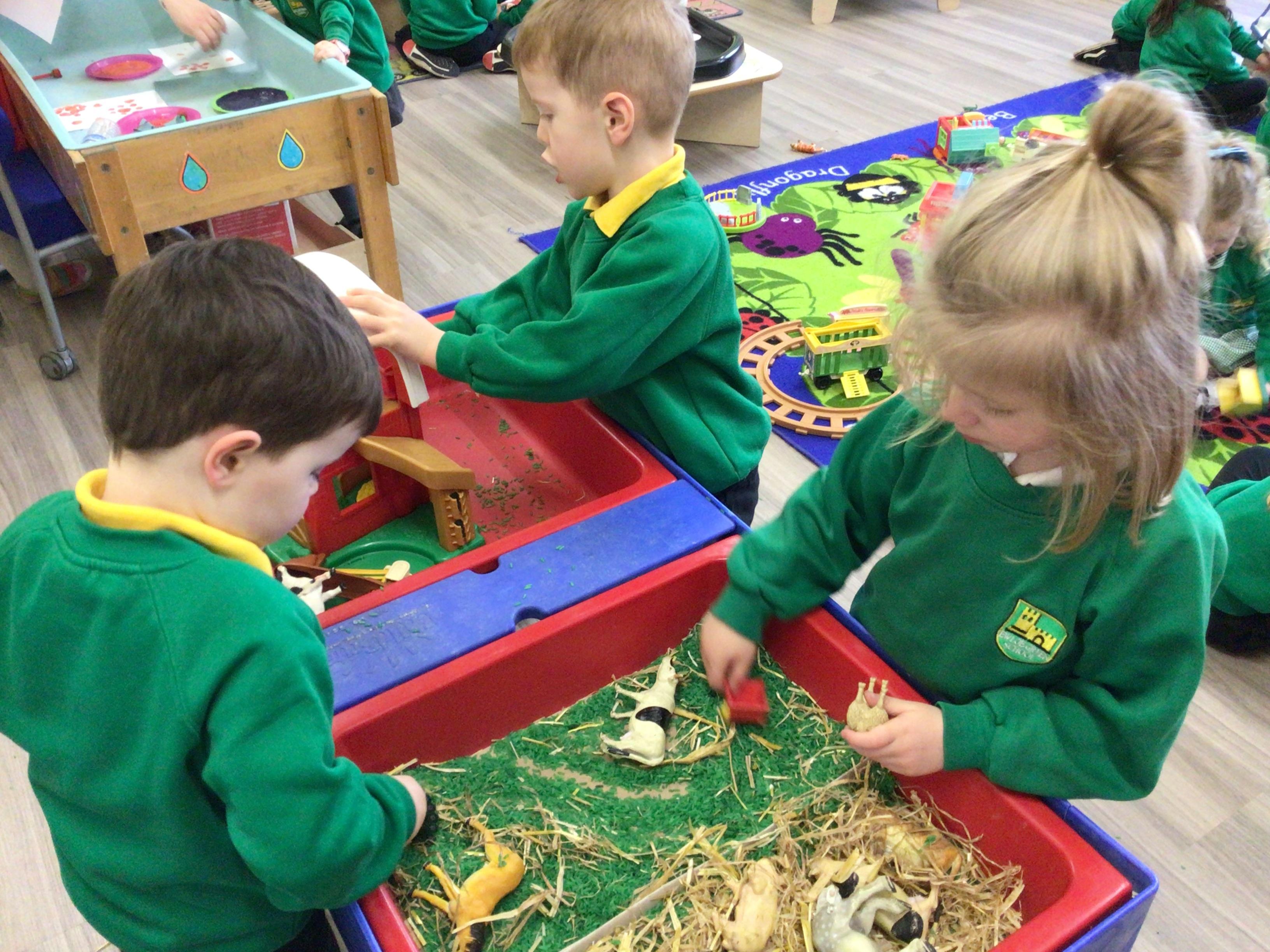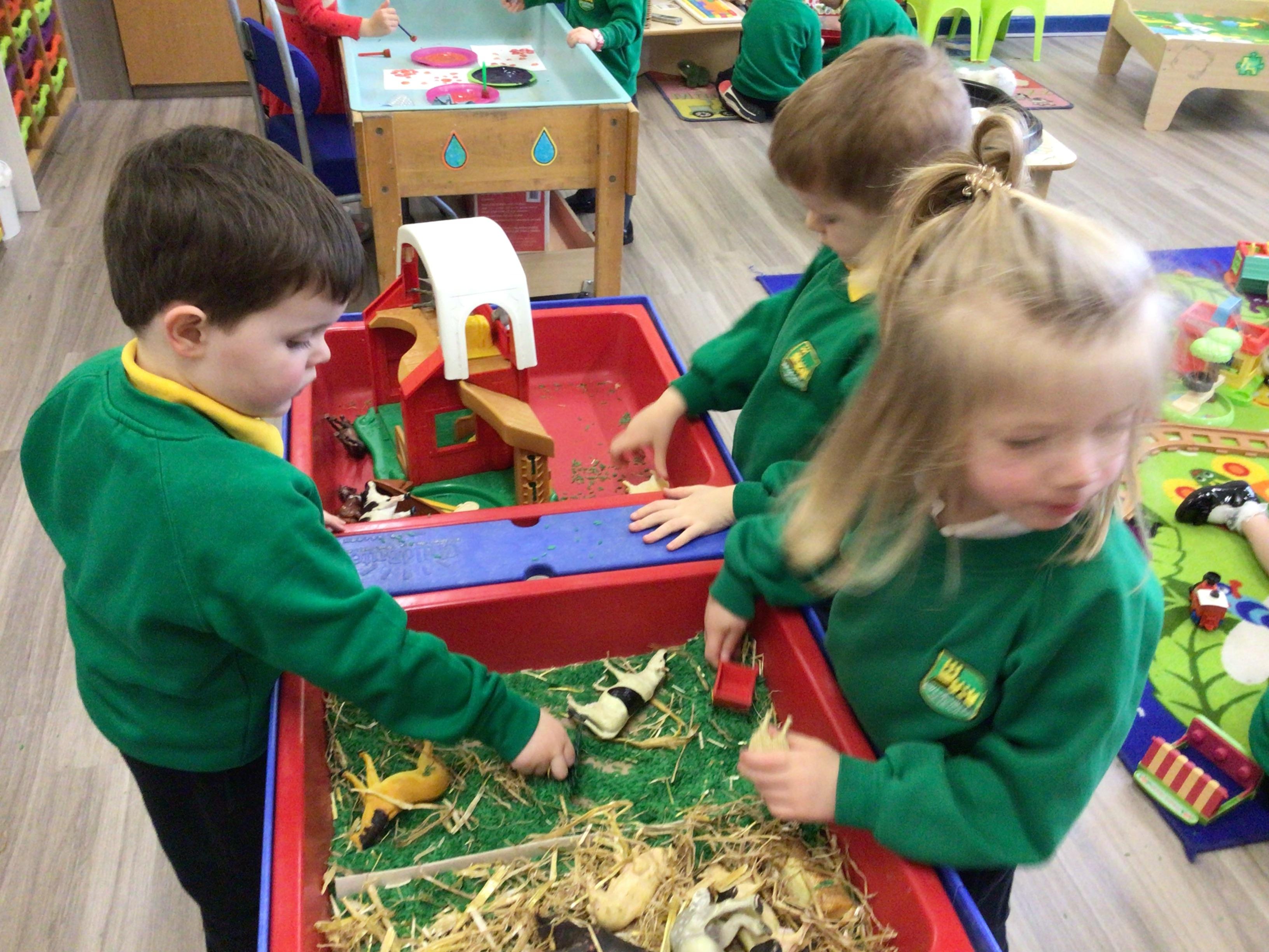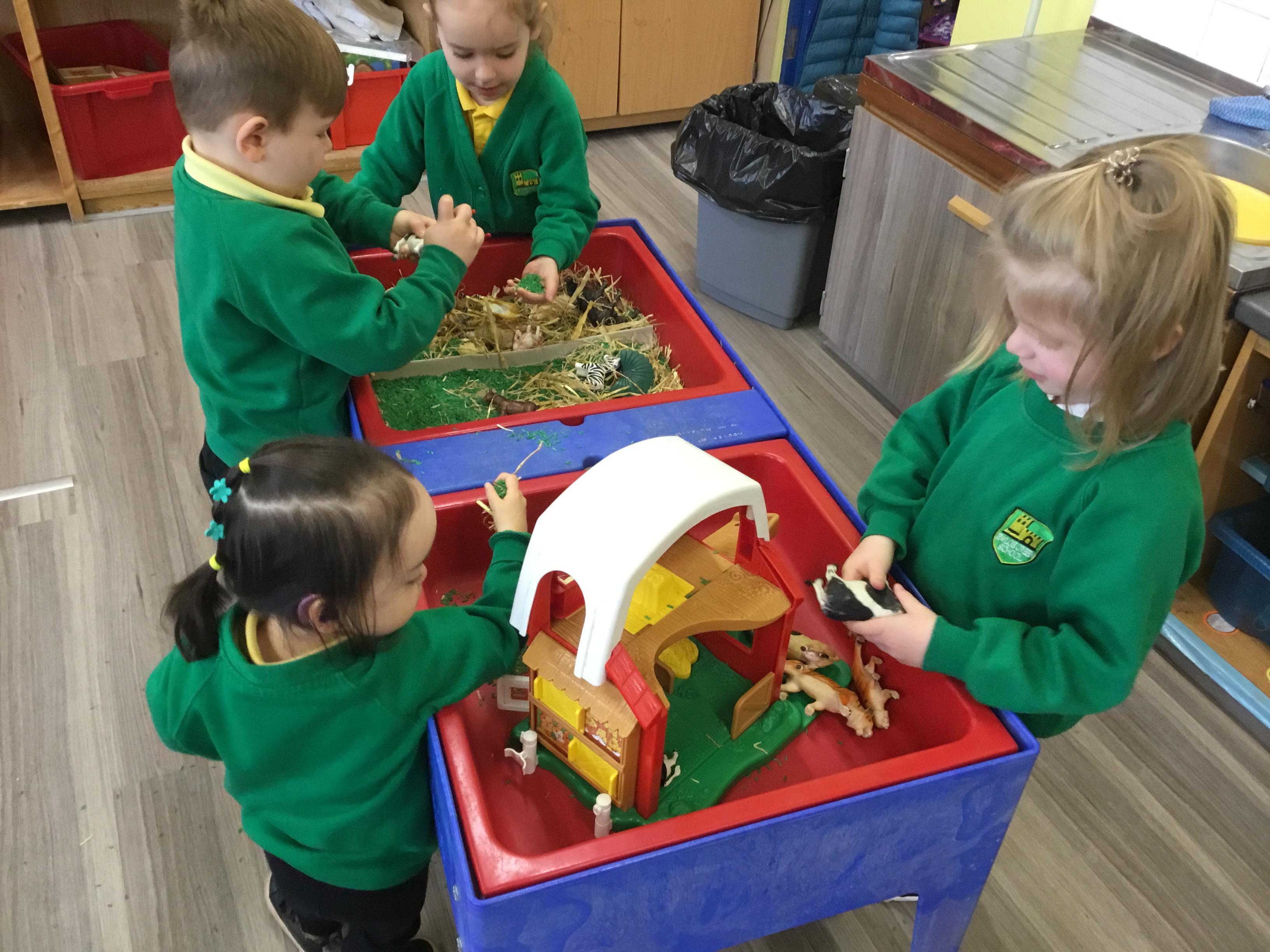 Nursery have been looking at animals this week and what animals live on a farm. The children have been exploring through shape, books and using the role play.