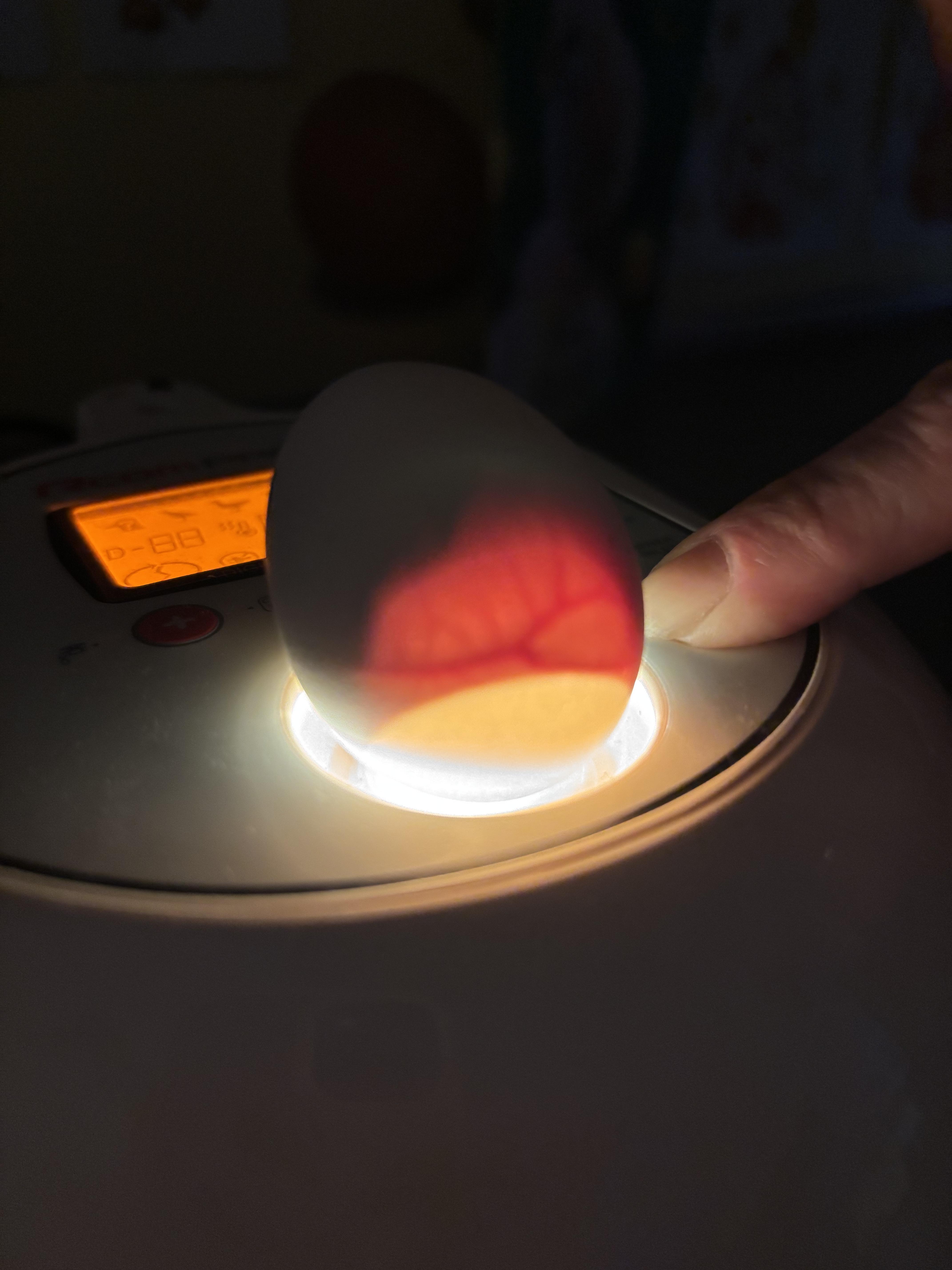 Red Nose Day 2025 and egg lamping. We have 5 chicks growing.
