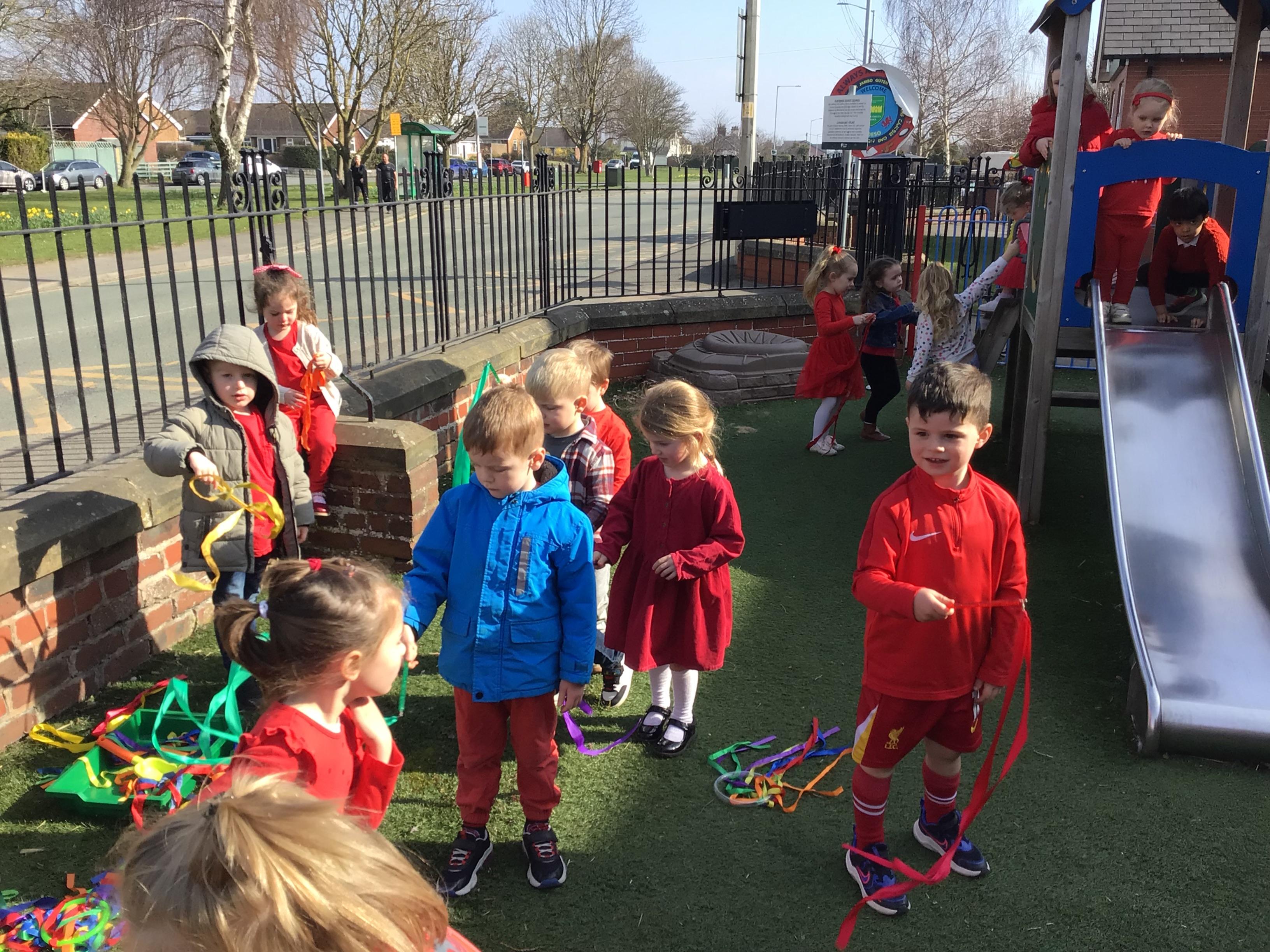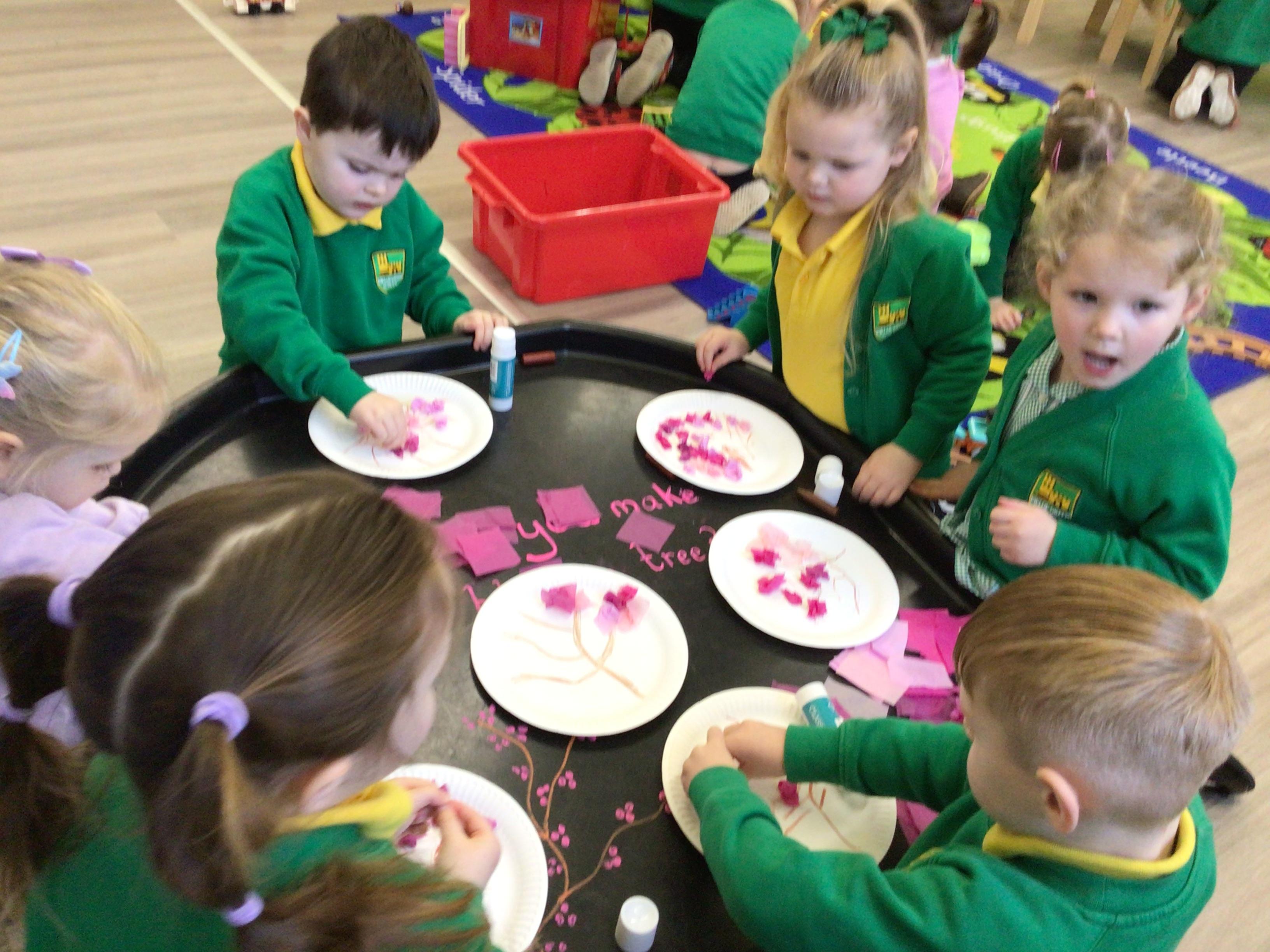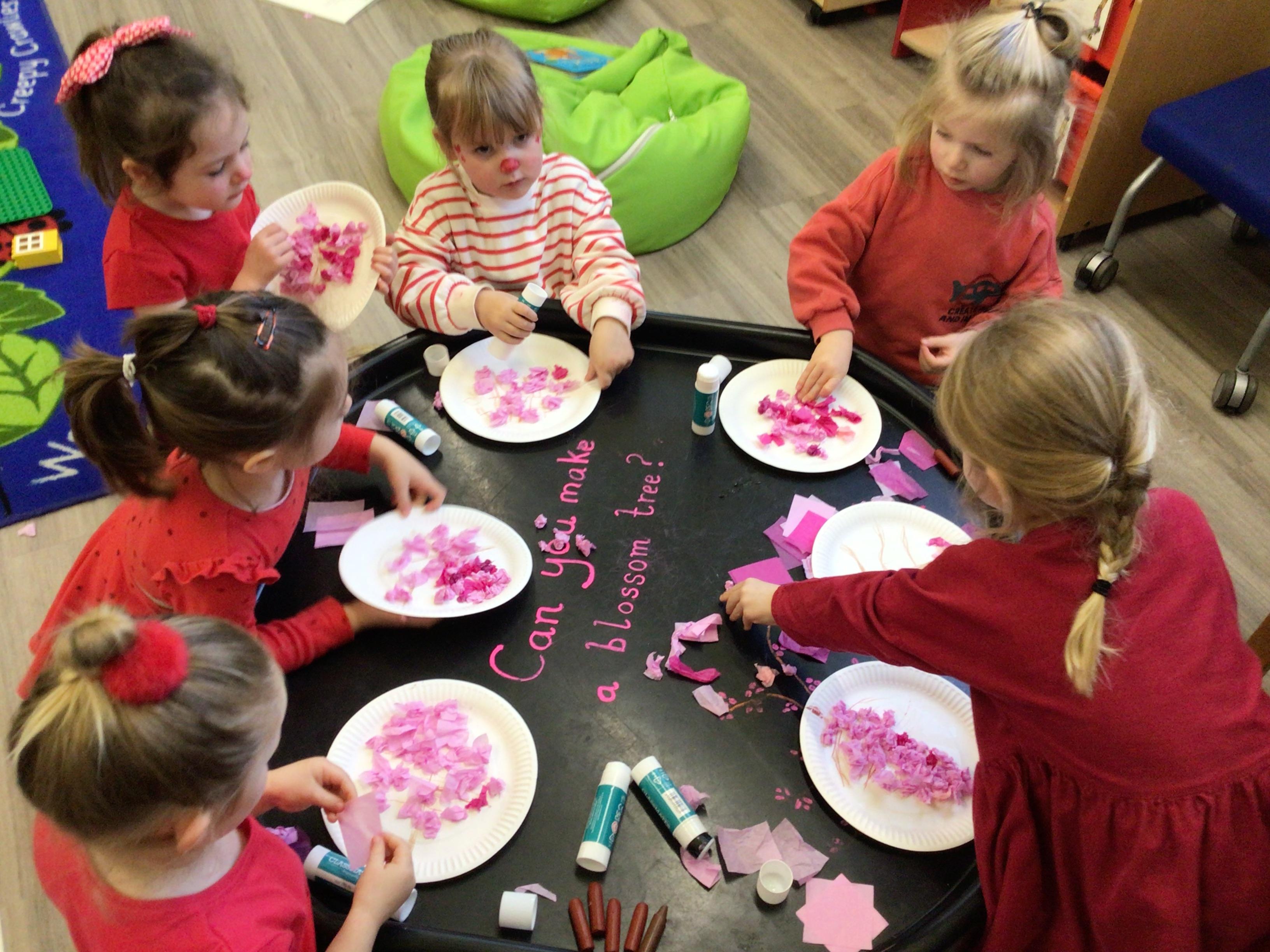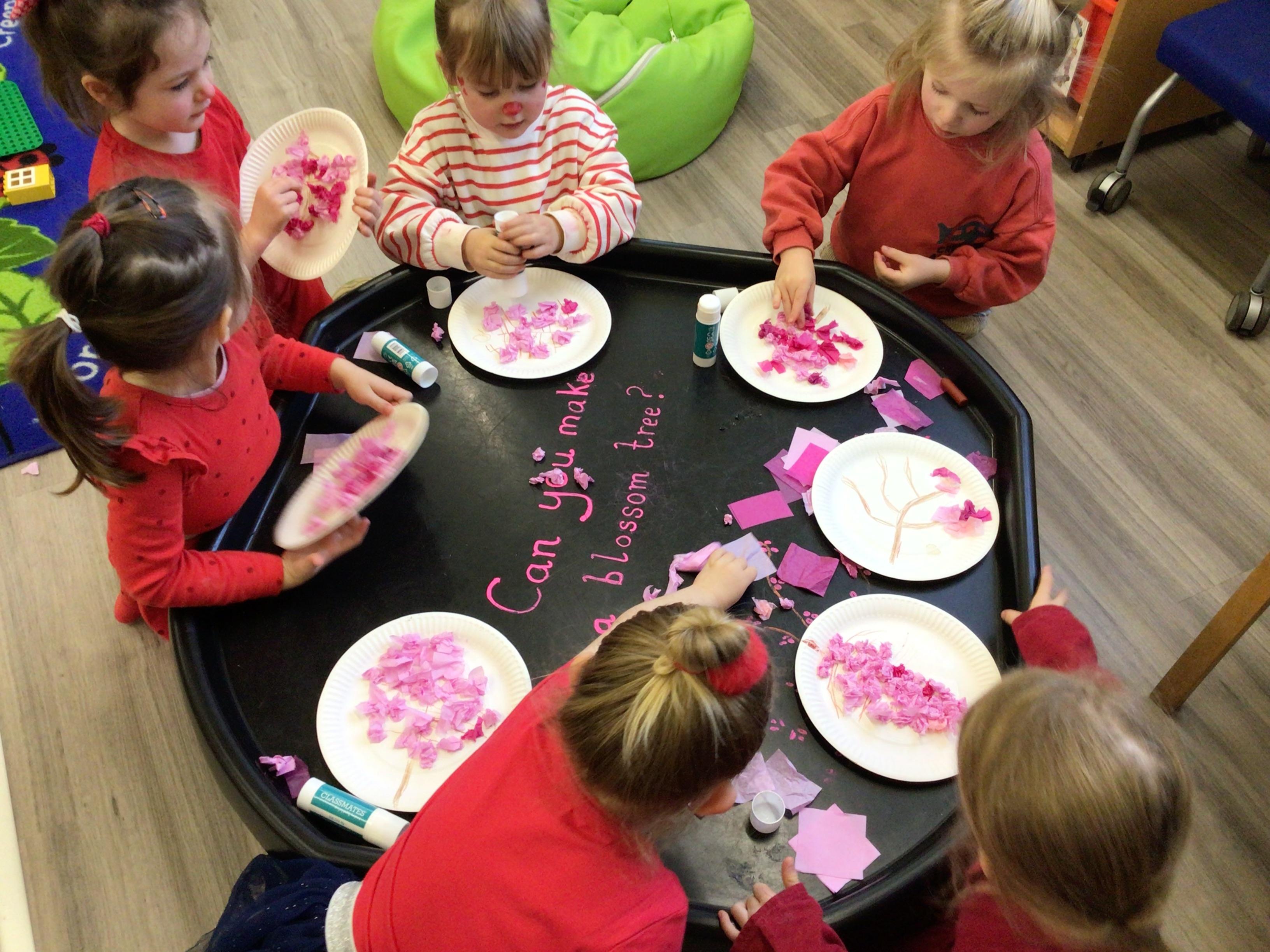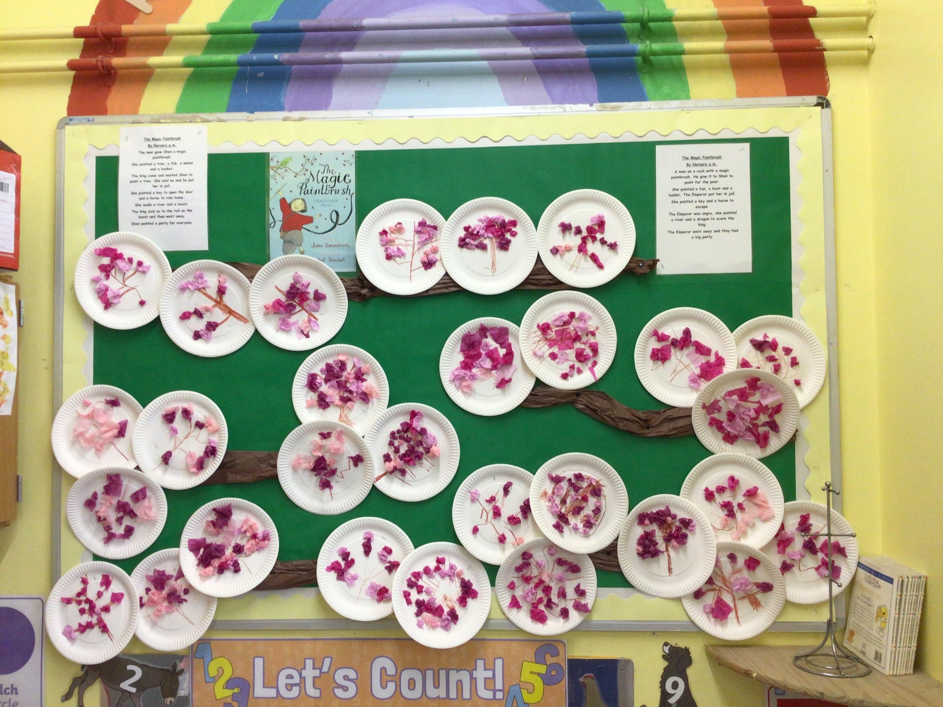 Nursery have been looking at "The Magic paintbrush" and as part of this we have created our own blossom trees and danced with ribbons. Like Shen did in the story.