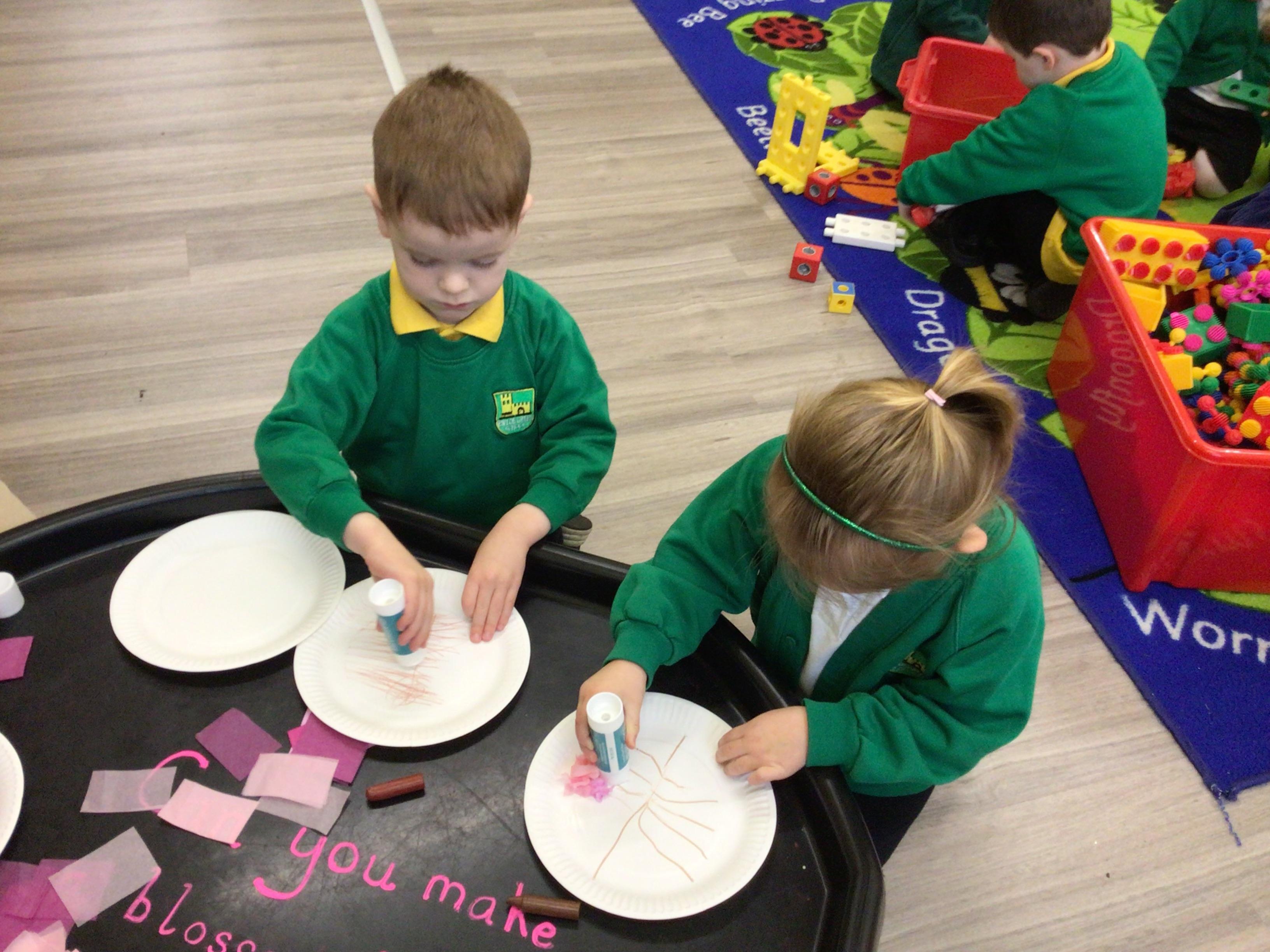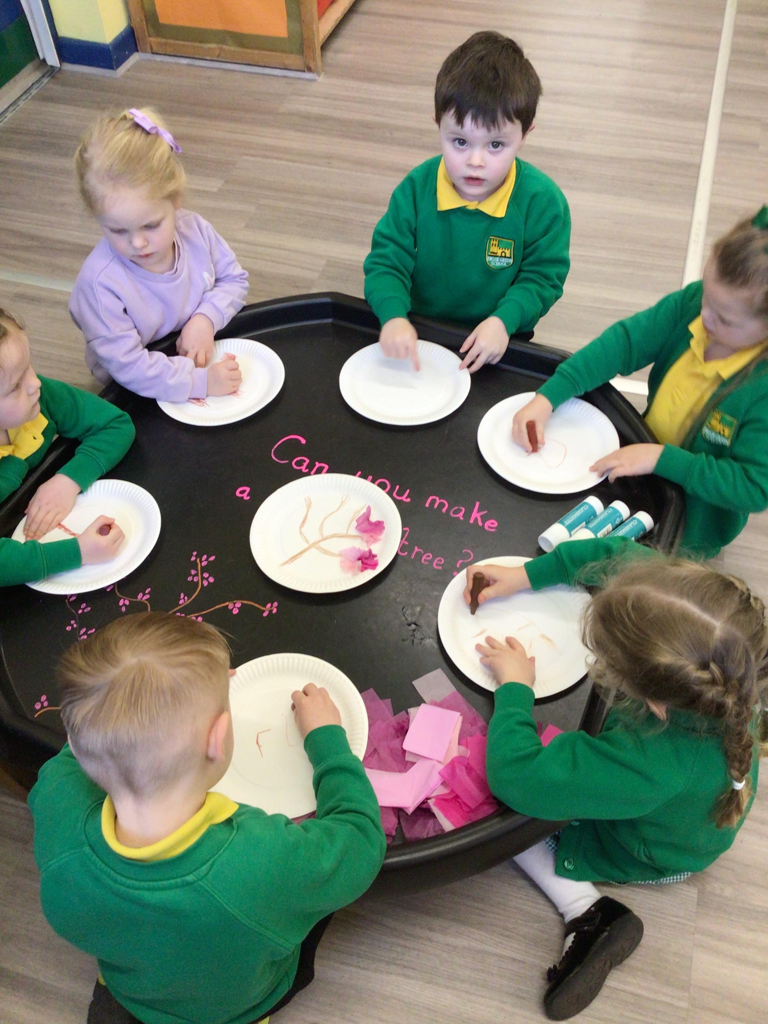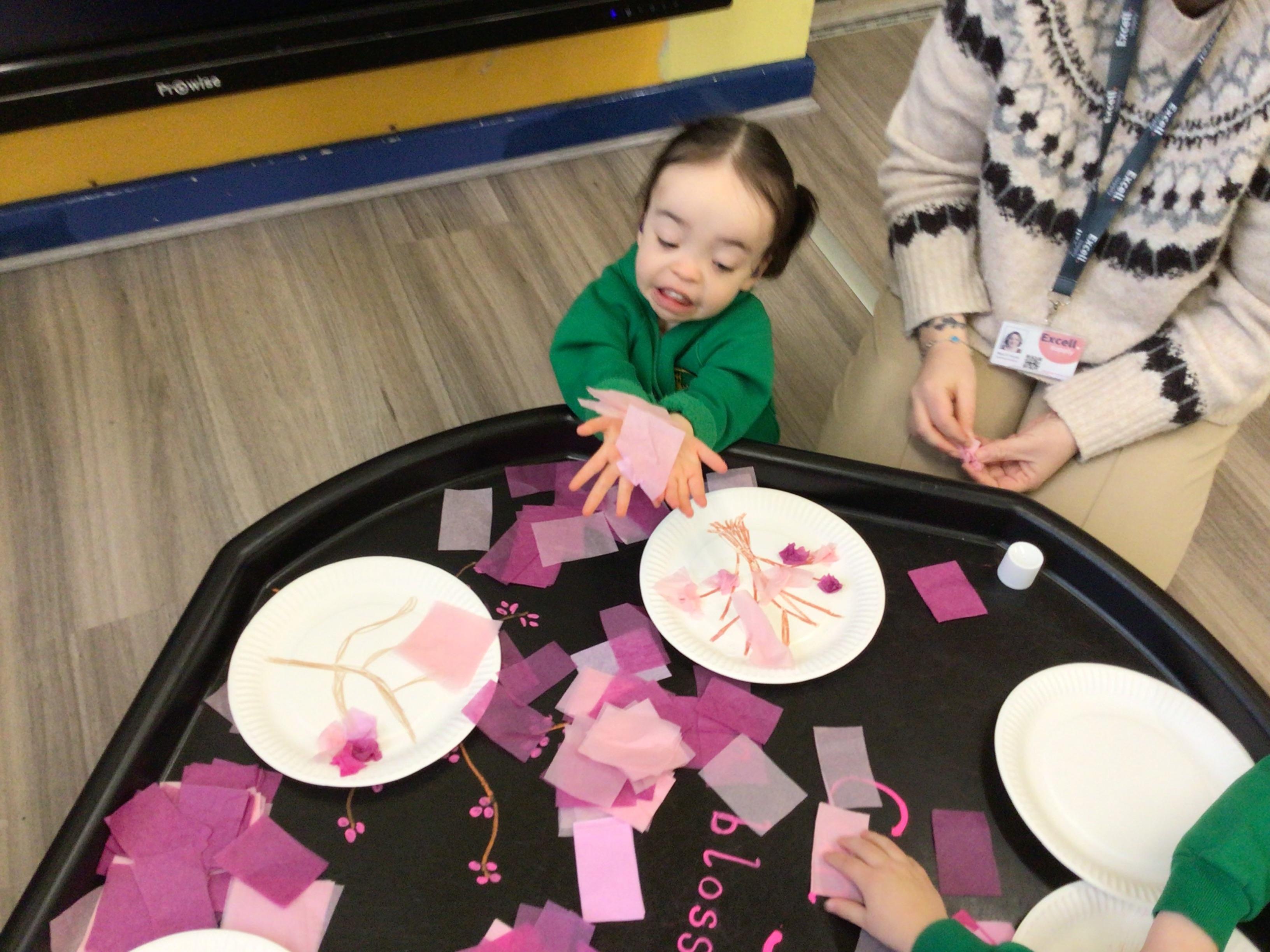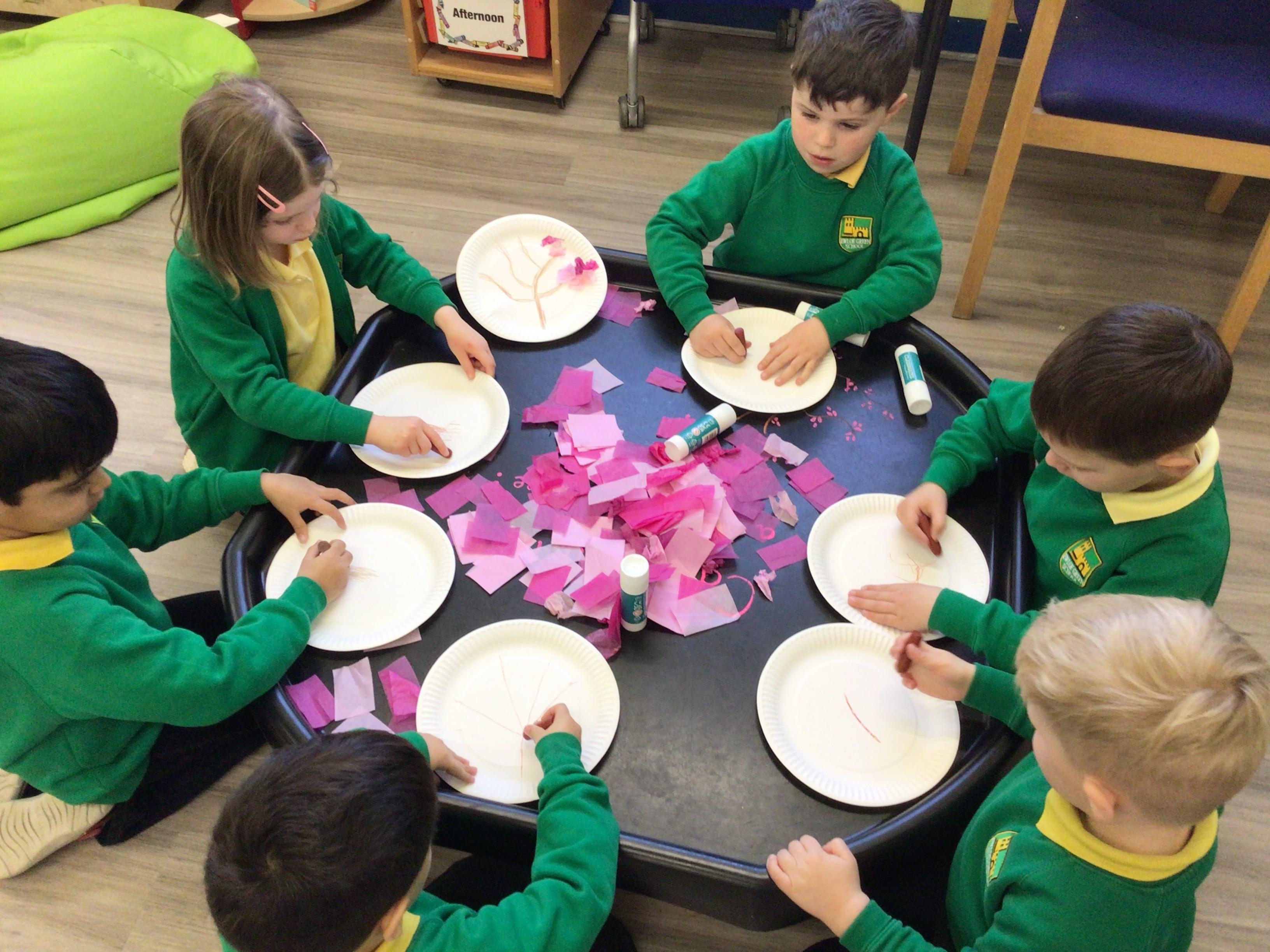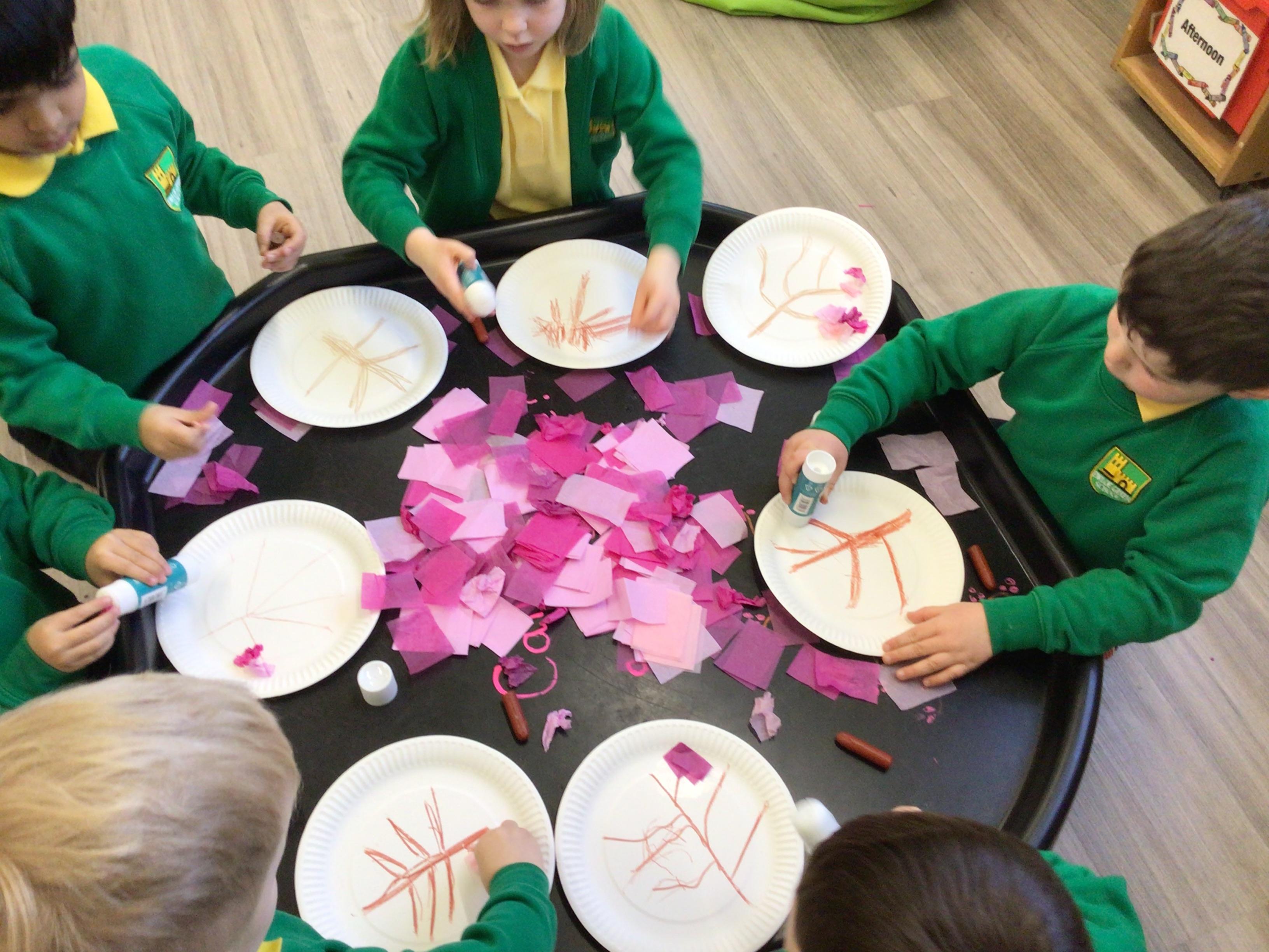 Nursery have been looking at "The Magic paintbrush" and as part of this we have created our own blossom trees and danced with ribbons. Like Shen did in the story.