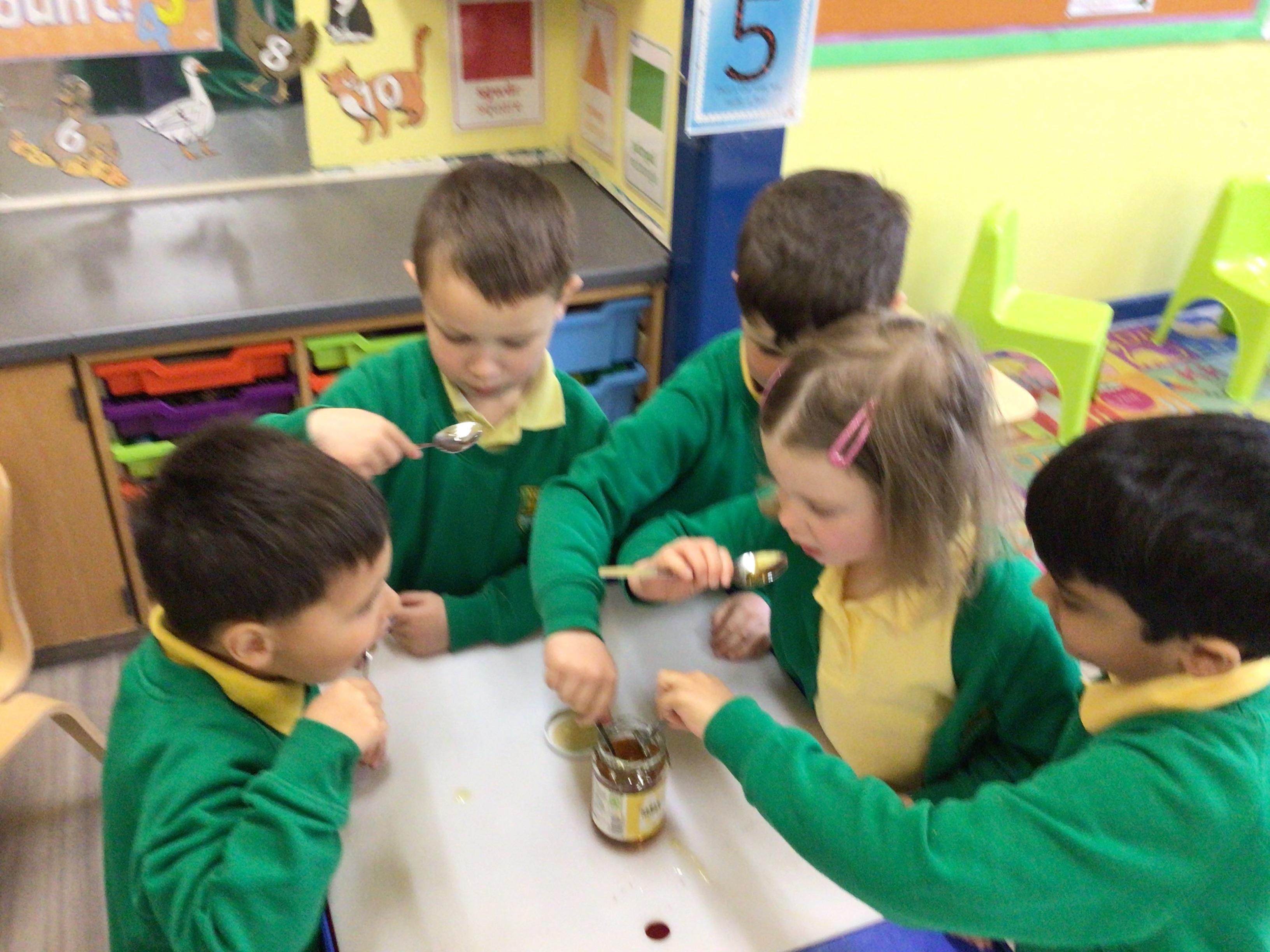 To finish off our learning about Bees. The children have been tasting honey this morning.