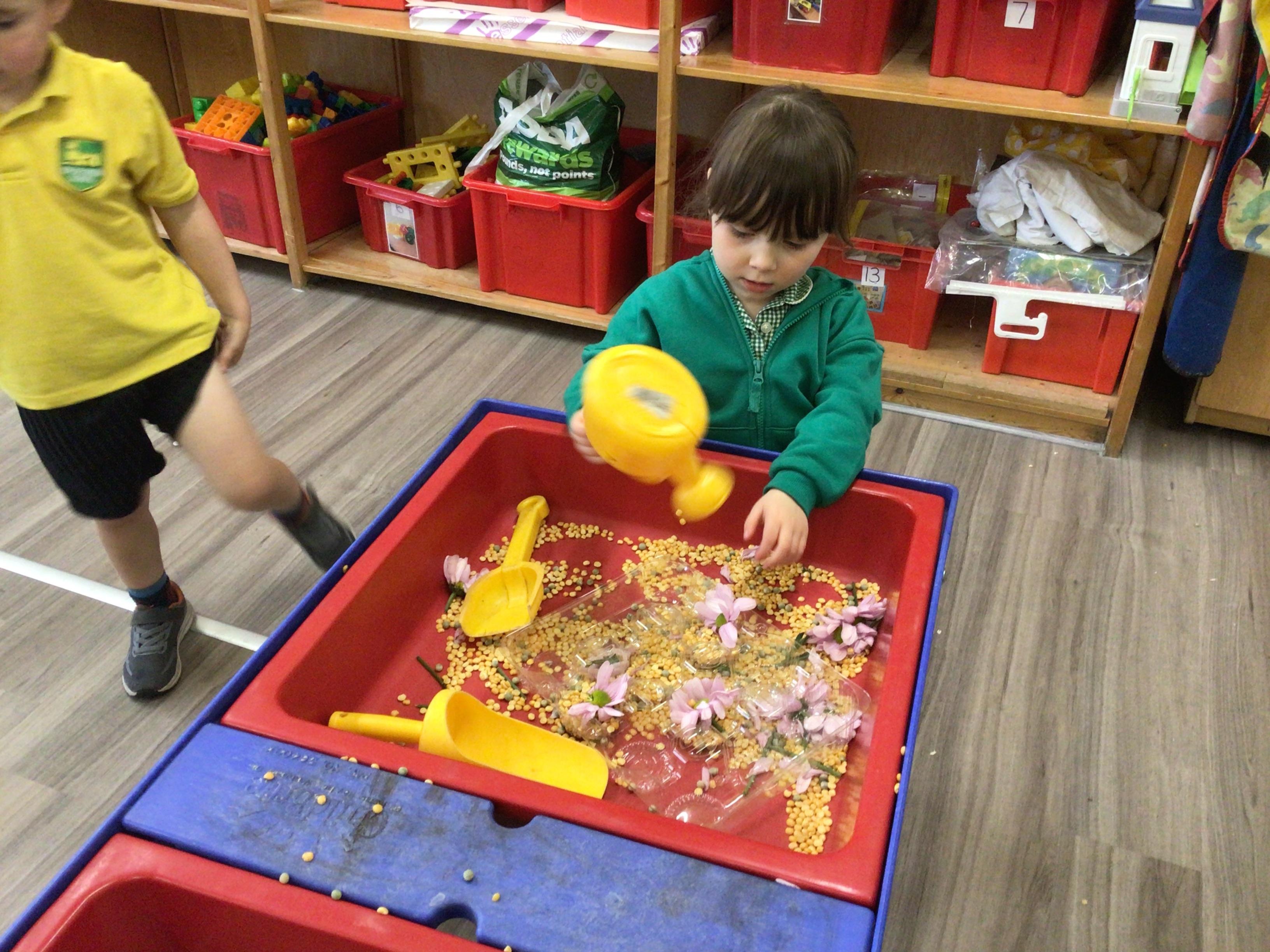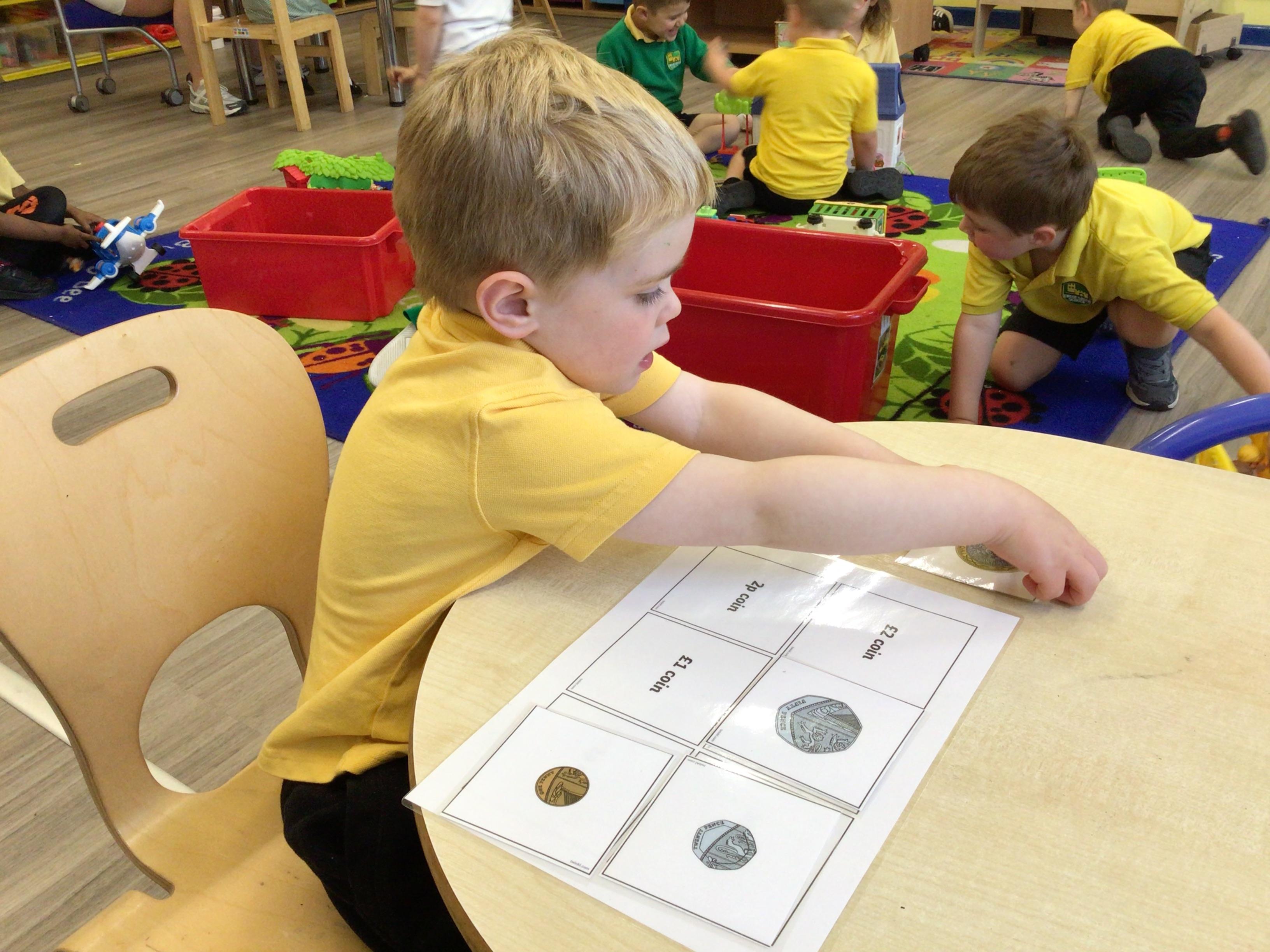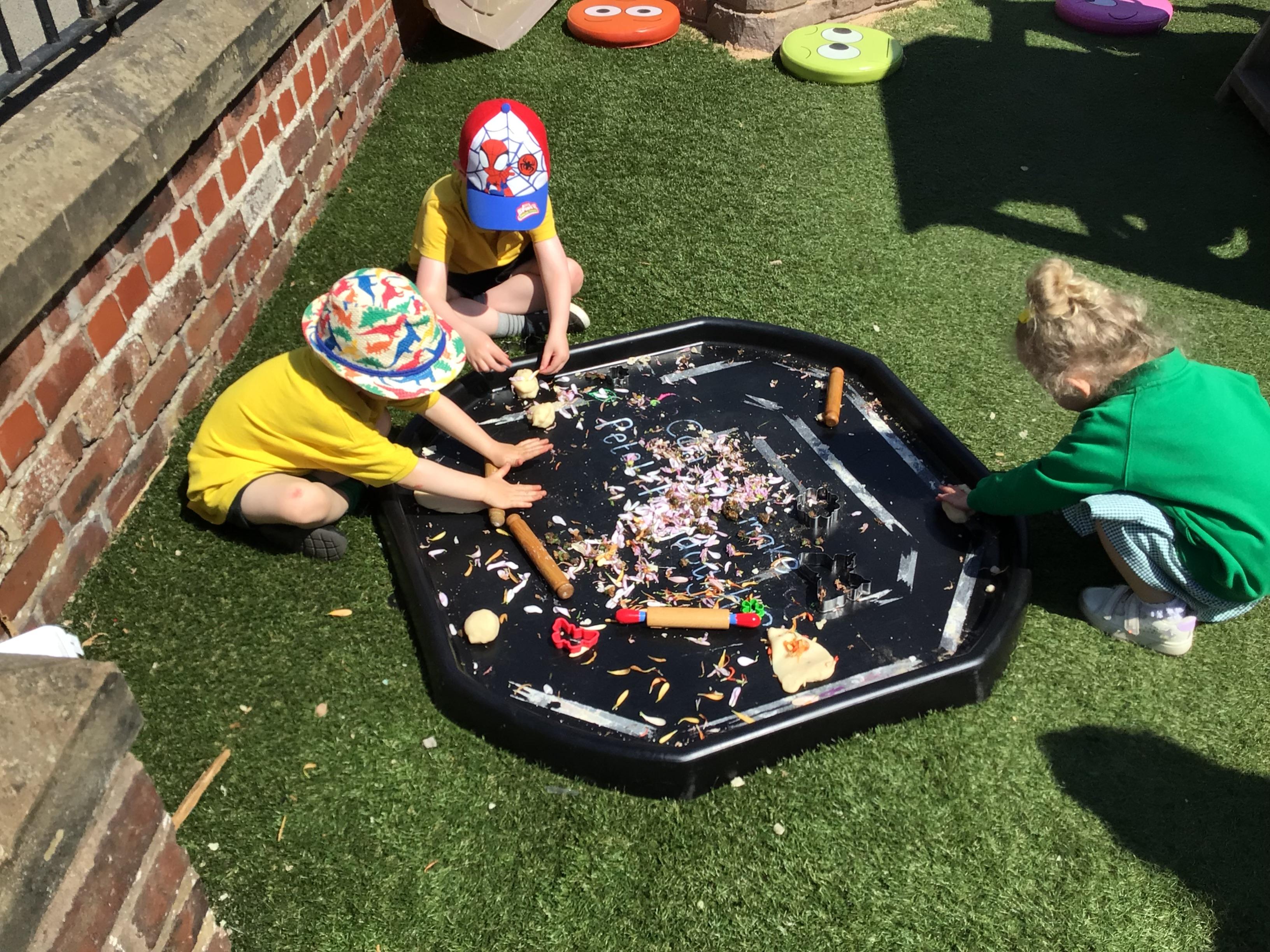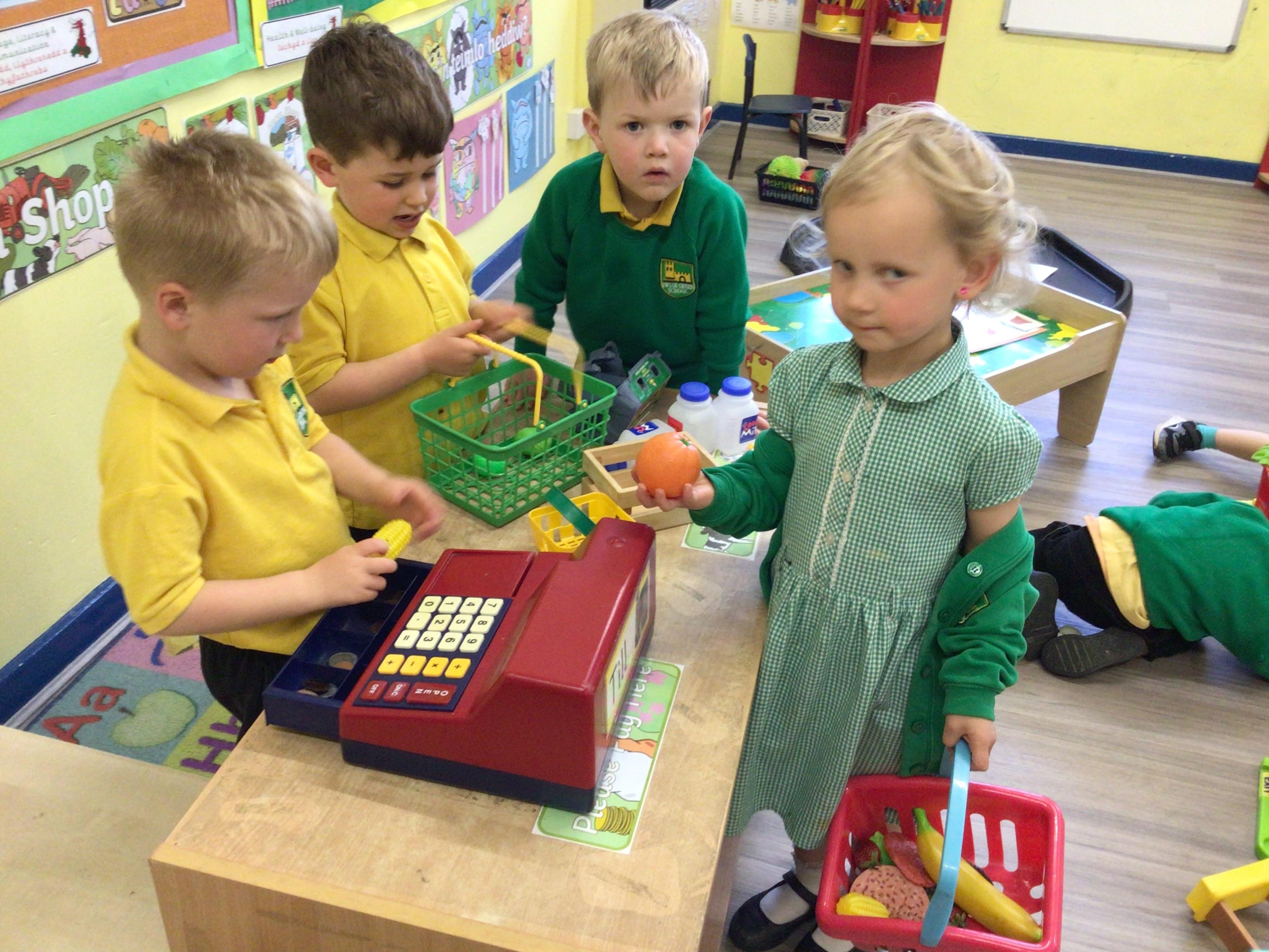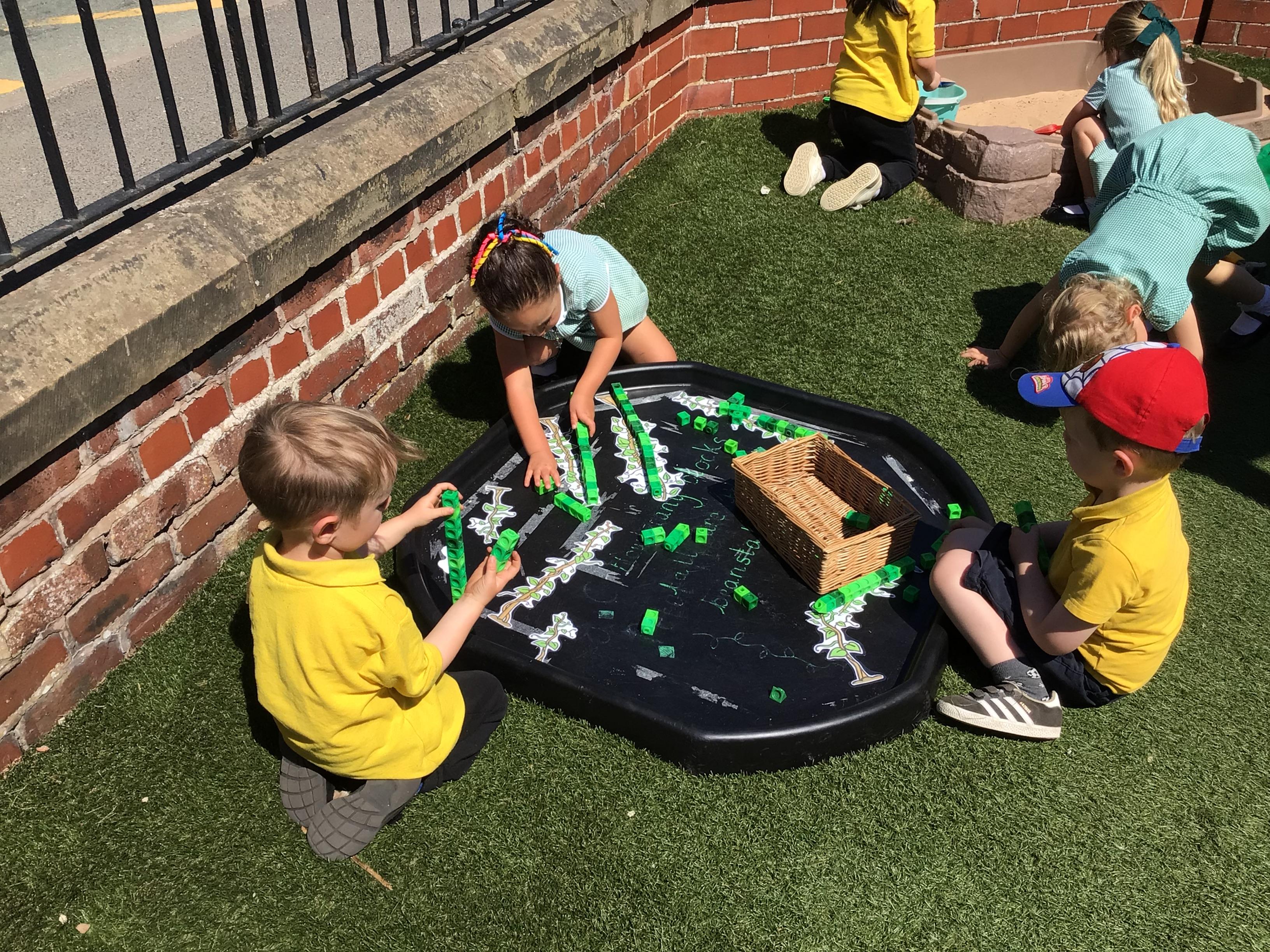 We have had a fantastic week, being outside doing our activities. This week the children have been learning about money, making petal play dough , creating a garden display and ordering beanstalks.