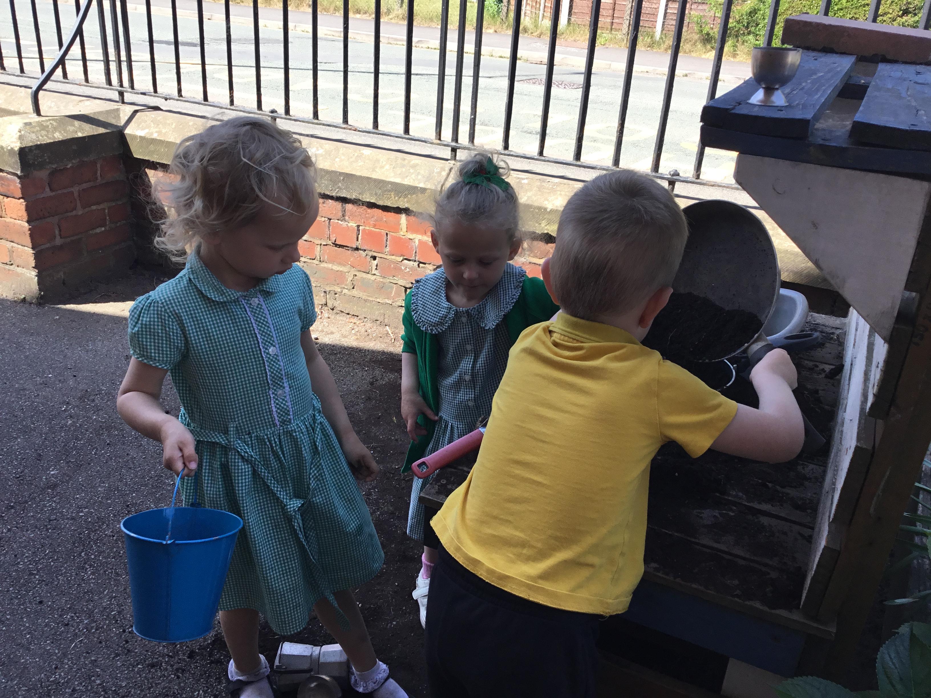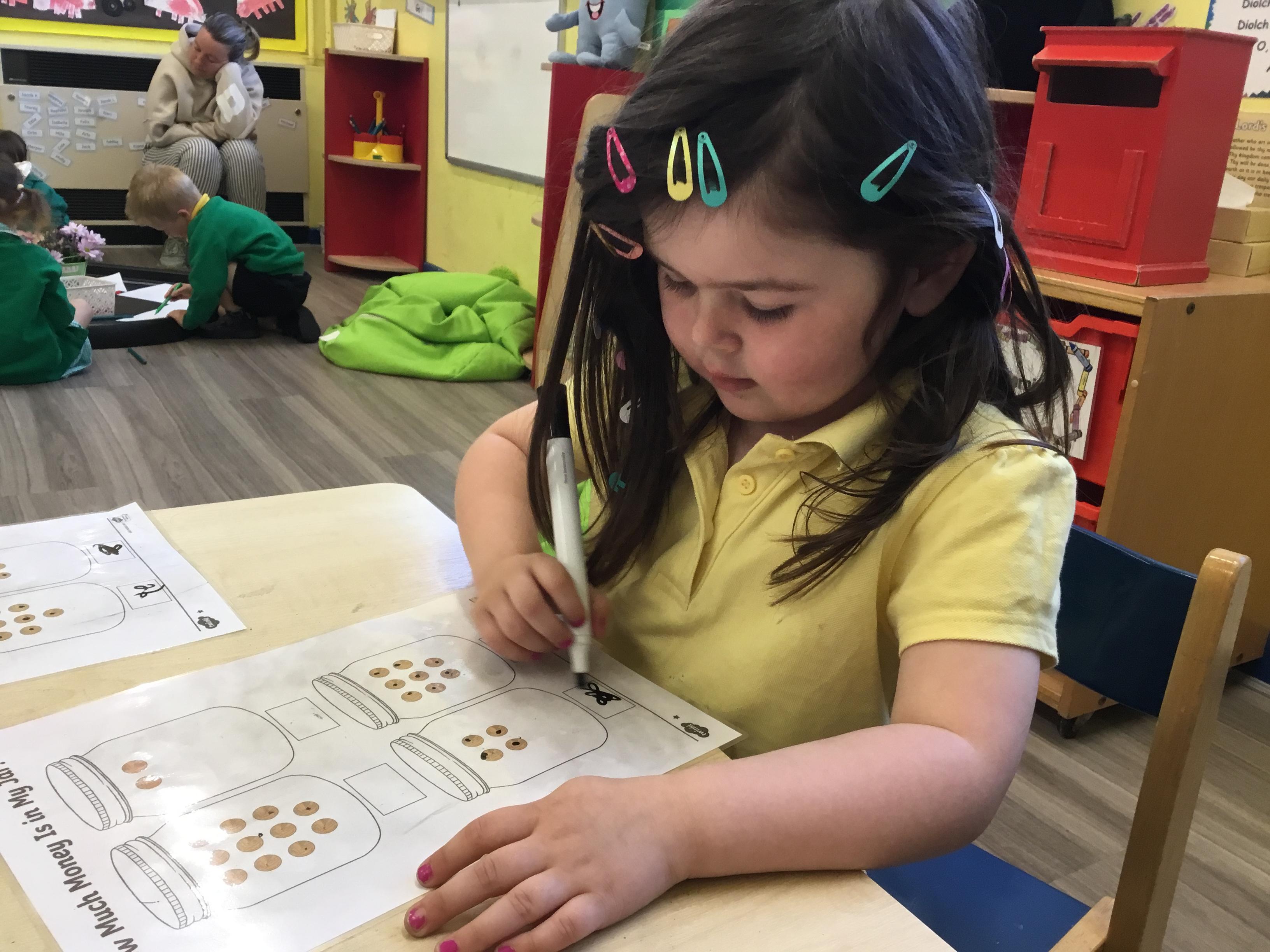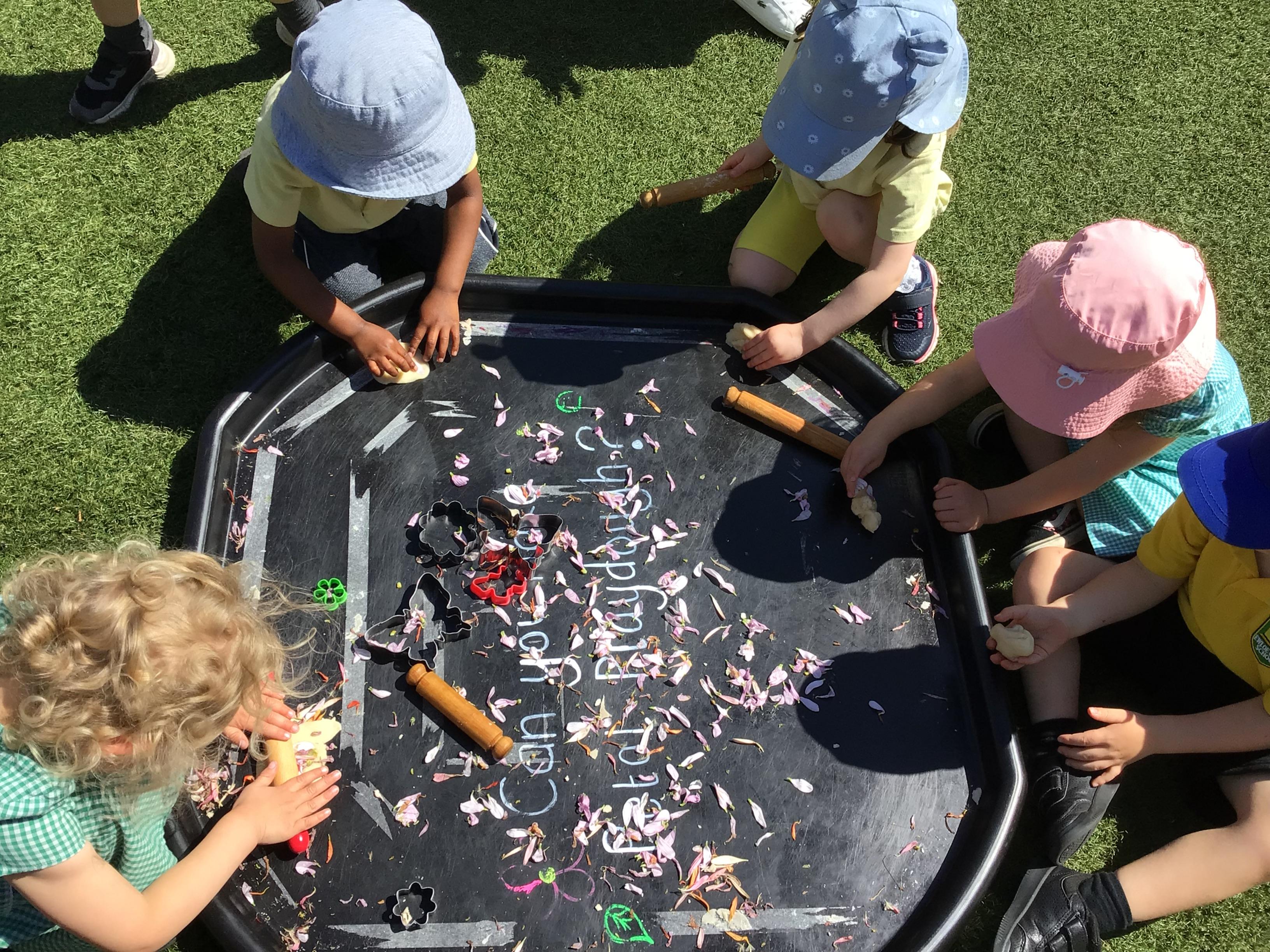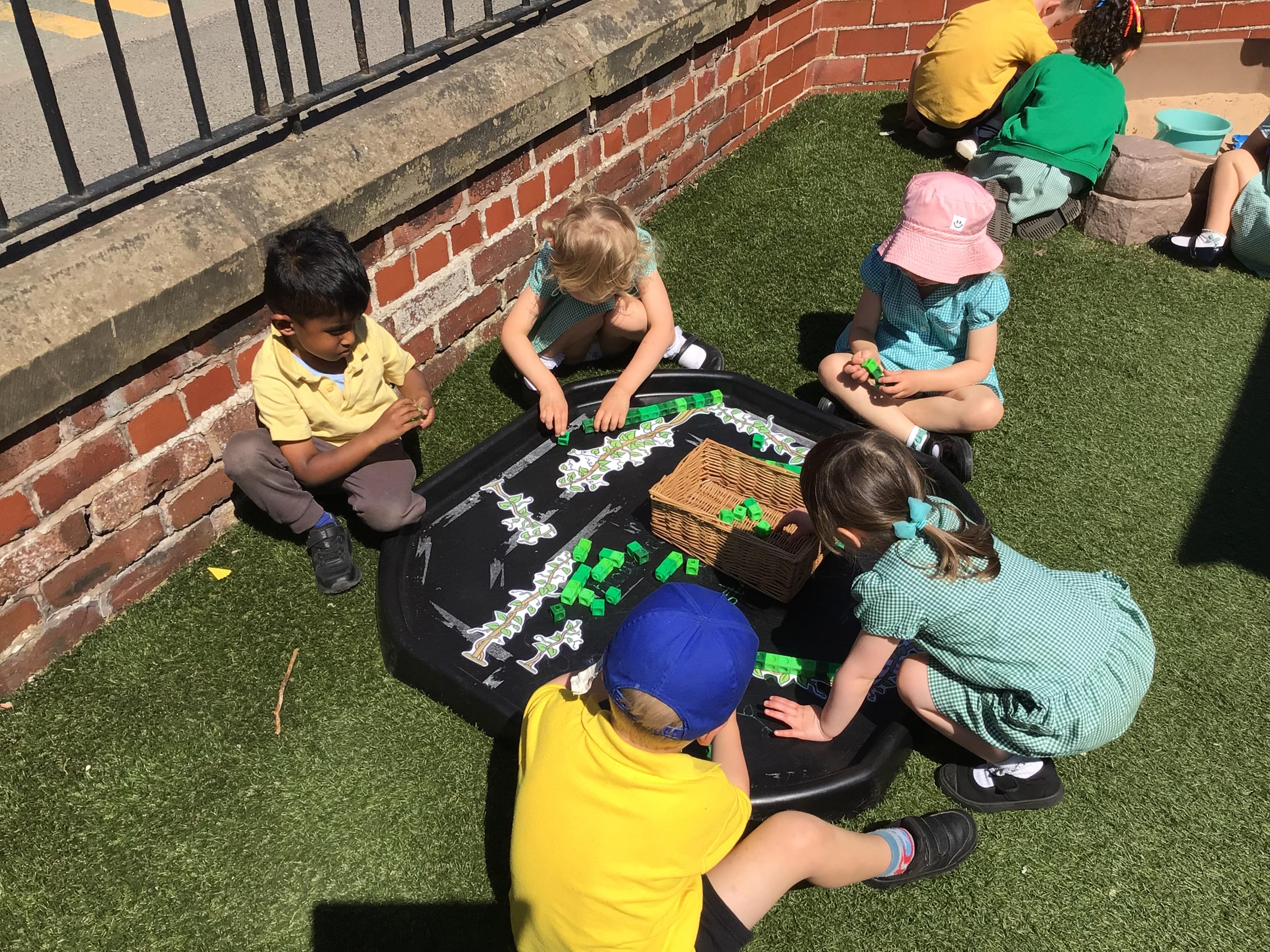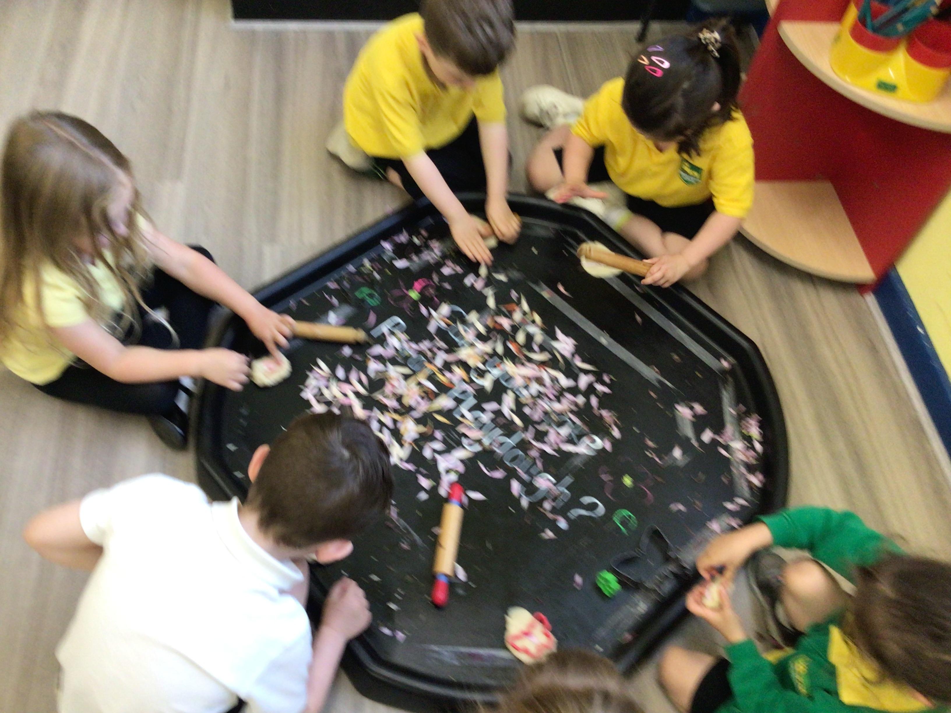 We have had a fantastic week, being outside doing our activities. This week the children have been learning about money, making petal play dough , creating a garden display and ordering beanstalks.