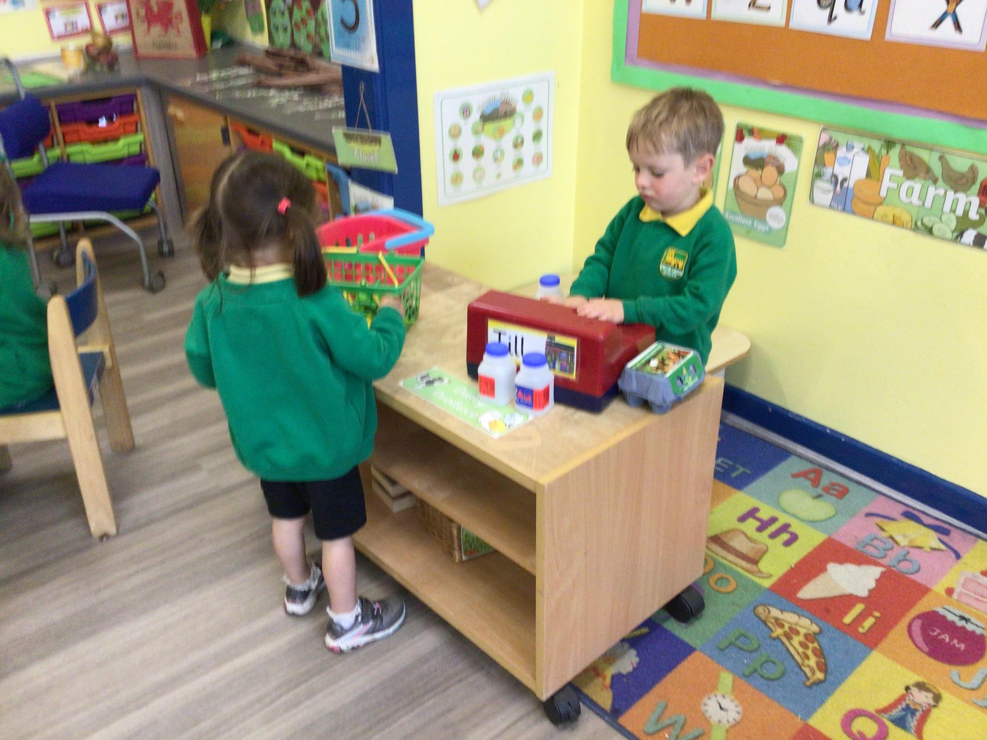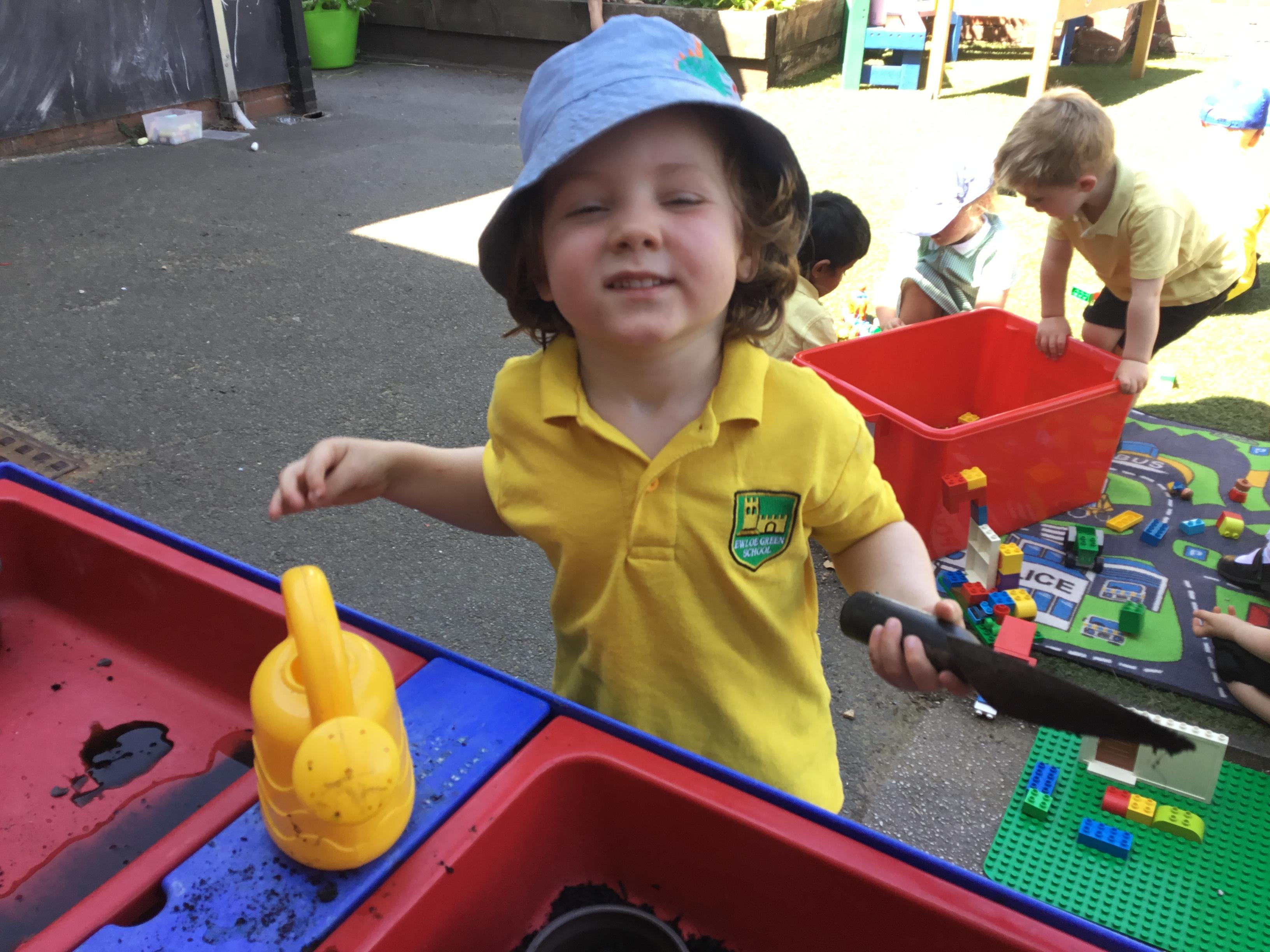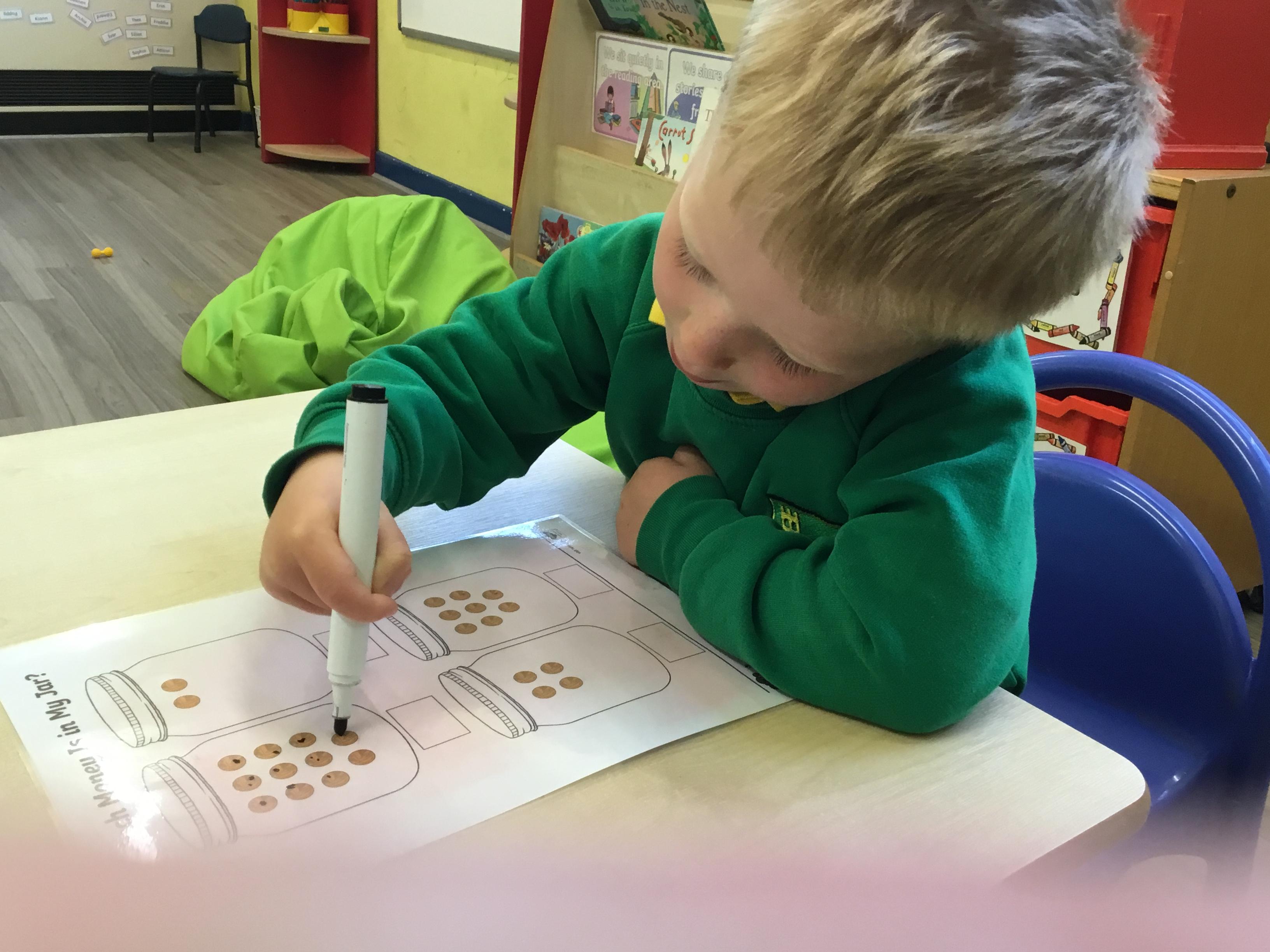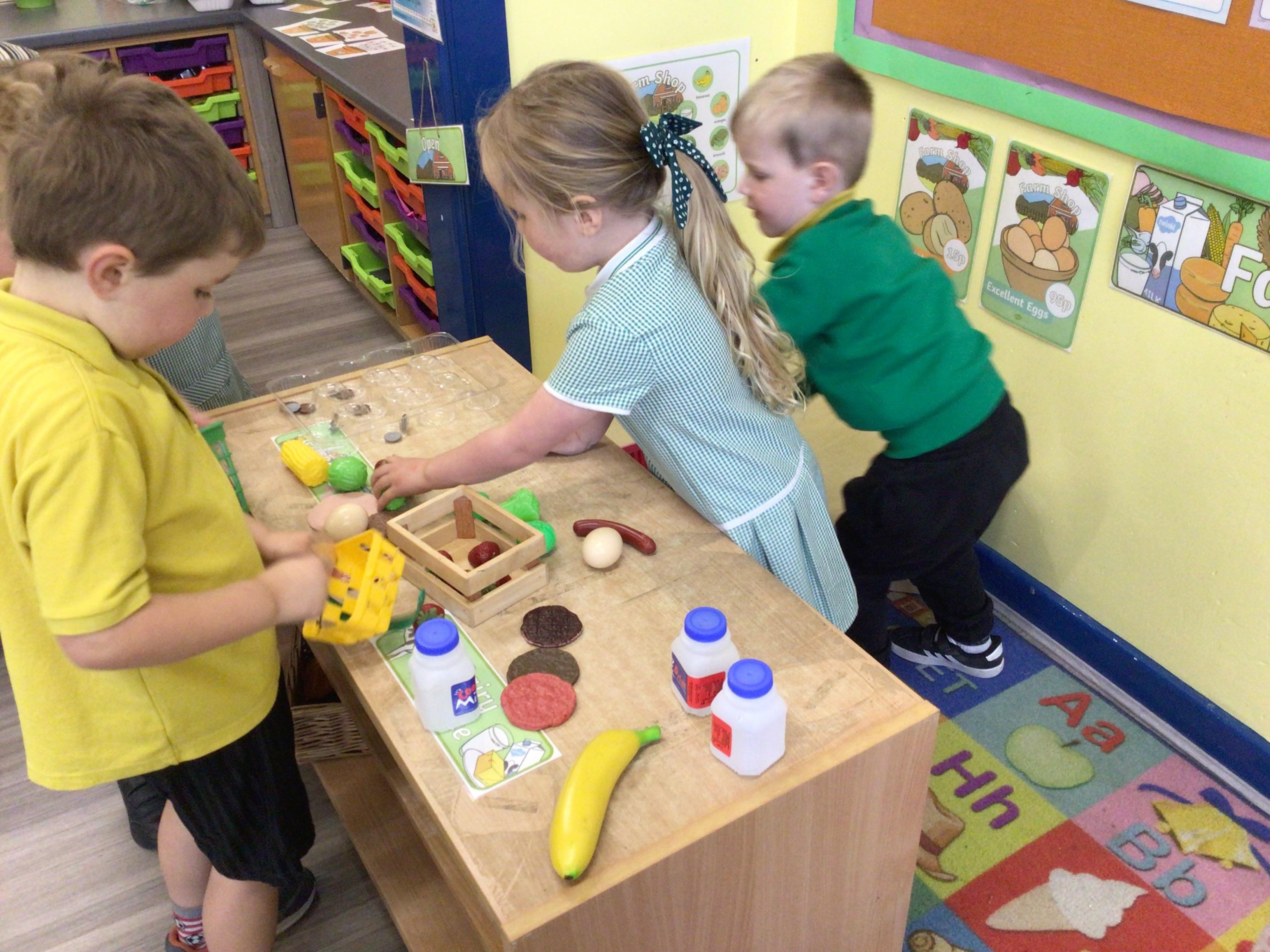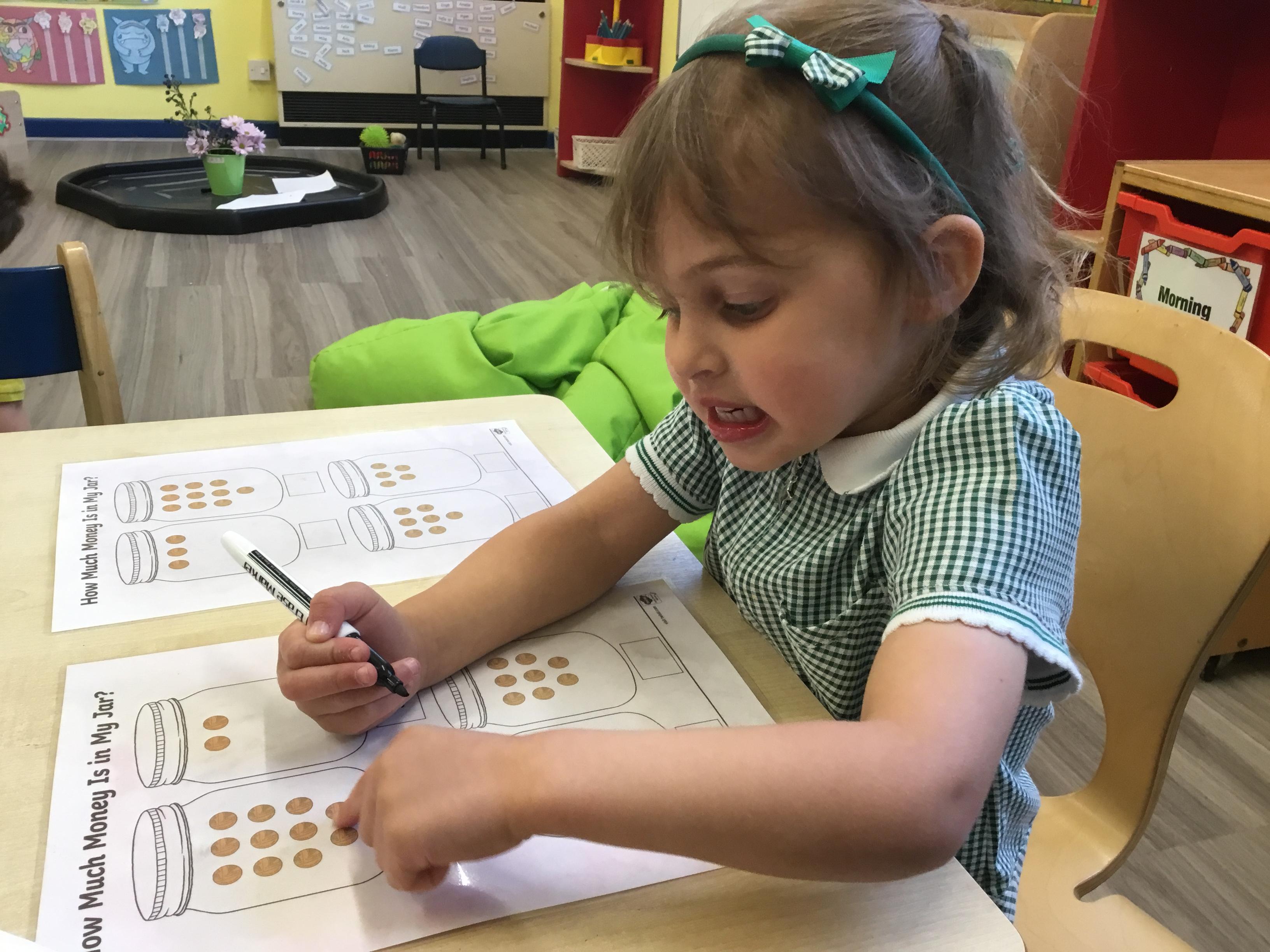 We have had a fantastic week, being outside doing our activities. This week the children have been learning about money, making petal play dough , creating a garden display and ordering beanstalks.