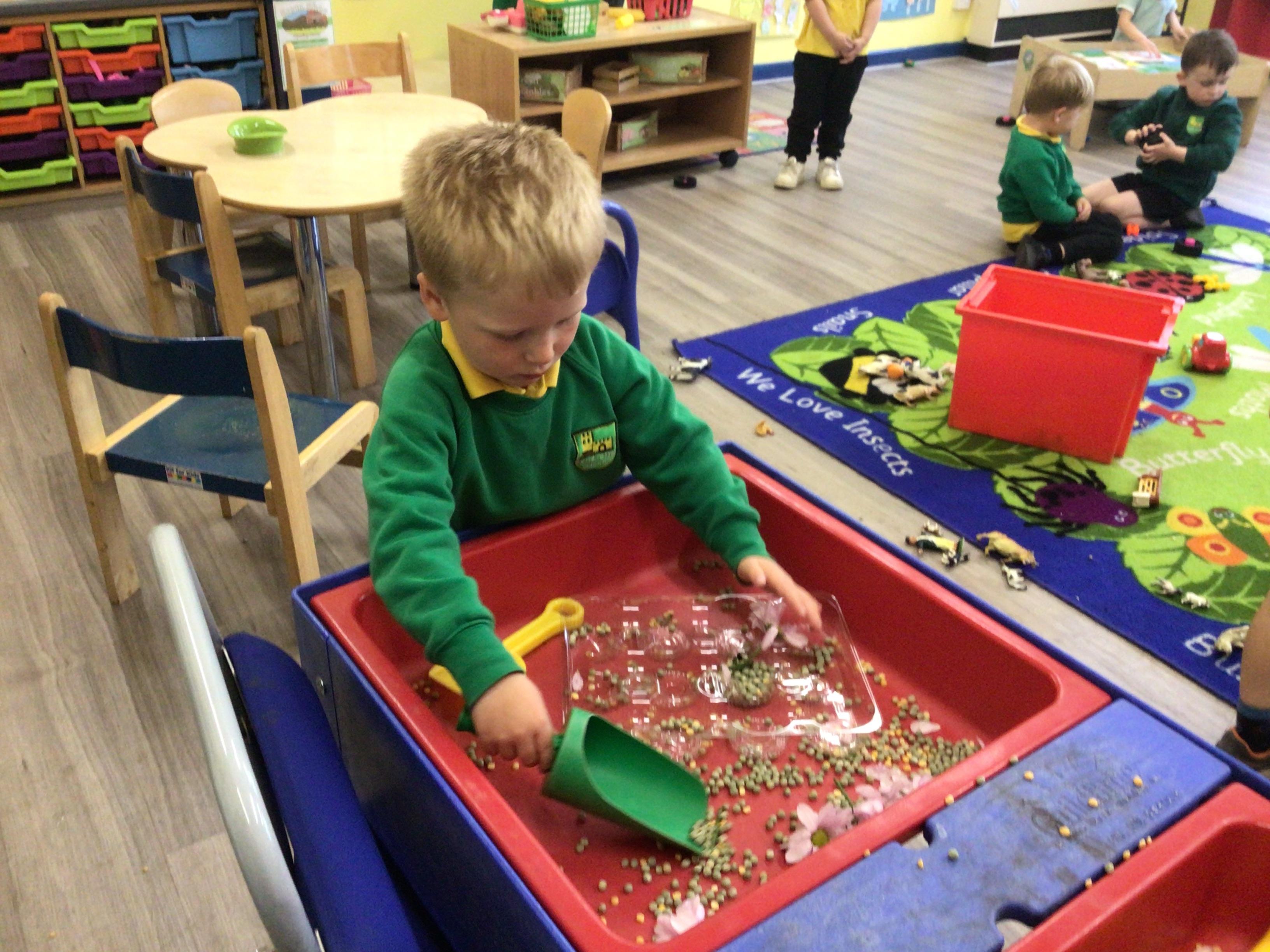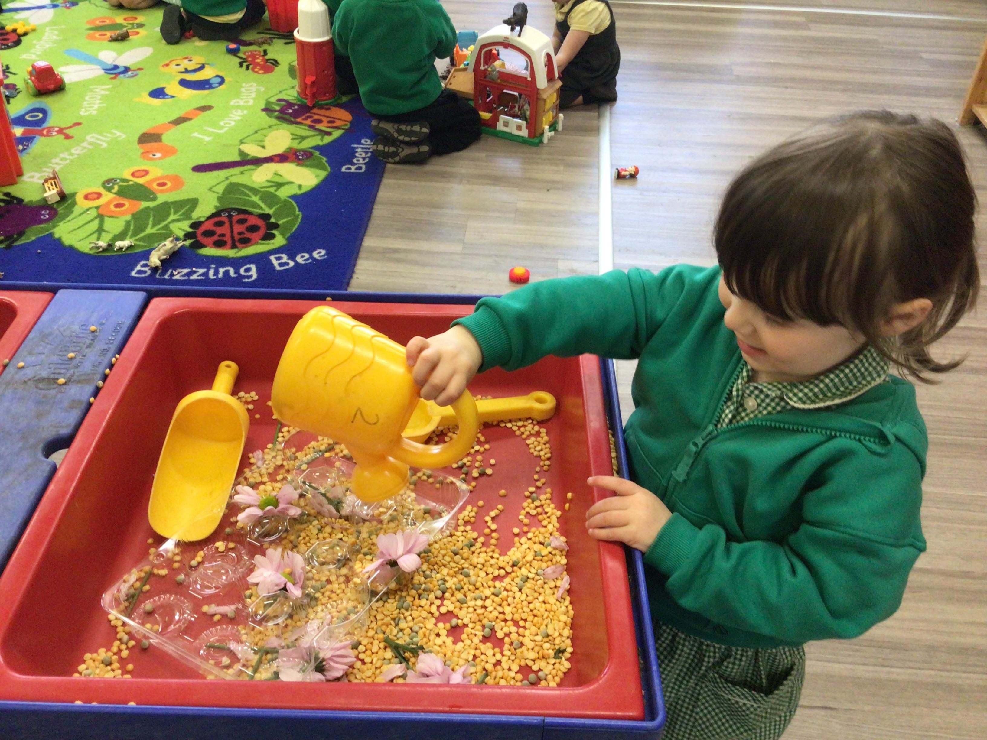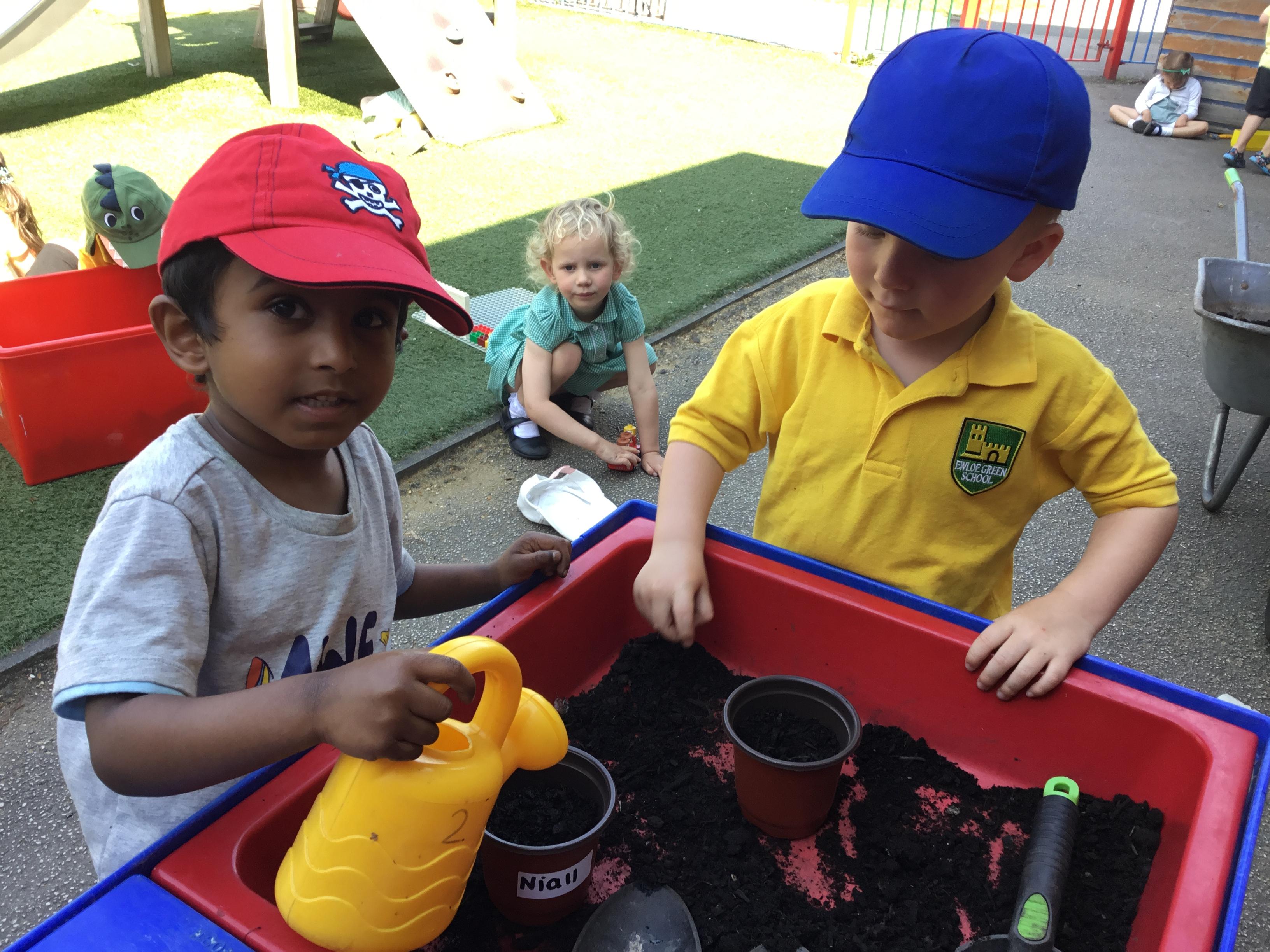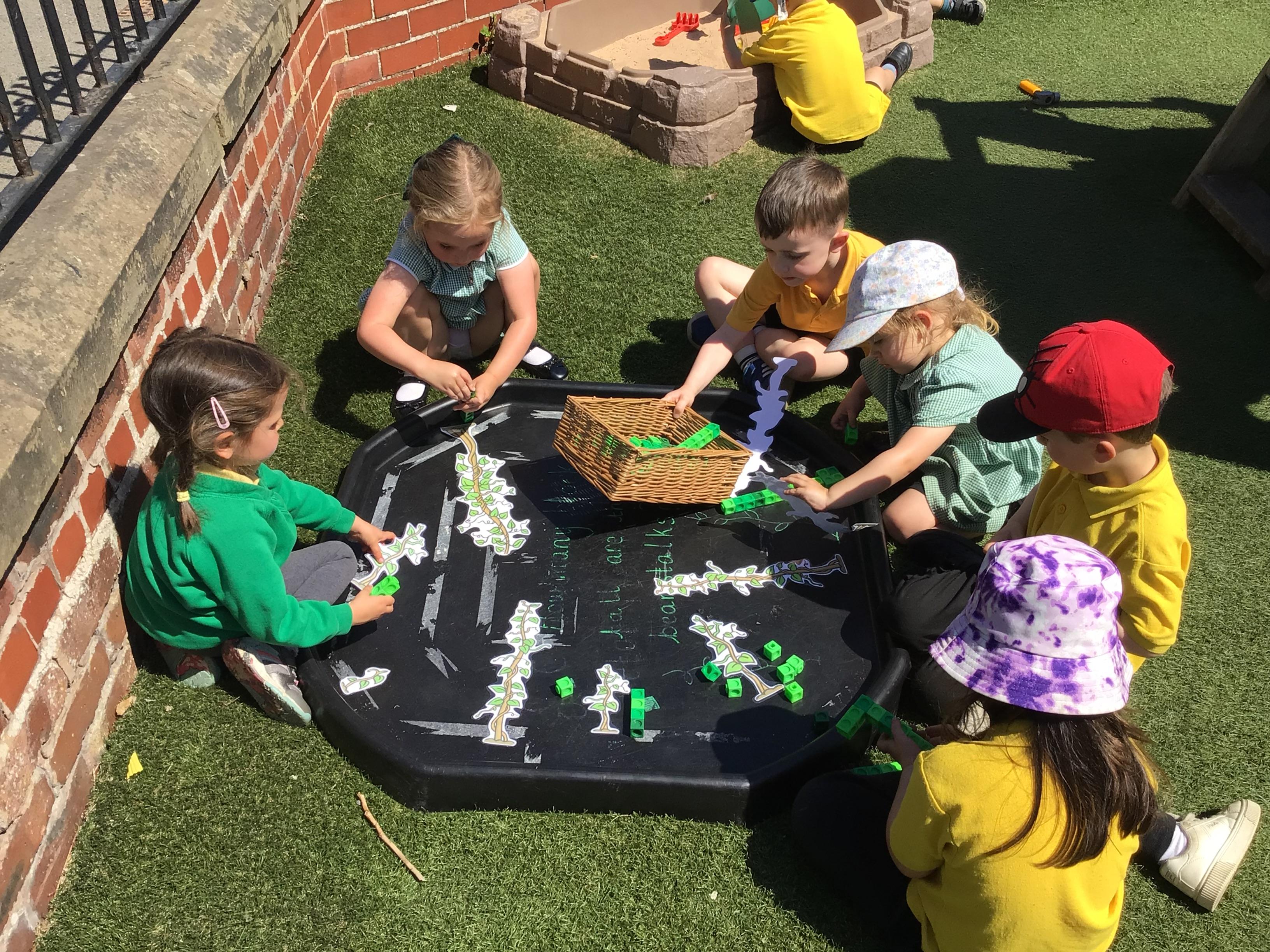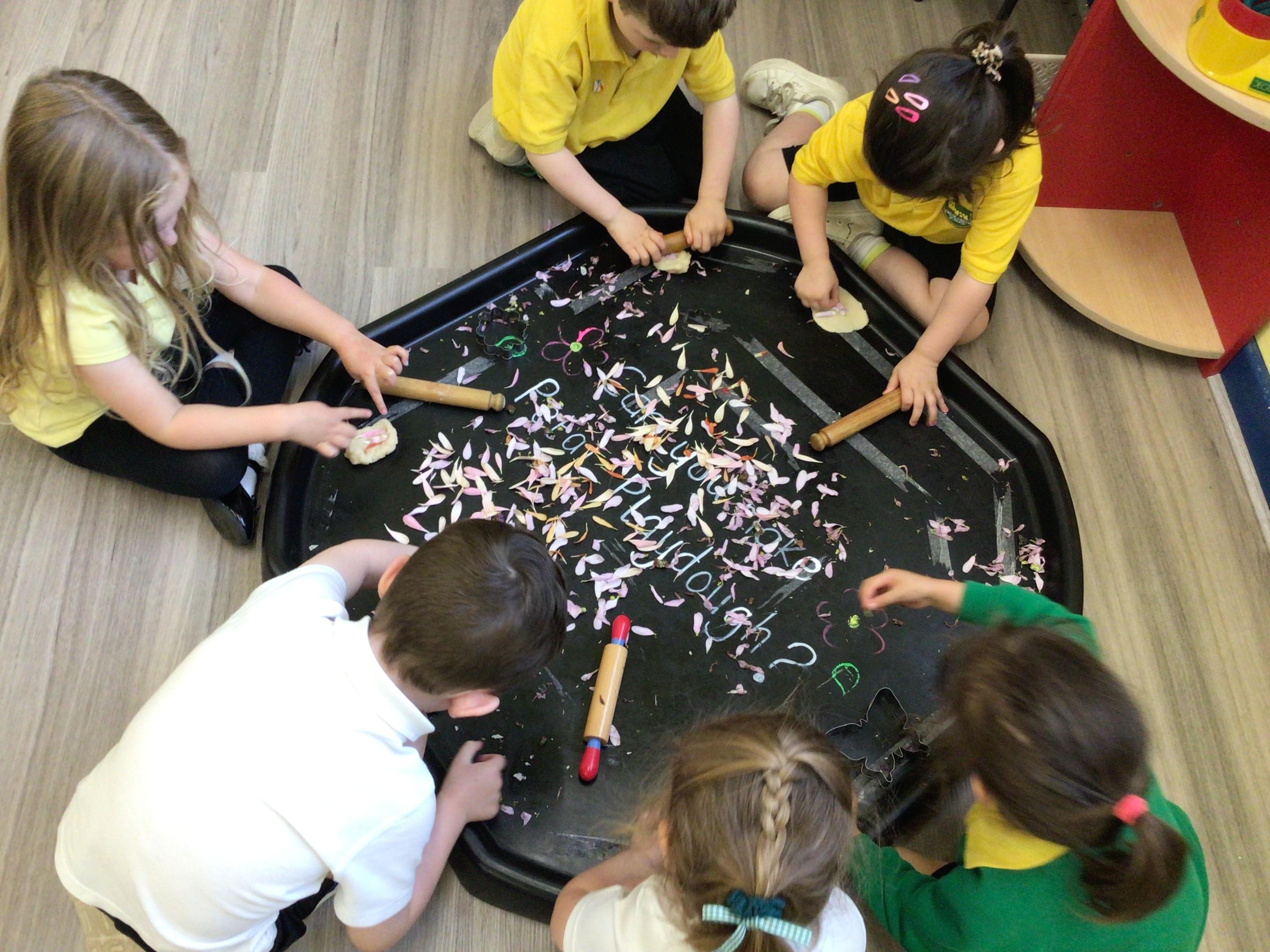 We have had a fantastic week, being outside doing our activities. This week the children have been learning about money, making petal play dough , creating a garden display and ordering beanstalks.