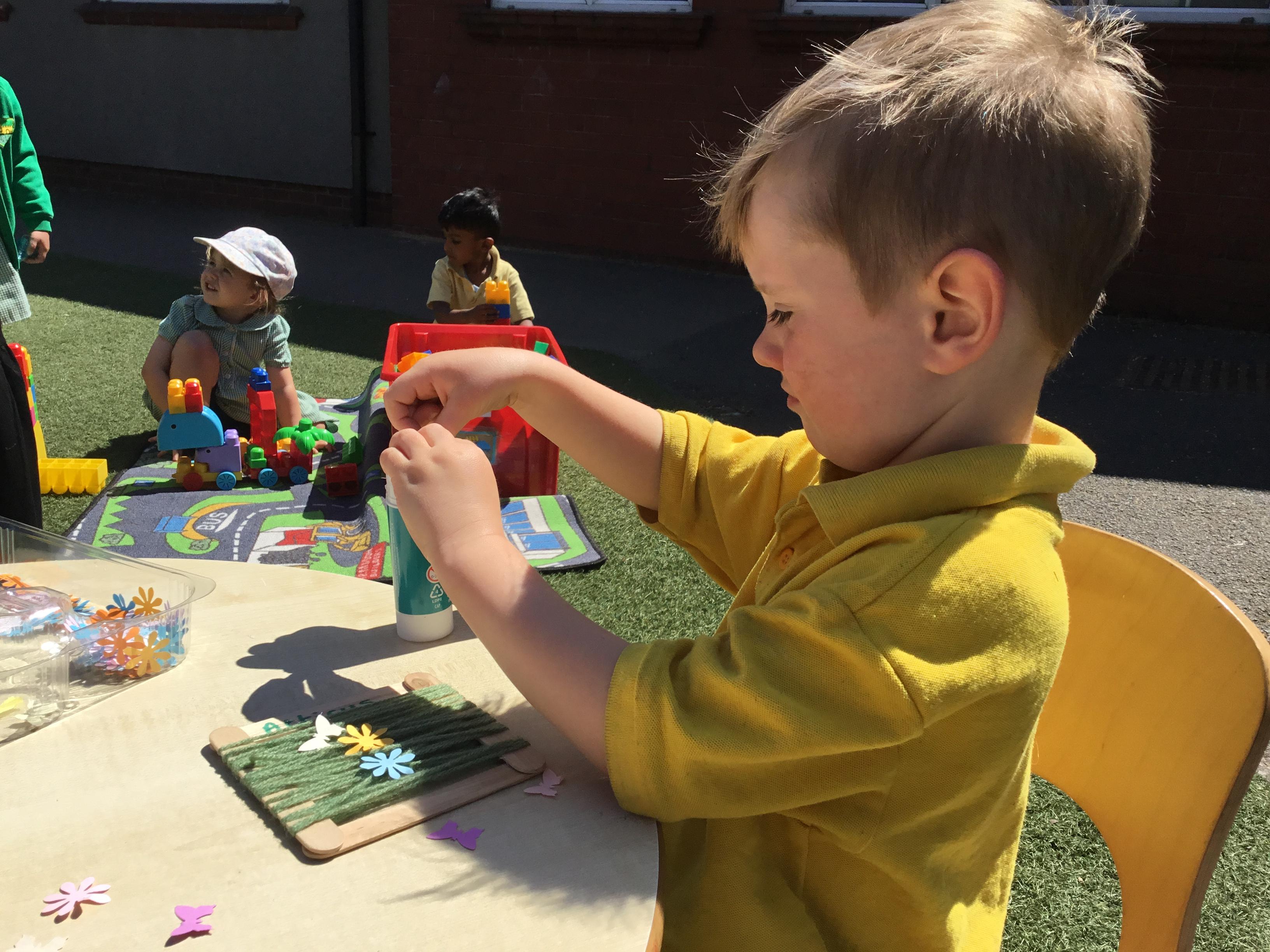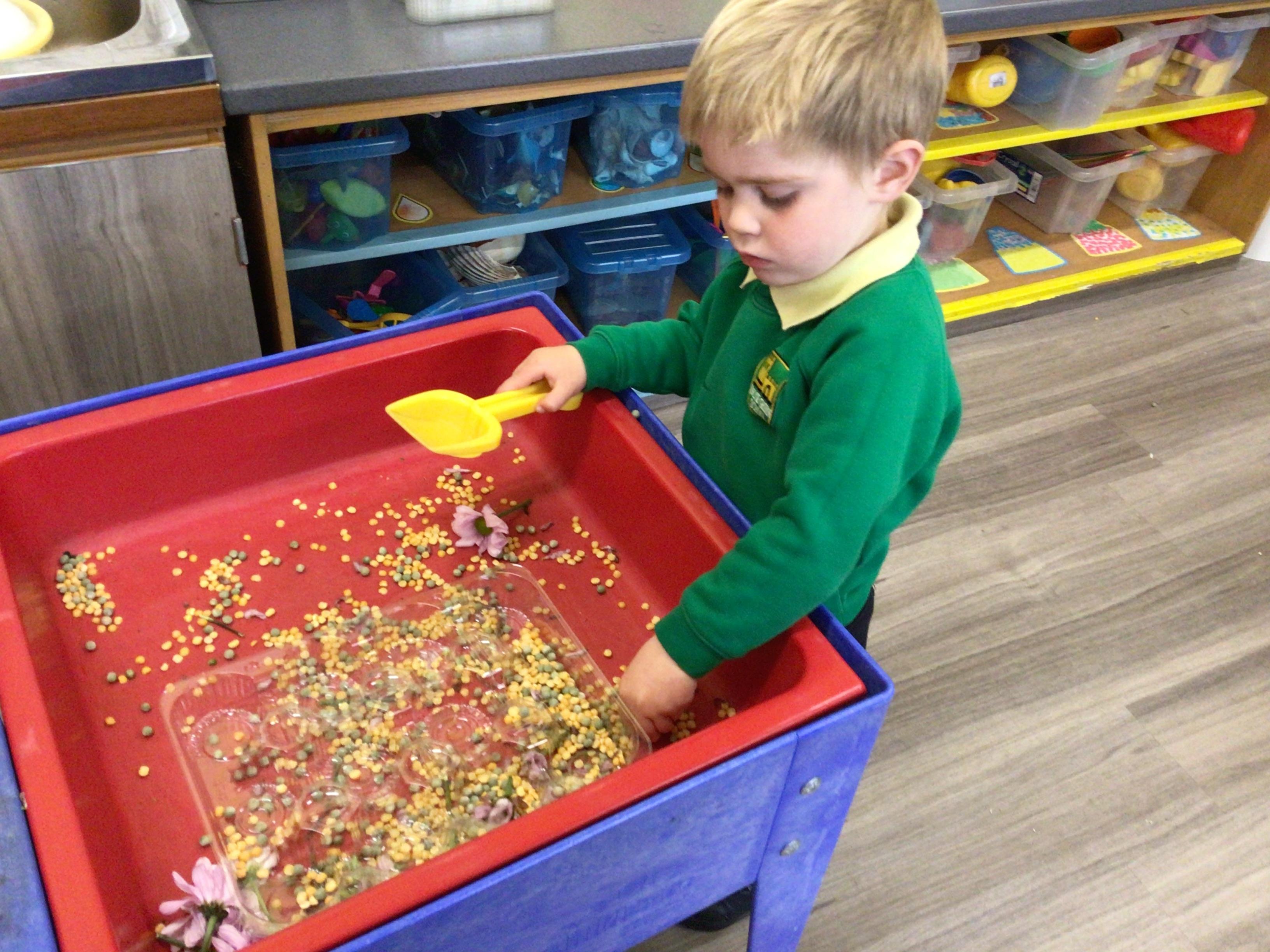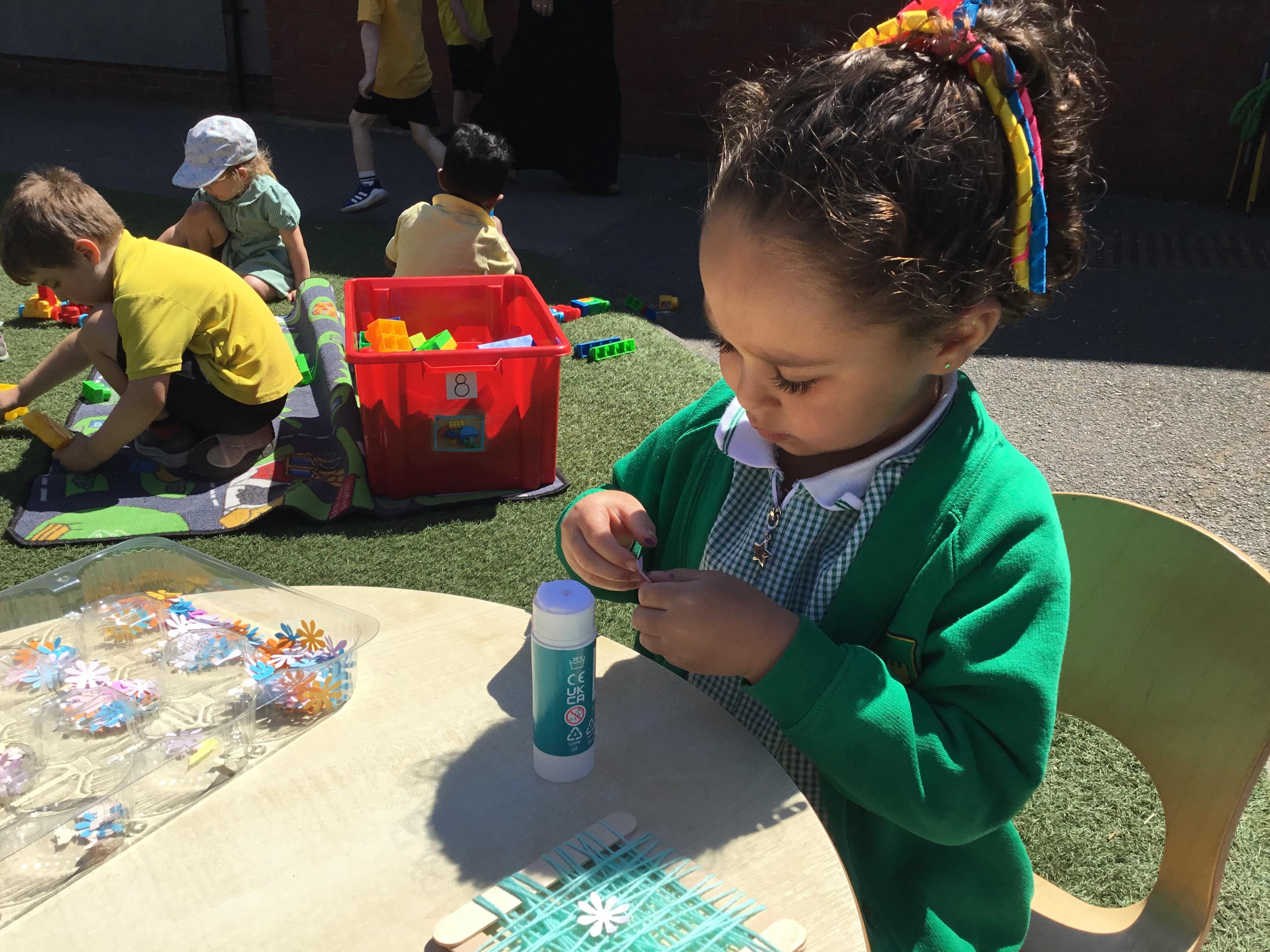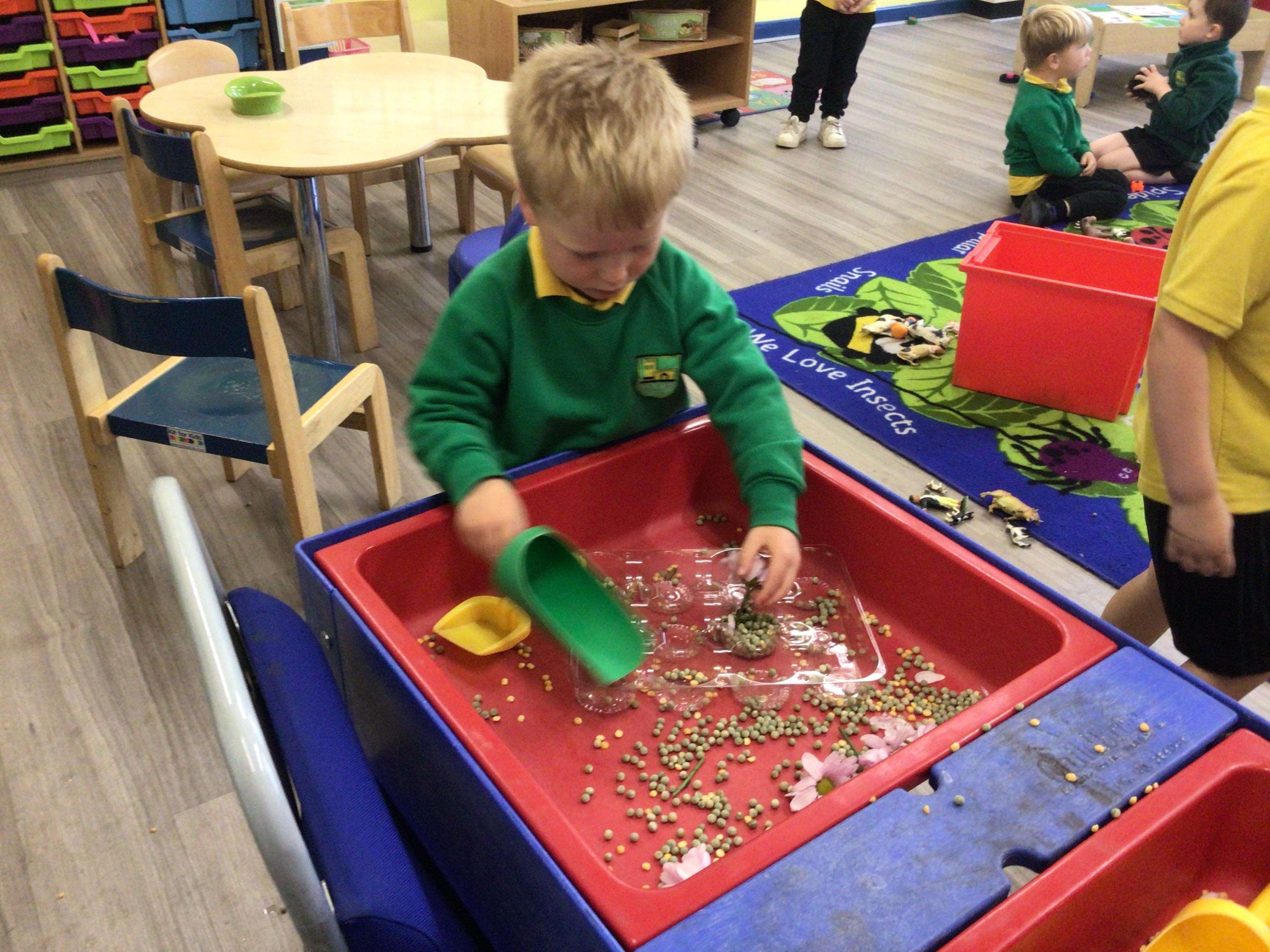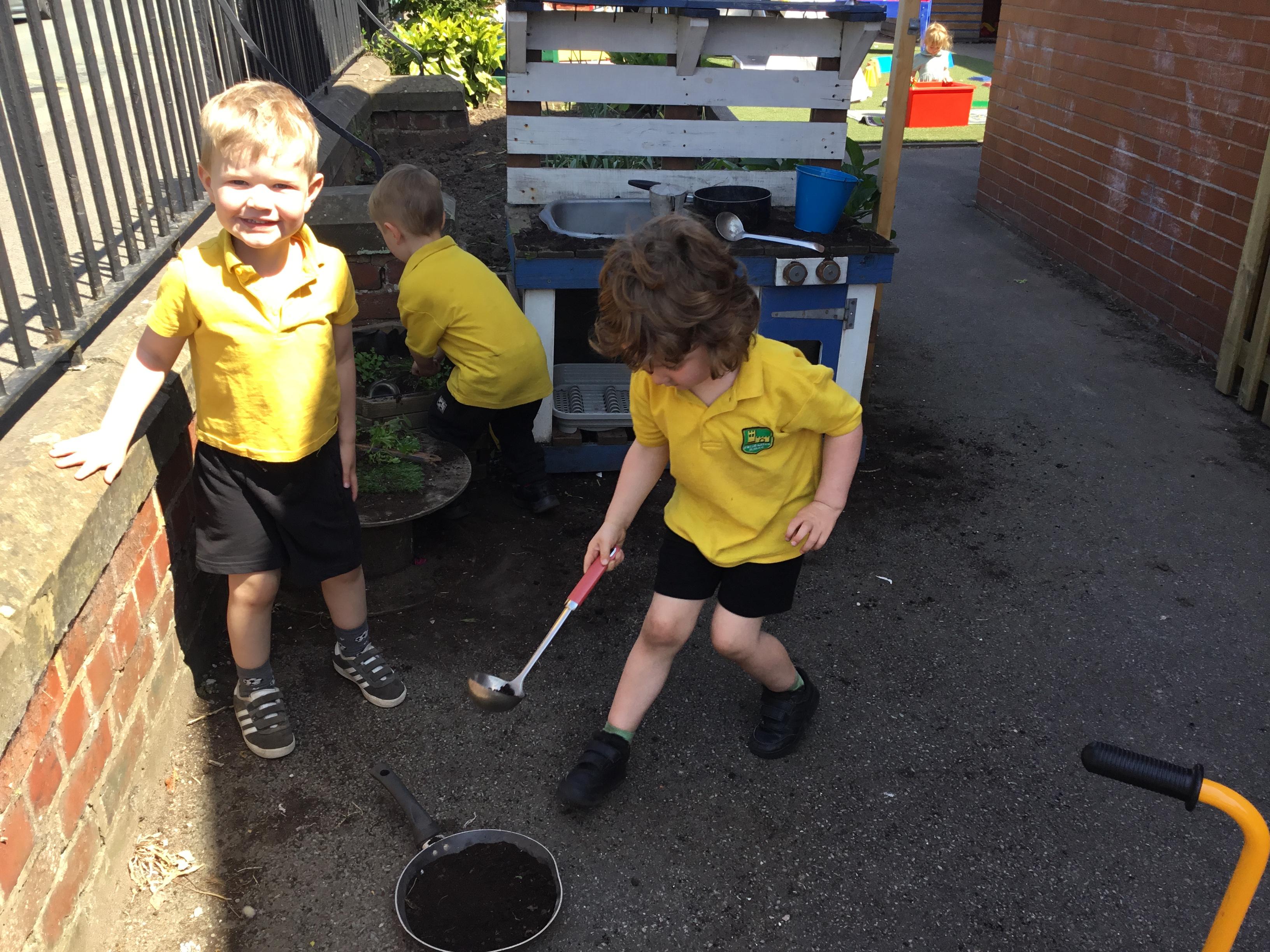 We have had a fantastic week, being outside doing our activities. This week the children have been learning about money, making petal play dough , creating a garden display and ordering beanstalks.