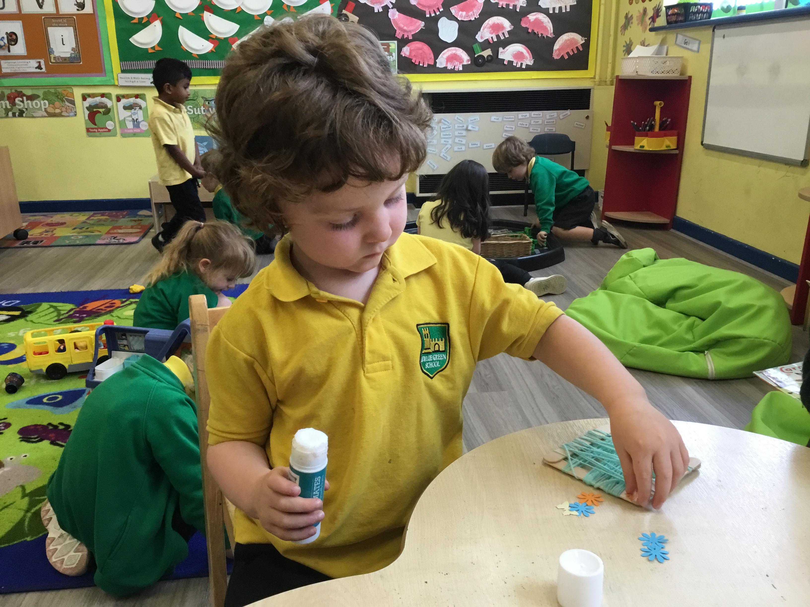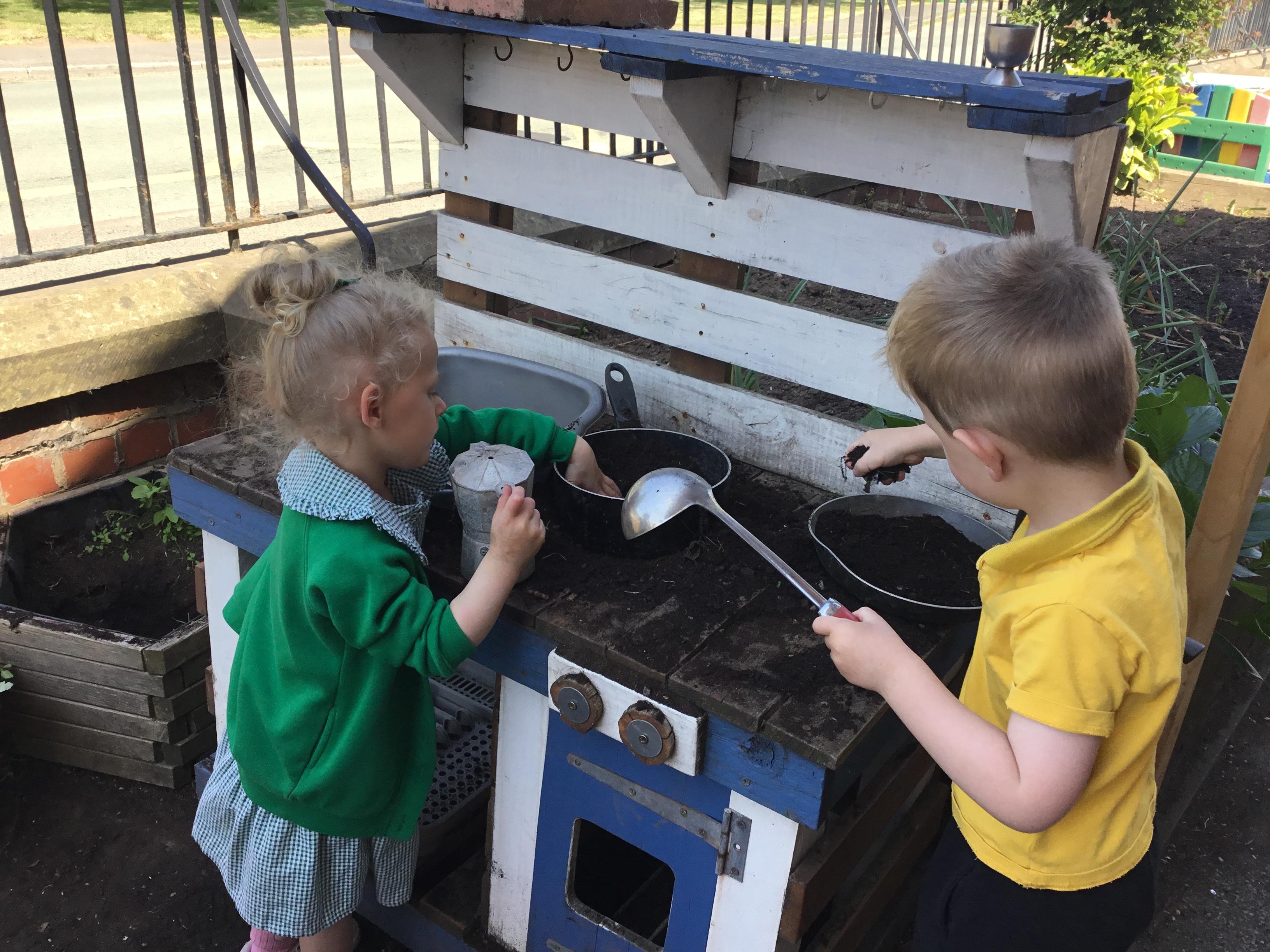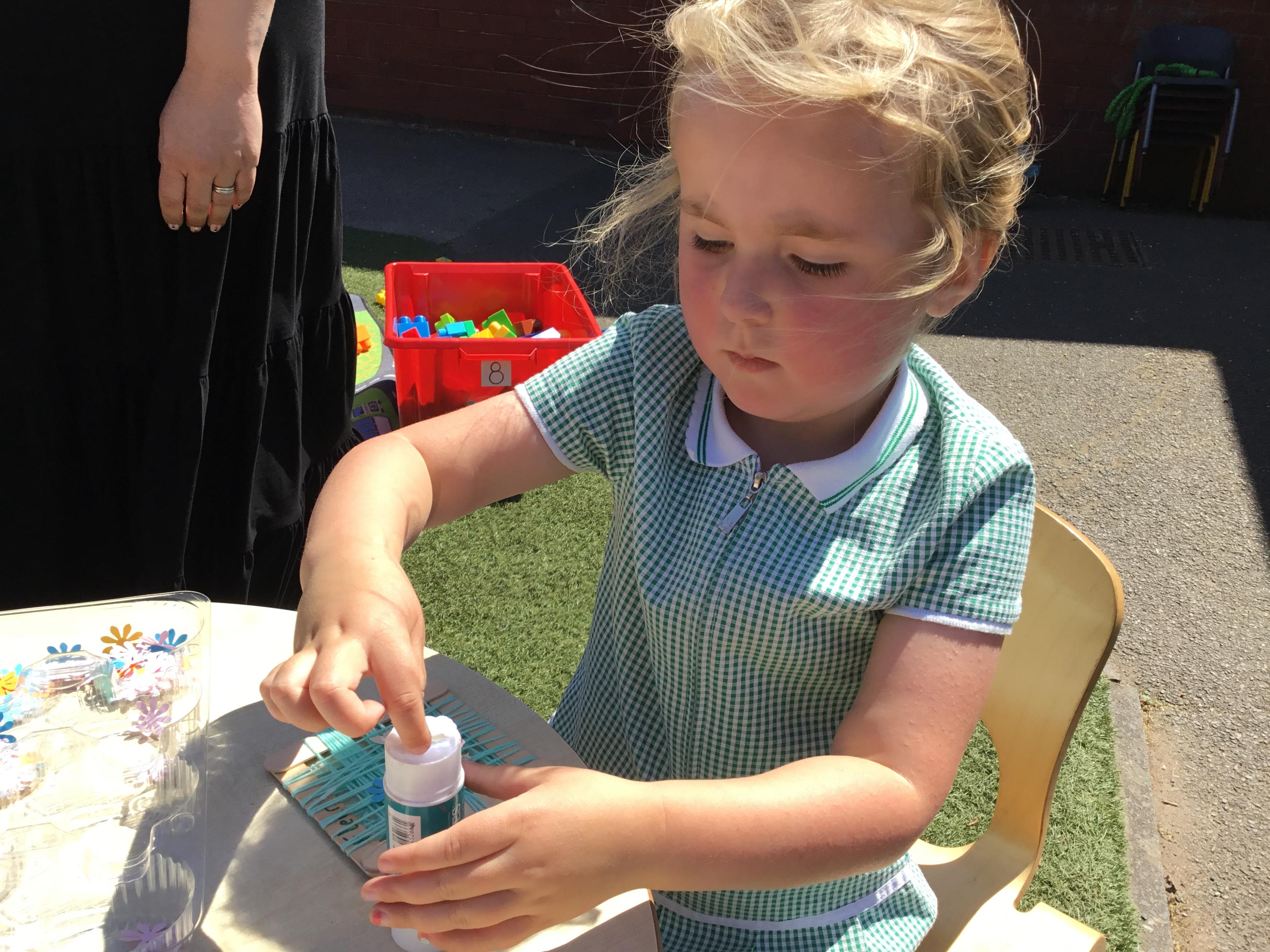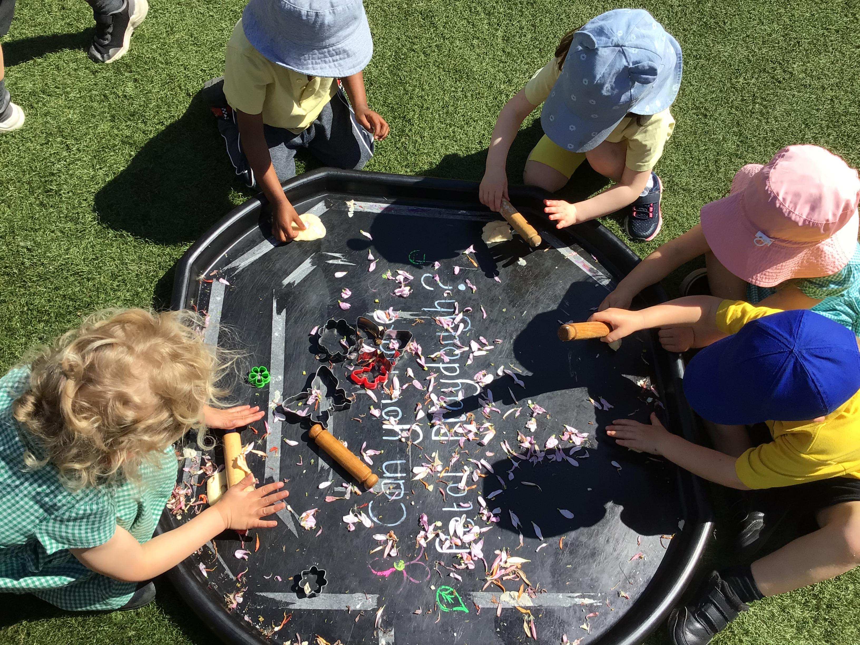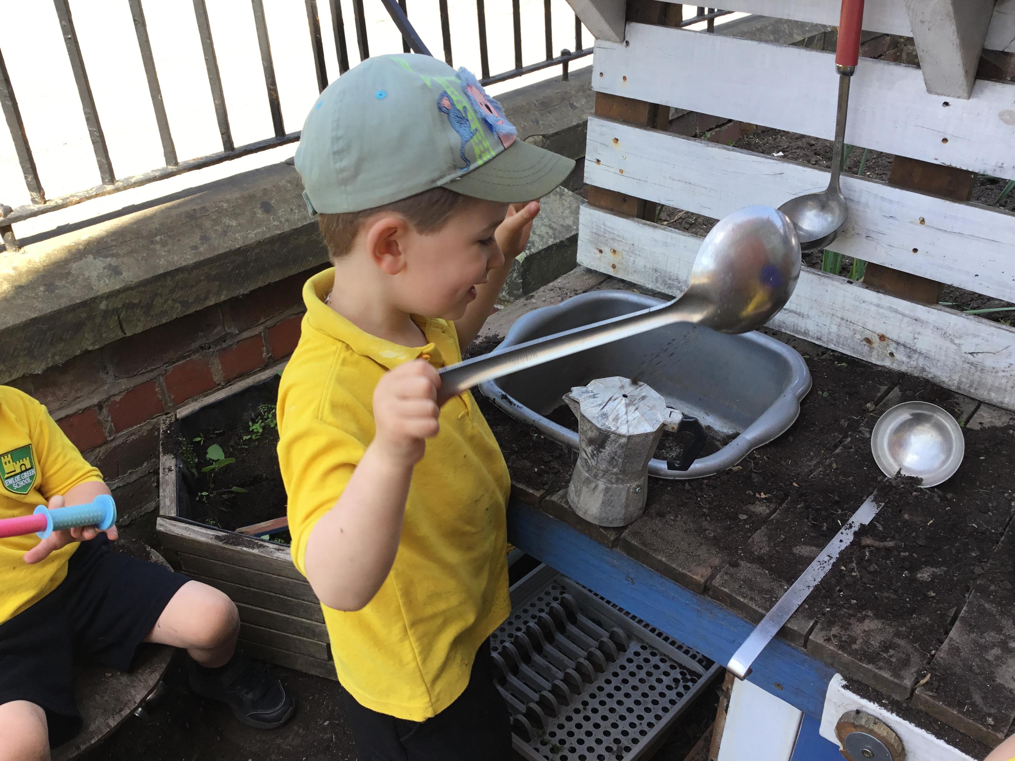 We have had a fantastic week, being outside doing our activities. This week the children have been learning about money, making petal play dough , creating a garden display and ordering beanstalks.