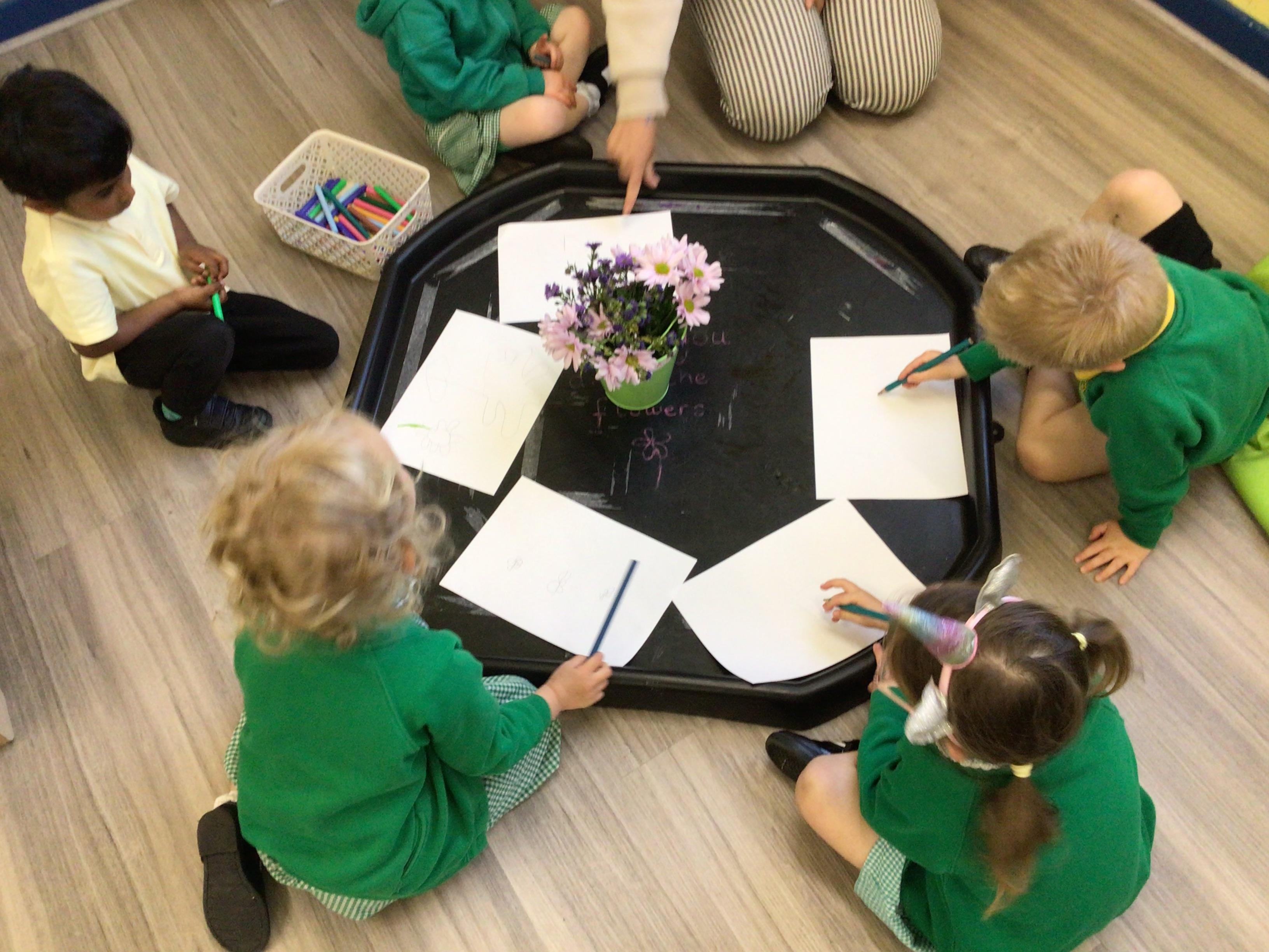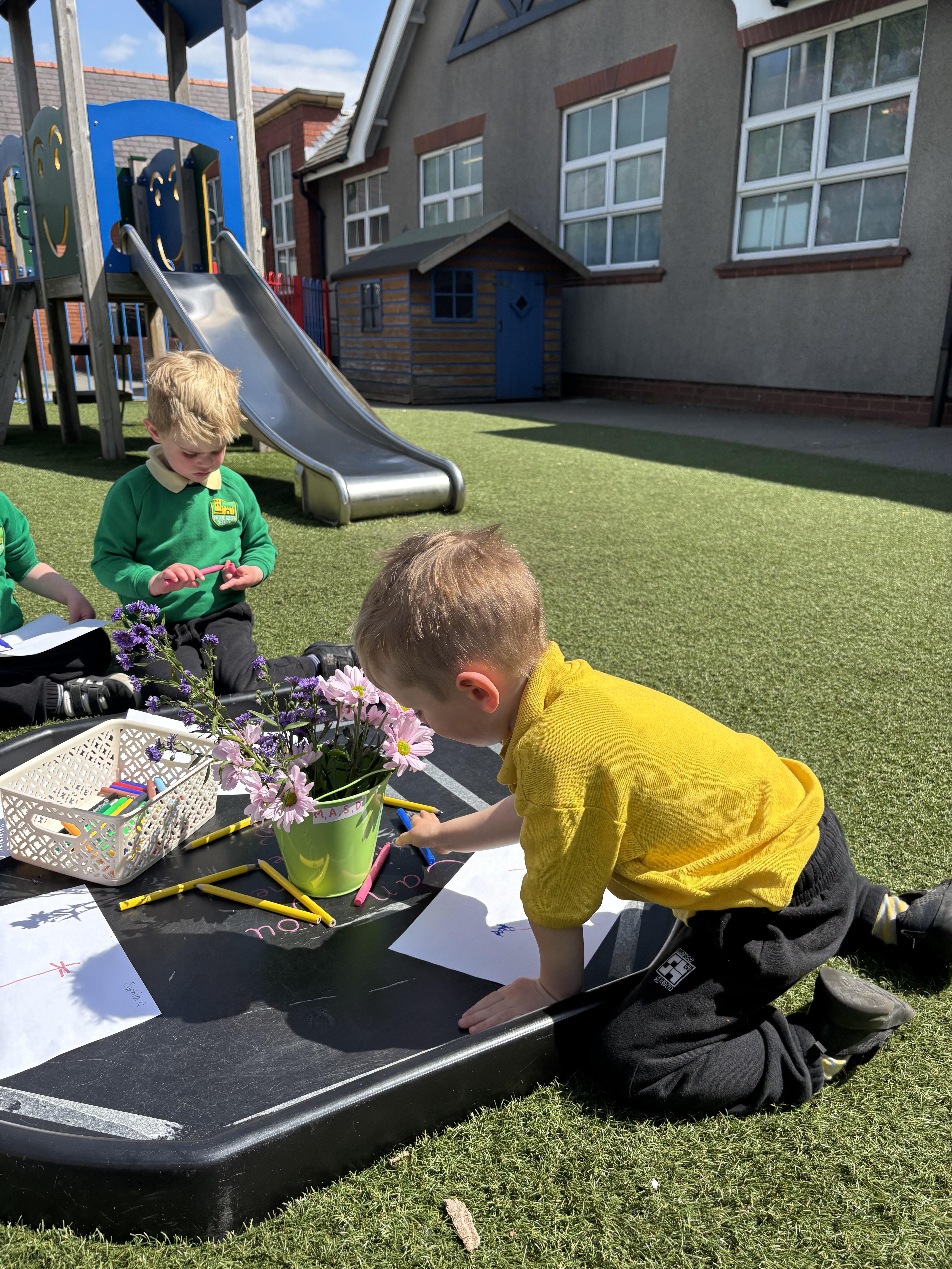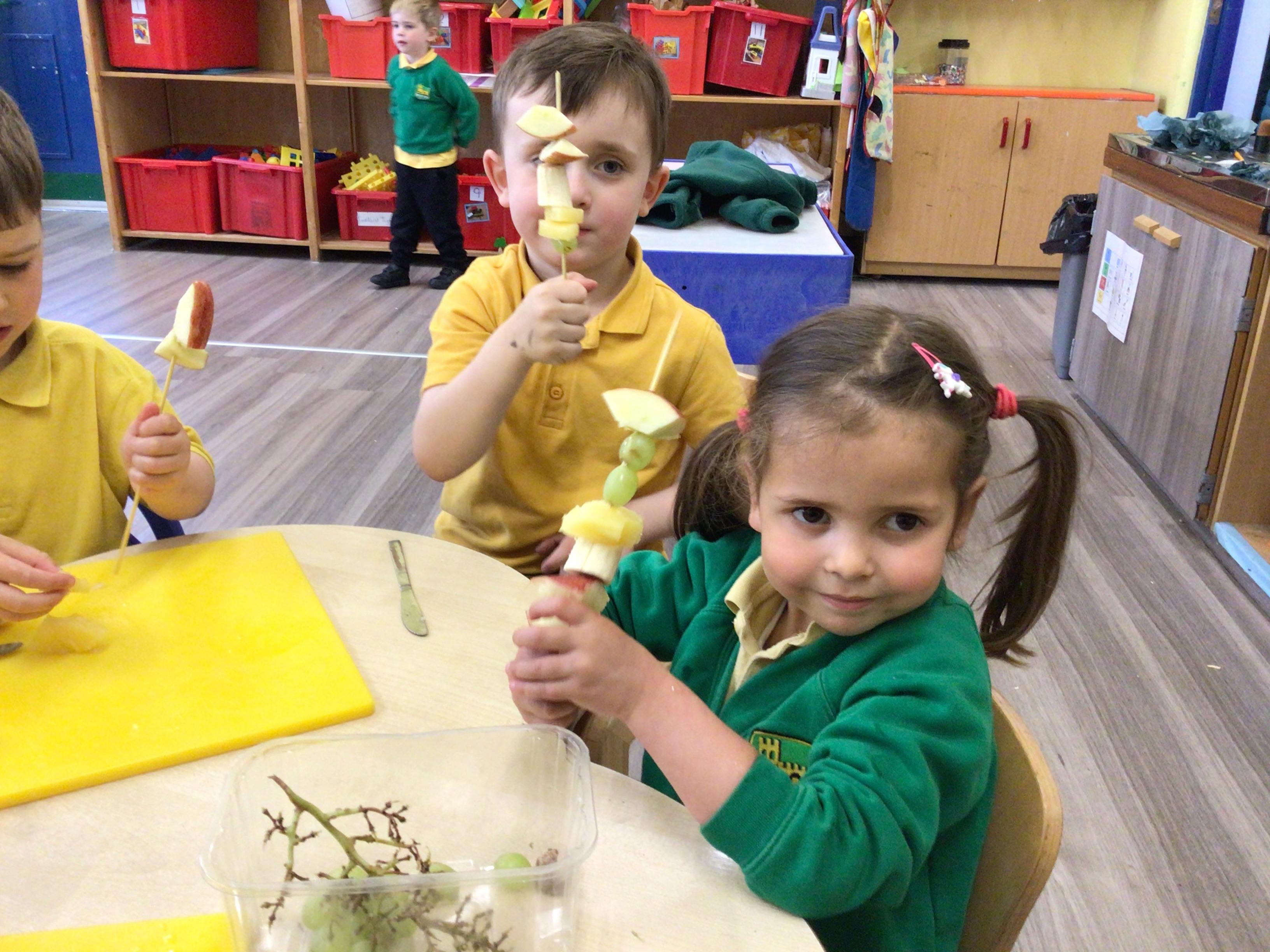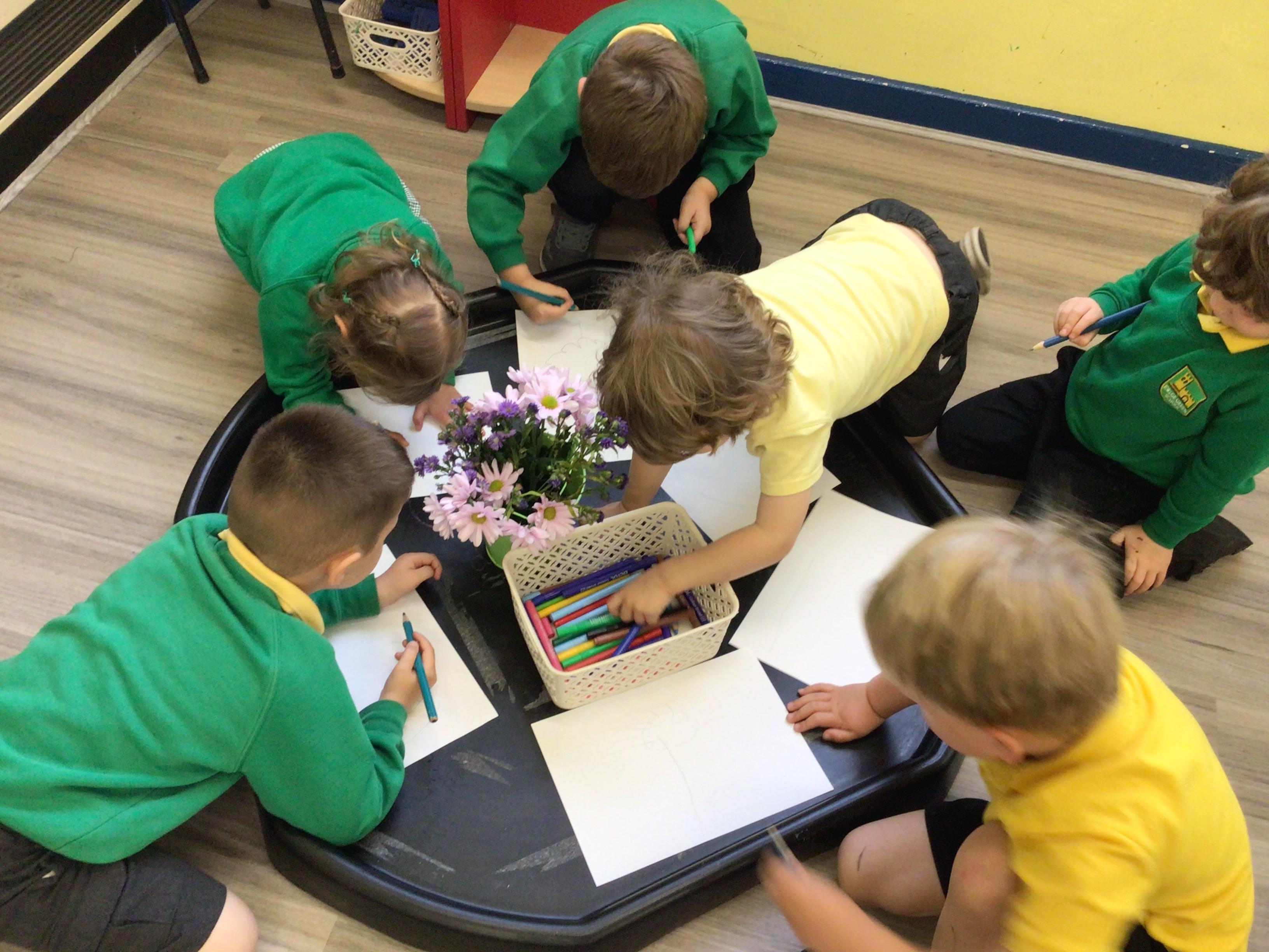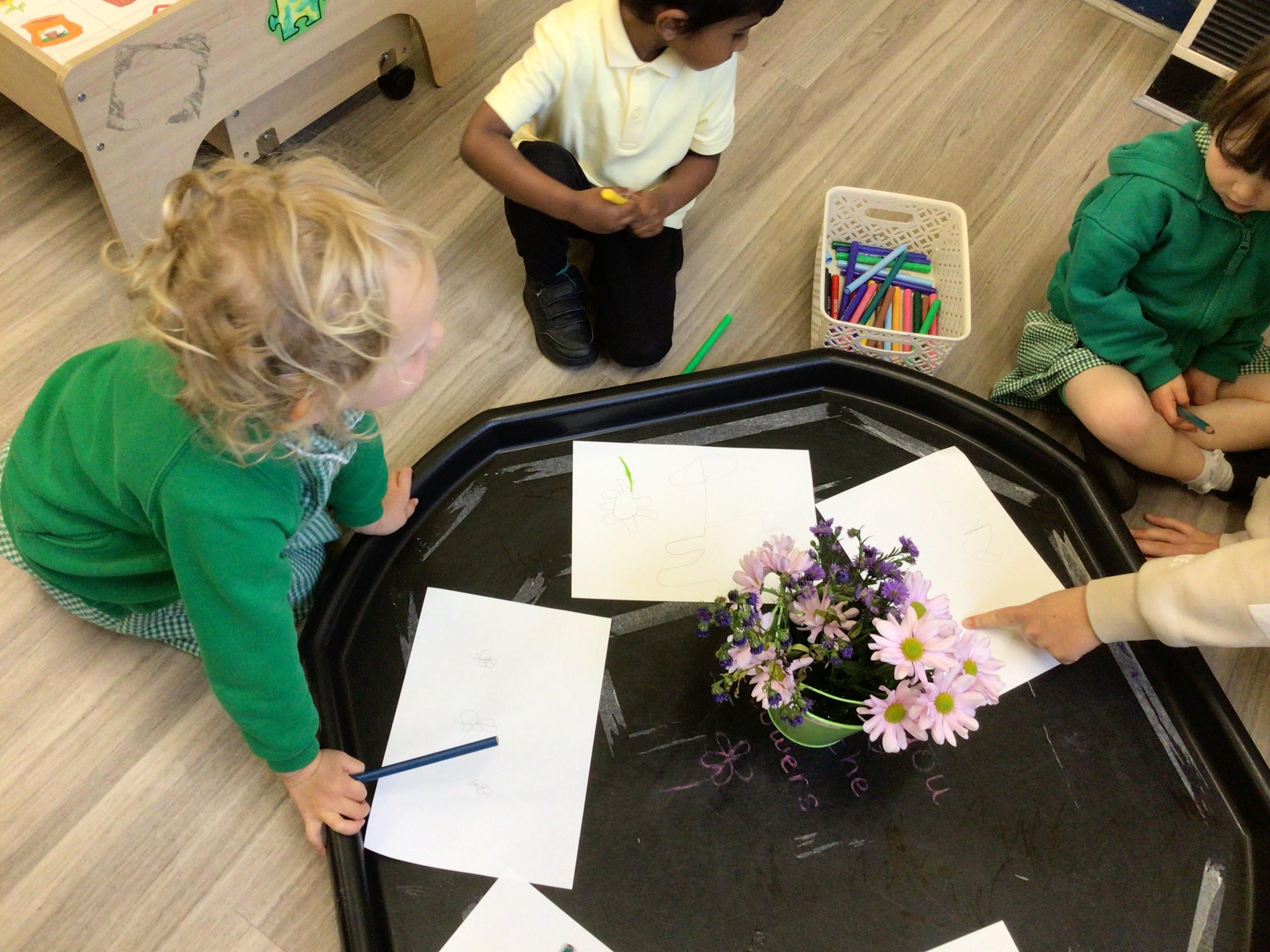 The children have enjoyed making fruit kebabs and discussing healthy and unhealthy foods. They have used and counted money. We were lucky to have real flowers given to us for our topic. The children have been drawing the flowers independently and planting the flowers.