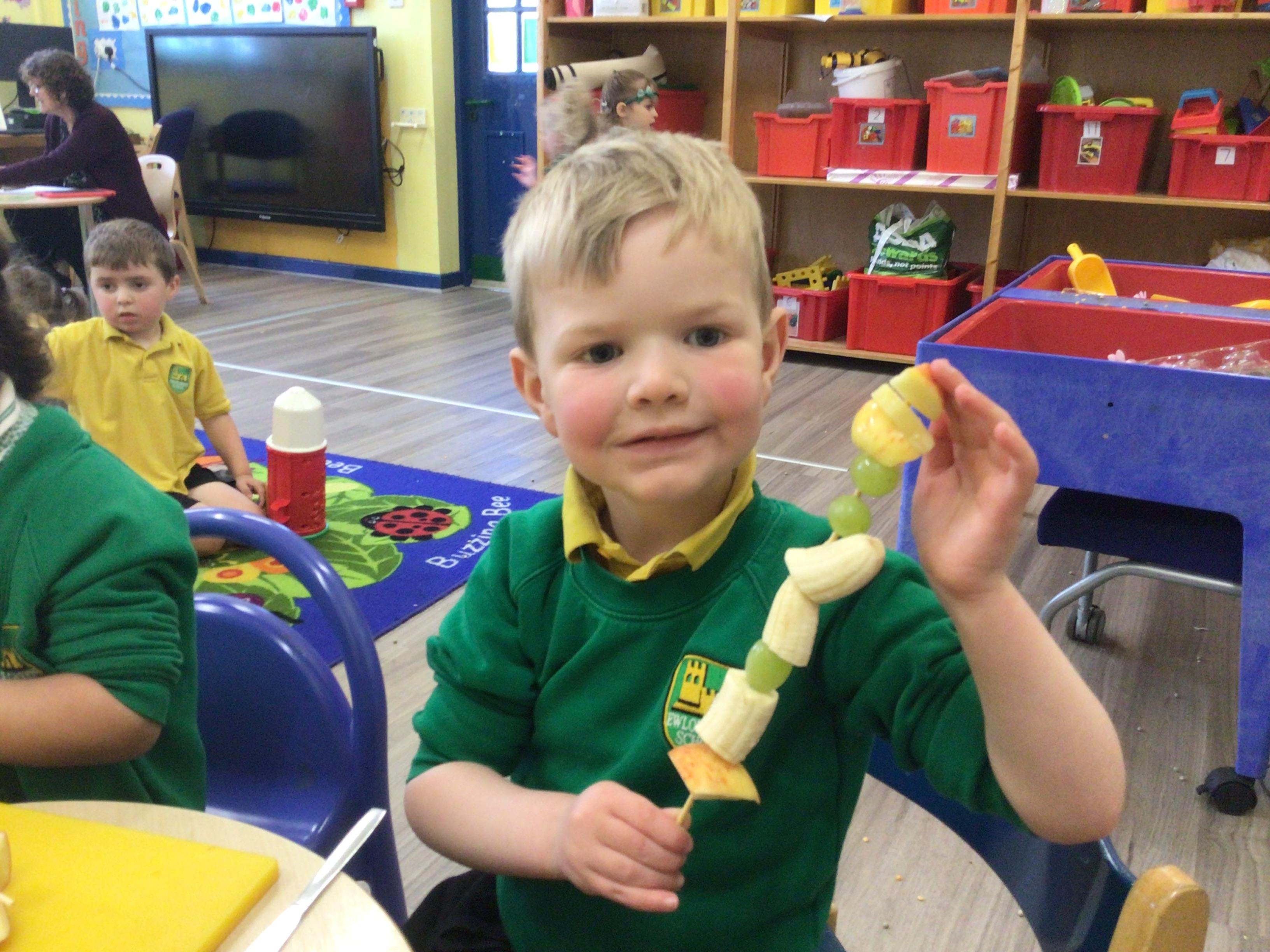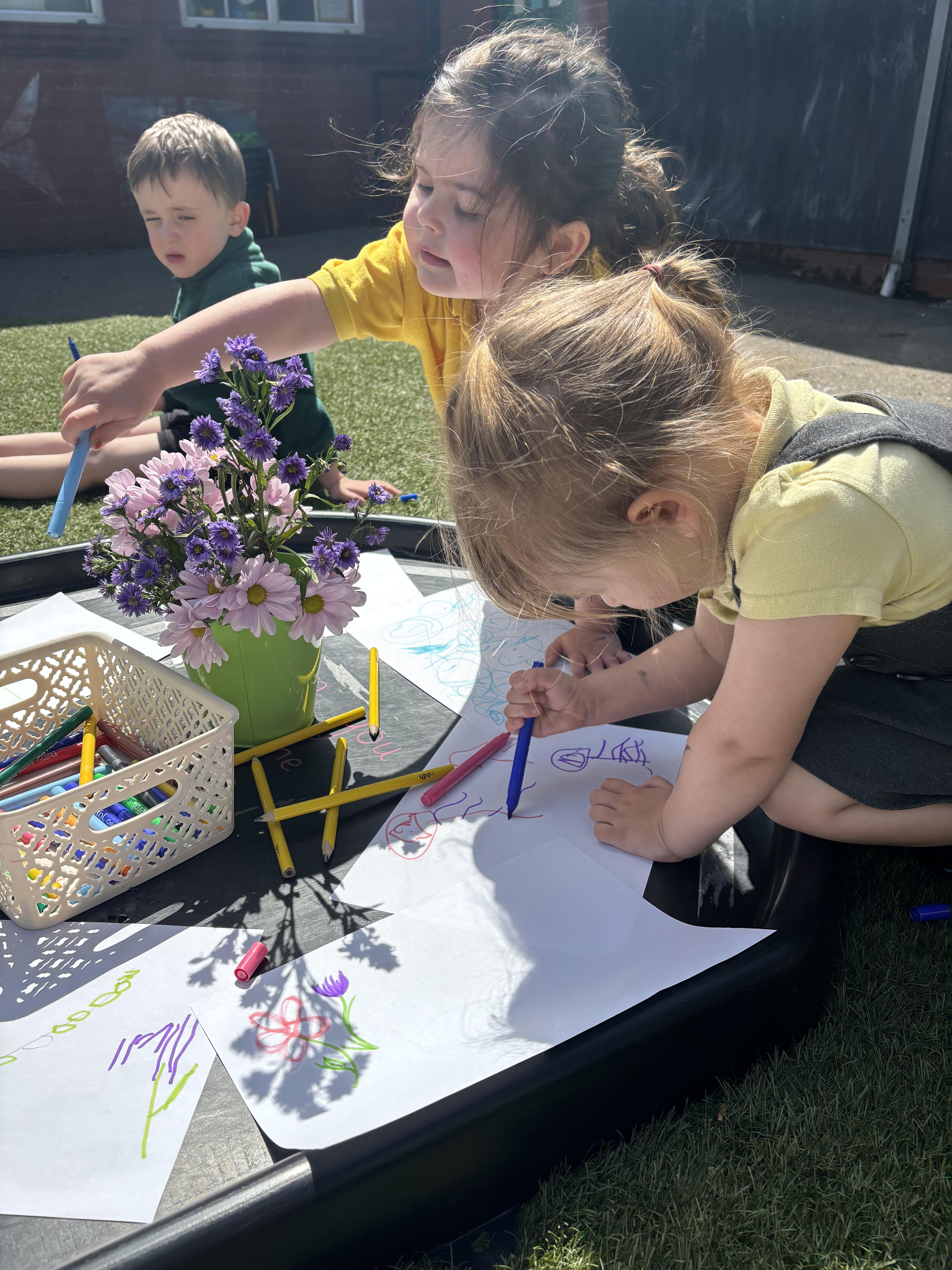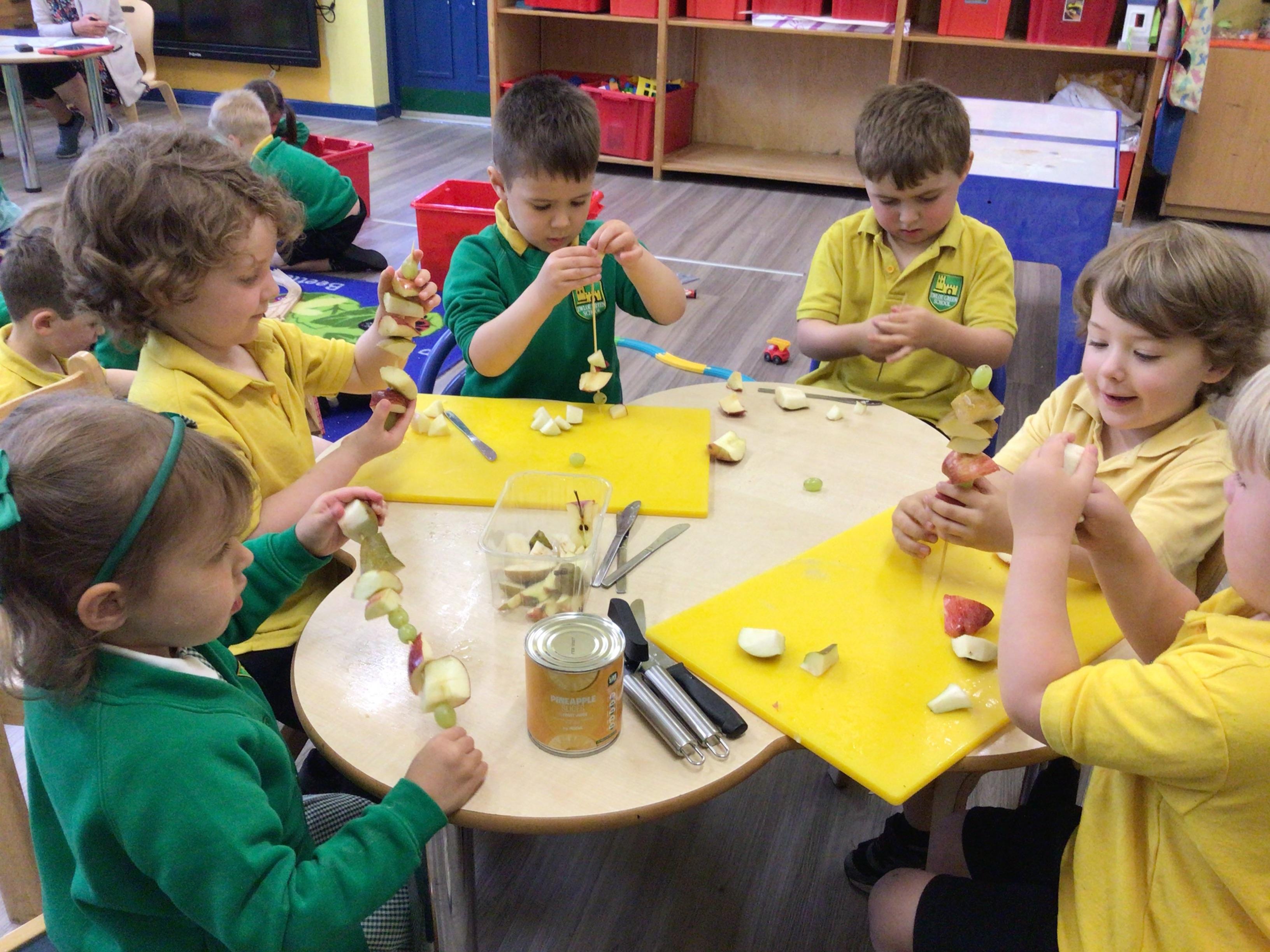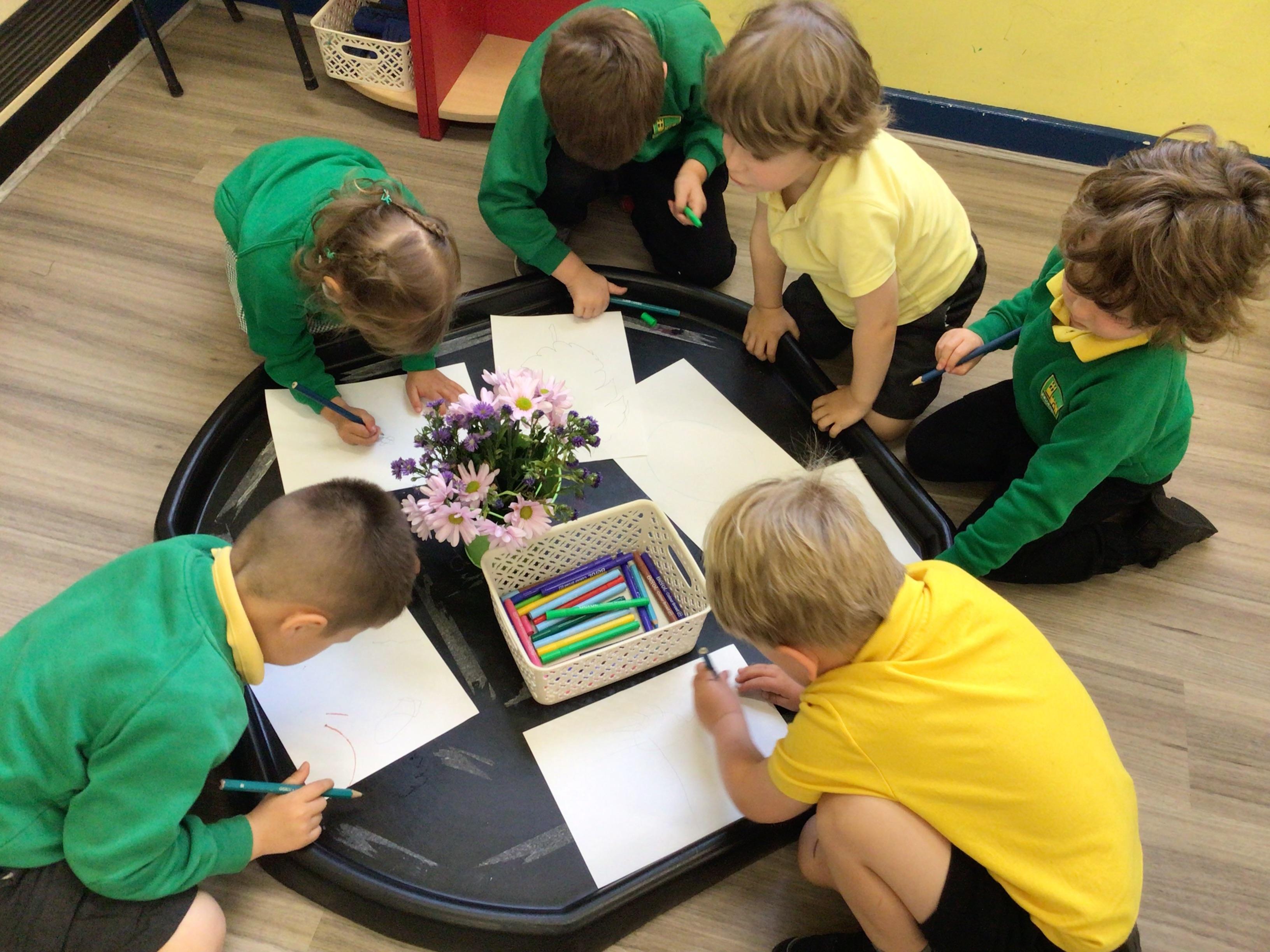 The children have enjoyed making fruit kebabs and discussing healthy and unhealthy foods. They have used and counted money. We were lucky to have real flowers given to us for our topic. The children have been drawing the flowers independently and planting the flowers.