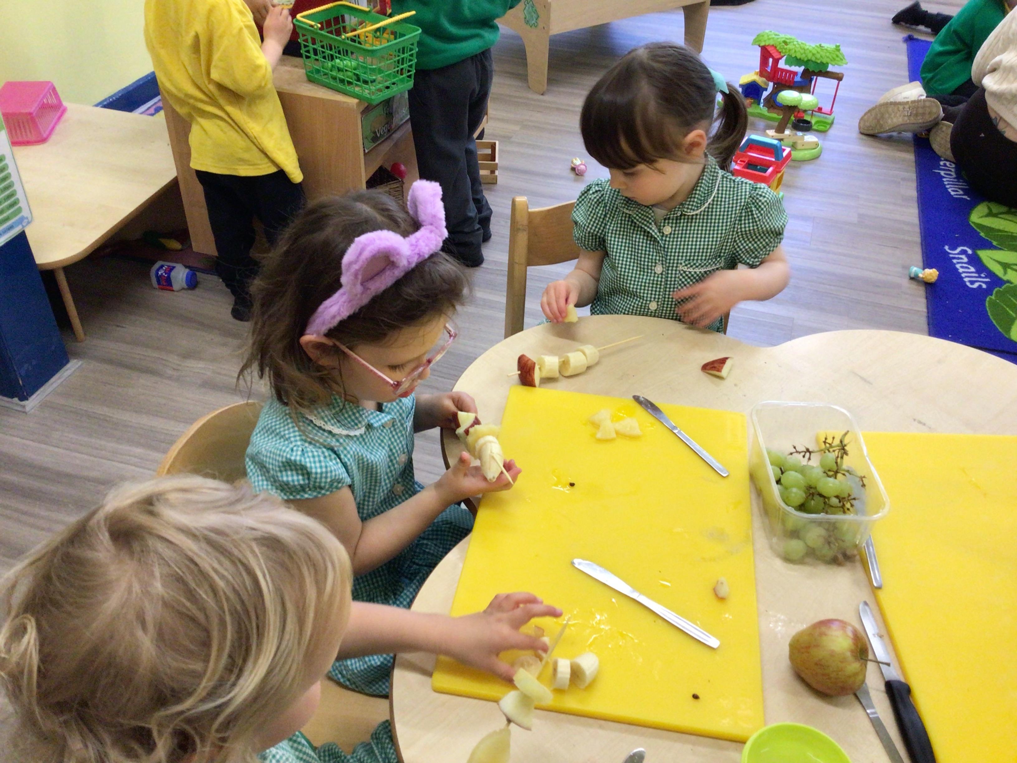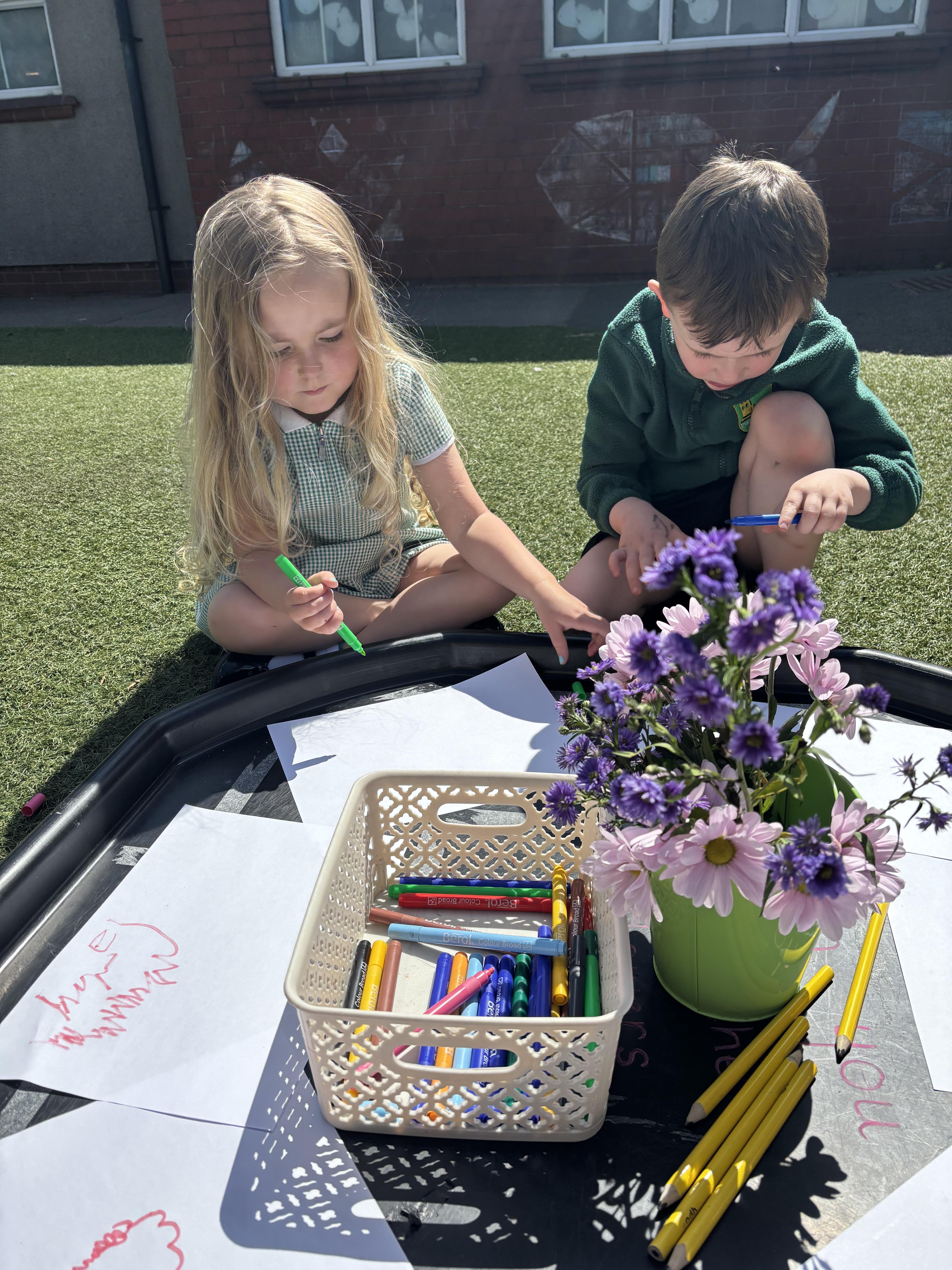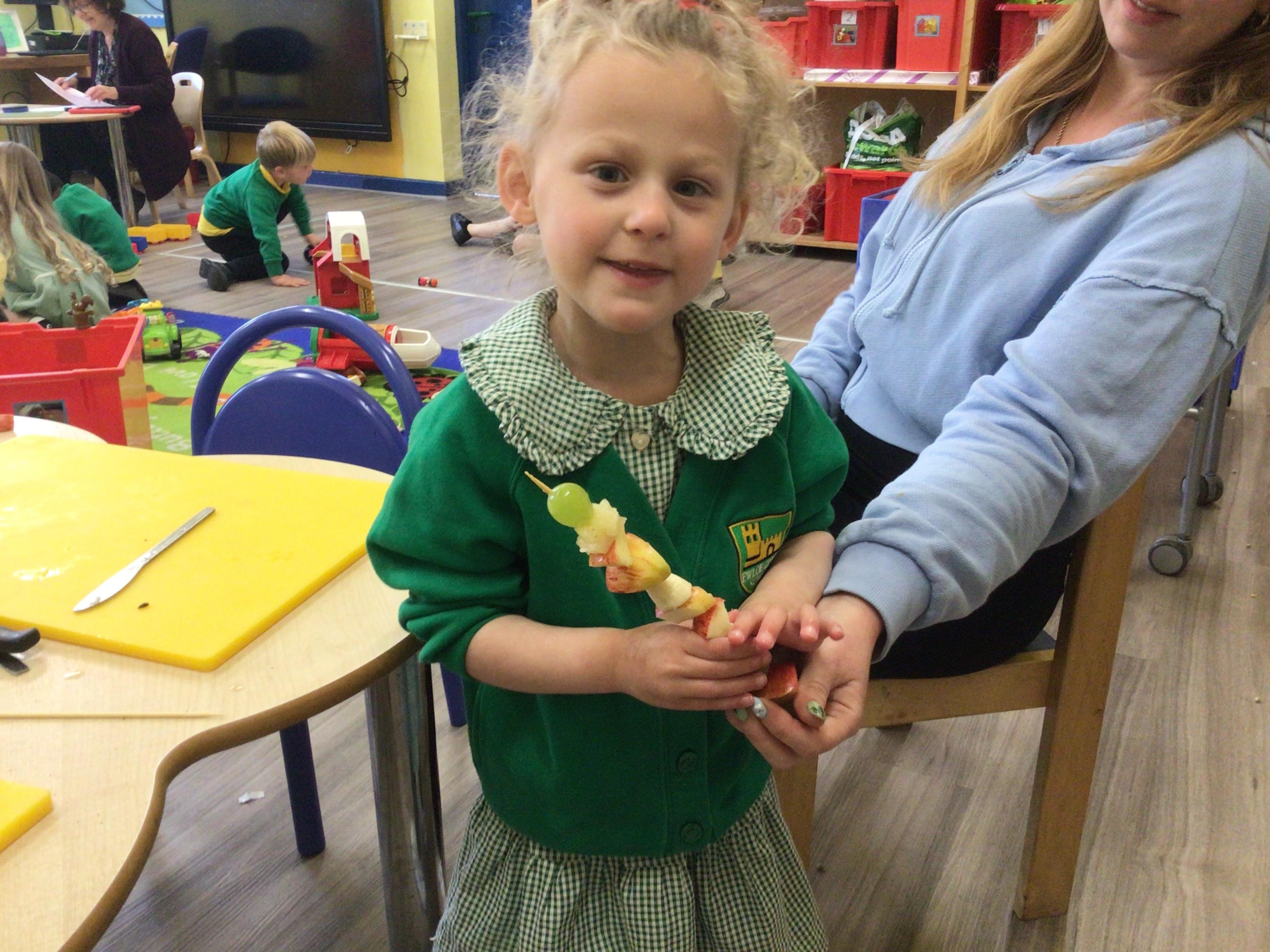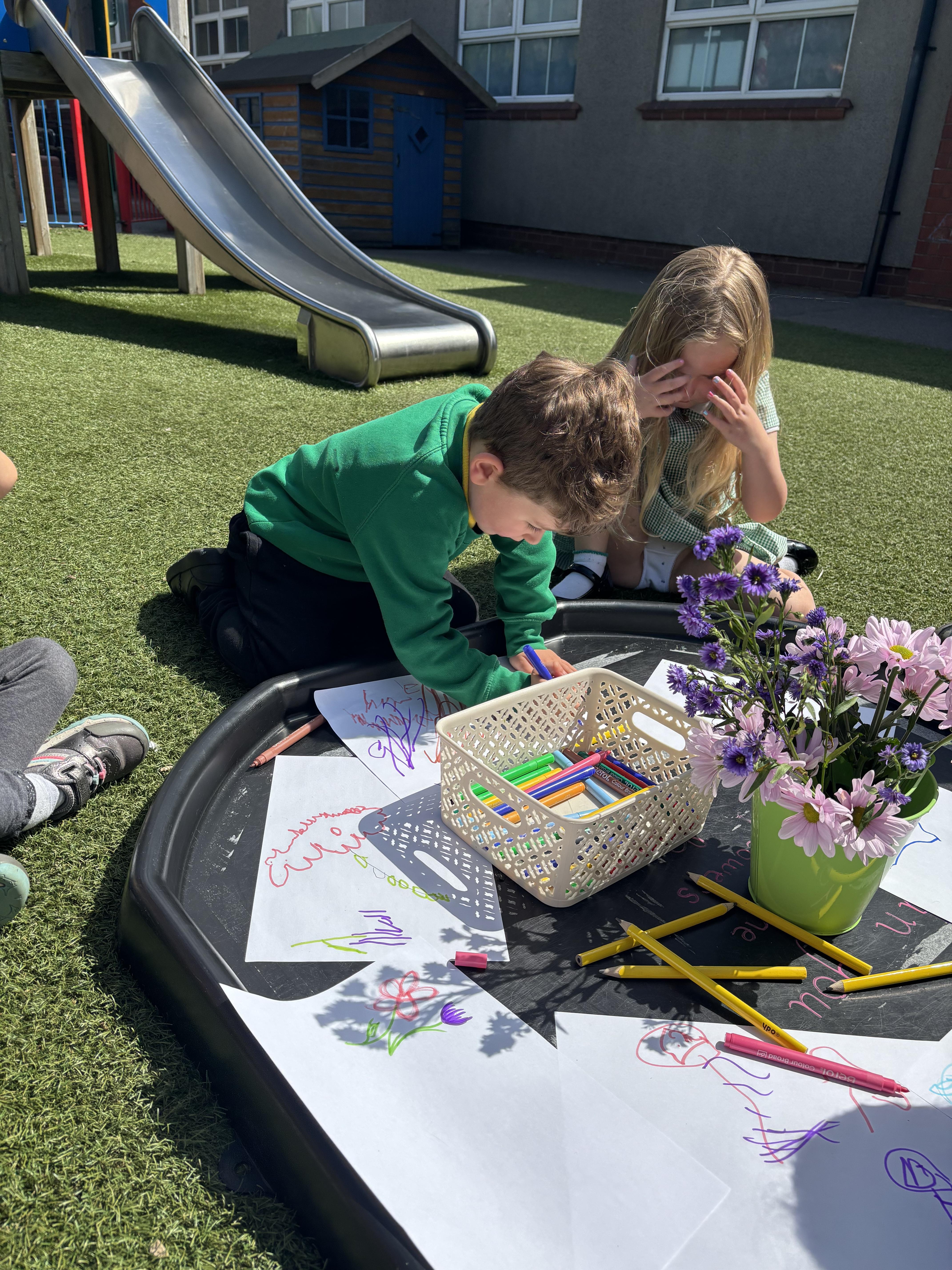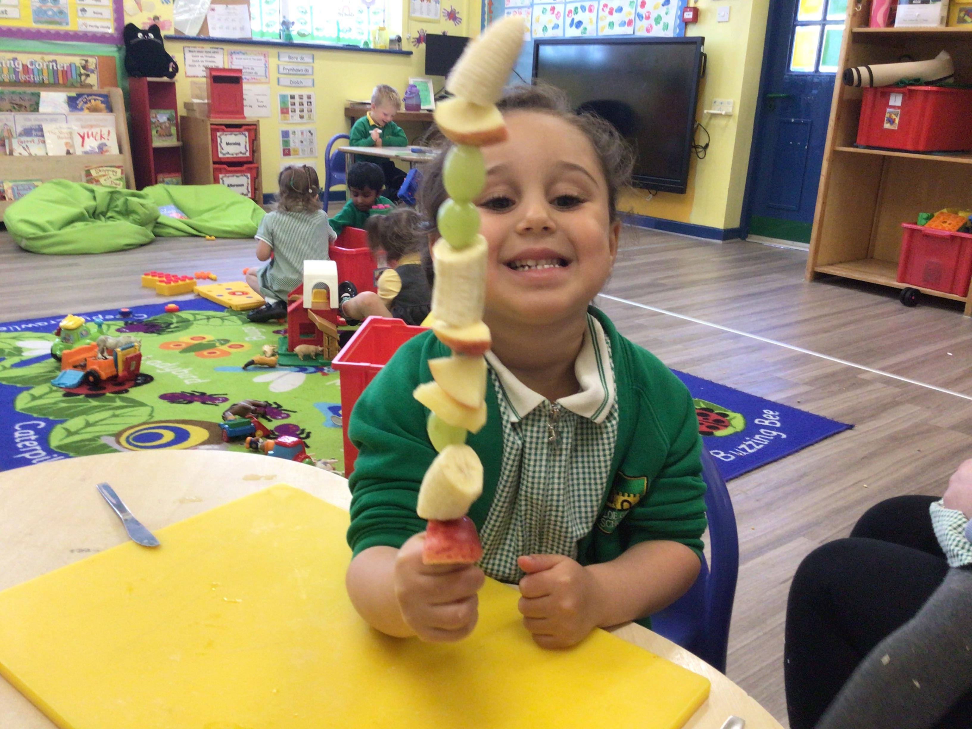The children have enjoyed making fruit kebabs and discussing healthy and unhealthy foods. They have used and counted money. We were lucky to have real flowers given to us for our topic. The children have been drawing the flowers independently and planting the flowers.