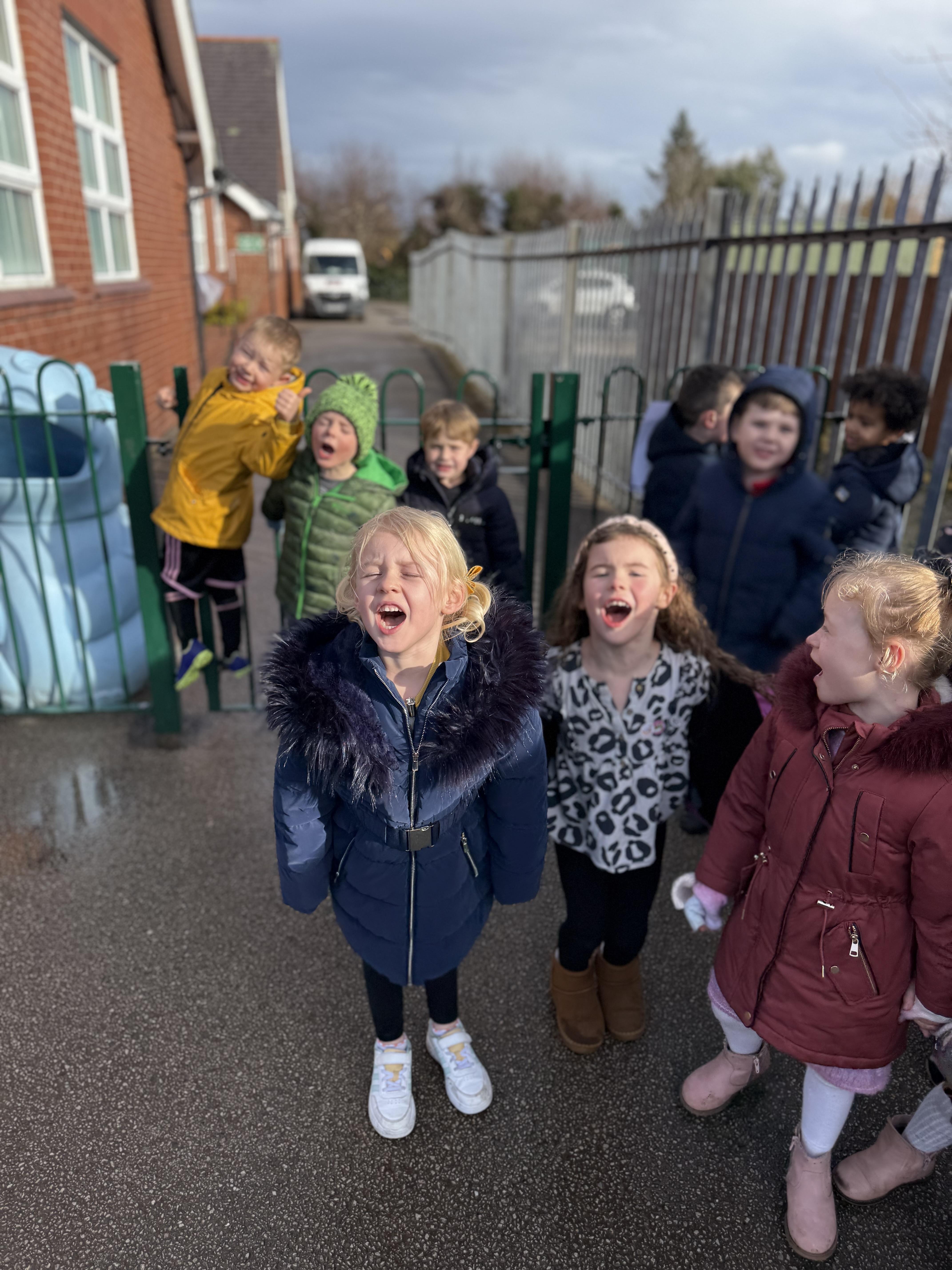 We took them outside to show them how we learn in school. We even sang to them too!