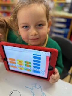 Wen have been using our technology skills to collect data. We picked 10 different colours from a box and recorded how many we got to see which one was the most picked. We did this in Welsh too!