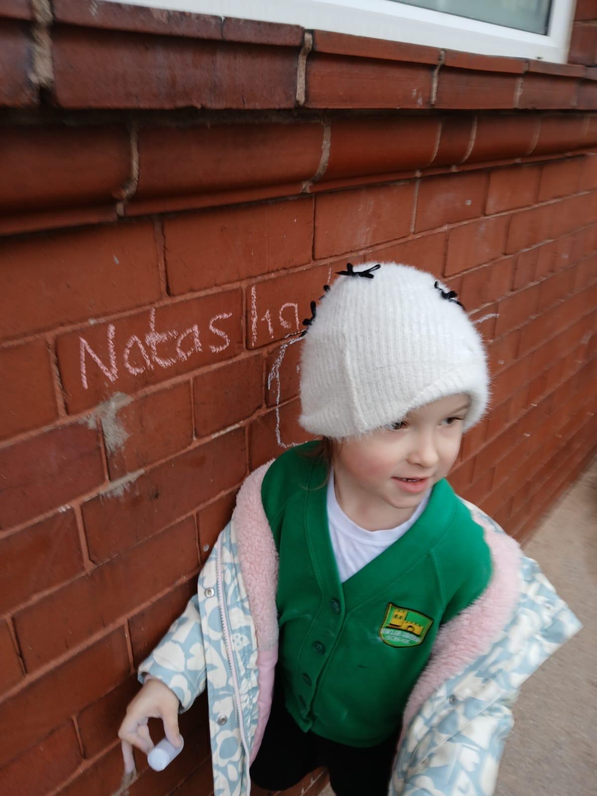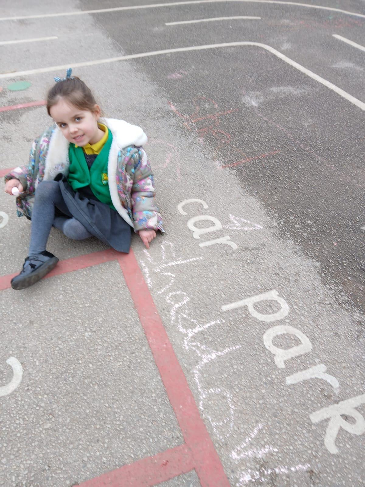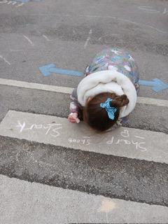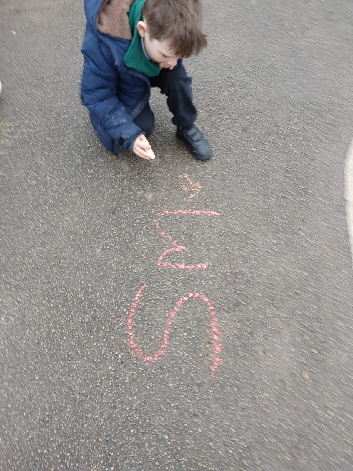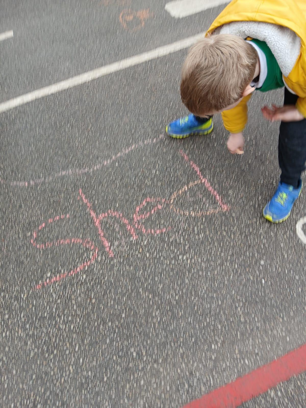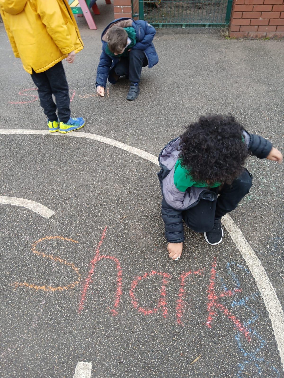 We went outside to write lots of words with the sound sh in them.