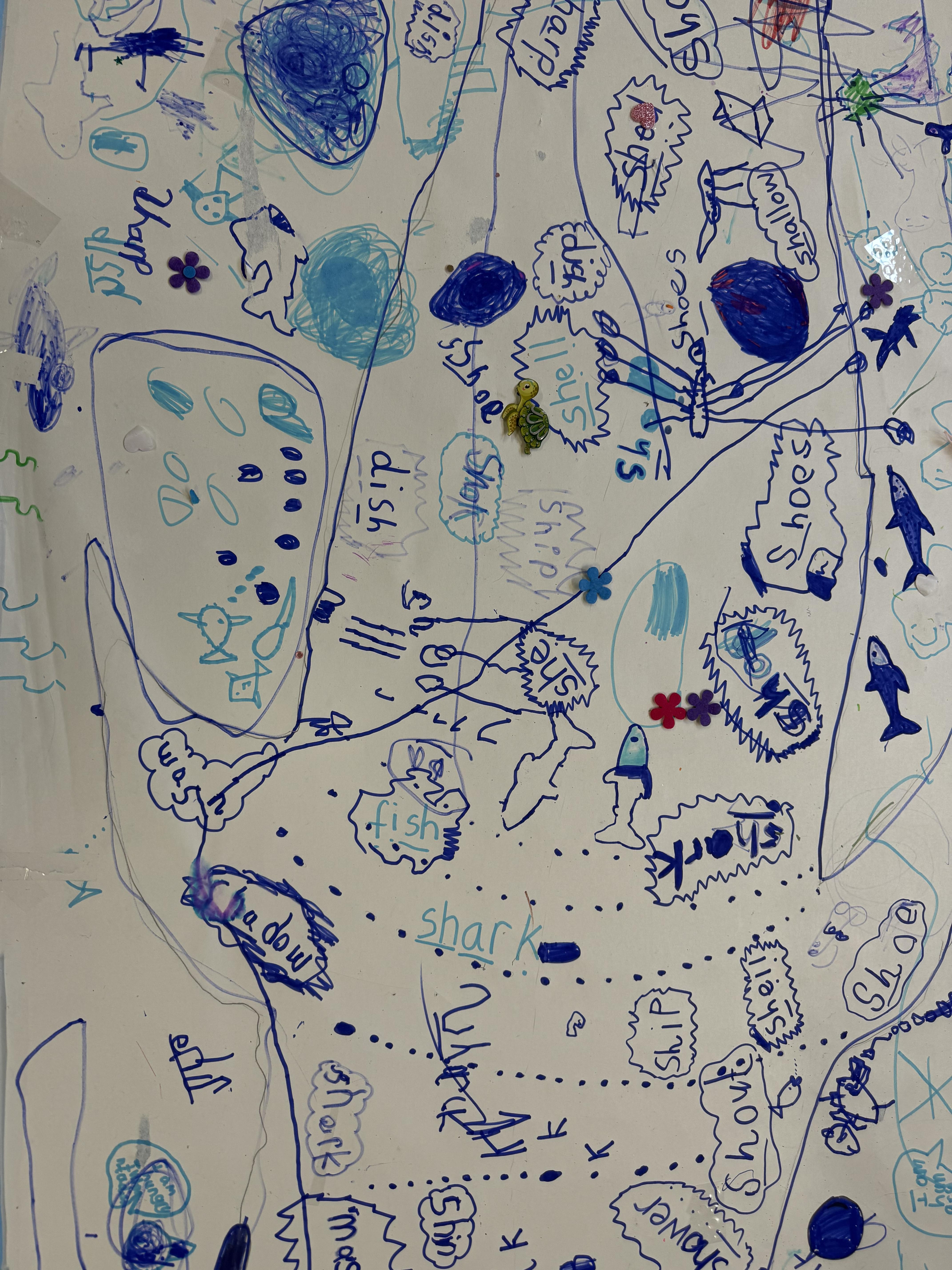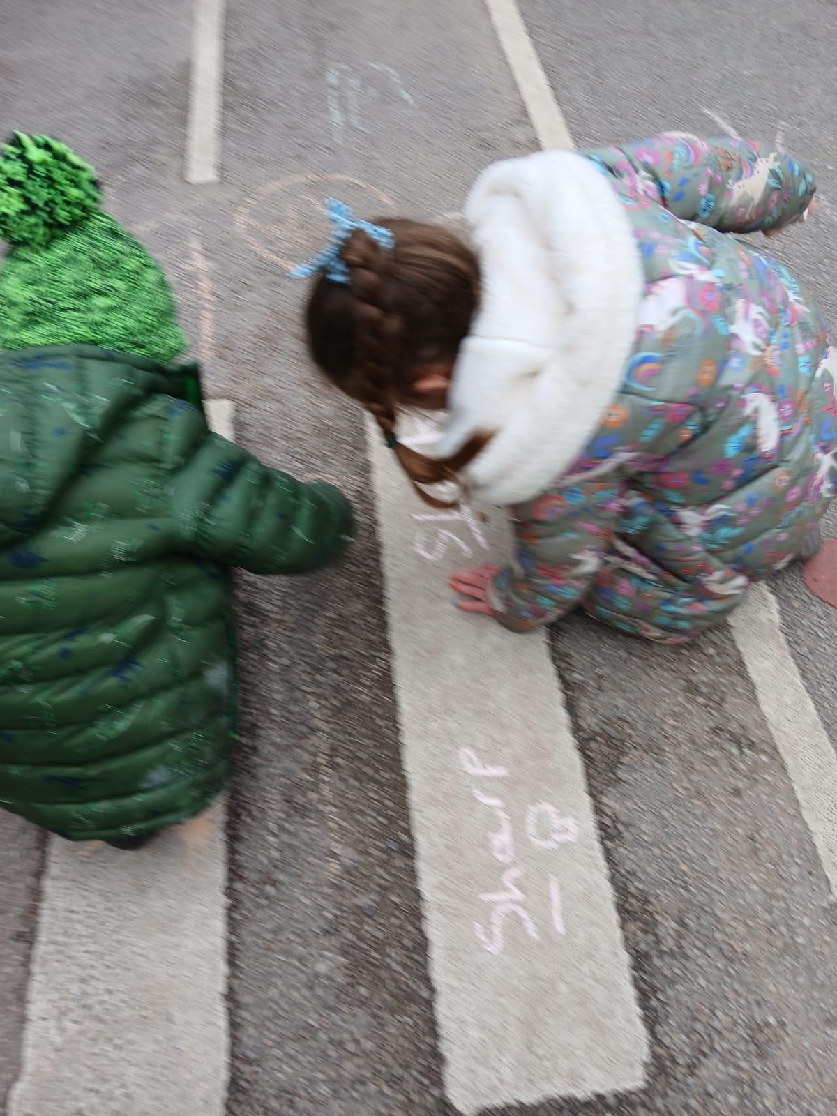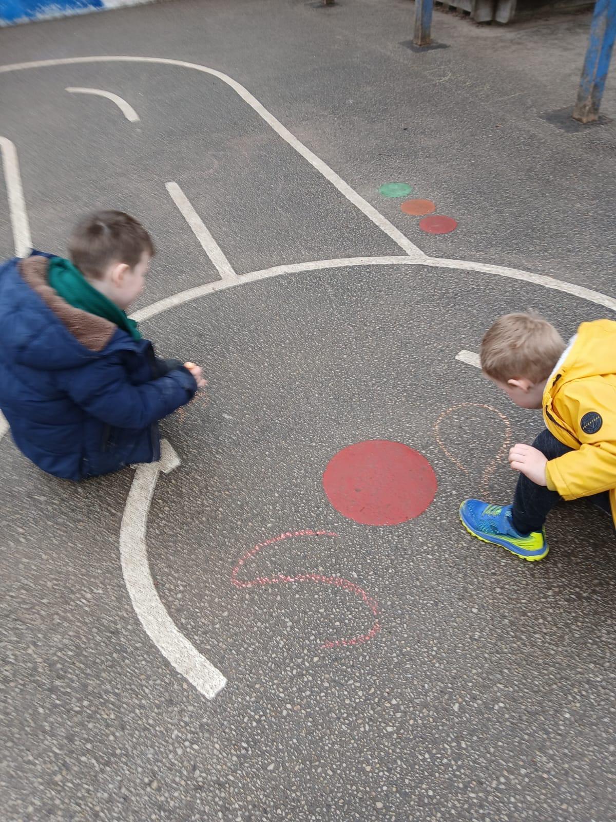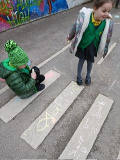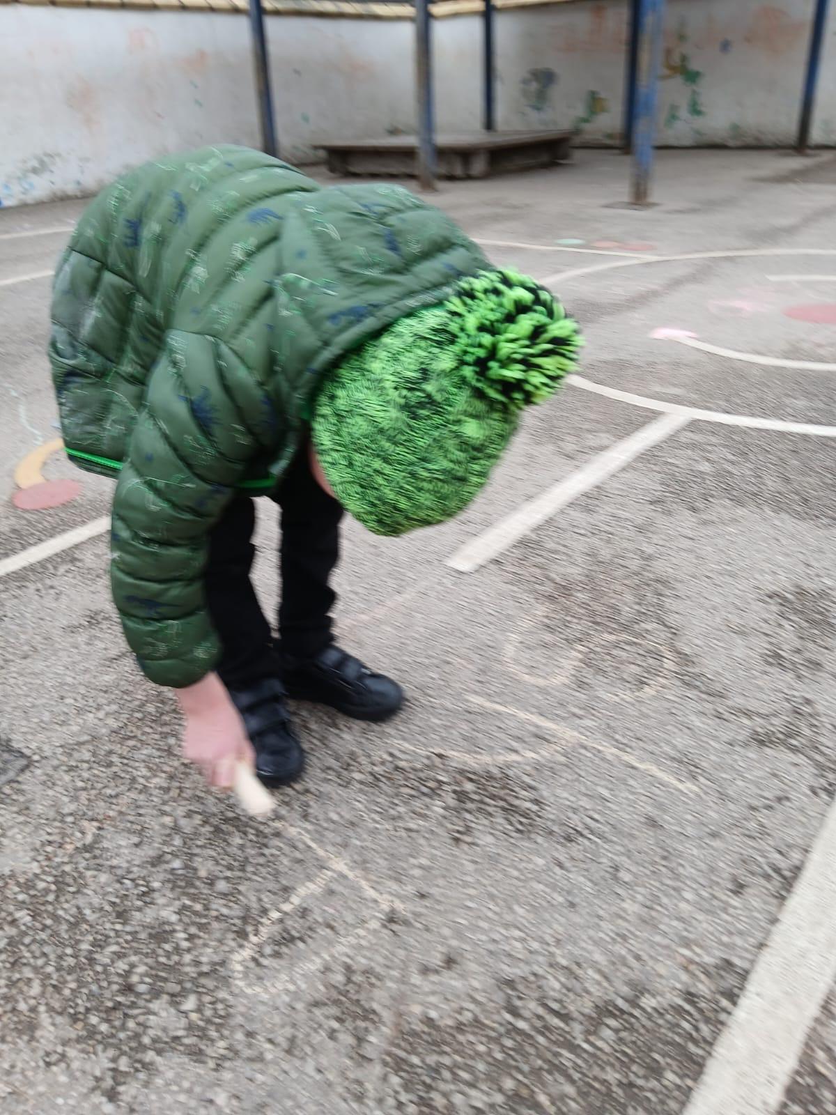 We went outside to write lots of words with the sound sh in them.