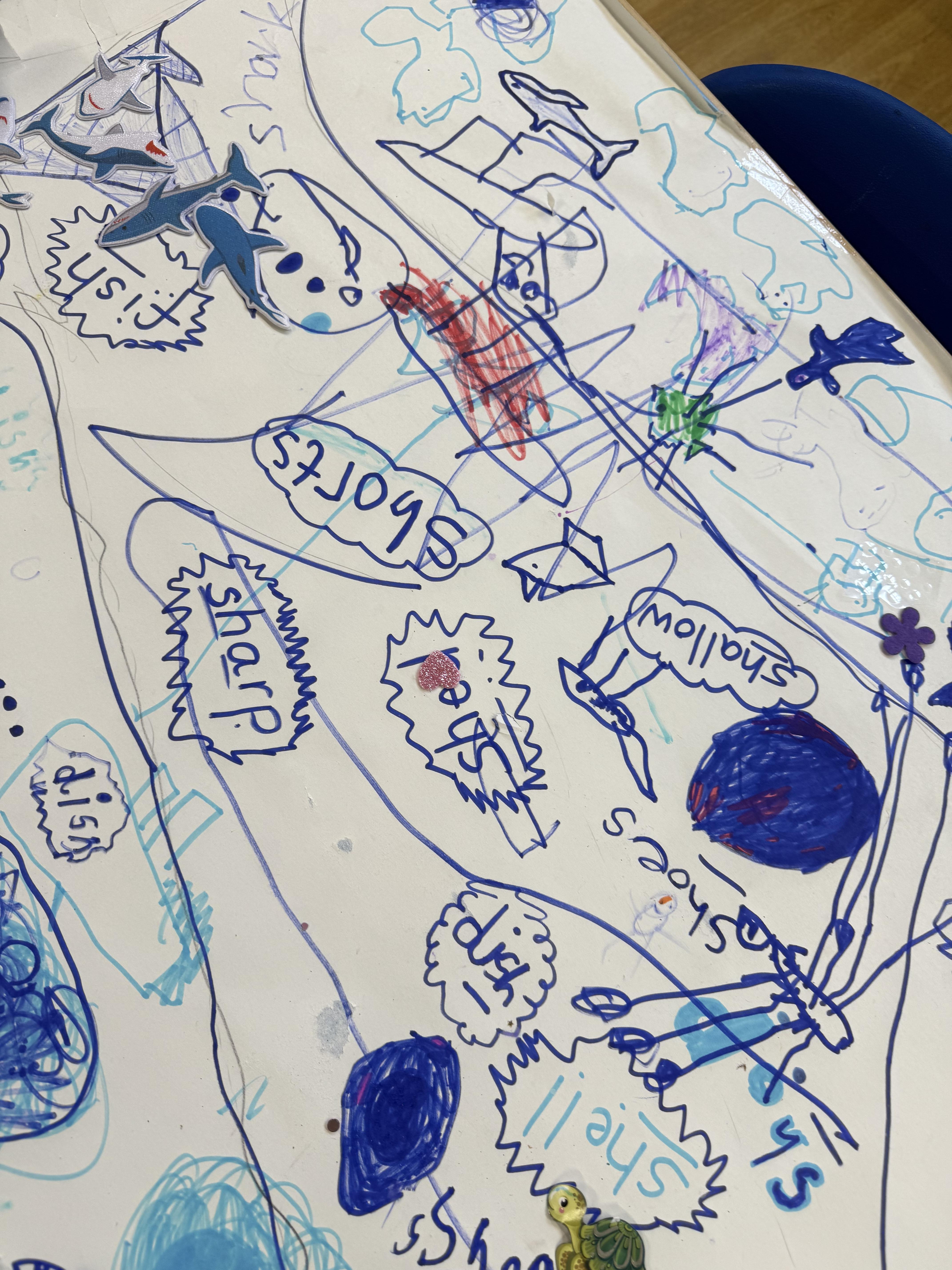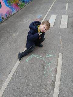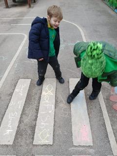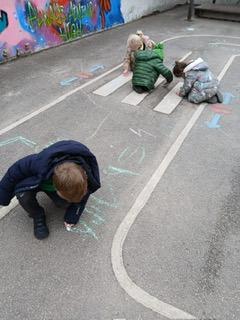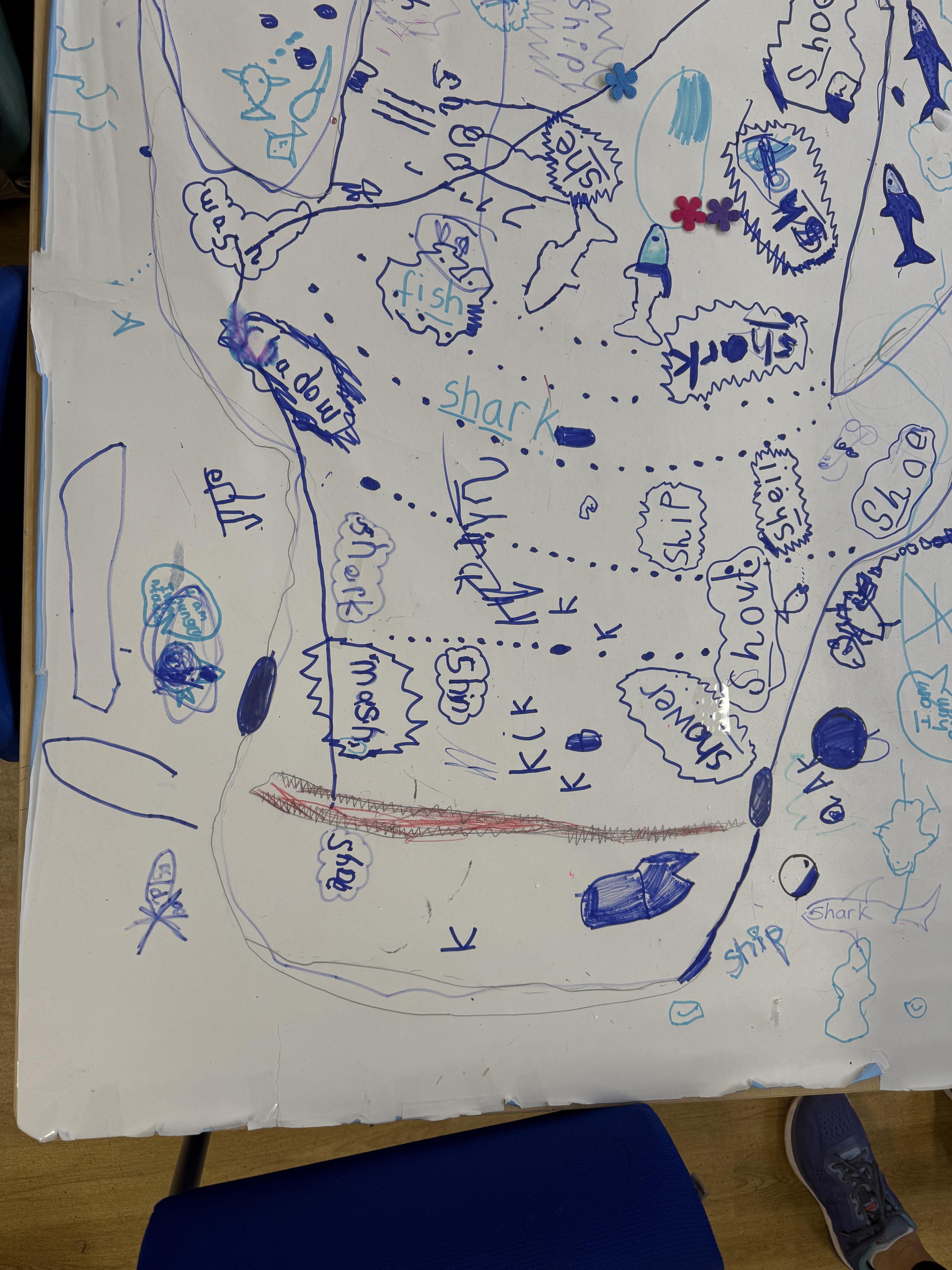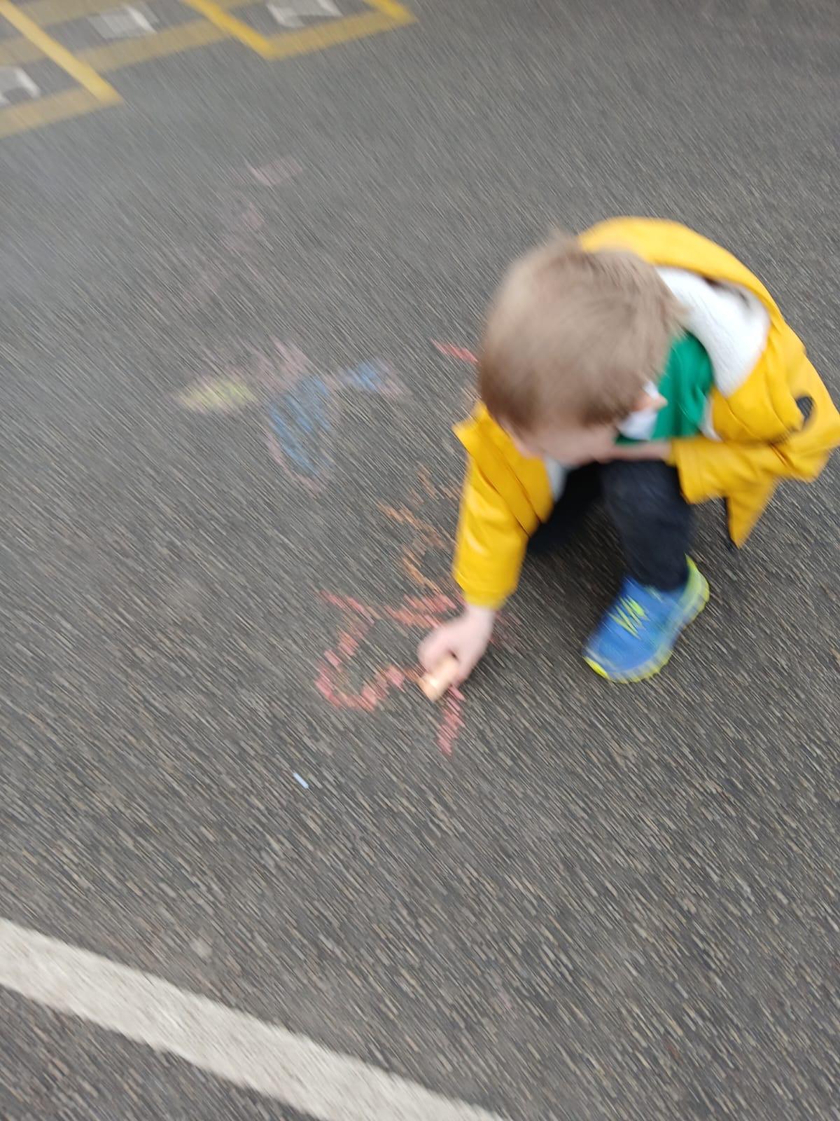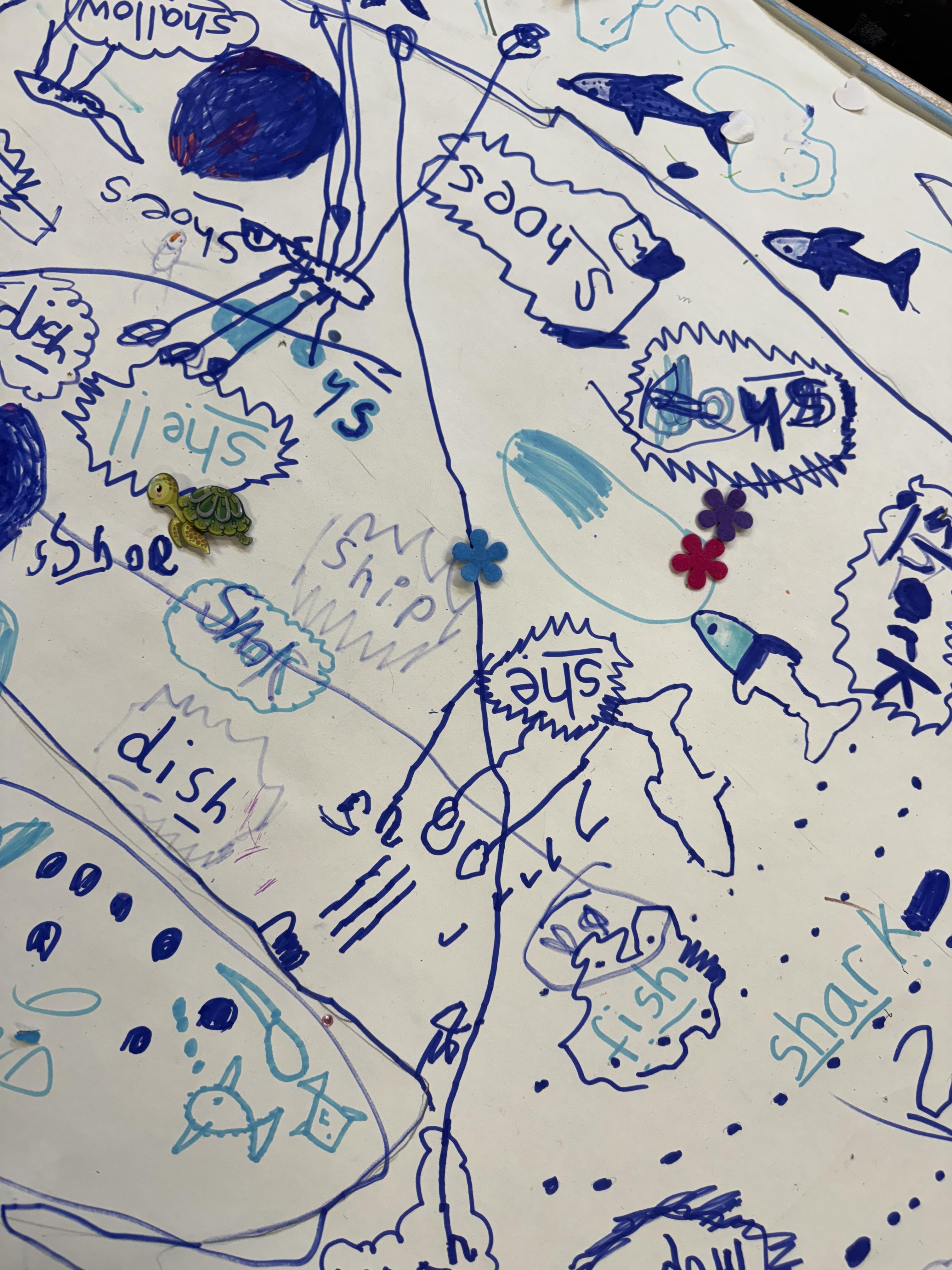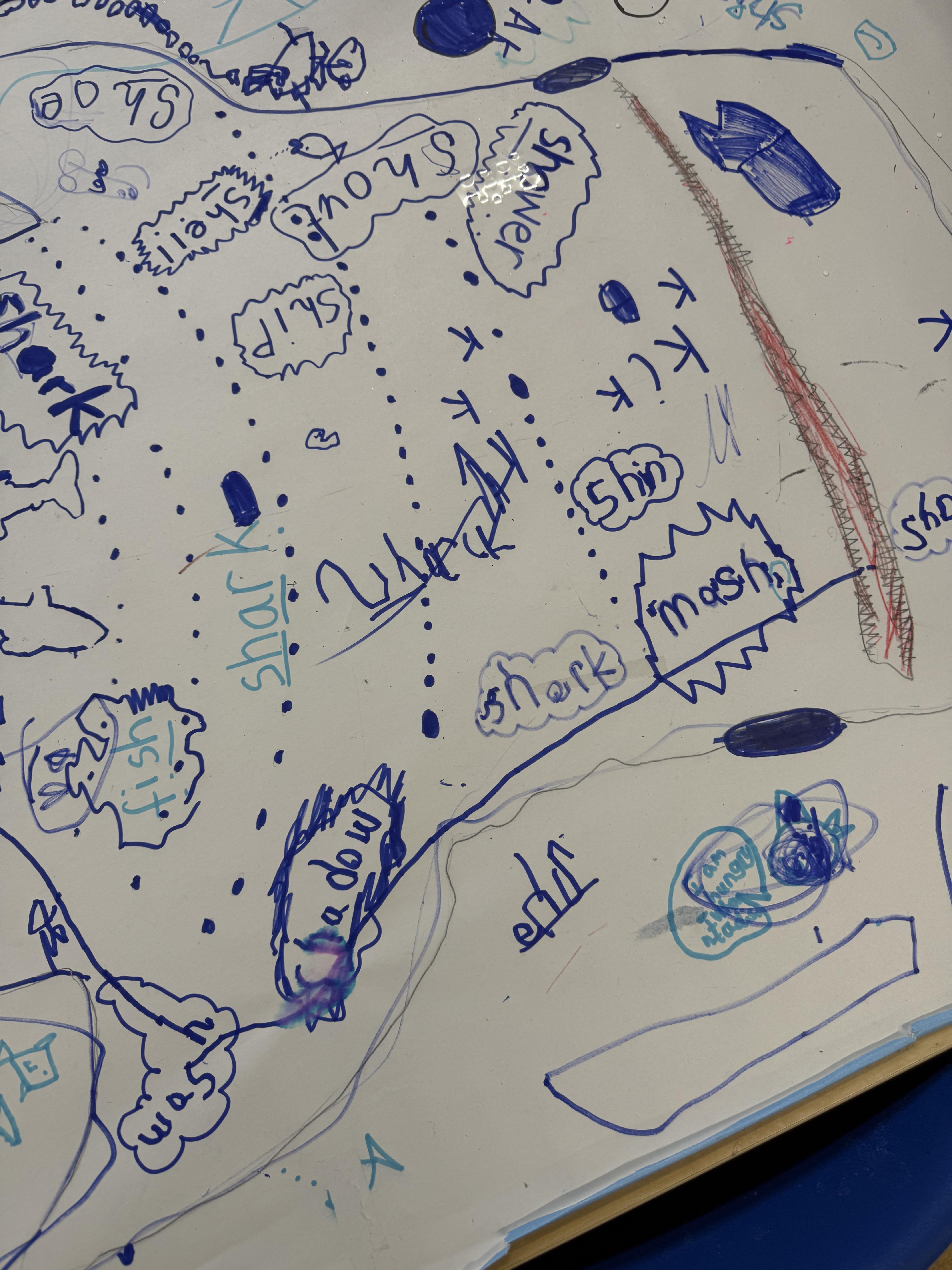 We went outside to write lots of words with the sound sh in them.