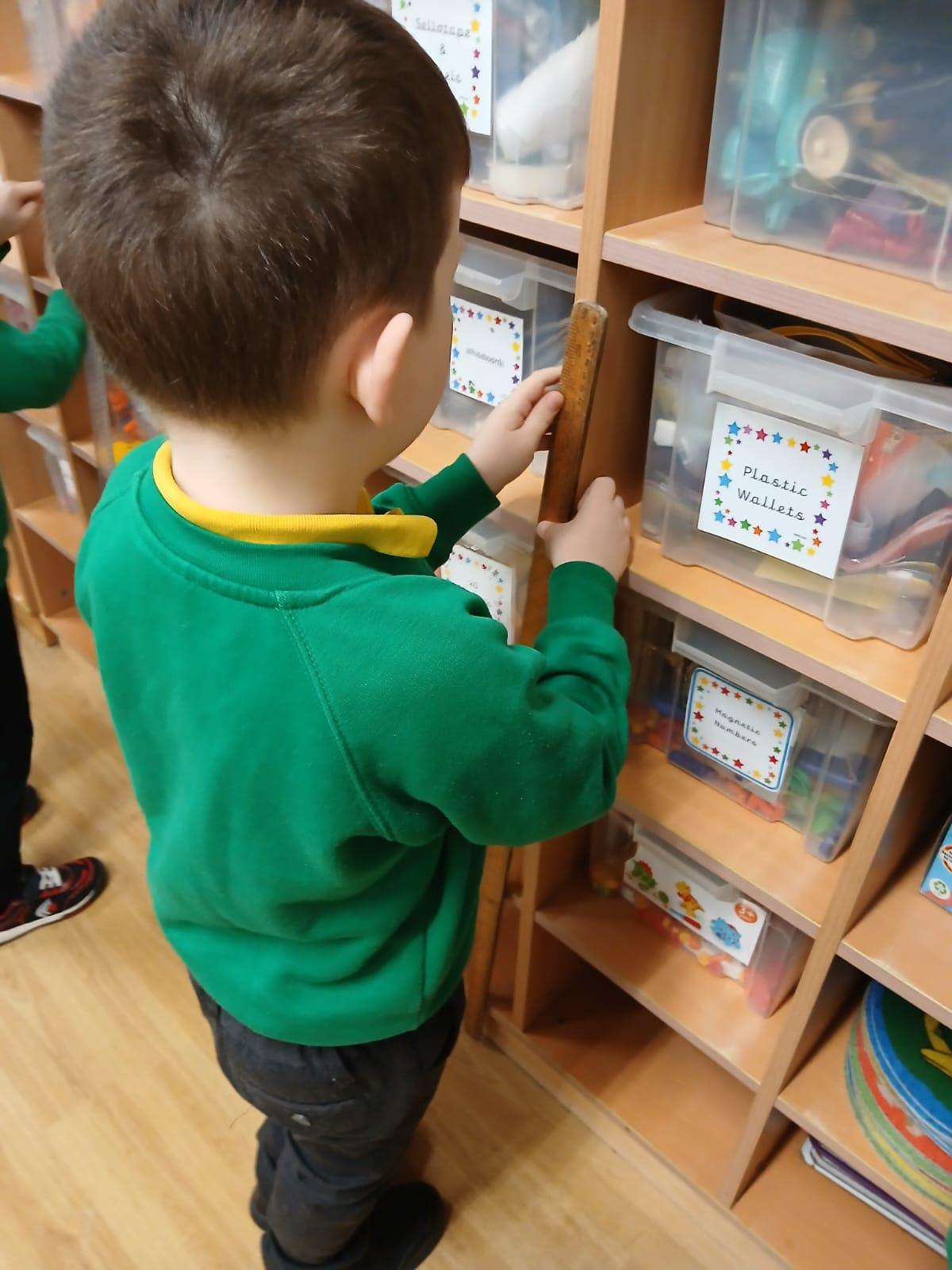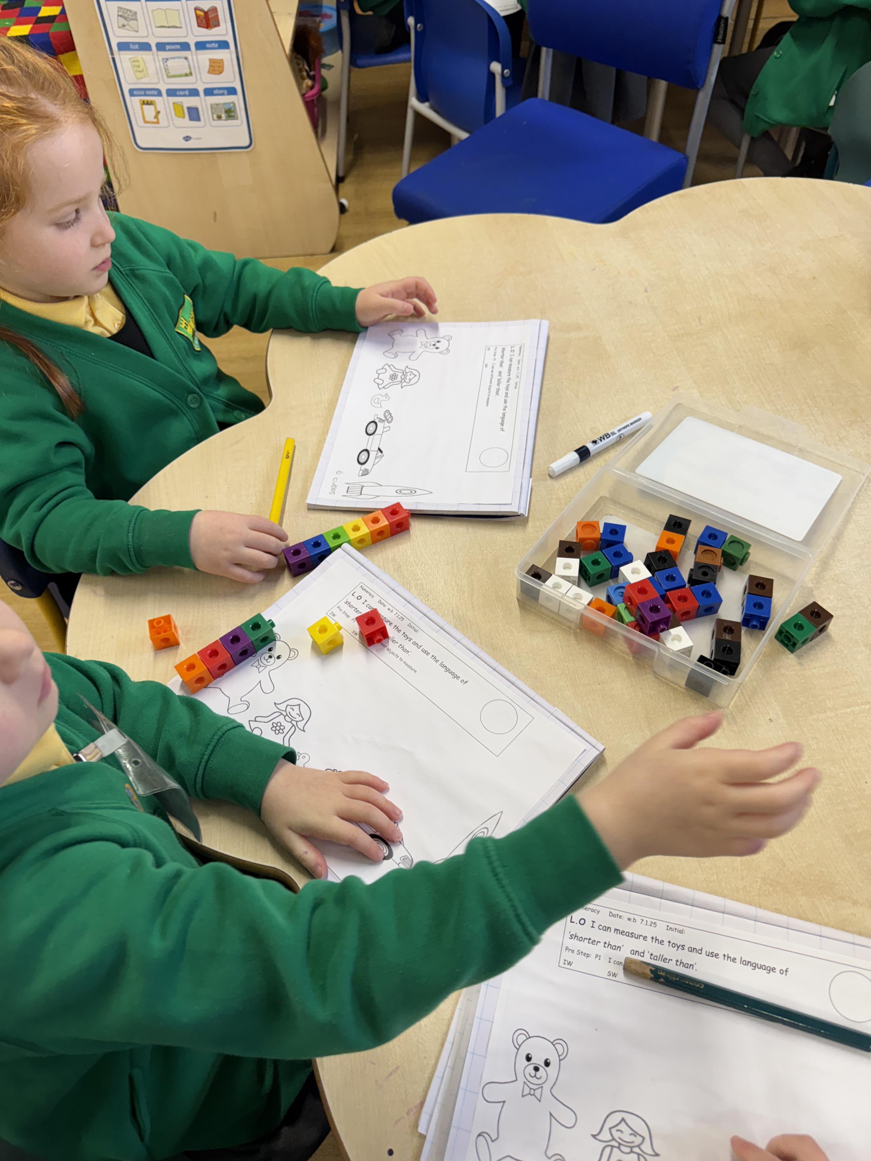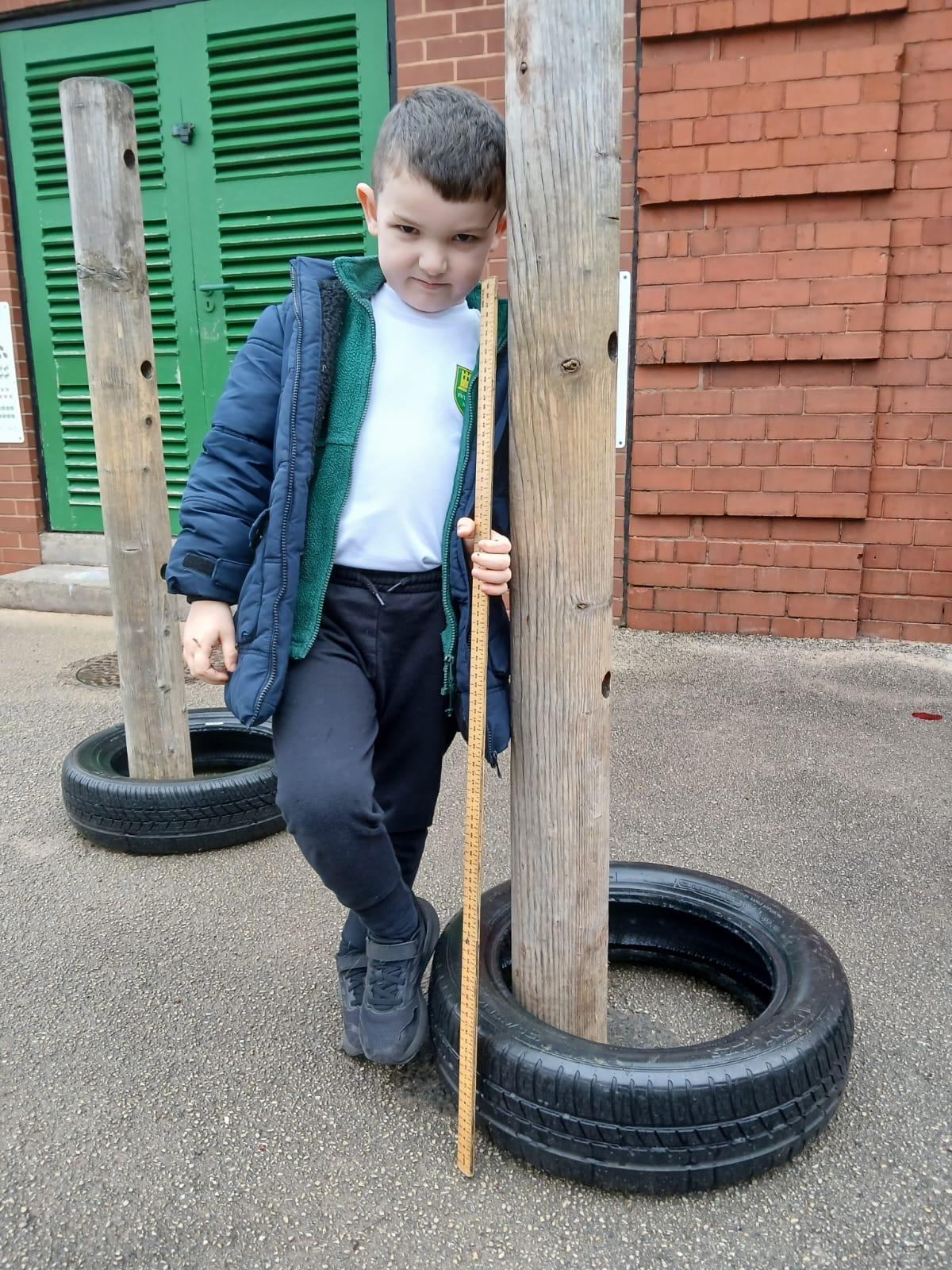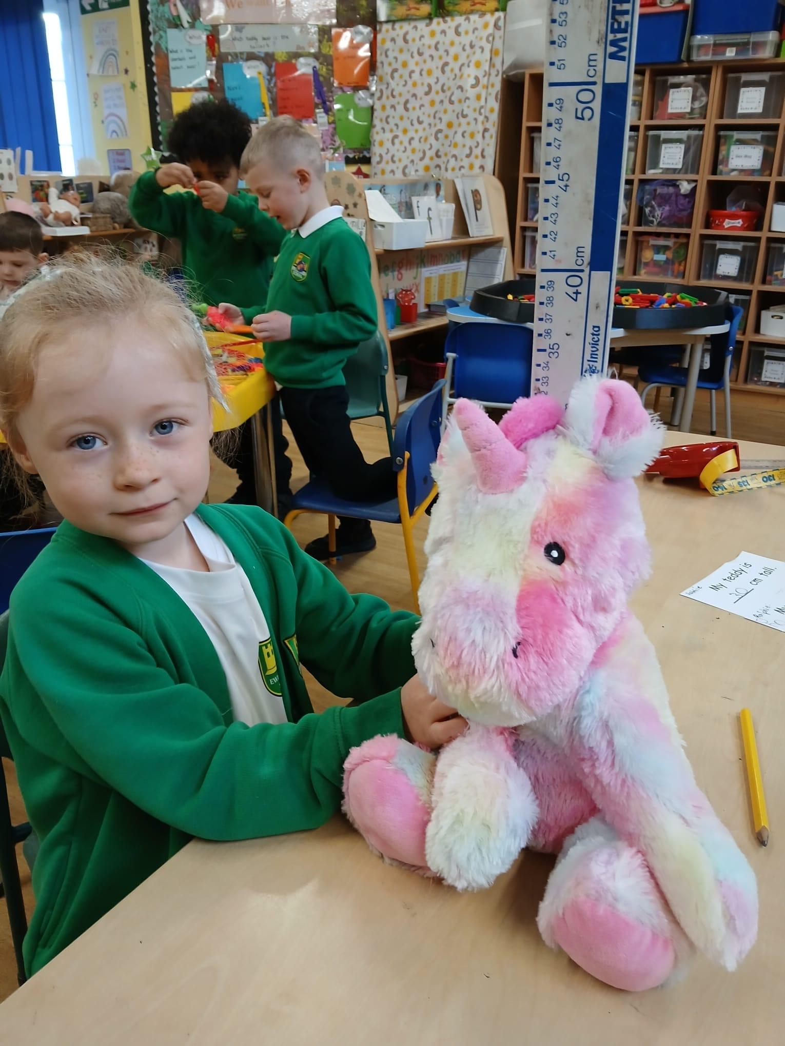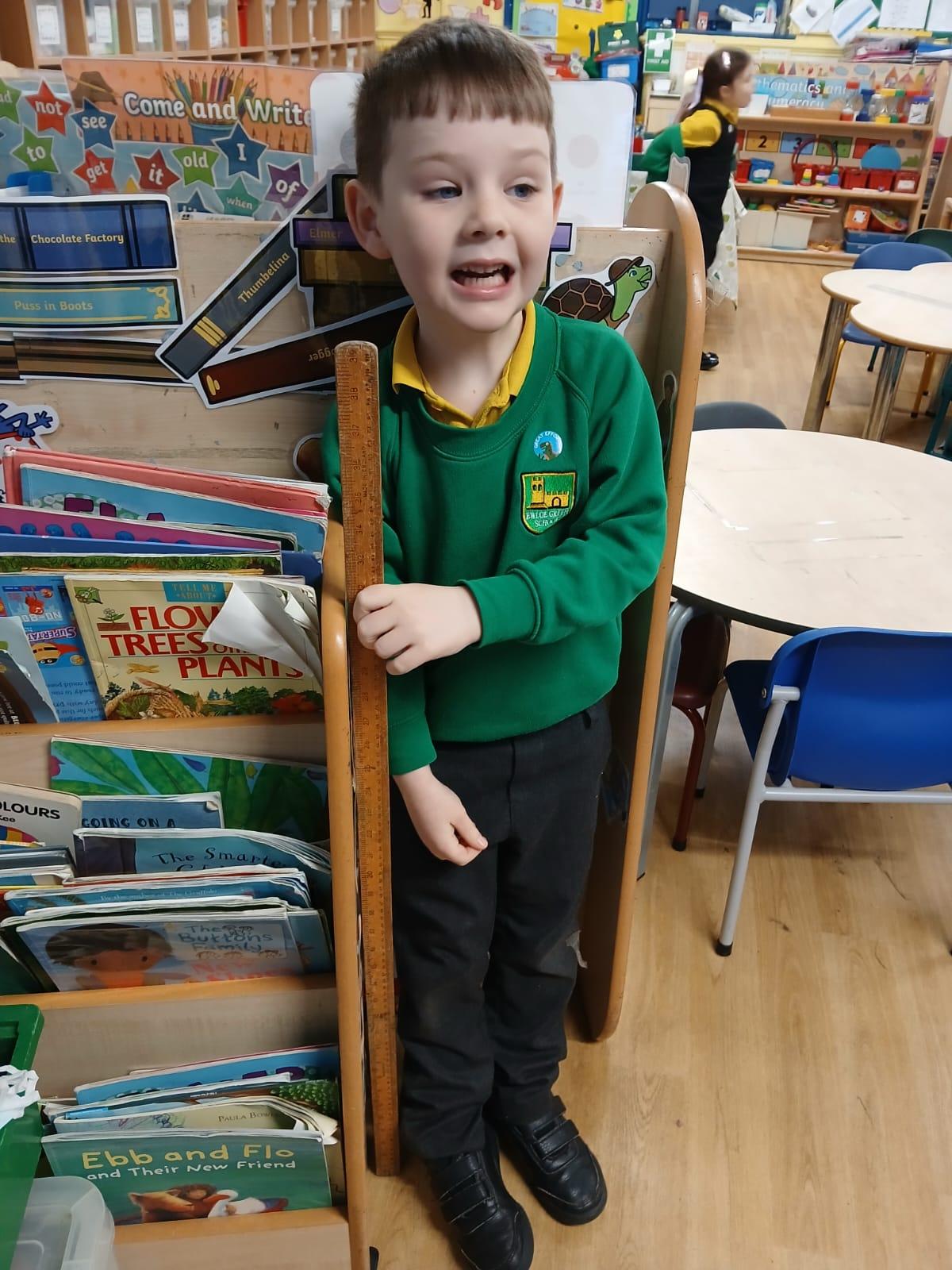 We wanted to find out which Teddy was the tallest. We all wanted to use a tape measure to measure their height. We learnt that we use centimetres to measure but can write cm when we record measurements.