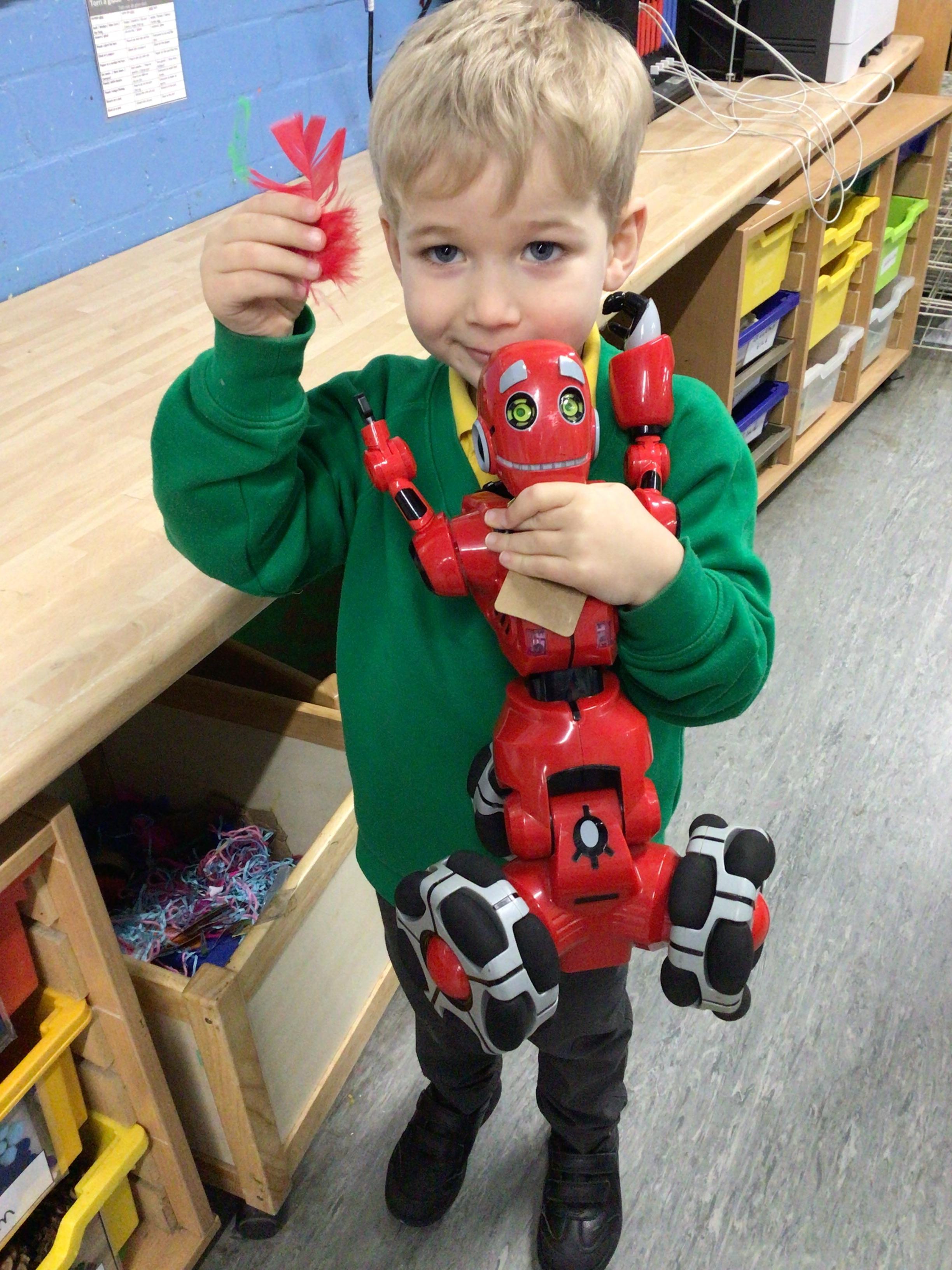 Happy New Year. We hope you all had a fantastic break. It is really nice to see the childrern again and we would like to give a special welcome to a new little boy who has rejoined our class. This term we will be as busy as ever. This week we are drawing and writing about the presents we got for Christmas and making a Welsh thankyou card. Our letter of the week is b/B. In maths we are learning about taller and shorter and will be going around school measuring and comparing. We will also be learning about New Year's Resolutions and thinking about what we want to get better at in 2025. In p.e we will be doing some yoga indoors and, outside, if we can get outside, we might try throwing snowballs. Our big book of the week is "The Toy Shop" and our Welsh word is "Diolch."